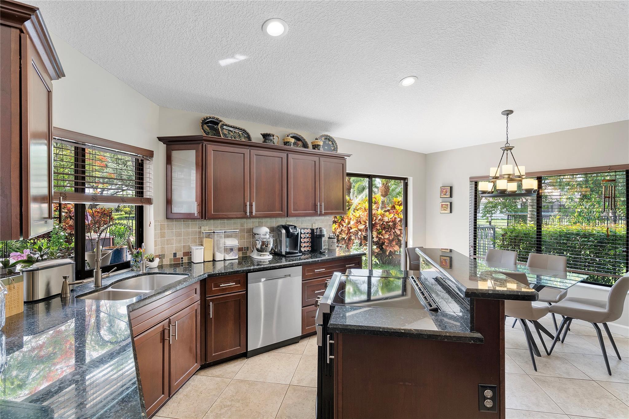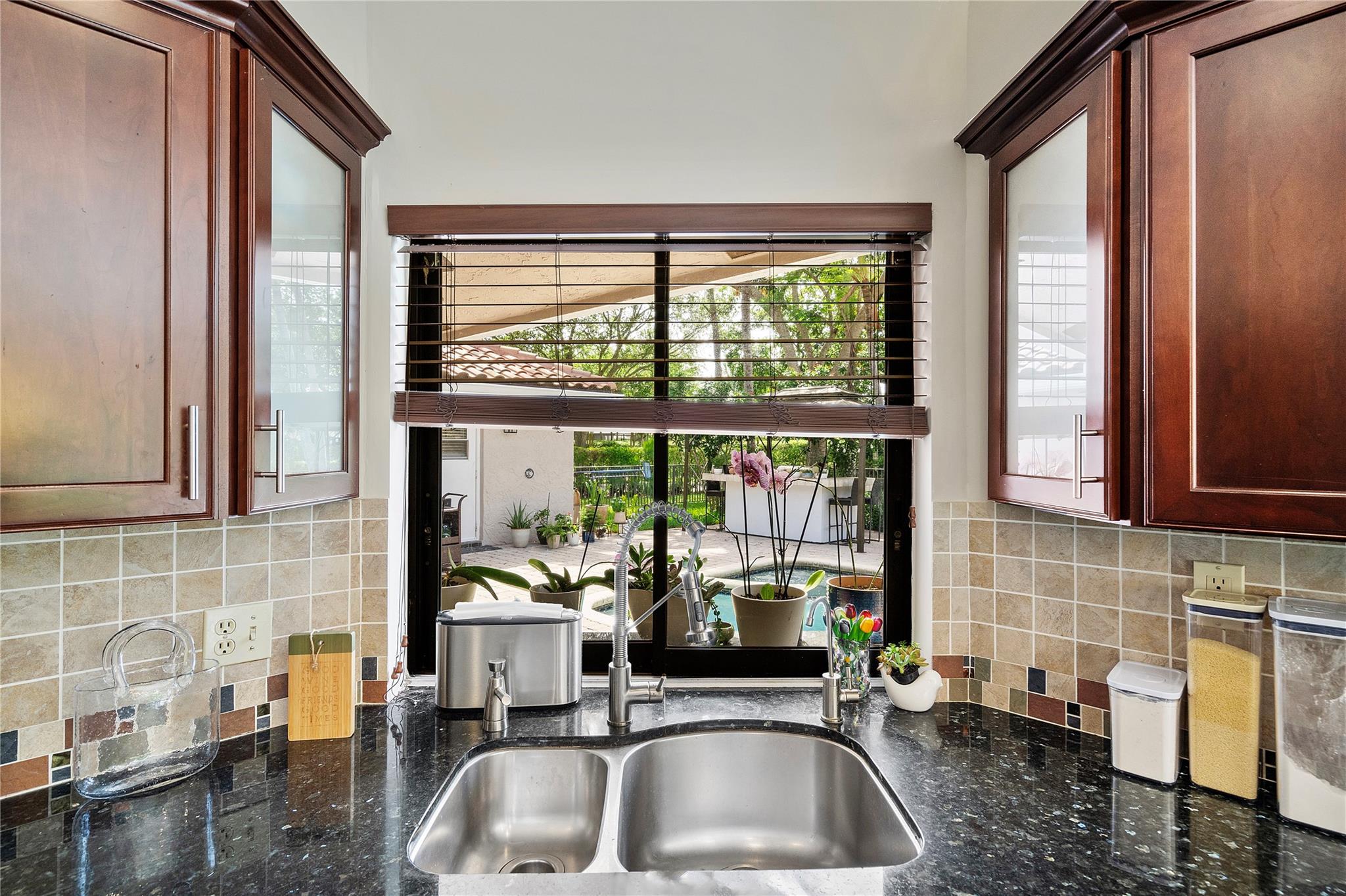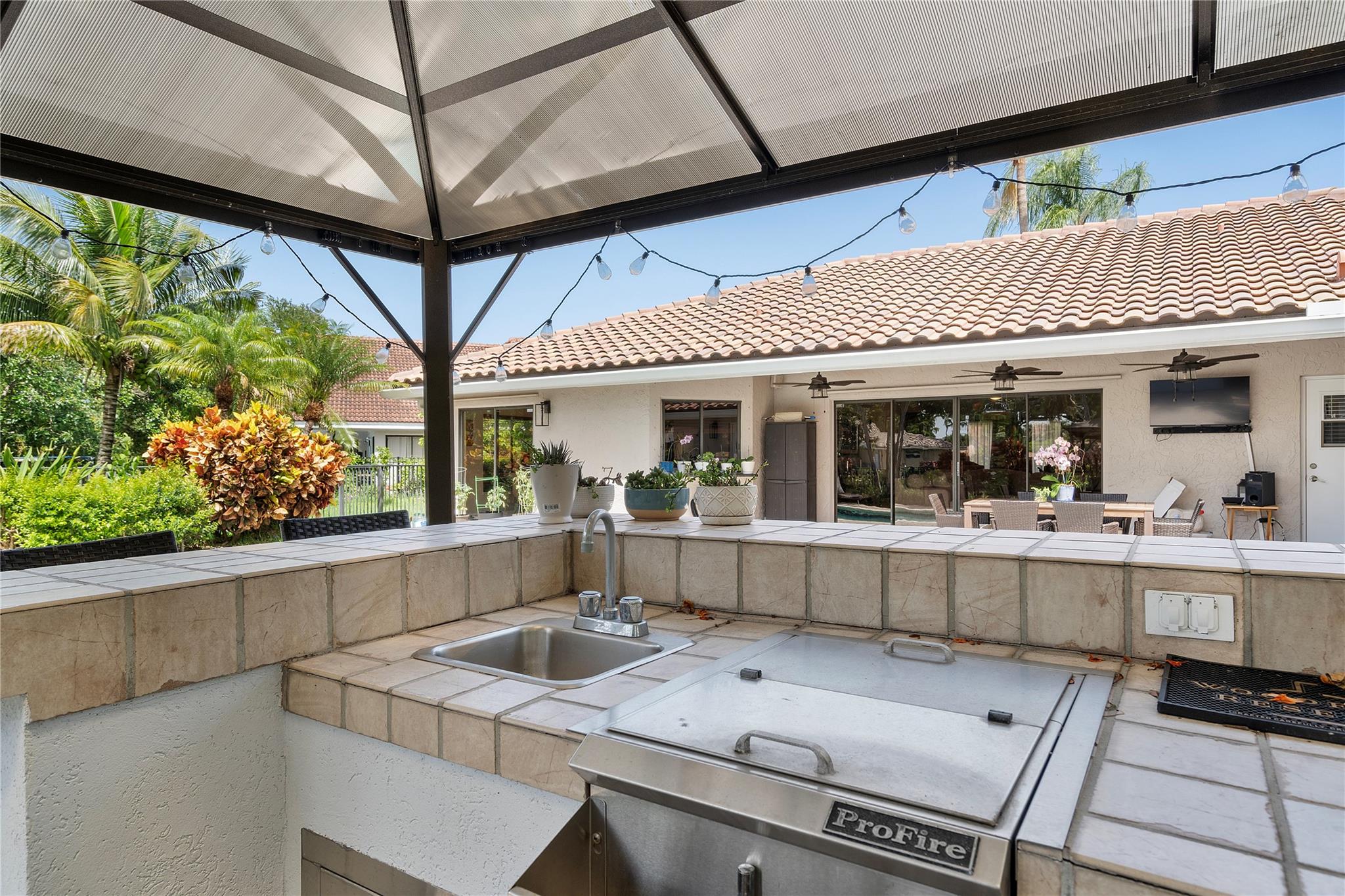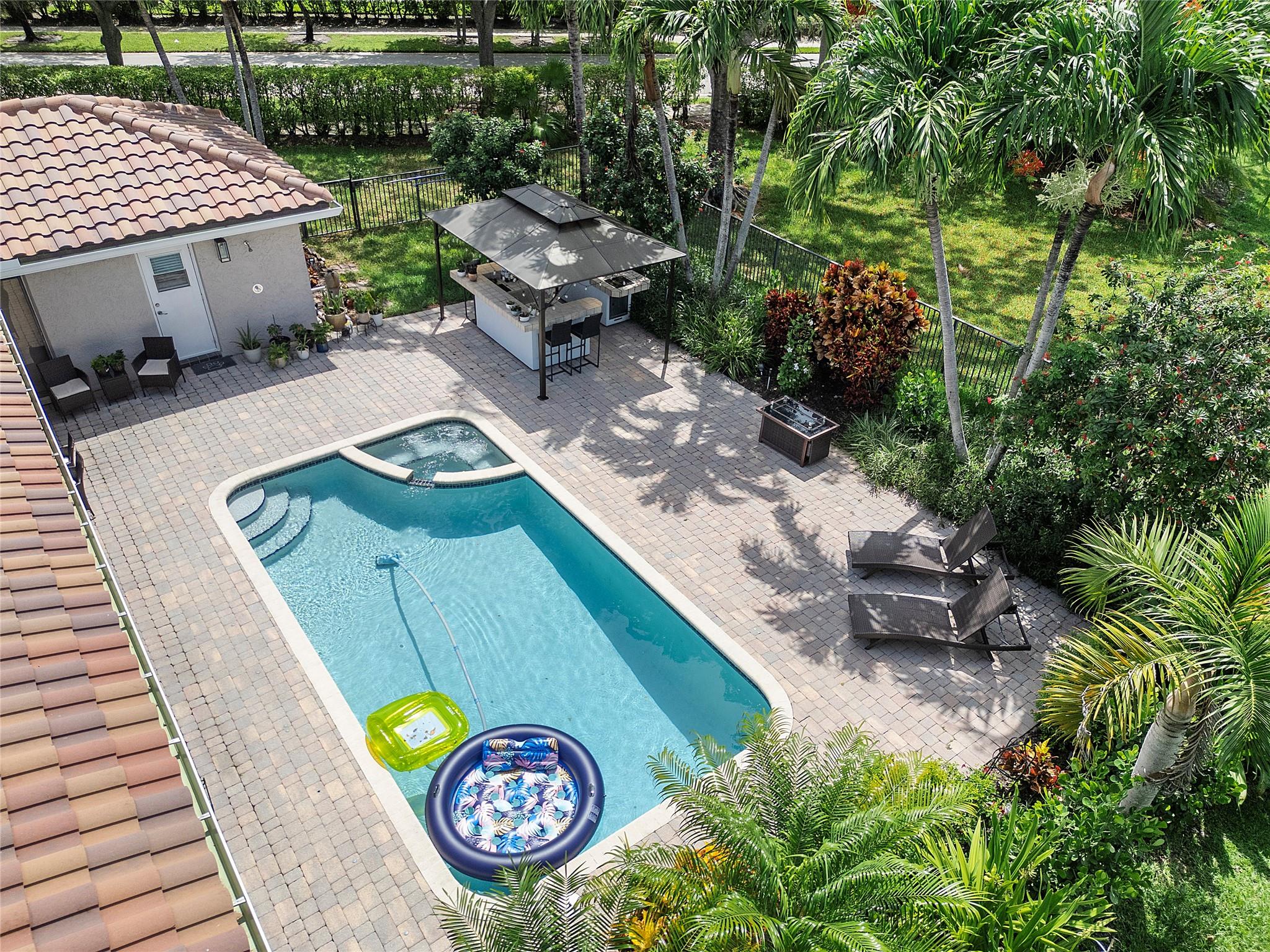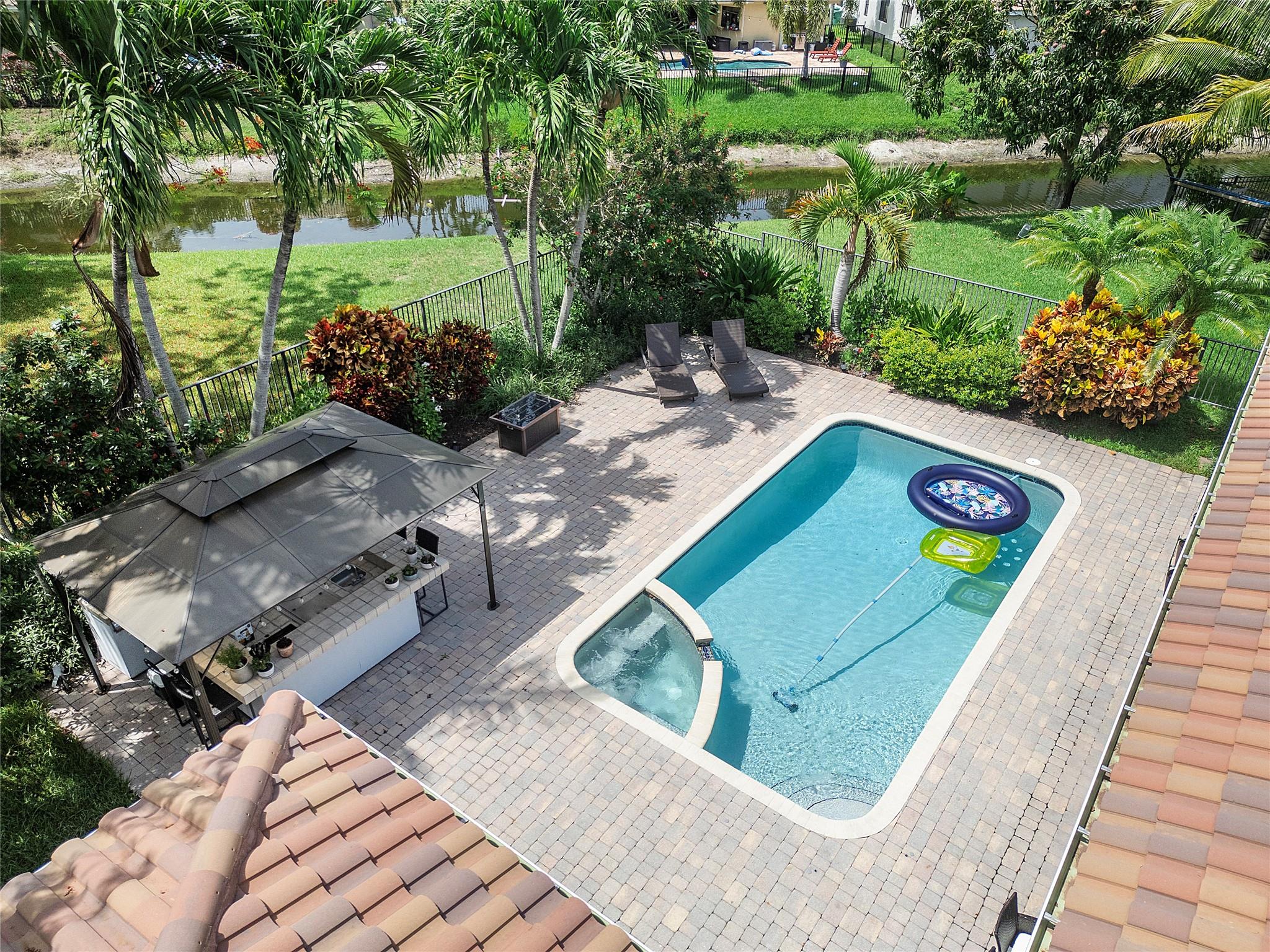 **WONDERFUL** 4 bedroom, 2 bath, 1-story pool home **ON WATER** with 2-car garage, **OVERSIZED 17,000+ square foot lot** and **AMAZING BACKYARD OASIS** on a quiet double **CUL-DE-SAC!** This open floor plan features a cherry wood kitchen, granite counter tops, stainless steel appliances, large bedrooms, 2 cabana baths, separate laundry room, beautiful neutral tile flooring throughout, lush landscaping, pavered pool deck with covered seating, & covered outdoor bar area with fridge, electric, & brand new built-in grill! Roof: 2015, A/C: 2024, Hot water heater: 2021, & new electric panel: 2022. Walking distance to A-rated Park Springs Elementary, Volunteer Park, & Fern Glen Park. Plenty of shopping & dining nearby with Target, Walmart, & the Coconut Creek Promenade close by. Your dream home!!