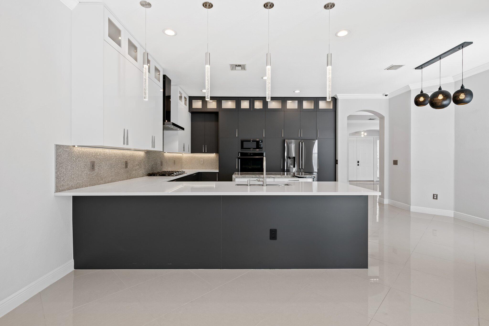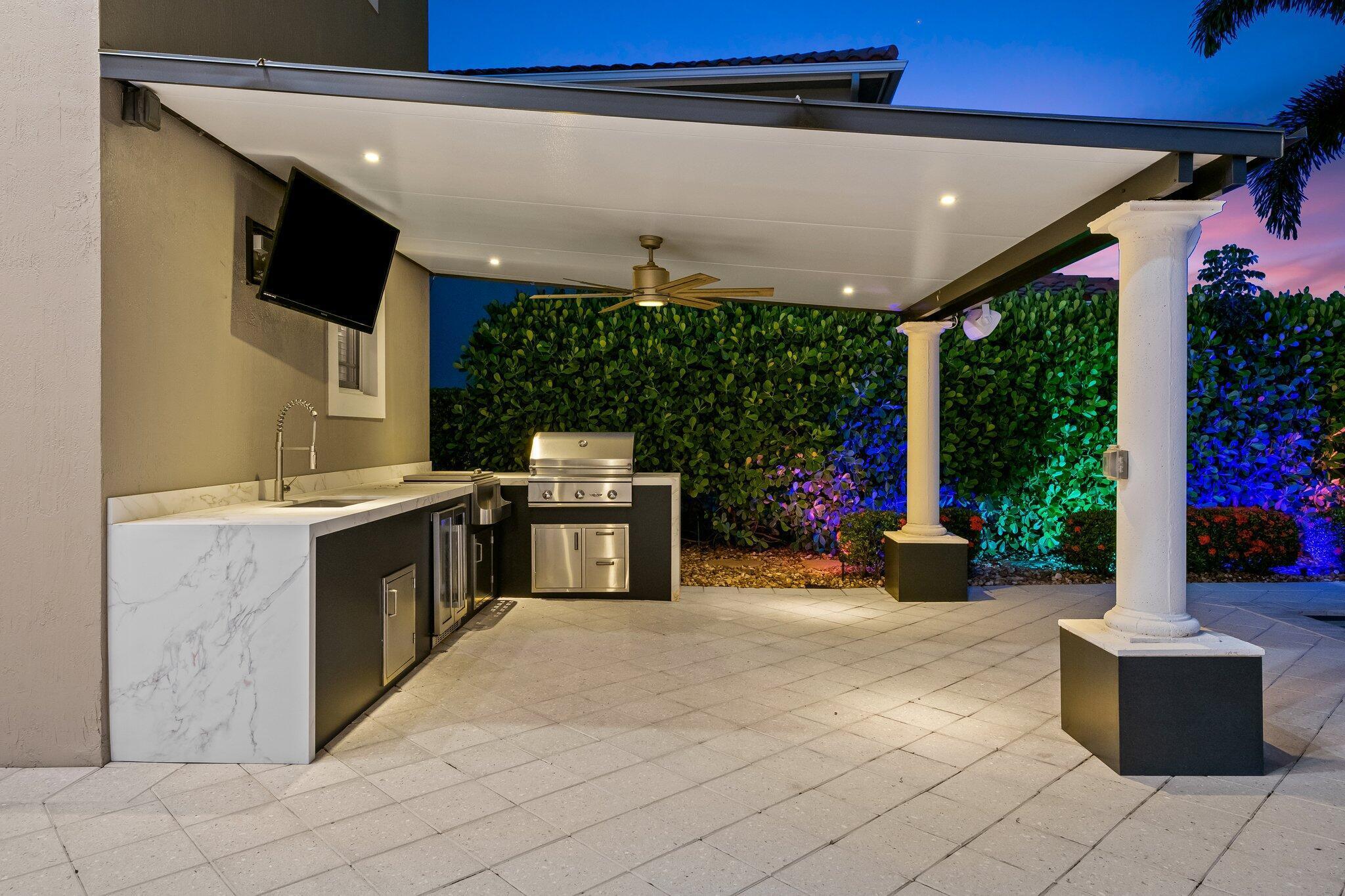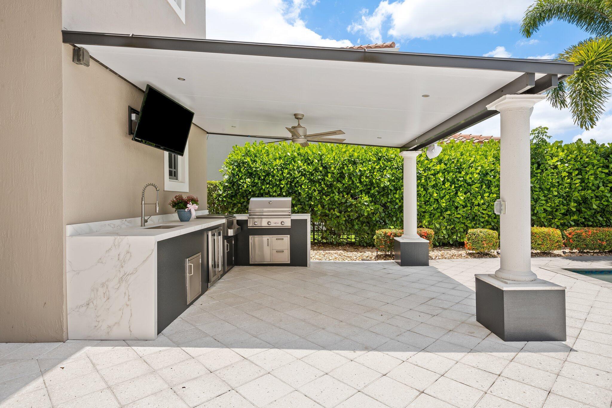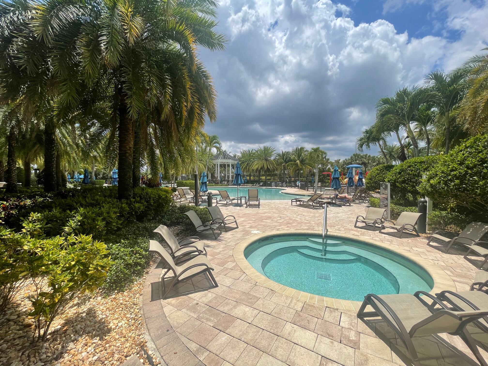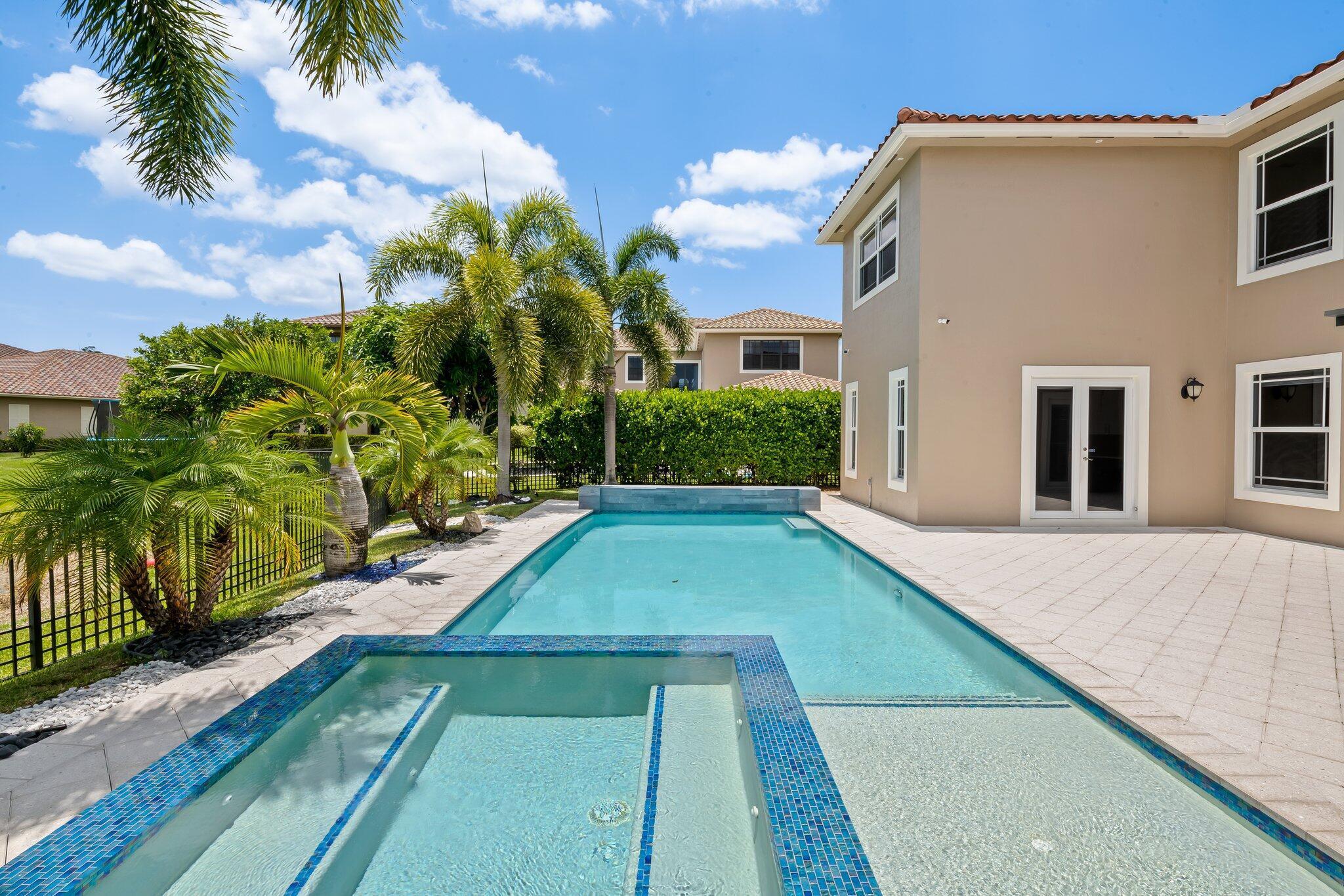 Experience luxury in this 5-bedroom, 4.5-bath Windsor Model at Miralago. From the grand entry to the serene backyard, every room boasts premium upgrades. Entertain in the formal living space with a custom-built wet bar and chandelier. The kitchen features a stunning waterfall island of exotic Brazilian granite and Richelieu cabinets.Renovated in 2019, the resort-style yard includes a gas-heated pool, spa, and fire feature. The outdoor kitchen is perfect for entertaining with matte quartzite countertops and black granite stone. Enjoy panoramic lake views and peace of mind with impact windows and a high-definition security system.Miralago’s HOA provides access to amenities like a basketball court, clubhouse, fitness center, game room, pool, sauna, and tennis courts. his home is a must see!!