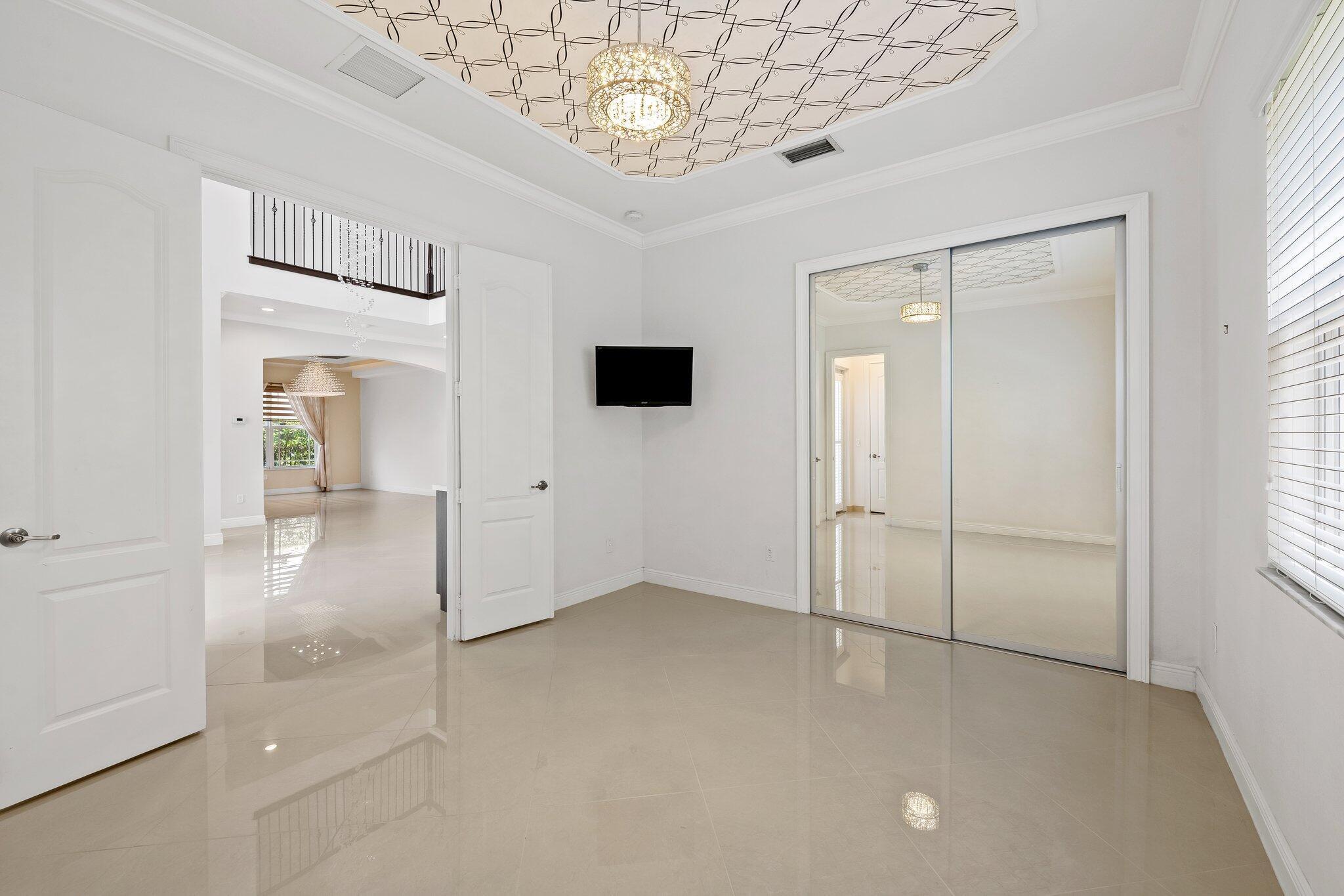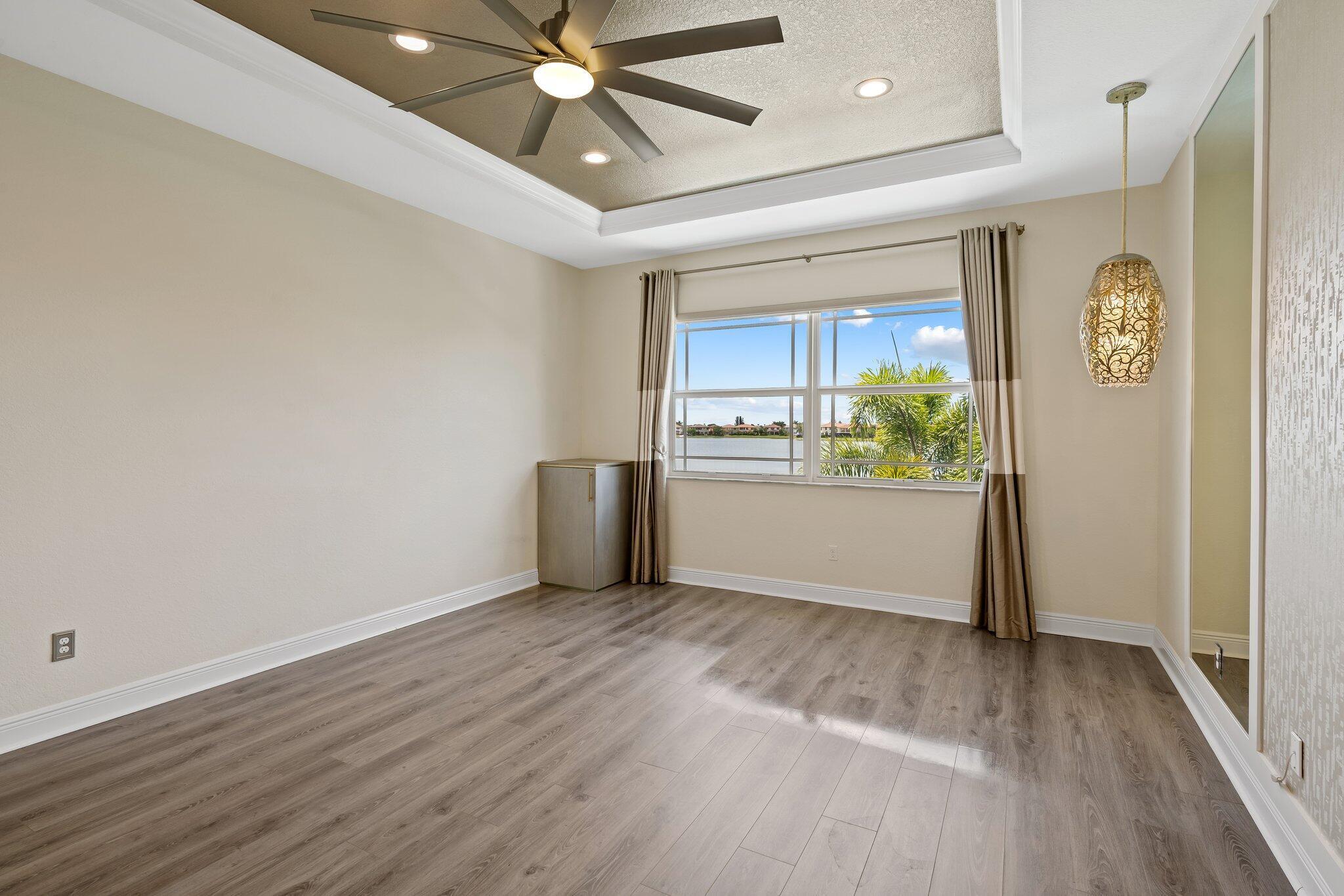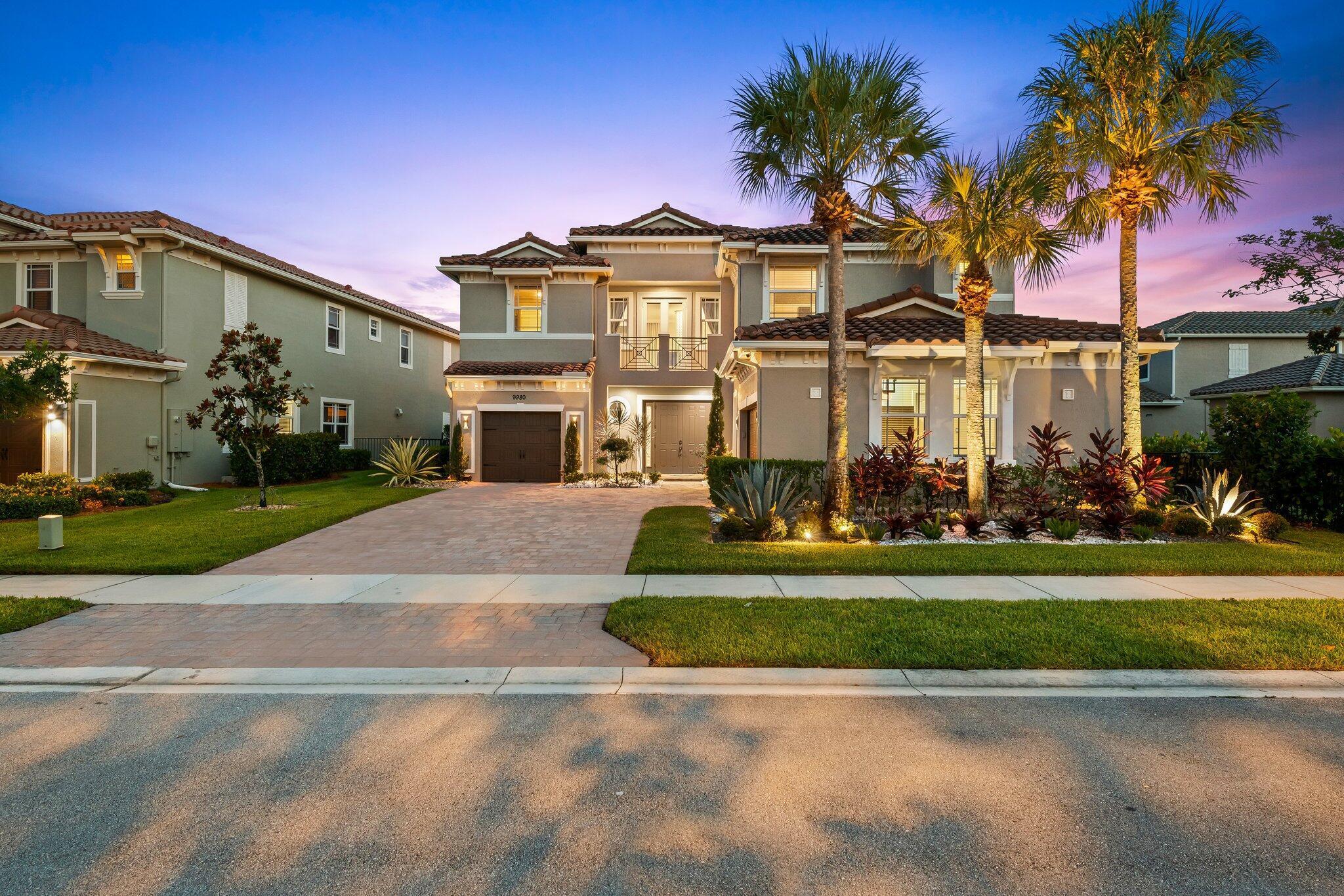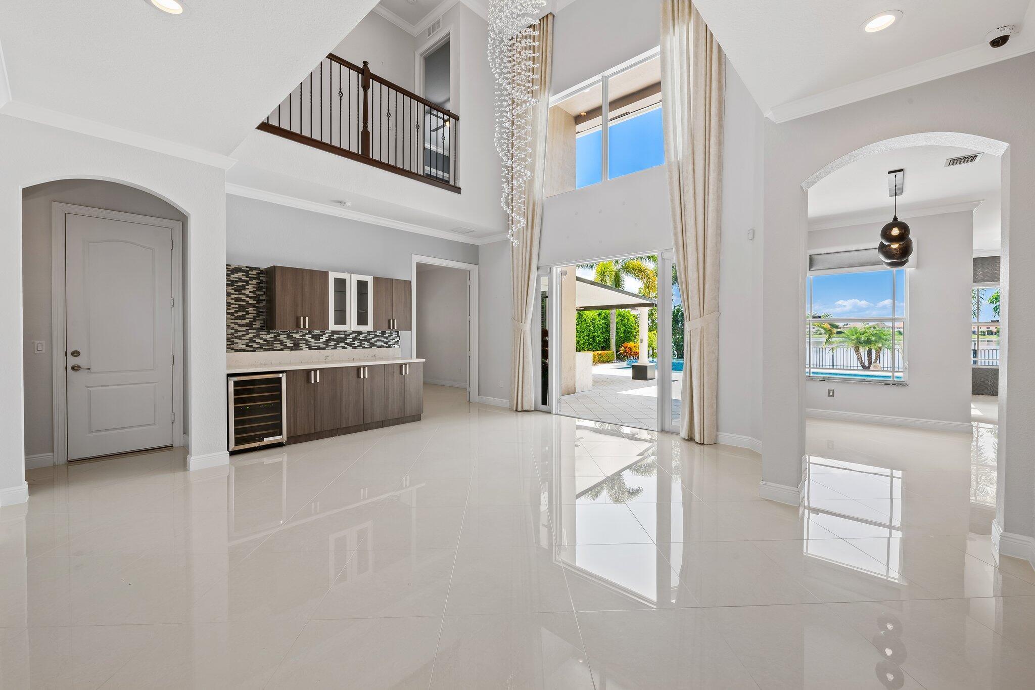 Experience luxury in this 5-bedroom, 4.5-bath Windsor Model at Miralago. From the grand entry to the serene backyard, every room boasts premium upgrades. Entertain in the formal living space with a custom-built wet bar and chandelier. The kitchen features a stunning waterfall island of exotic Brazilian granite and Richelieu cabinets.Renovated in 2019, the resort-style yard includes a gas-heated pool, spa, and fire feature. The outdoor kitchen is perfect for entertaining with matte quartzite countertops and black granite stone. Enjoy panoramic lake views and peace of mind with impact windows and a high-definition security system.Miralago’s HOA provides access to amenities like a basketball court, clubhouse, fitness center, game room, pool, sauna, and tennis courts. his home is a must see!!