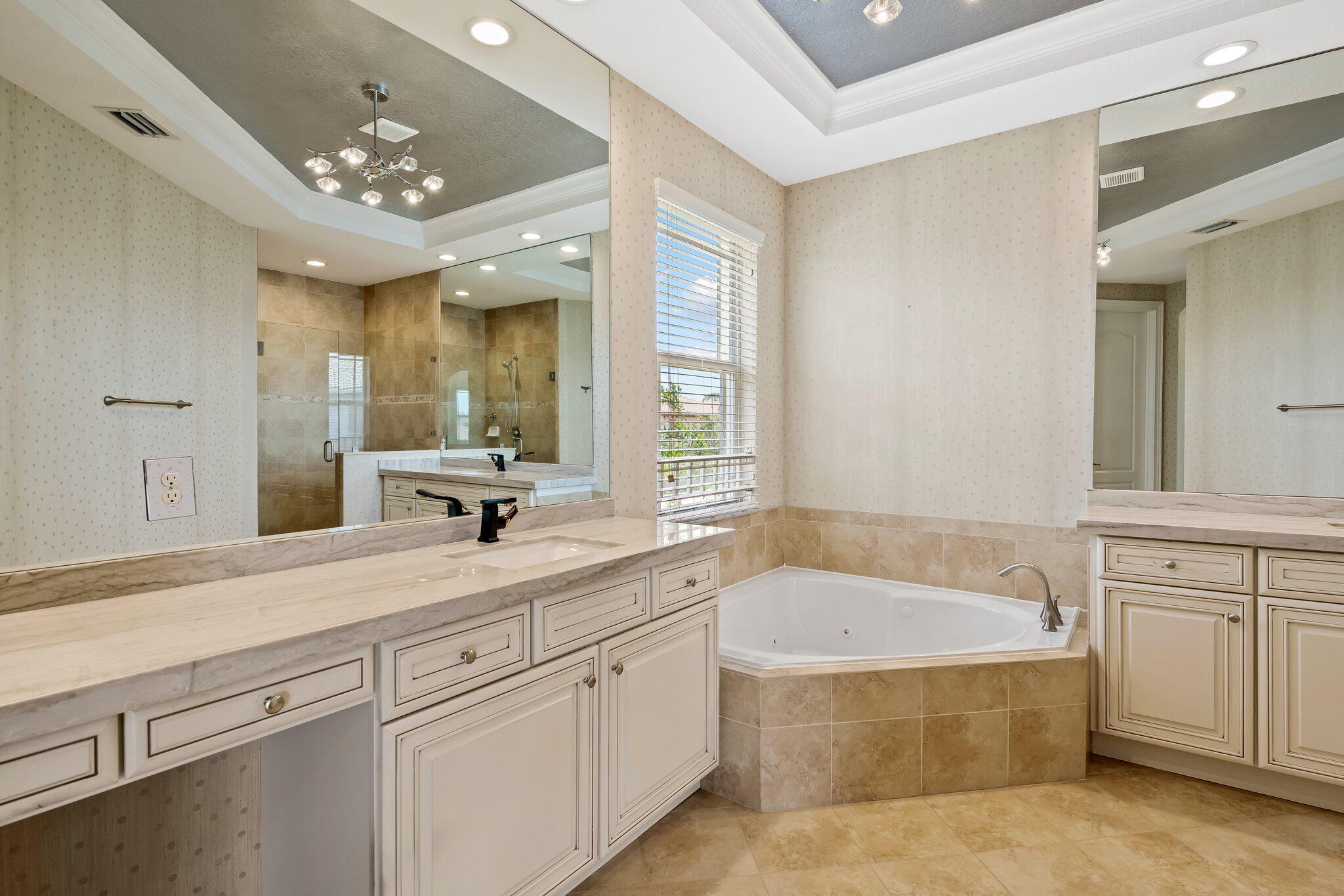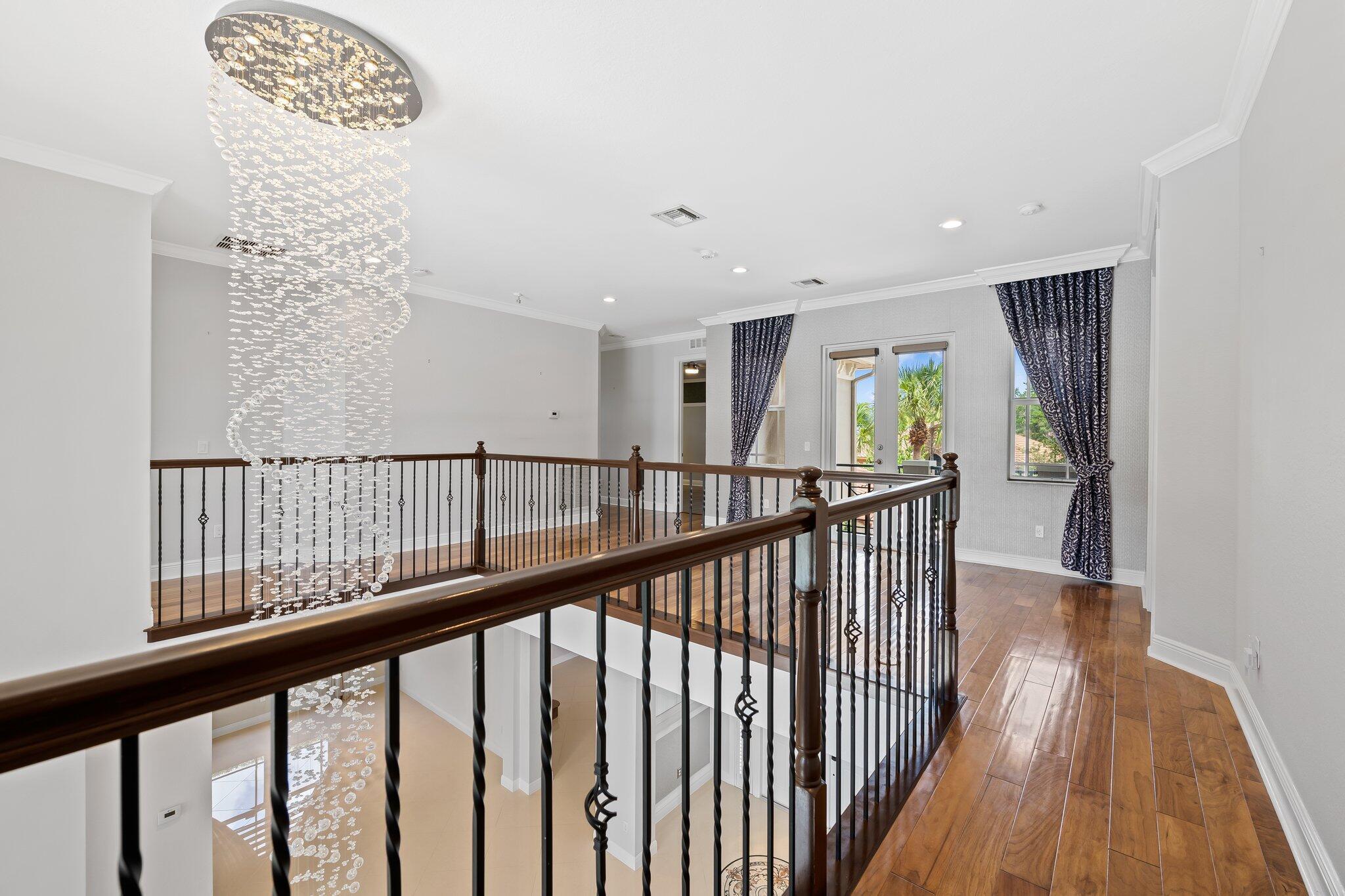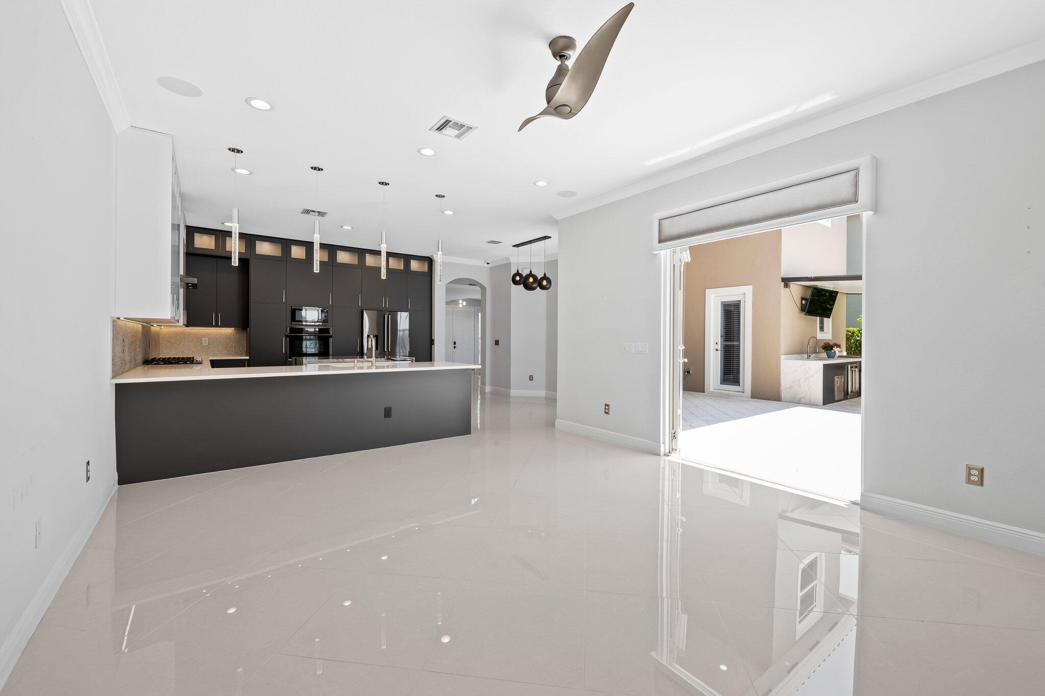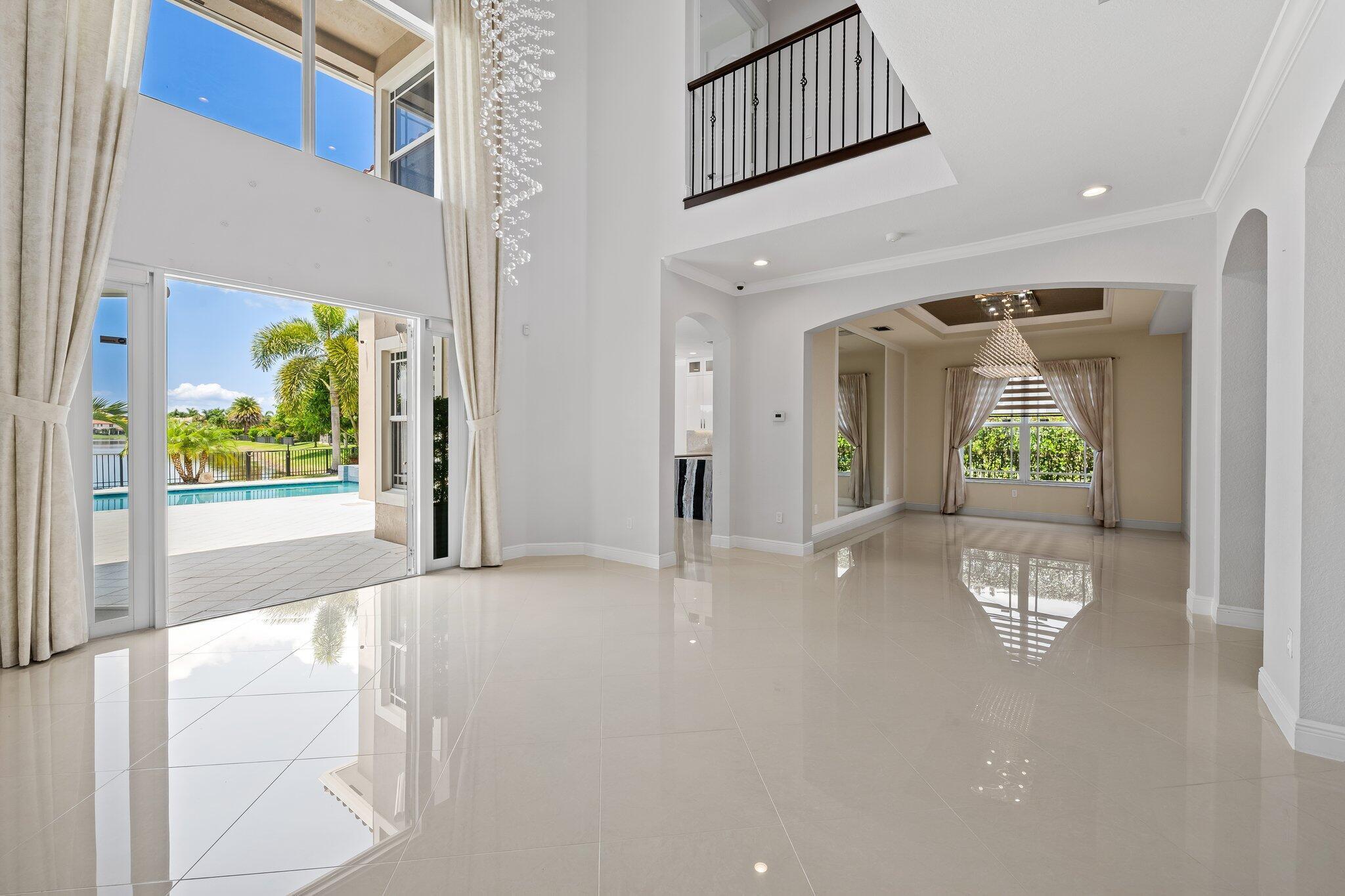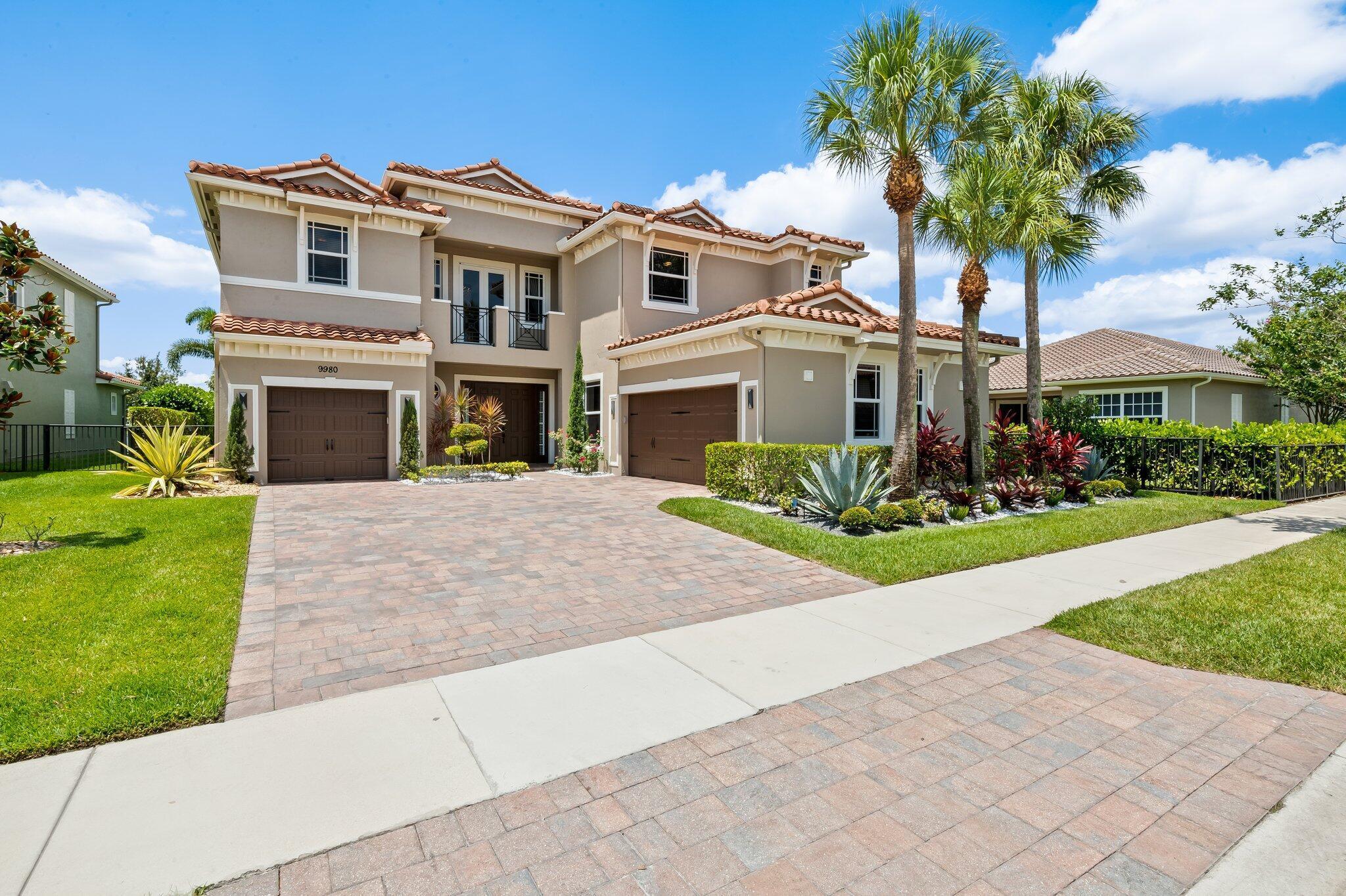 Experience luxury in this 5-bedroom, 4.5-bath Windsor Model at Miralago. From the grand entry to the serene backyard, every room boasts premium upgrades. Entertain in the formal living space with a custom-built wet bar and chandelier. The kitchen features a stunning waterfall island of exotic Brazilian granite and Richelieu cabinets.Renovated in 2019, the resort-style yard includes a gas-heated pool, spa, and fire feature. The outdoor kitchen is perfect for entertaining with matte quartzite countertops and black granite stone. Enjoy panoramic lake views and peace of mind with impact windows and a high-definition security system.Miralago’s HOA provides access to amenities like a basketball court, clubhouse, fitness center, game room, pool, sauna, and tennis courts. his home is a must see!!
