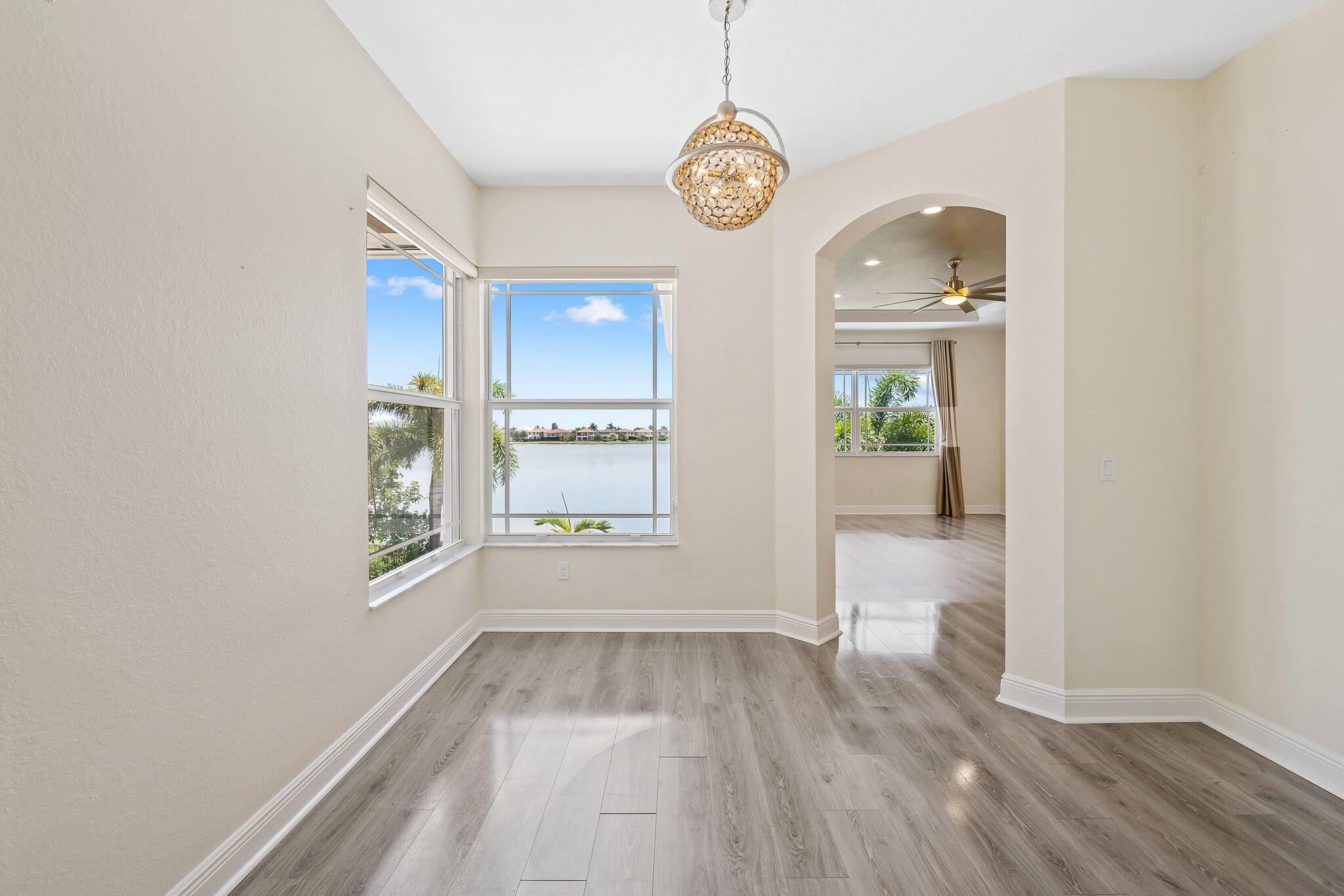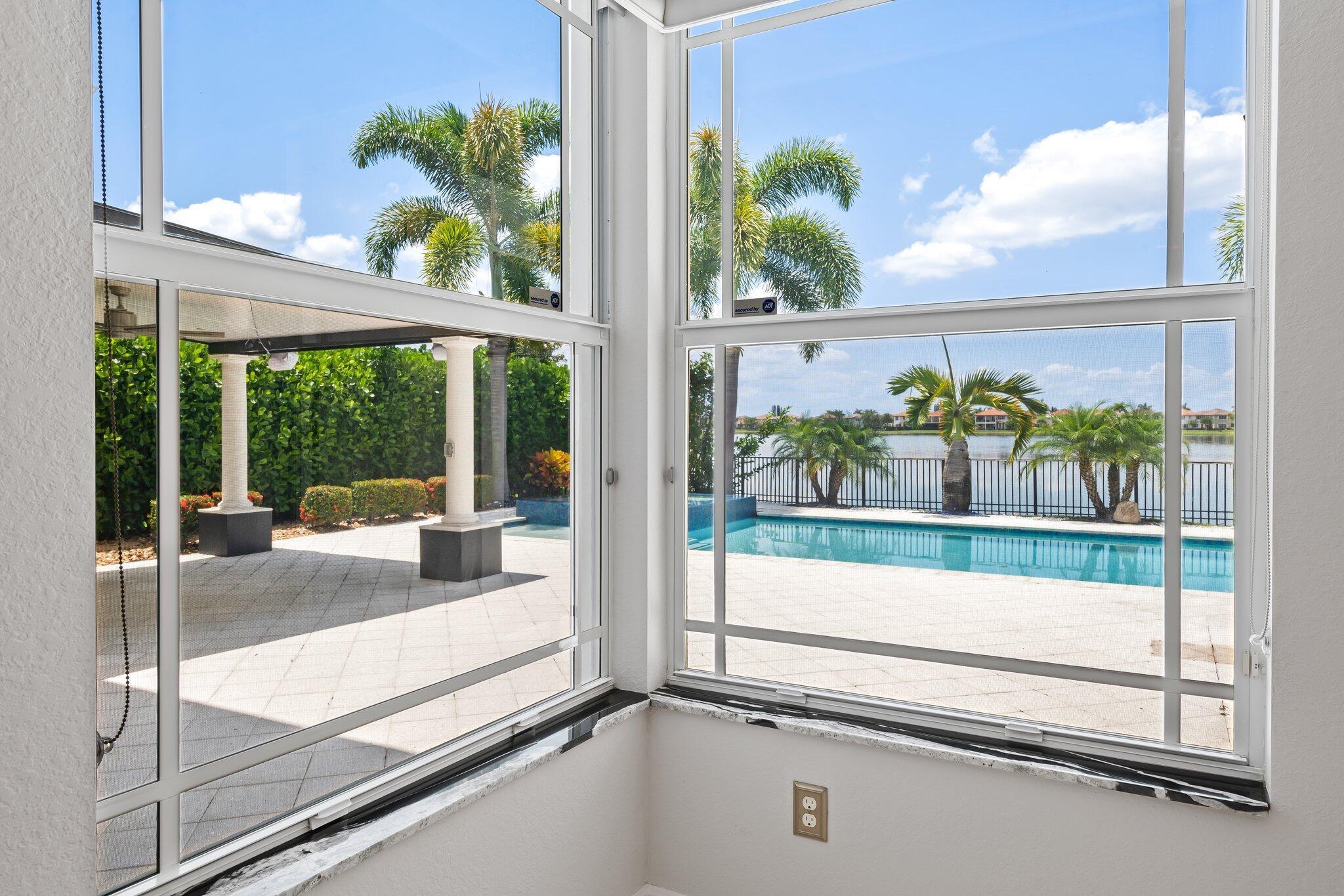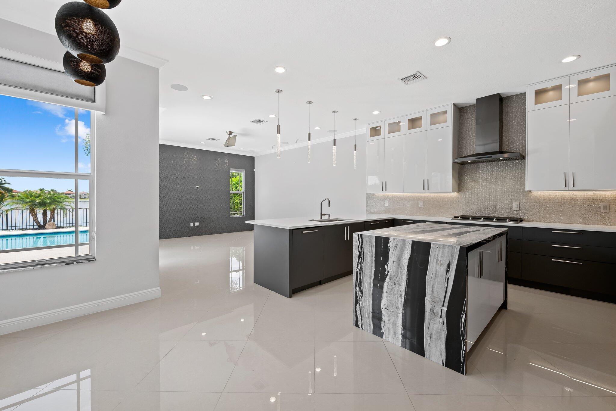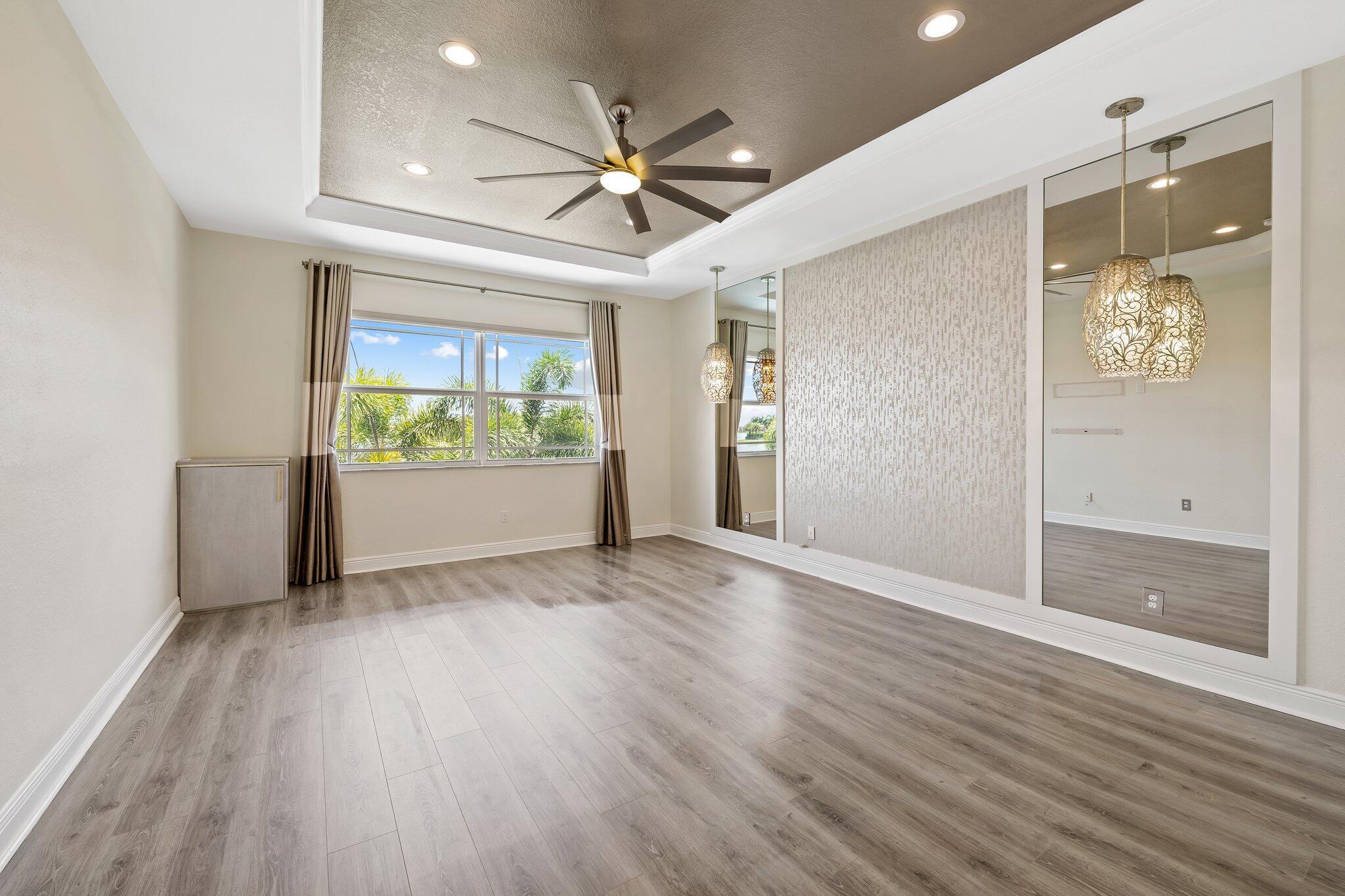 Experience luxury in this 5-bedroom, 4.5-bath Windsor Model at Miralago. From the grand entry to the serene backyard, every room boasts premium upgrades. Entertain in the formal living space with a custom-built wet bar and chandelier. The kitchen features a stunning waterfall island of exotic Brazilian granite and Richelieu cabinets.Renovated in 2019, the resort-style yard includes a gas-heated pool, spa, and fire feature. The outdoor kitchen is perfect for entertaining with matte quartzite countertops and black granite stone. Enjoy panoramic lake views and peace of mind with impact windows and a high-definition security system.Miralago’s HOA provides access to amenities like a basketball court, clubhouse, fitness center, game room, pool, sauna, and tennis courts. his home is a must see!!