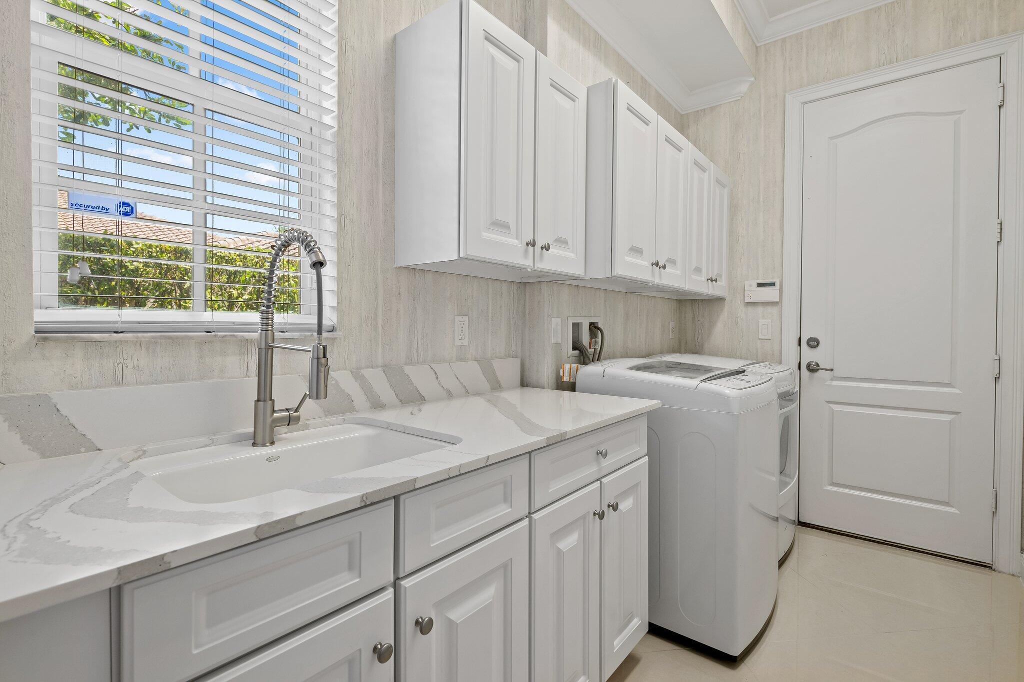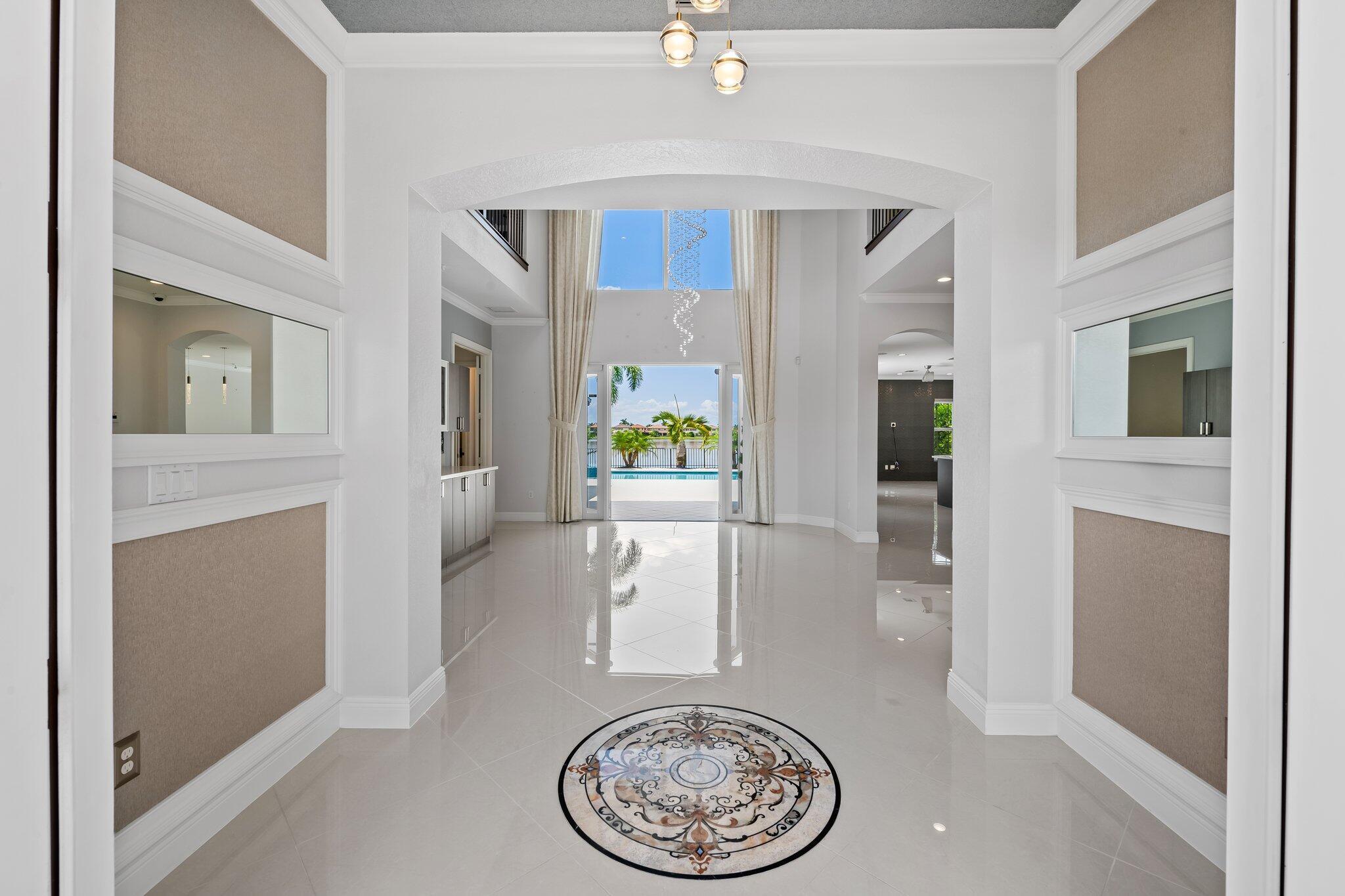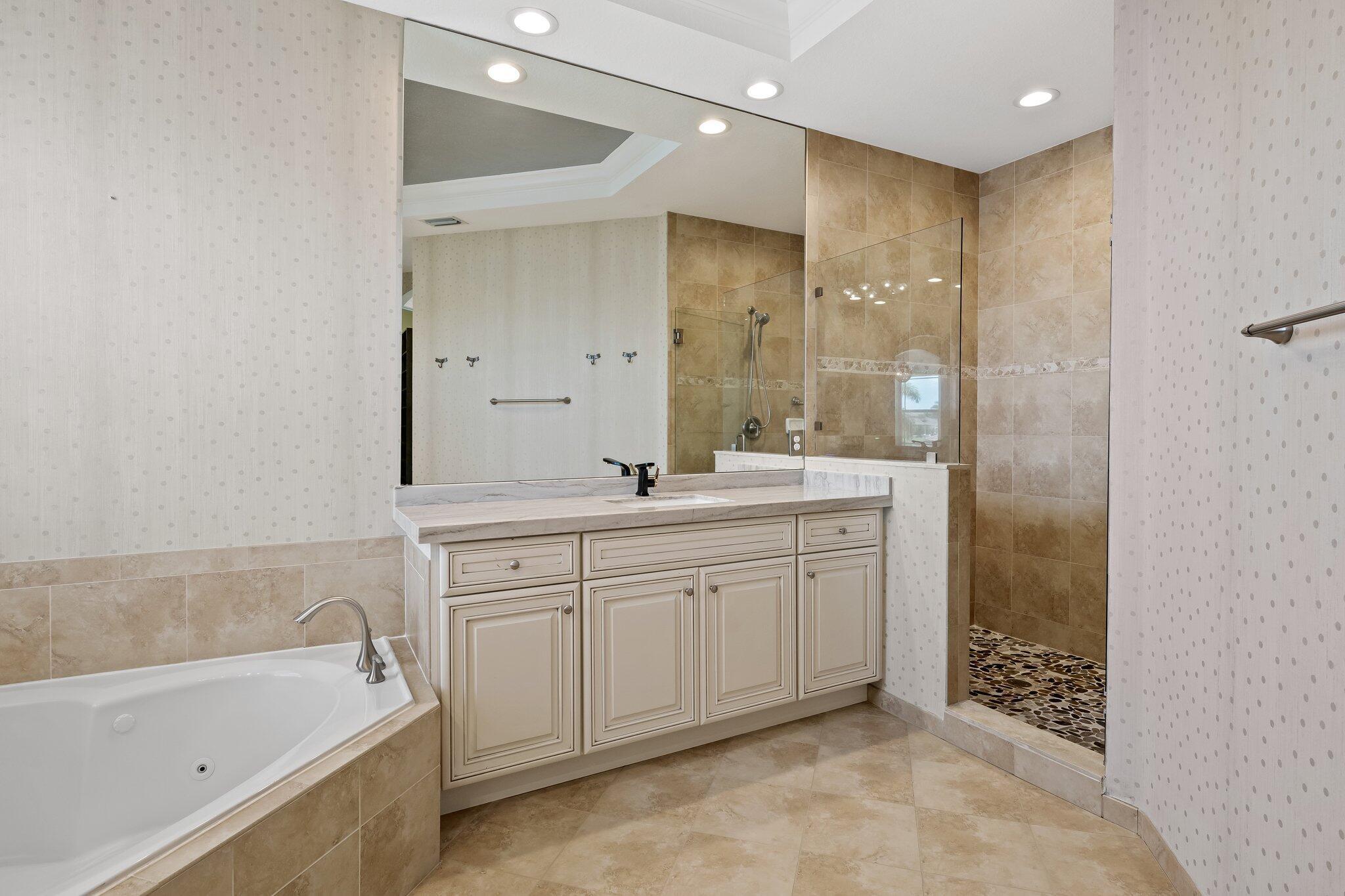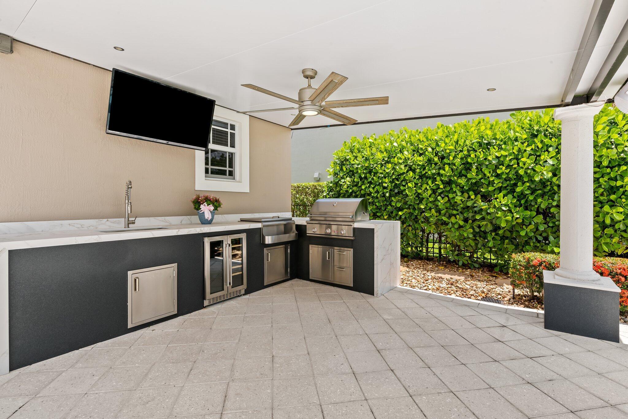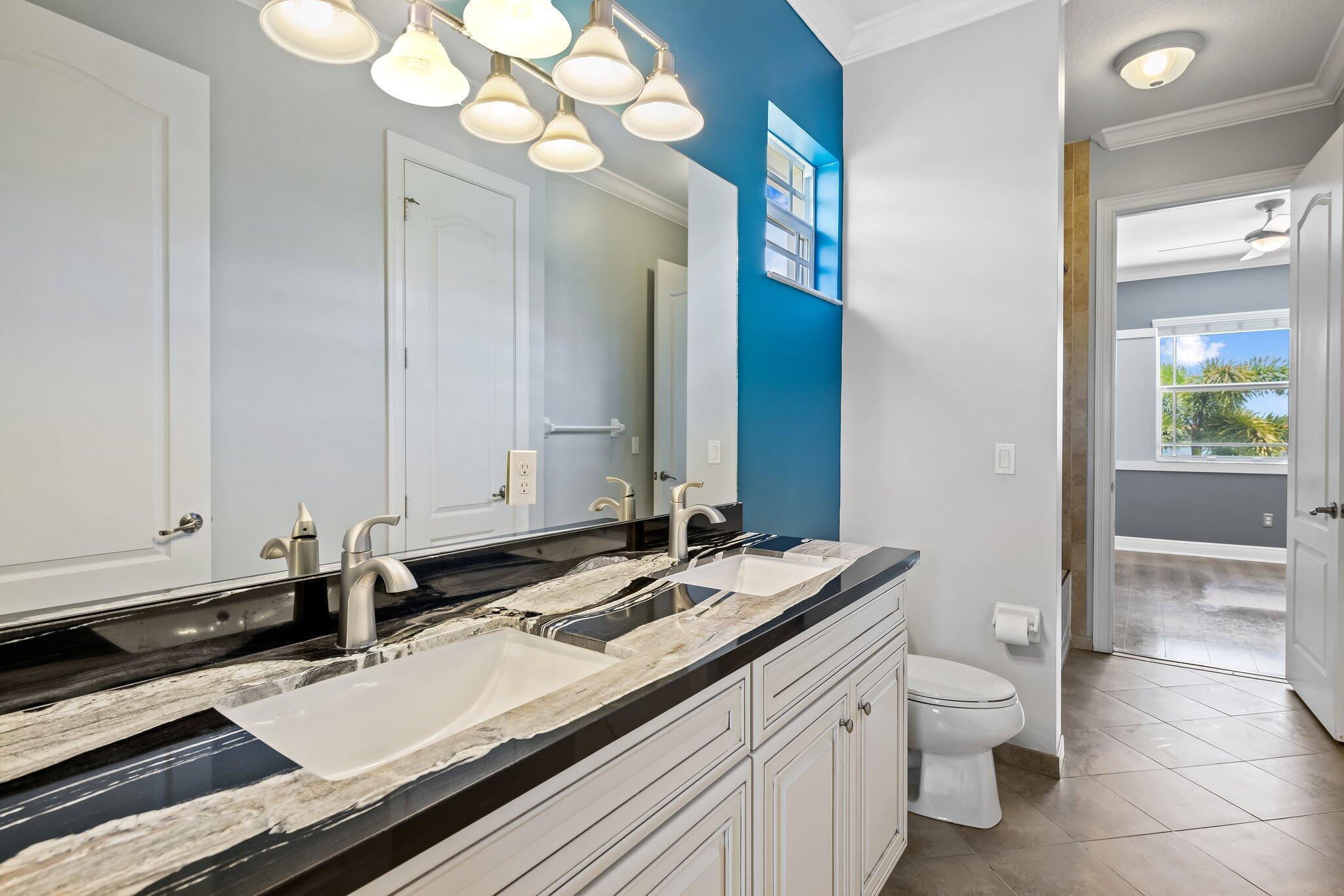Experience luxury in this 5-bedroom, 4.5-bath Windsor Model at Miralago. From the grand entry to the serene backyard, every room boasts premium upgrades. Entertain in the formal living space with a custom-built wet bar and chandelier. The kitchen features a stunning waterfall island of exotic Brazilian granite and Richelieu cabinets.Renovated in 2019, the resort-style yard includes a gas-heated pool, spa, and fire feature. The outdoor kitchen is perfect for entertaining with matte quartzite countertops and black granite stone. Enjoy panoramic lake views and peace of mind with impact windows and a high-definition security system.Miralago’s HOA provides access to amenities like a basketball court, clubhouse, fitness center, game room, pool, sauna, and tennis courts. his home is a must see!!
