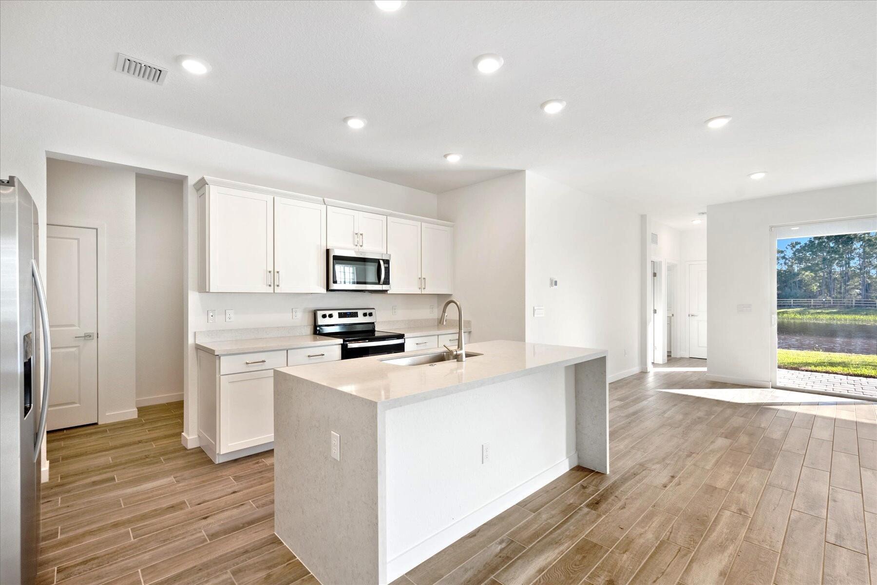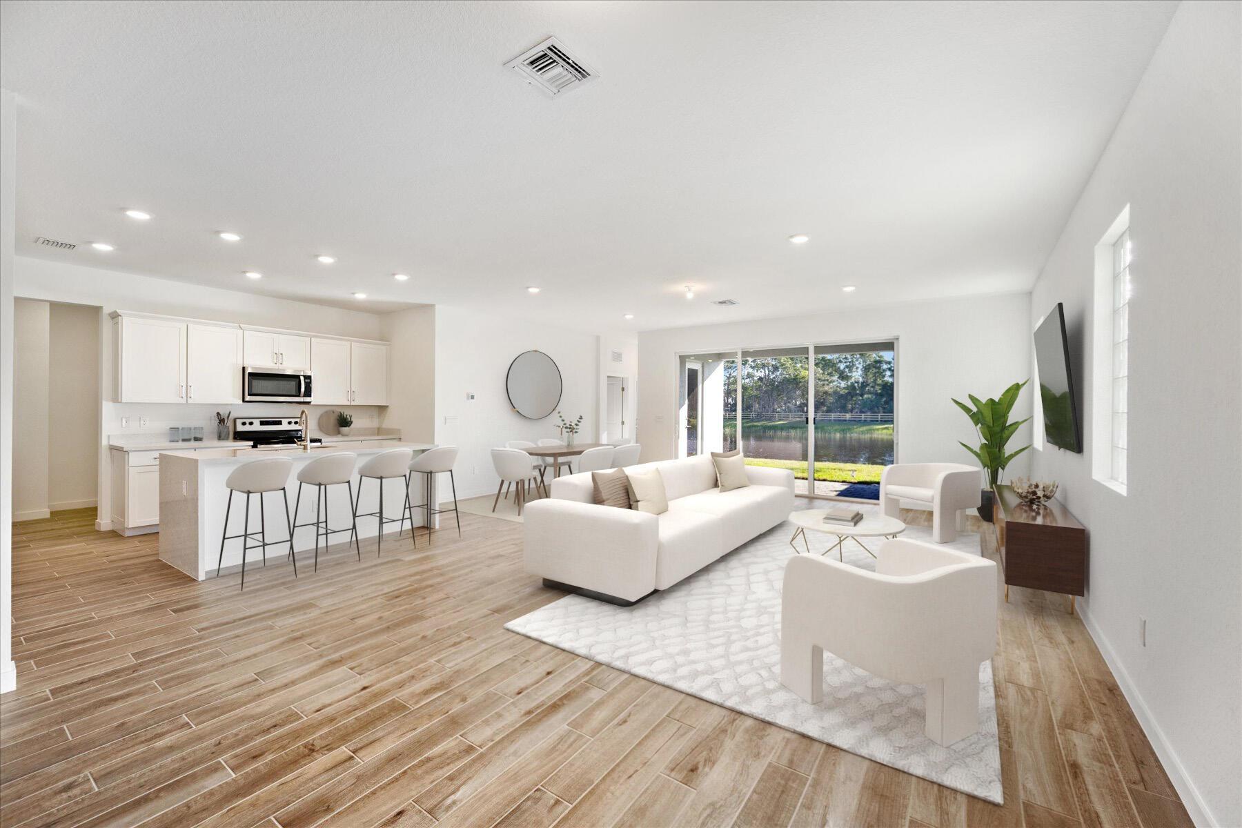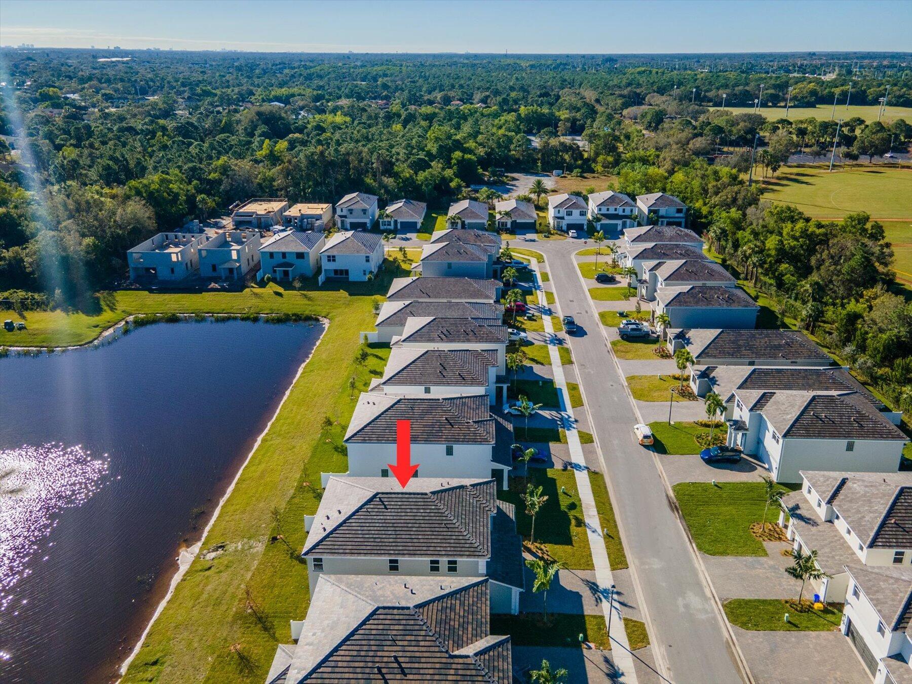 Discover the perfect blend of luxury and comfort in this stunning 2023-built, 5-bedroom, 4-bathroom single-family home, located in the family-friendly, gated community of The Reserve at Jupiter. Breathtaking Lake Views | Move-in Ready | Insurance-Friendly with New Roof & Impact Windows Step inside to an open and airy layout with elegant wood floors throughout the first floor. The modern gourmet kitchen is a chef’s dream, featuring sleek white quartz countertops, a waterfall island, stainless steel appliances, and ample storage. The first floor also includes a guest bedroom and full bath, ideal for visitors or a home office. Upstairs, 4 additional bedrooms, including a spacious primary suite with walk-in closets, dual vanities, a a separate soaking tub