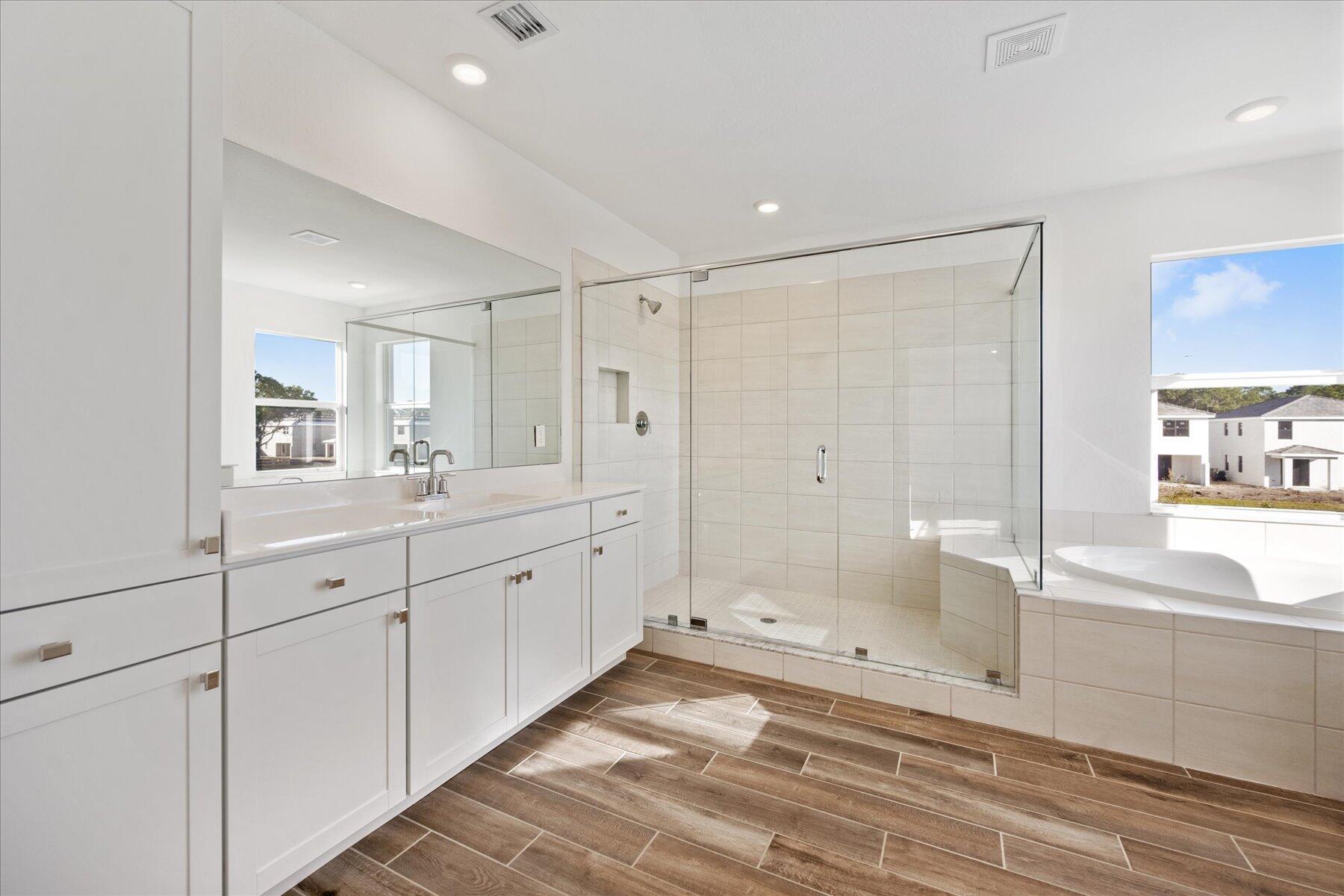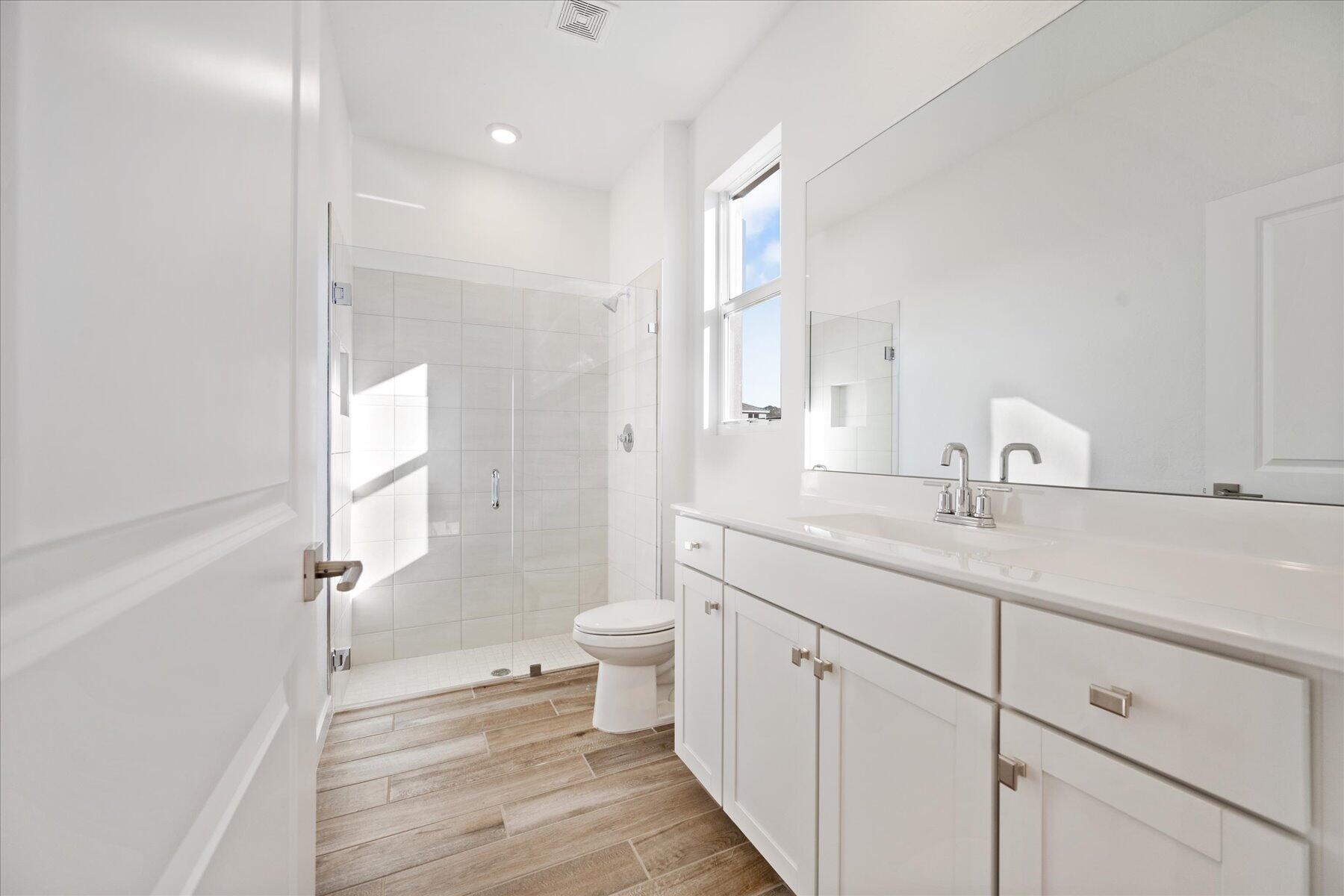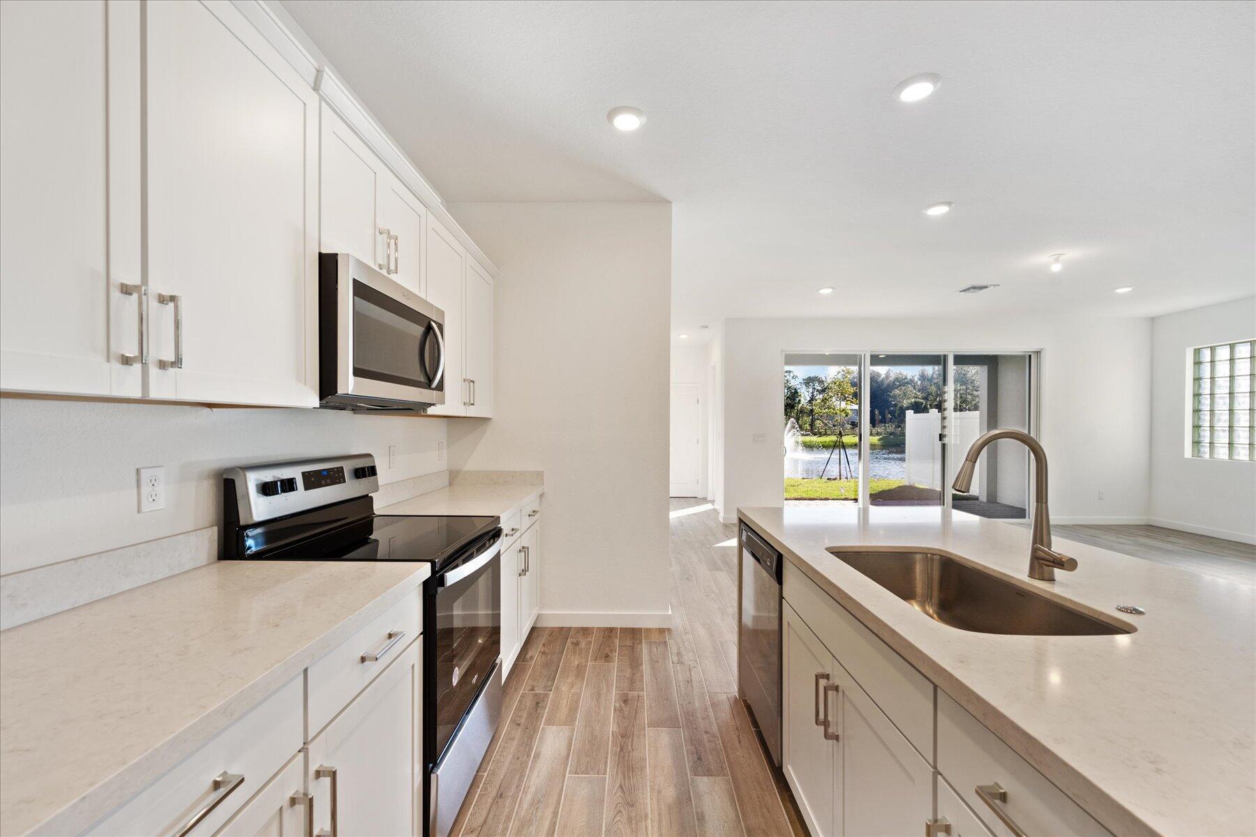 Discover the perfect blend of luxury and comfort in this stunning 2023-built, 5-bedroom, 4-bathroom single-family home, located in the family-friendly, gated community of The Reserve at Jupiter. Breathtaking Lake Views | Move-in Ready | Insurance-Friendly with New Roof & Impact Windows Step inside to an open and airy layout with elegant wood floors throughout the first floor. The modern gourmet kitchen is a chef’s dream, featuring sleek white quartz countertops, a waterfall island, stainless steel appliances, and ample storage. The first floor also includes a guest bedroom and full bath, ideal for visitors or a home office. Upstairs, 4 additional bedrooms, including a spacious primary suite with walk-in closets, dual vanities, a a separate soaking tub