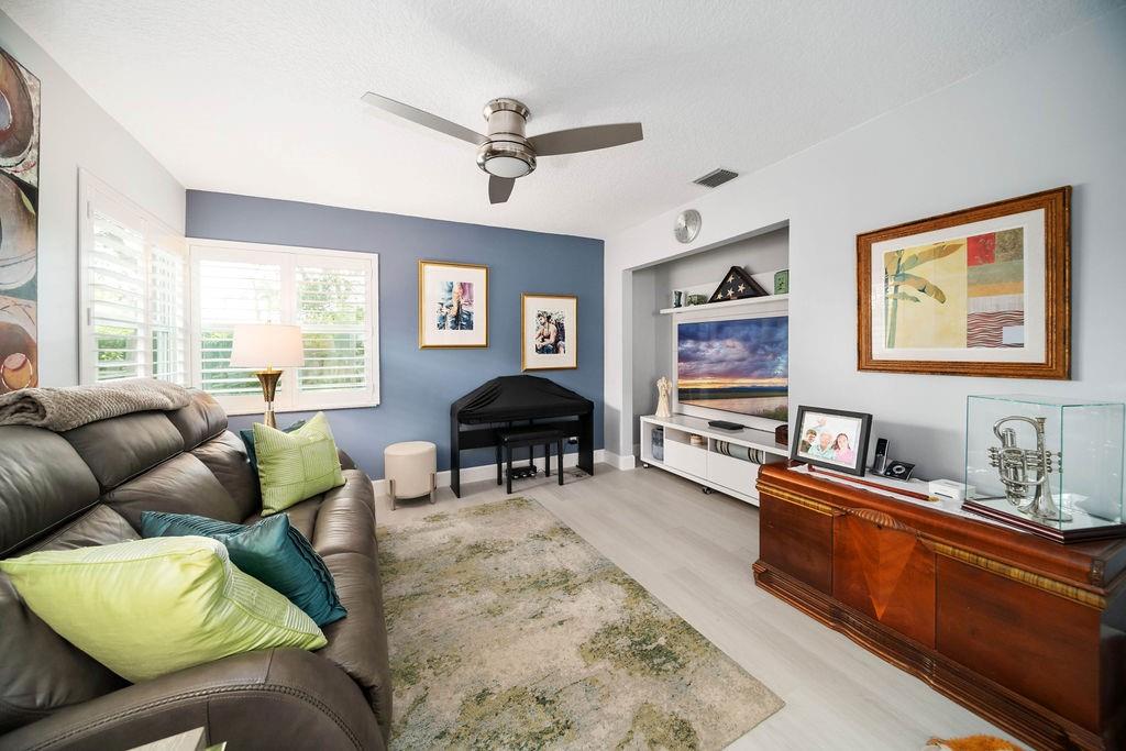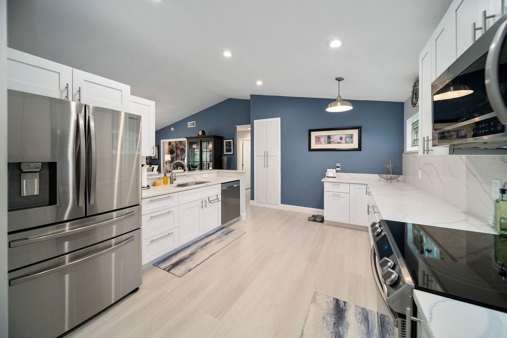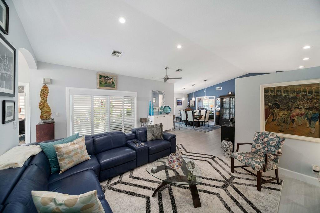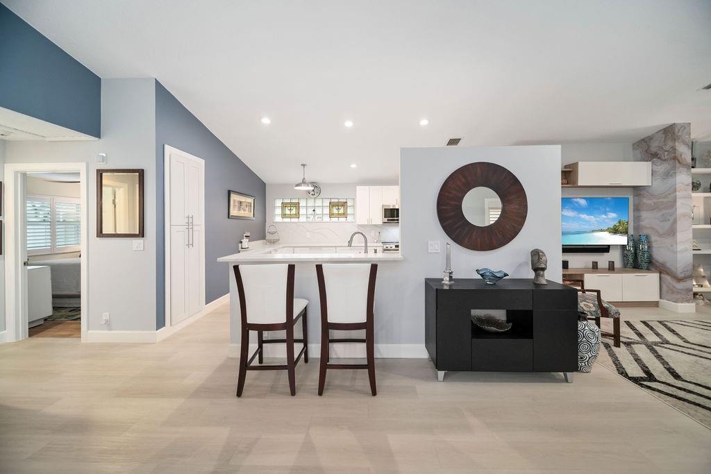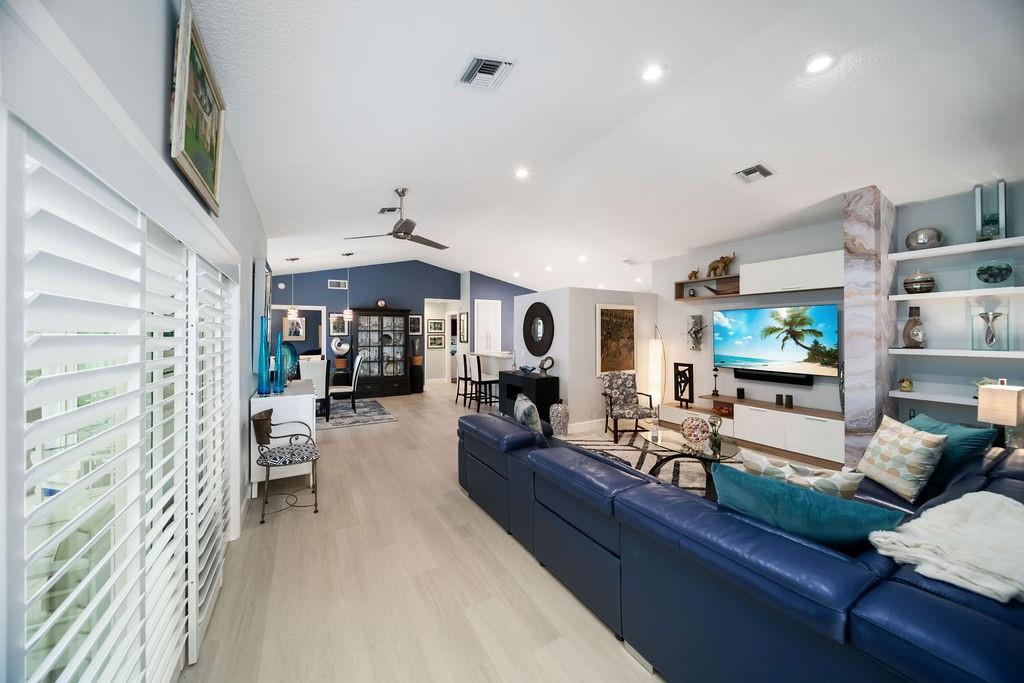 Fabulous updated 3-bed, 2-bath single-family home with 2-car garage. Features all-new impact windows/doors, stainless steel appliances, quartz countertops in kitchen and master bath, and a sleek grout-free master shower. Includes central vacuum, newer washer/dryer, 5-ton Carrier A/C, laminate in bedrooms, and vinyl throughout. Enjoy resort-style amenities: clubhouse, pool, tennis, gym, billiards, and theater. $4,000 one-time capital contribution at closing. $300 café card charged annually in July. Owner to pay assessment at closing. Clubhouse is currently going through a $25 M. renovation and is in the final phase for completion. Move-in ready and beautifully maintained!