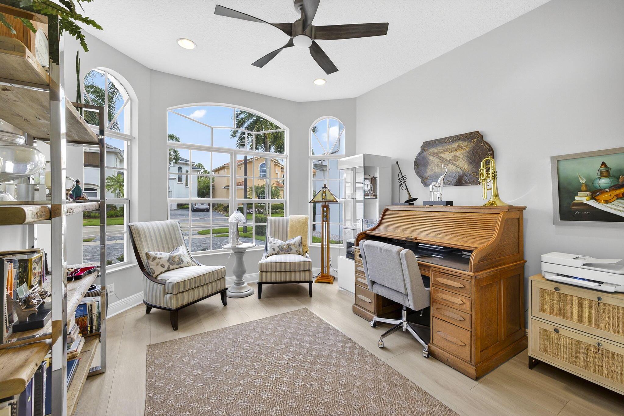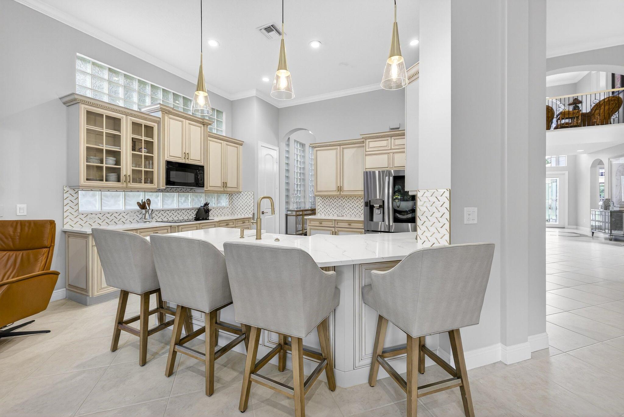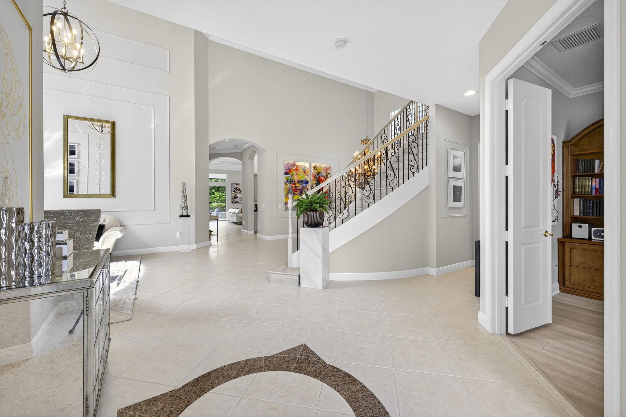 Welcome to Mizner Country Club in the heart of Delray Beach! Experience this tastefully updated estate offering 4 bedrooms and 5.5 bathrooms. Sold completely furnished excluding some artwork, primary bedroom furniture, and personal items. Recent upgrades include; new quartz countertops in the kitchen and all bathrooms, new flooring upstairs and downstairs den, resurfaced pool, outdoor kitchen and decking, new paver driveway added for extra parking, new outdoor kitchen and decking, complete paint inside and out, and much more! Massive vaulted ceilings in the family room. All bedrooms are ensuite. 3 pickleball courts, 6 tennis courts, 18 hole championship golf course. Golf Membership = $200,000 initiation. Sports Membership = $170,000 initiation.