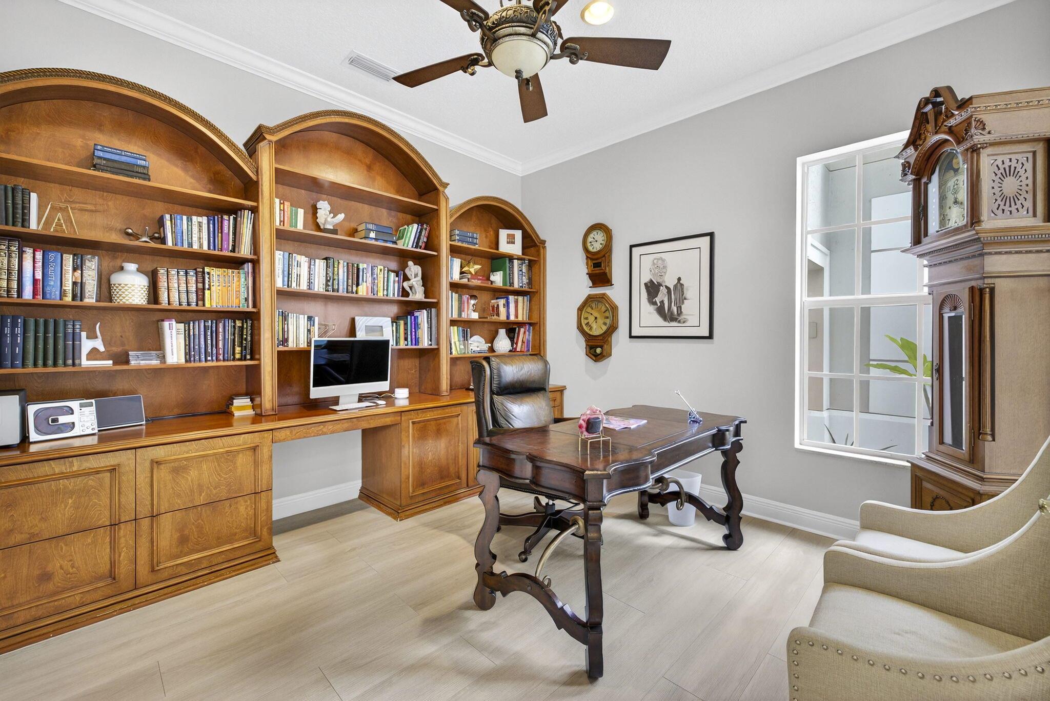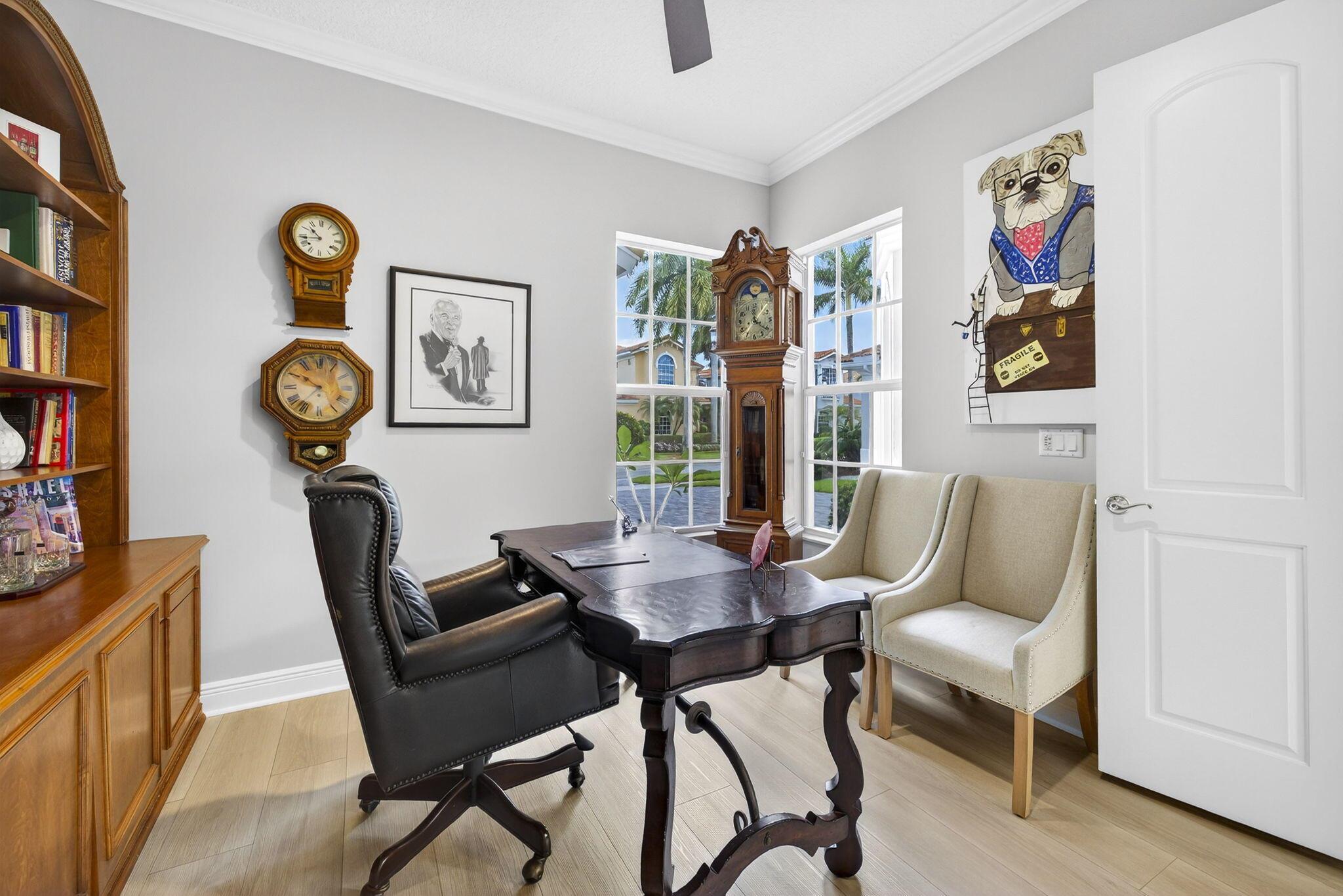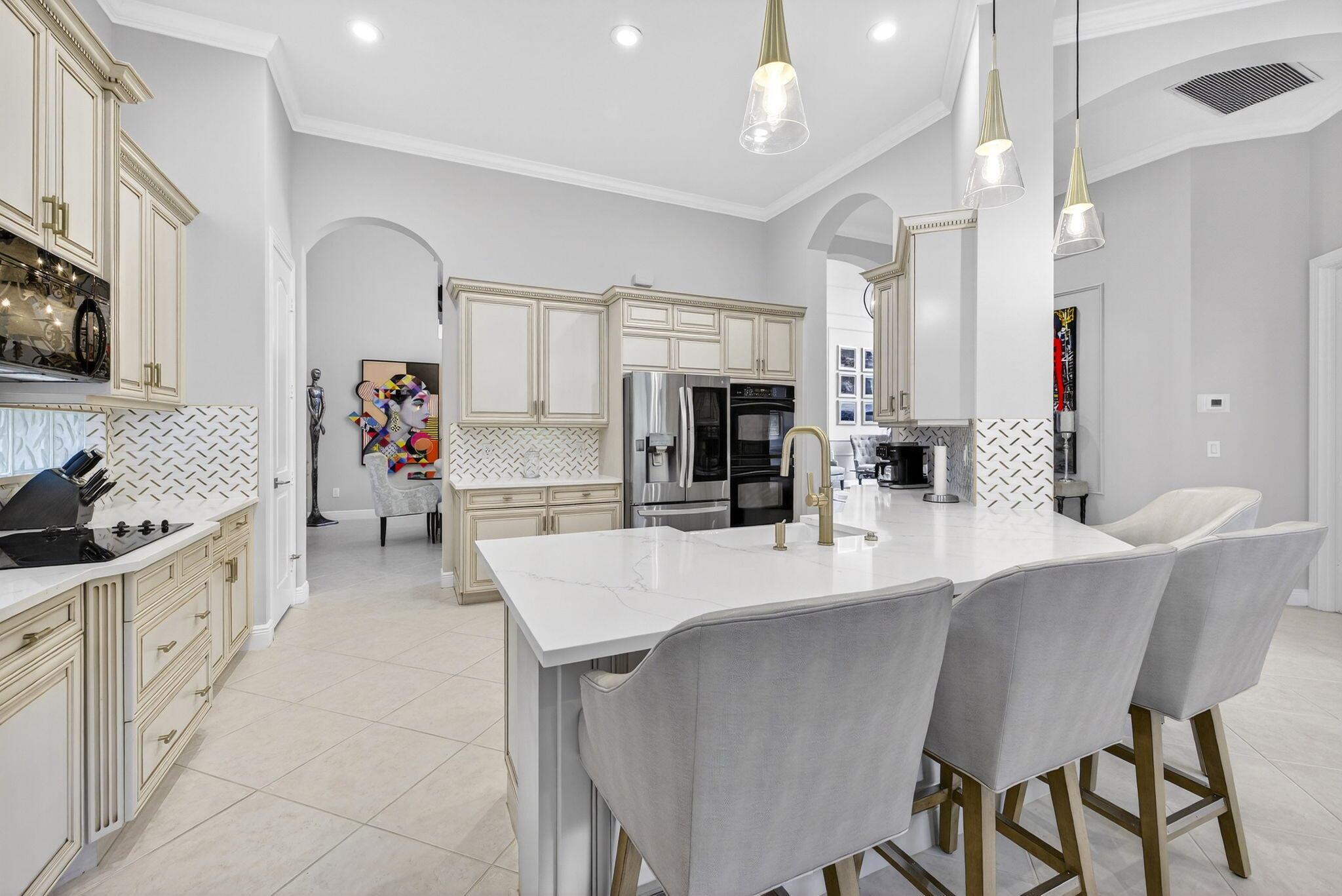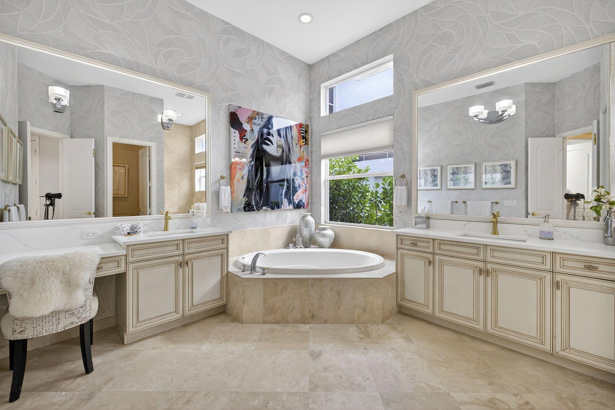 Welcome to Mizner Country Club in the heart of Delray Beach! Experience this tastefully updated estate offering 4 bedrooms and 5.5 bathrooms. Sold completely furnished excluding some artwork, primary bedroom furniture, and personal items. Recent upgrades include; new quartz countertops in the kitchen and all bathrooms, new flooring upstairs and downstairs den, resurfaced pool, outdoor kitchen and decking, new paver driveway added for extra parking, new outdoor kitchen and decking, complete paint inside and out, and much more! Massive vaulted ceilings in the family room. All bedrooms are ensuite. 3 pickleball courts, 6 tennis courts, 18 hole championship golf course. Golf Membership = $200,000 initiation. Sports Membership = $170,000 initiation.