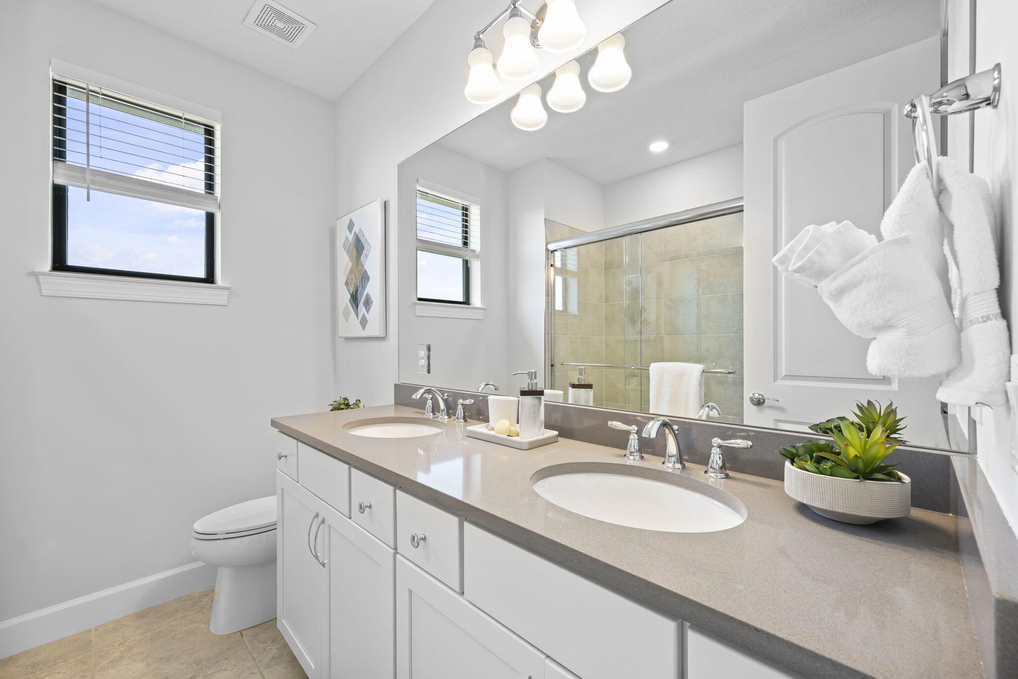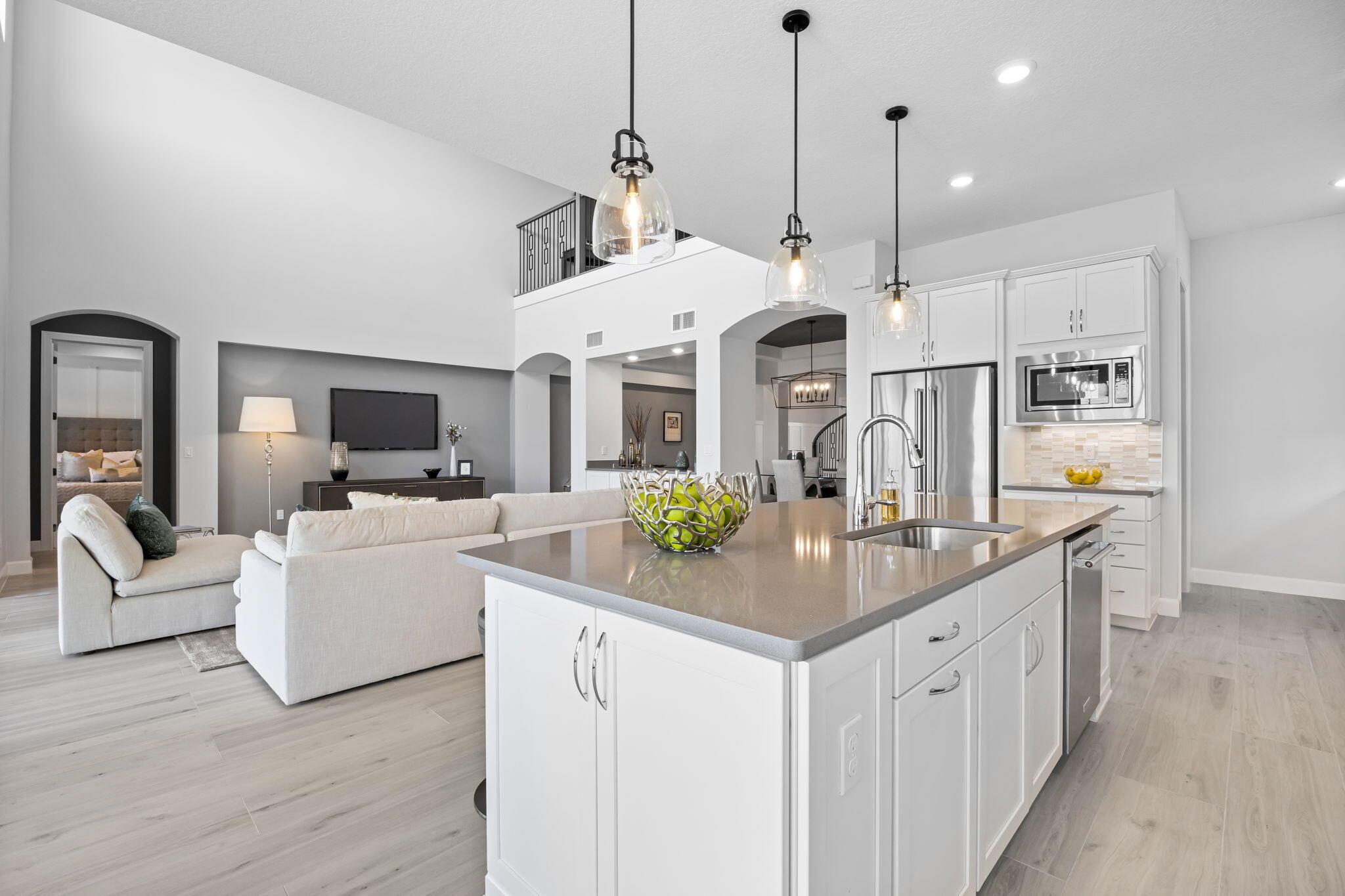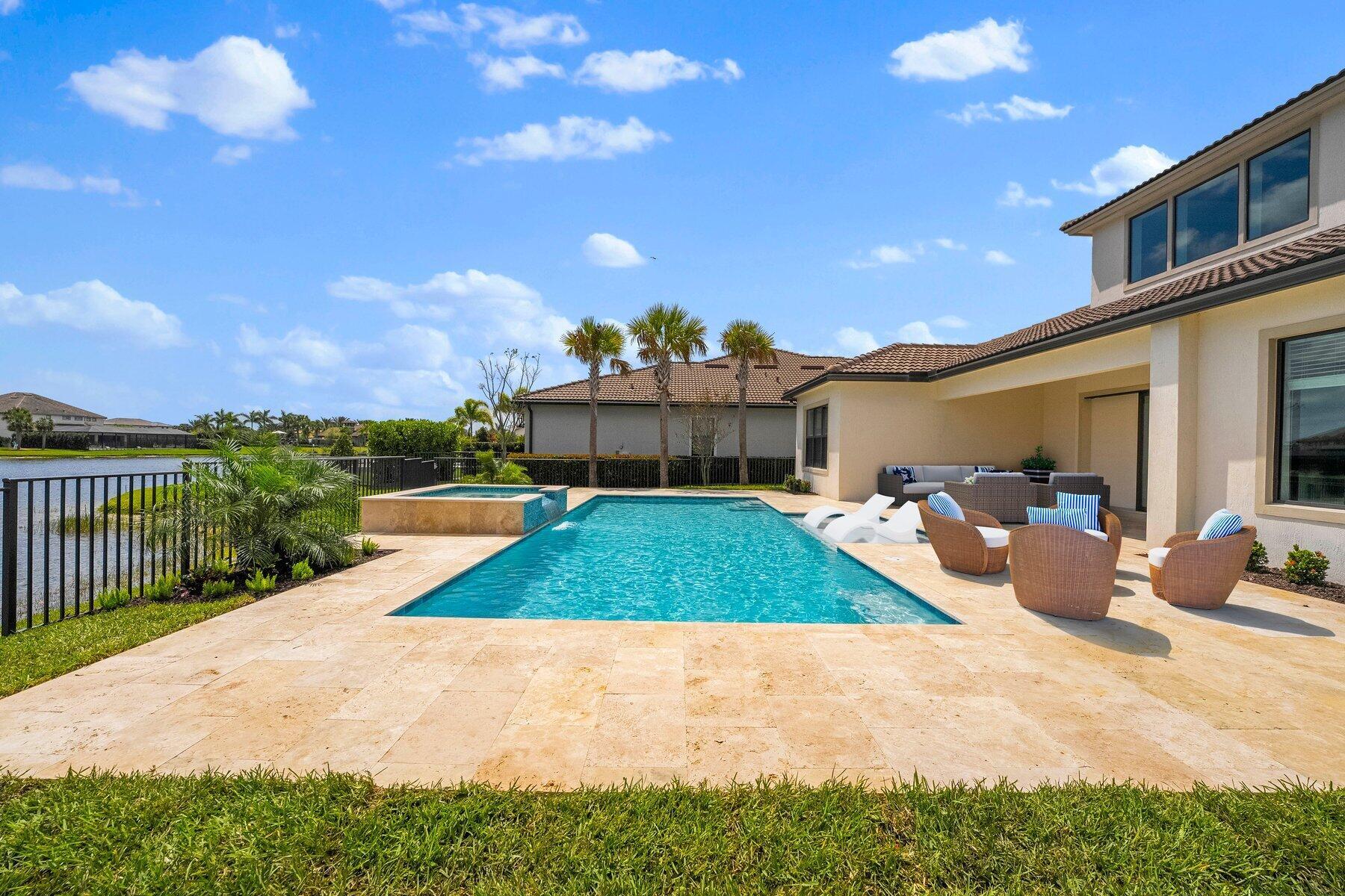 This is as close to a NEW HOME as you can find w/o being one! Built in 2021 and still having the majority of the new home builder warranties still in place, was only lived in for 3 mos! Excitingly, a brand new pool with spa has JUST been installed. This home boasts a grand entrance with winding staircase, soaring ceilings, loads of light throughout, an open floor-plan, oversized first-floor primary bedroom with sitting area, tons of upgrades and breathtaking lake views. This sunny, and spacious home is perfect for a family or empty nesters with children and grandchildren who will enjoy all this home and community has to offer. Jupiter Country Club, adjacent to this community, offers social and golf memberships.