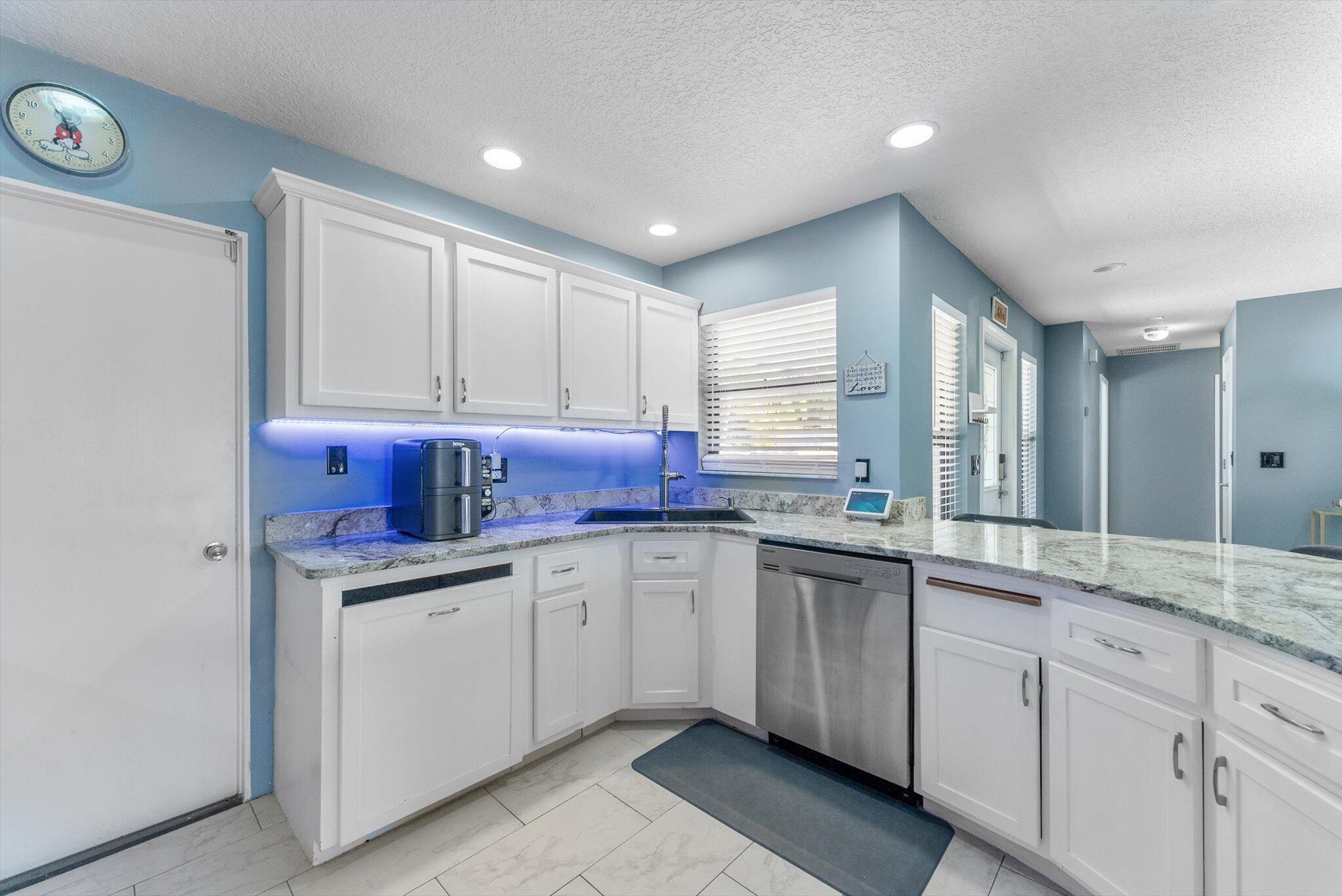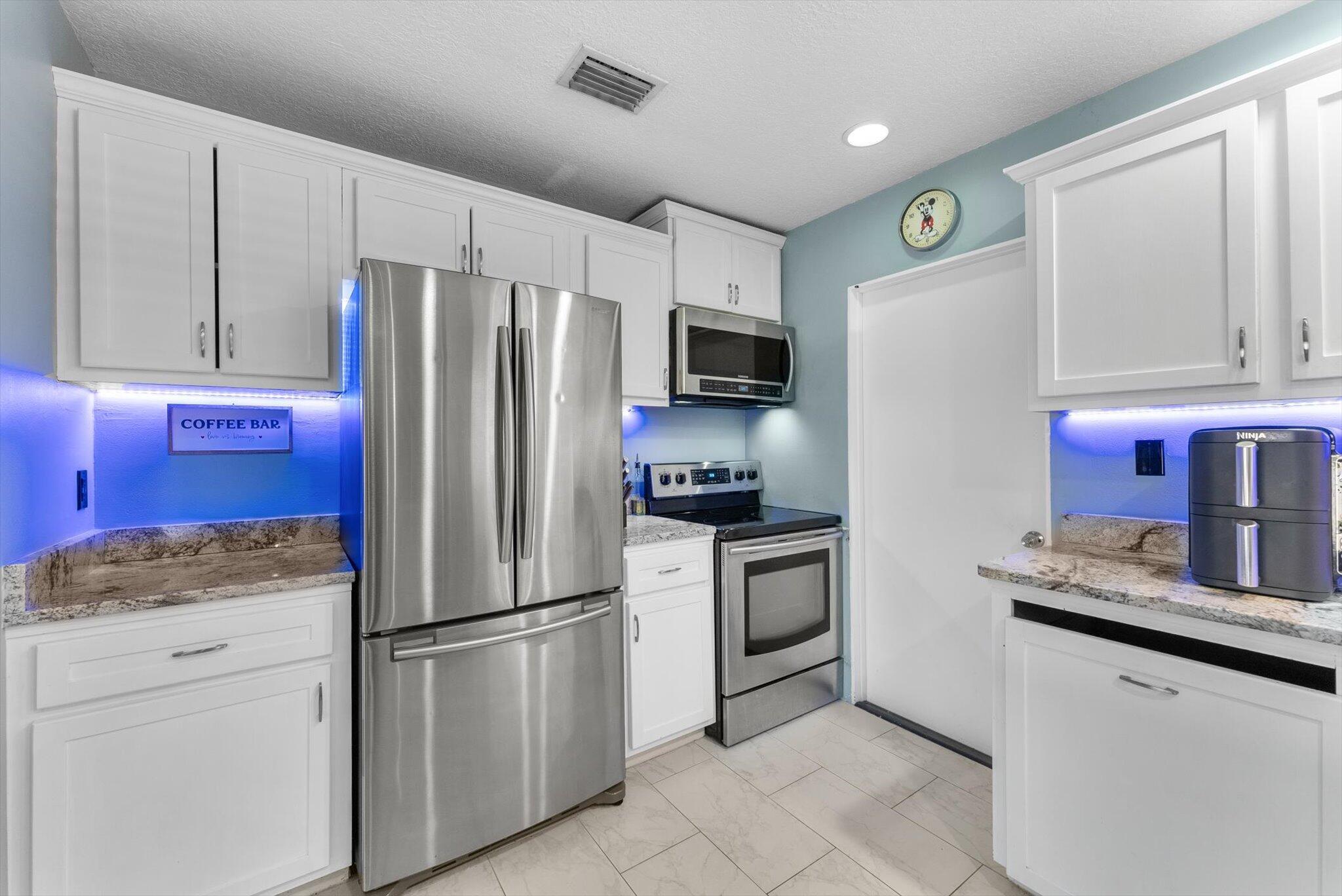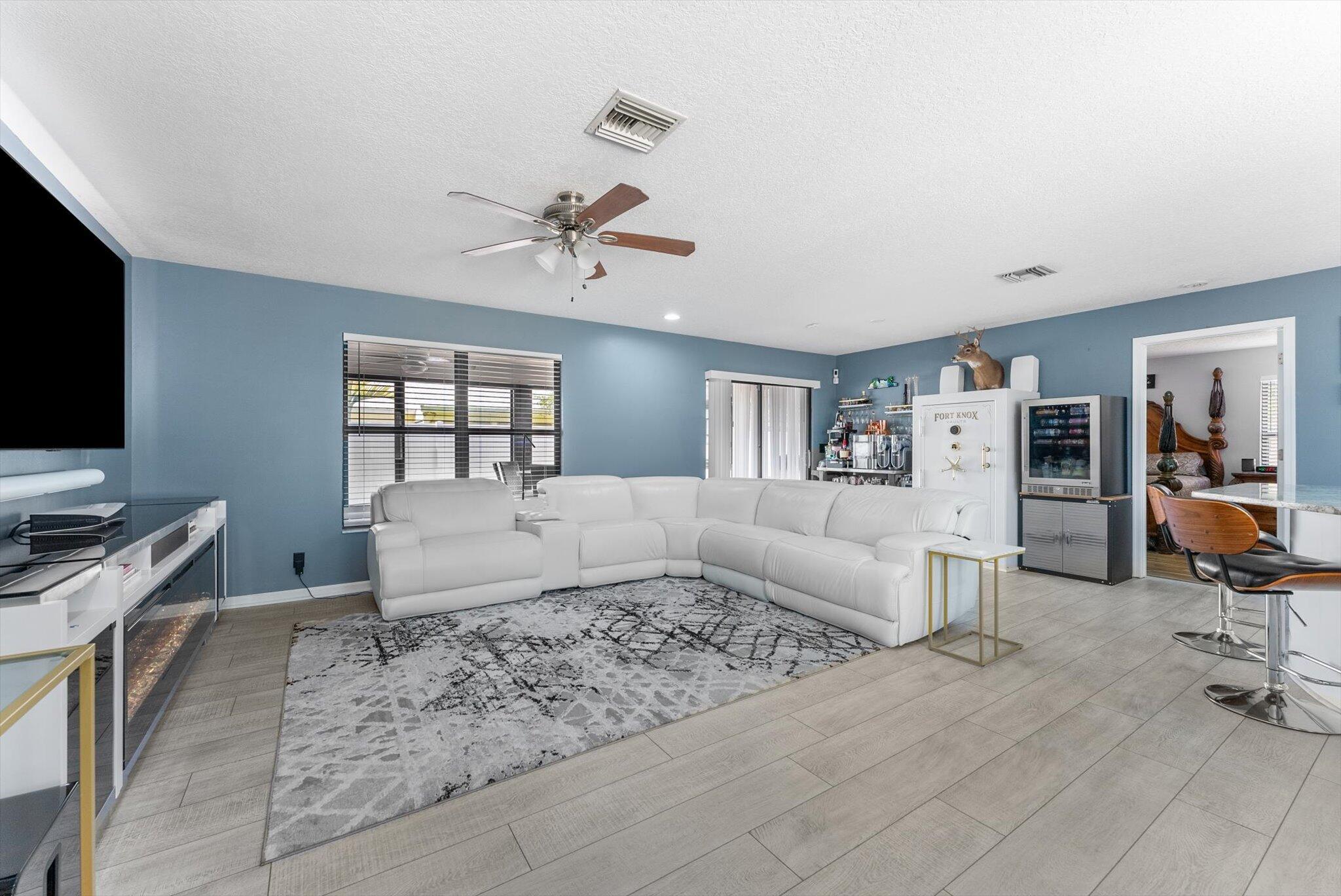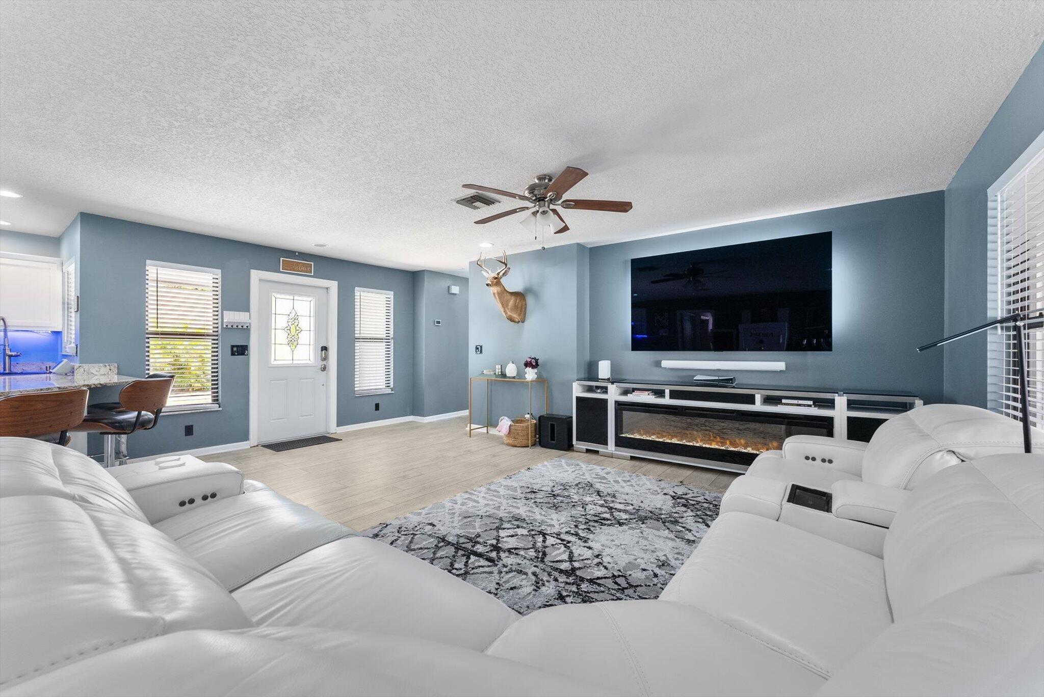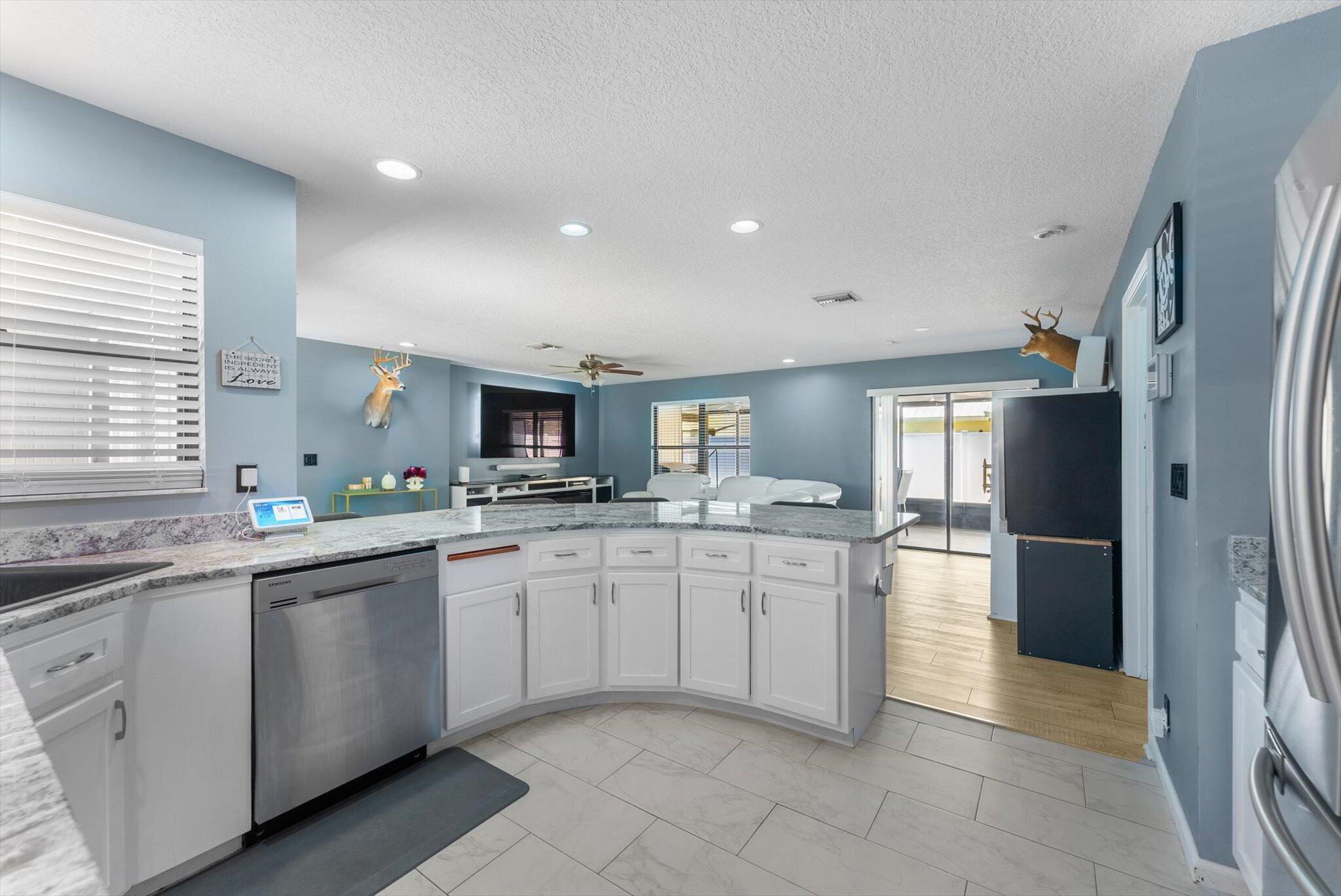 Welcome to this beautifully updated and secluded single-family home, offering three bedrooms and two bathrooms, thoughtfully situated on over a quarter-acre lot with serene lake views and ample outdoor space. This property is ideal for privacy, flexibility, and modern living. The dual driveways provide generous parking space for multiple vehicles, including an RV or boat. In addition, the attached two-car garage is fully air-conditioned and offers extra room for a workshop or additional storage, enhancing both functionality and comfort. Home offers Vivint security camera system. Upon entering through the newly installed, stylish front door, you’ll be greeted by a bright and open interior layout. Much of the home features stunning new flooring