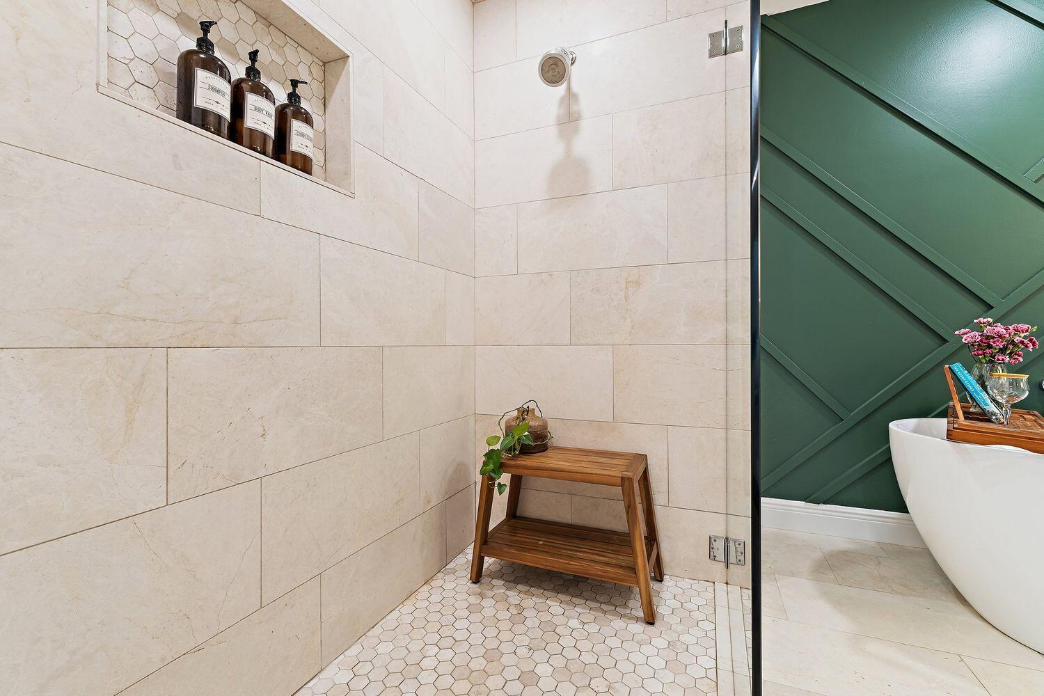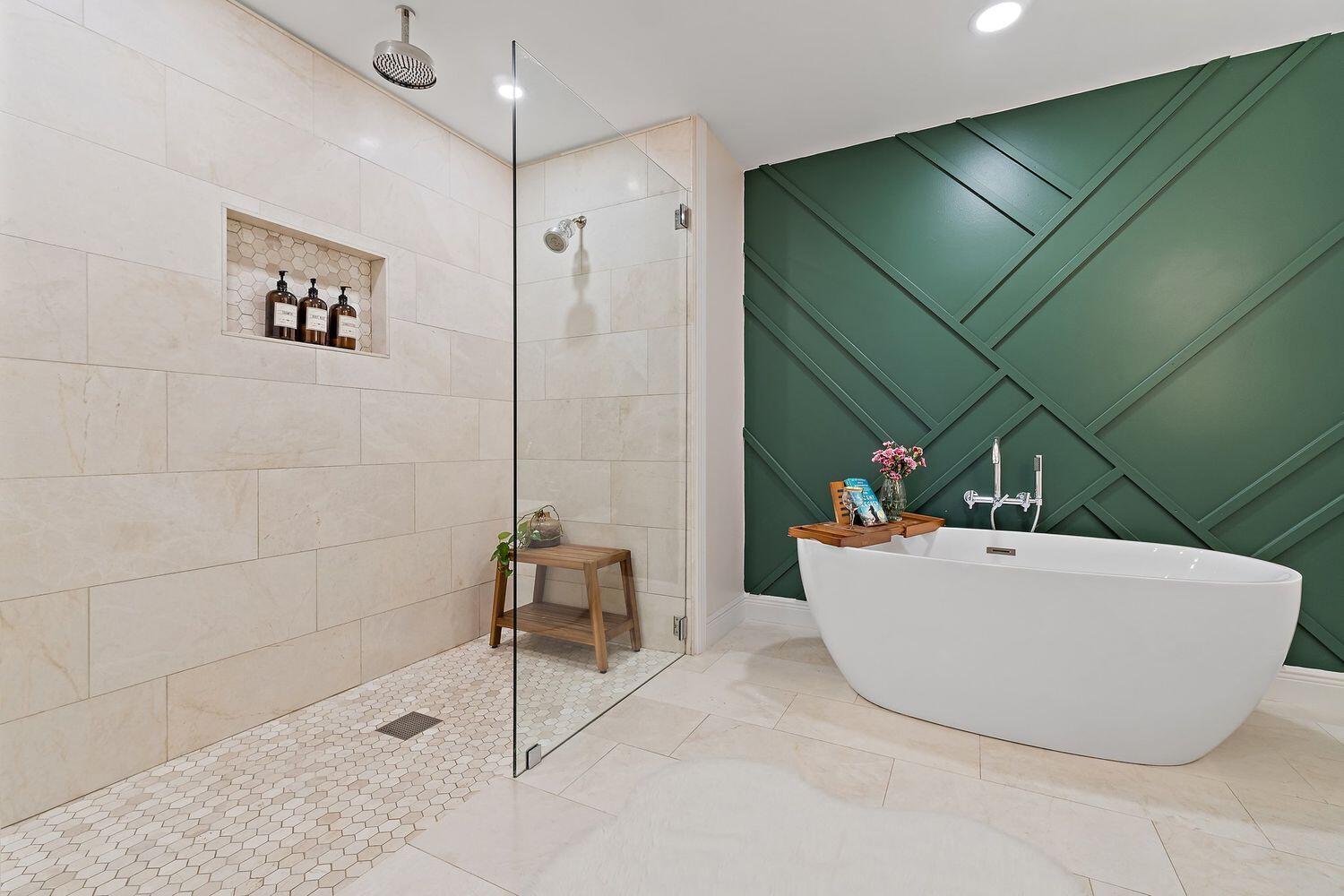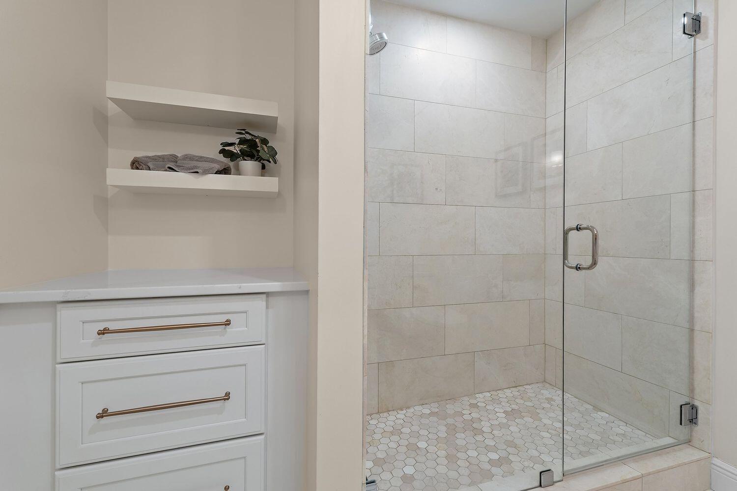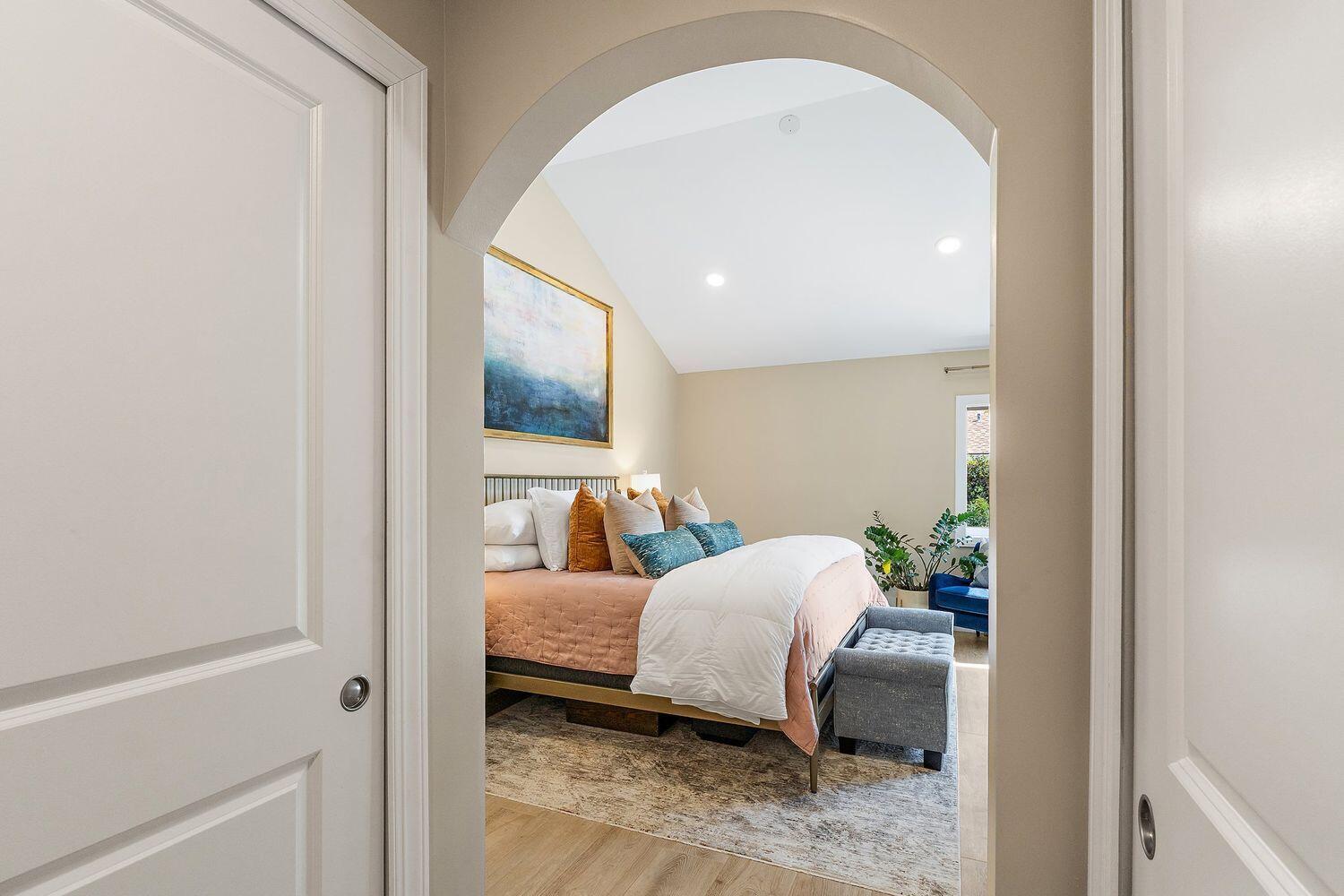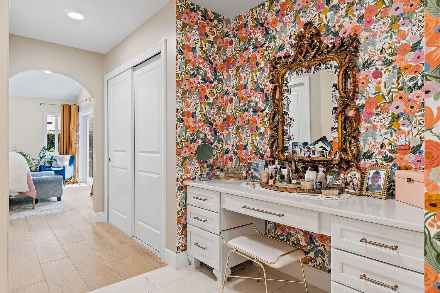 Feel the breeze! Highly desirable, southeast corner property in prime location in the Bluffs and close to beautiful Jupiter Beach. Embark on a delightful journey through this beautifully renovated home where subtle design choices make all the difference. The redesigned kitchen provides for a more formal arched entry leading to an open floor plan with serene views of the tropical landscape and beckoning pool. Enjoy the sophistication of Bosch appliances, white cabinetry with smart storage solutions, a custom hood, and stunning mosaic marble backsplash and counters. The accent shelving and brass details add a touch of understated luxury. Impact glass, new AC 2023, stunning salt-chlorinated pool w/sun shelf + sheer descent water feature completed in 2024, Oak wood-plank tile floors, vaulted