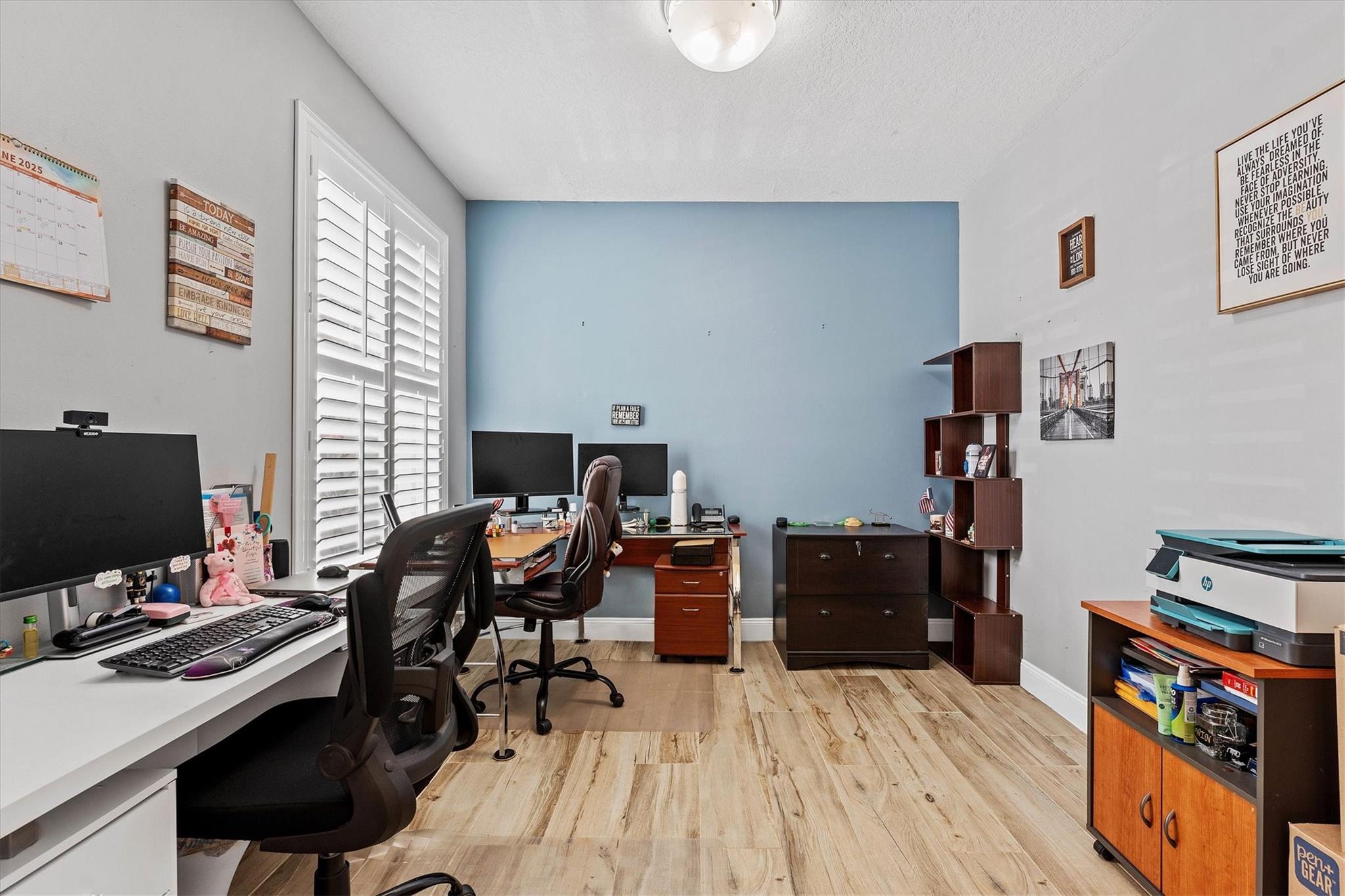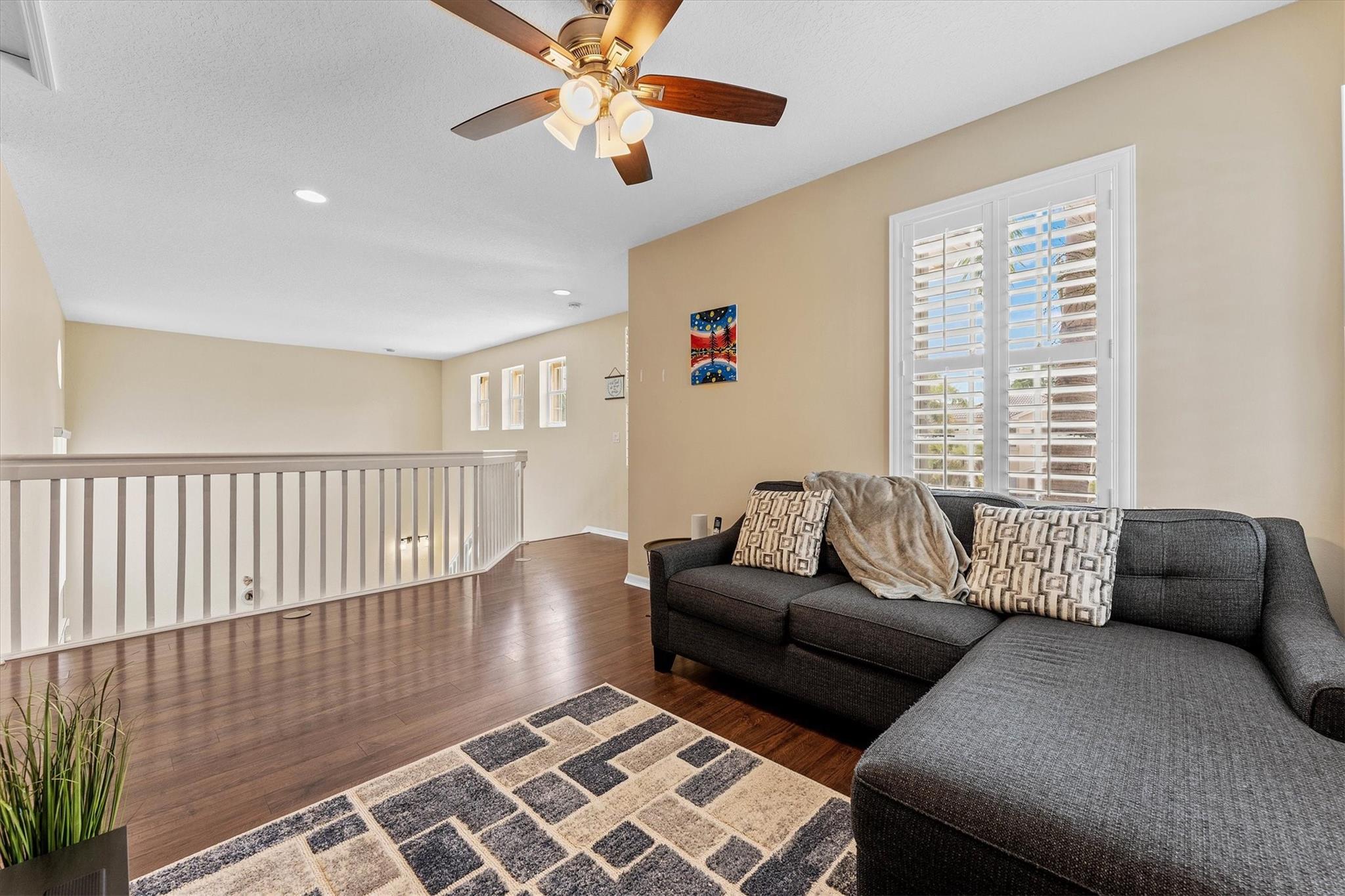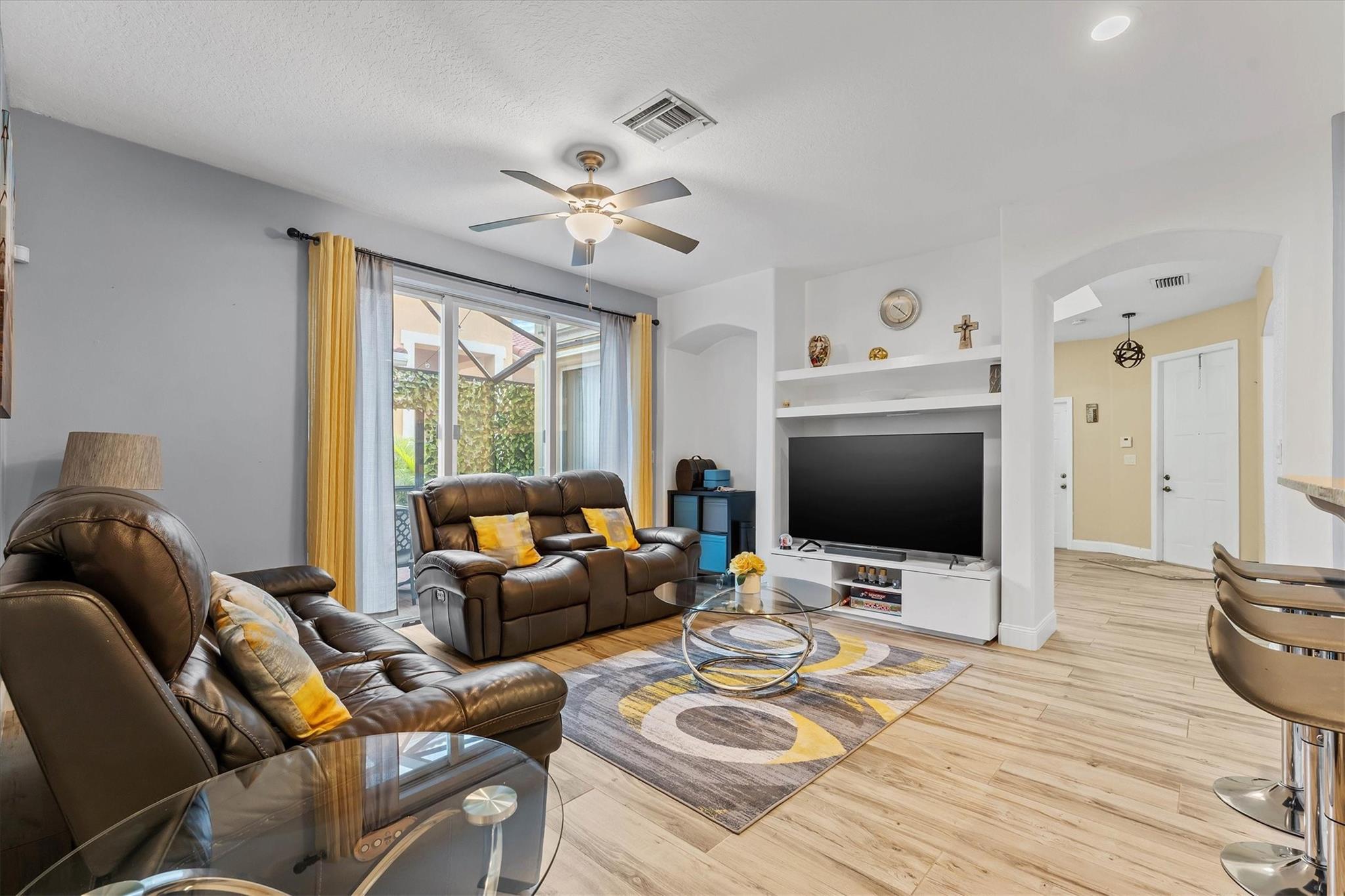 Welcome to Heron Bay! This beautifully maintained 3-bed, 2.5-bath home offers soaring ceilings, wood-look tile floors, and an open kitchen overlooking the family room—perfect for entertaining. The first-floor primary suite features a flex space ideal for a home office, lounge, or dining area. Upstairs you’ll find two spacious bedrooms and a large loft that works great as a movie room, play area, or studio. Enjoy outdoor living with a screened patio and low-maintenance backyard. The 2-car garage adds convenience. Located near top-rated schools, parks, and shopping. Community perks include 2 fitness centers, 2 pools, hot tub, tennis, pickleball, basketball, playground, clubhouse with classes, meeting hall, grilling area, cable, and front lawn care. School bus picks up at the entrance!
