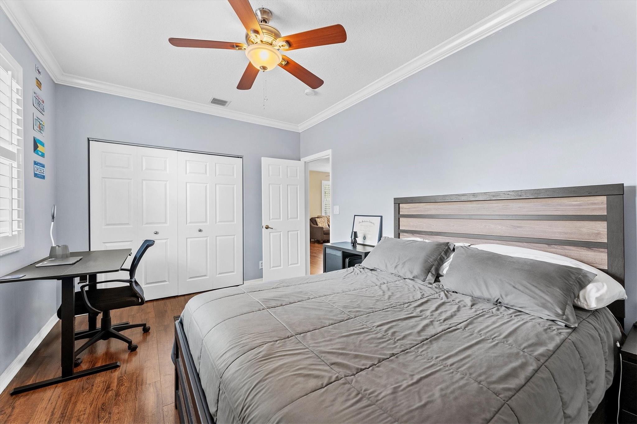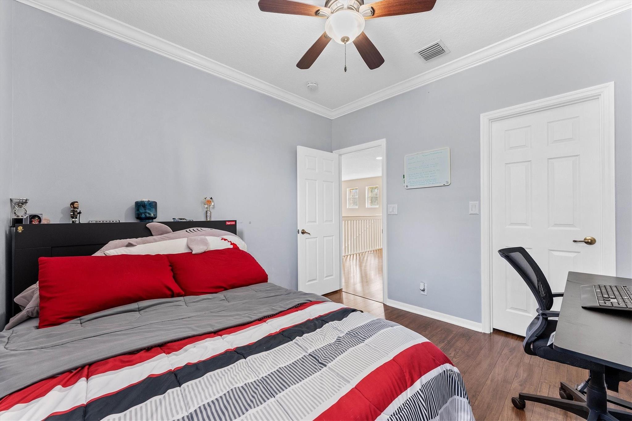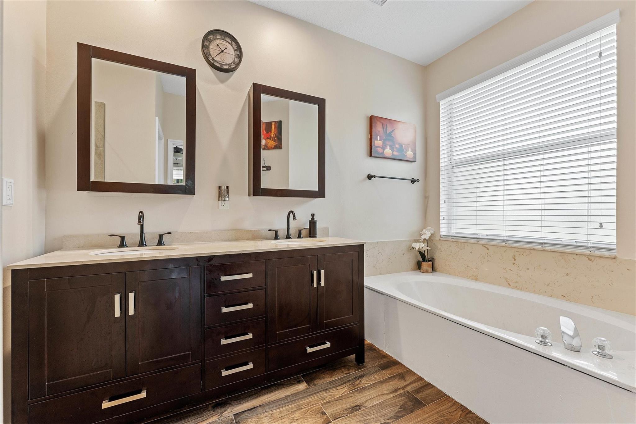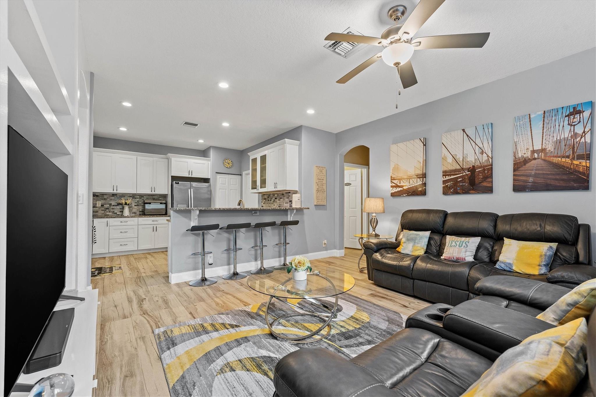 Welcome to Heron Bay! This beautifully maintained 3-bed, 2.5-bath home offers soaring ceilings, wood-look tile floors, and an open kitchen overlooking the family room—perfect for entertaining. The first-floor primary suite features a flex space ideal for a home office, lounge, or dining area. Upstairs you’ll find two spacious bedrooms and a large loft that works great as a movie room, play area, or studio. Enjoy outdoor living with a screened patio and low-maintenance backyard. The 2-car garage adds convenience. Located near top-rated schools, parks, and shopping. Community perks include 2 fitness centers, 2 pools, hot tub, tennis, pickleball, basketball, playground, clubhouse with classes, meeting hall, grilling area, cable, and front lawn care. School bus picks up at the entrance!