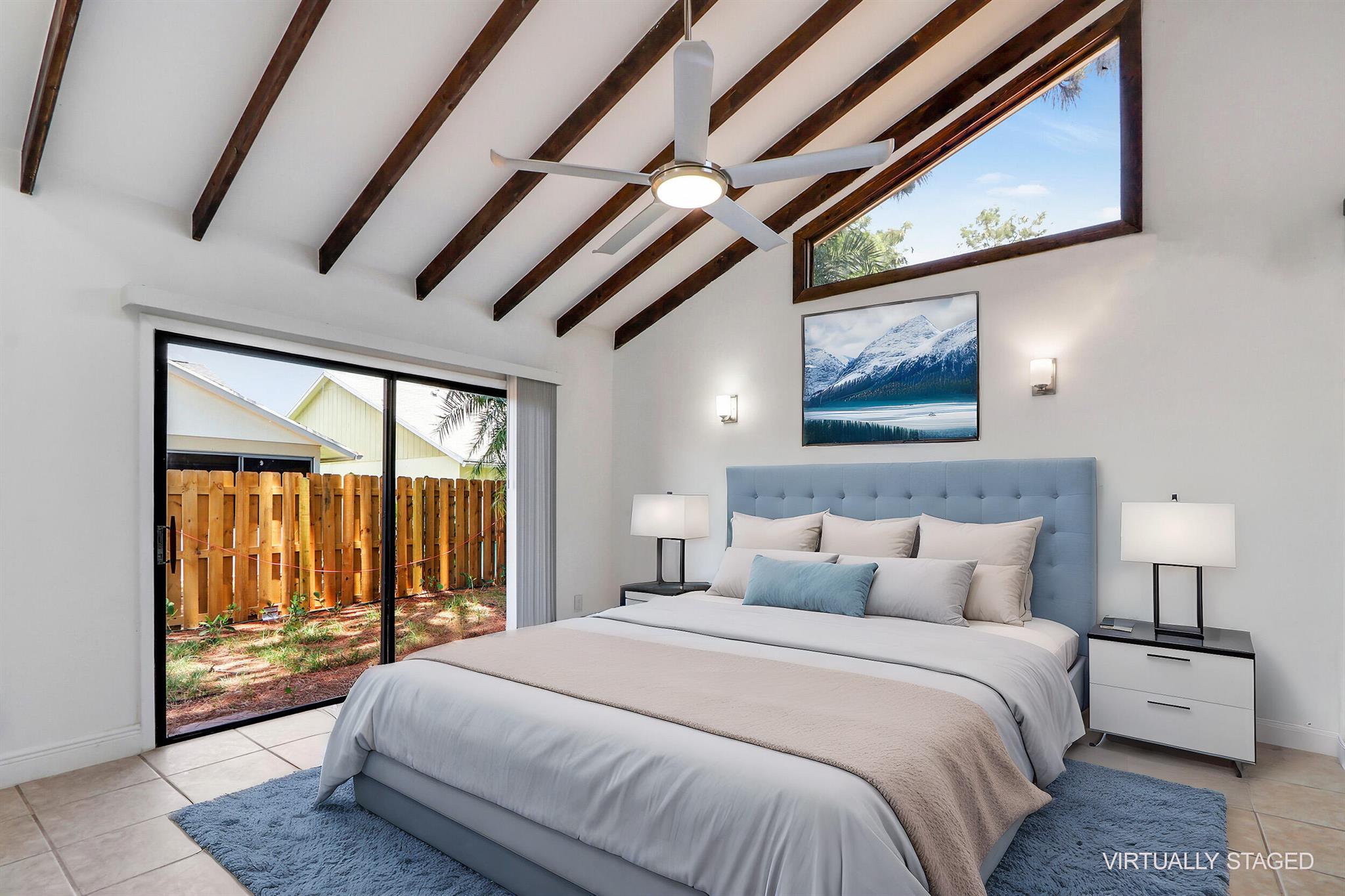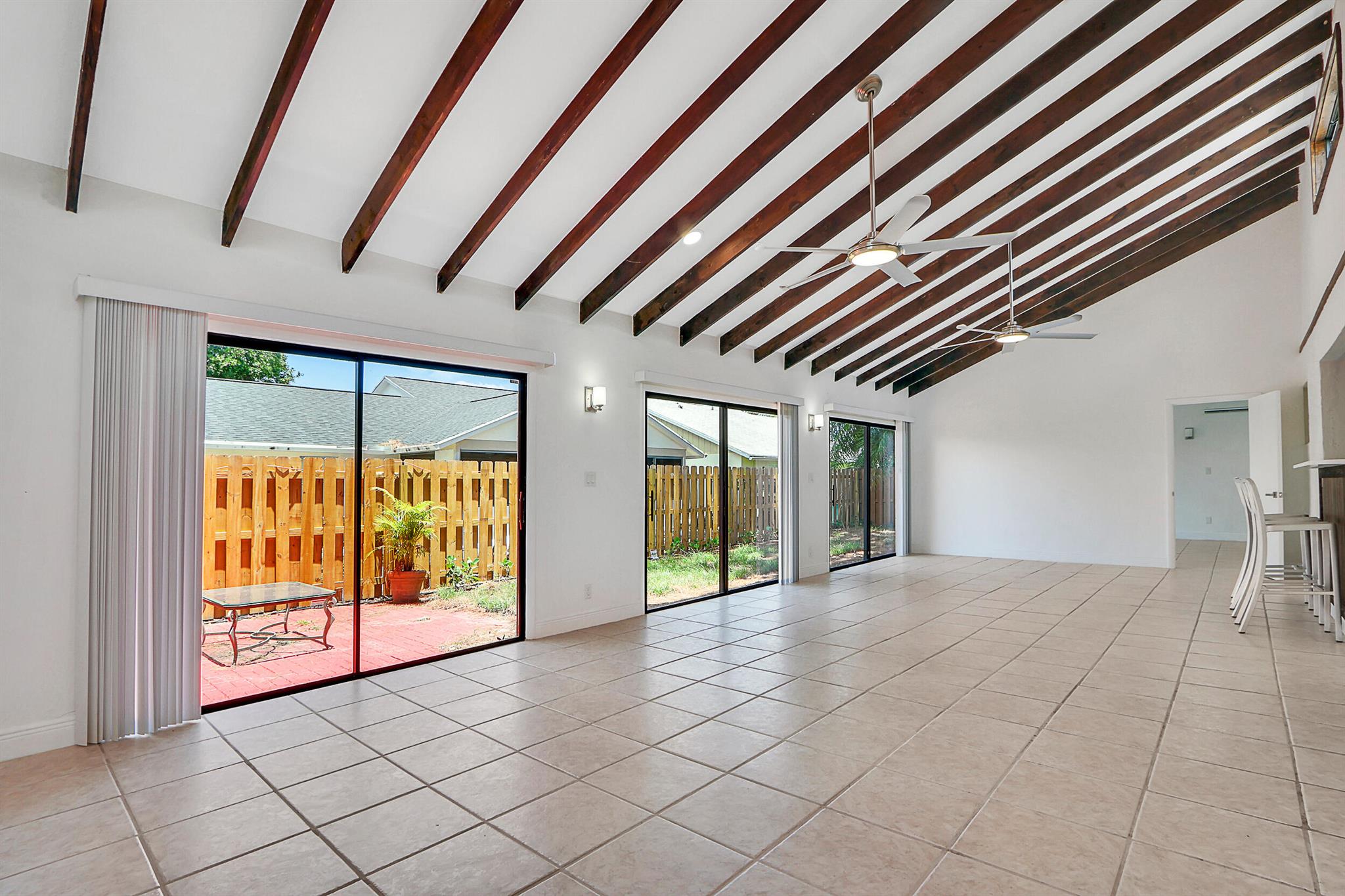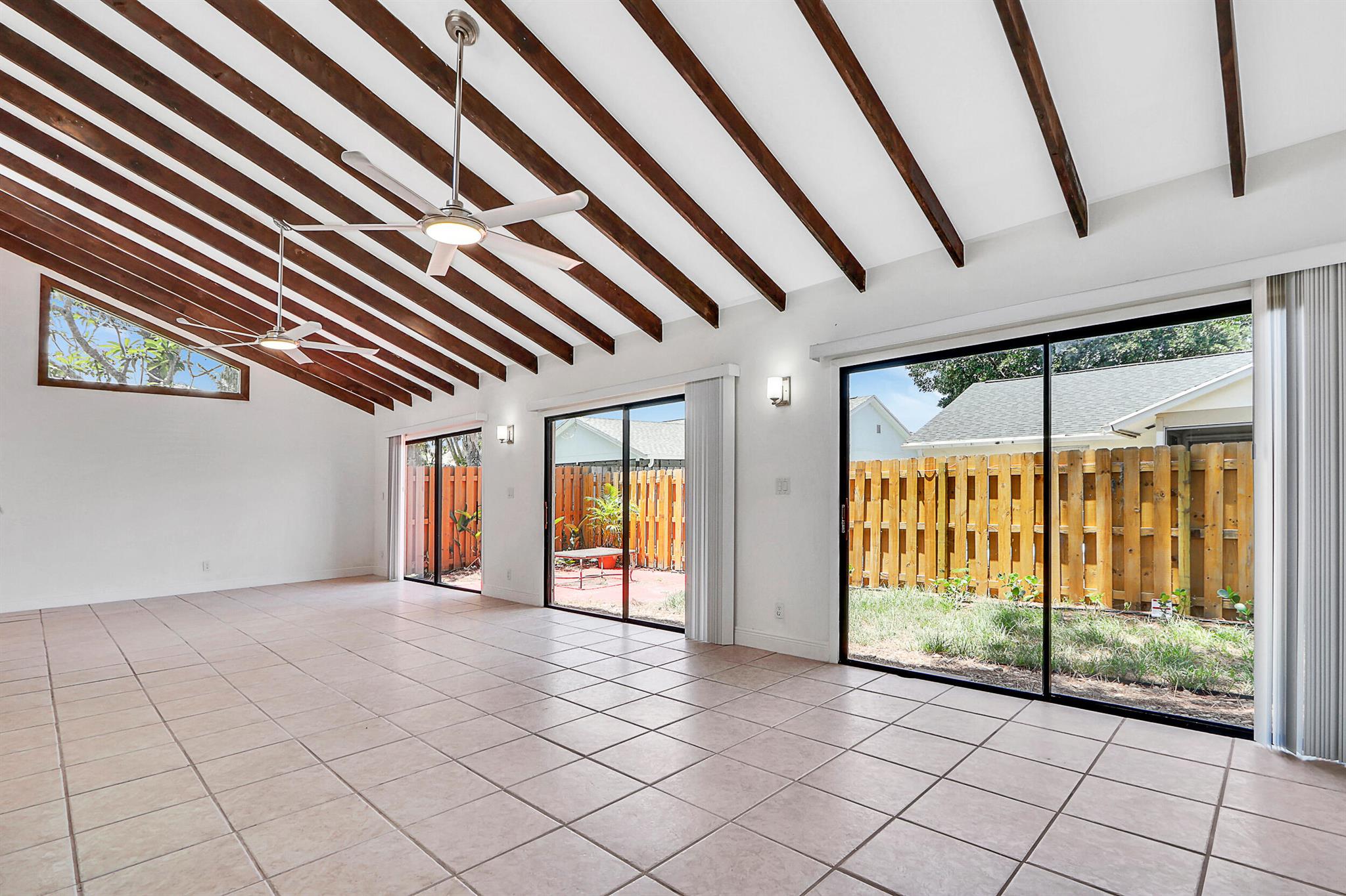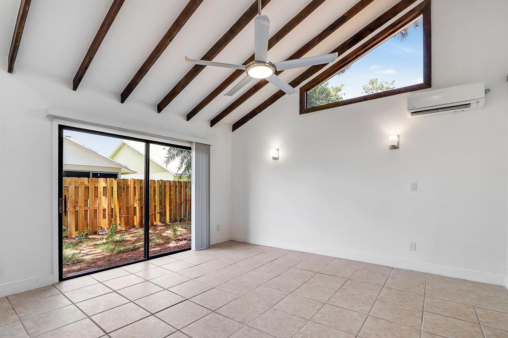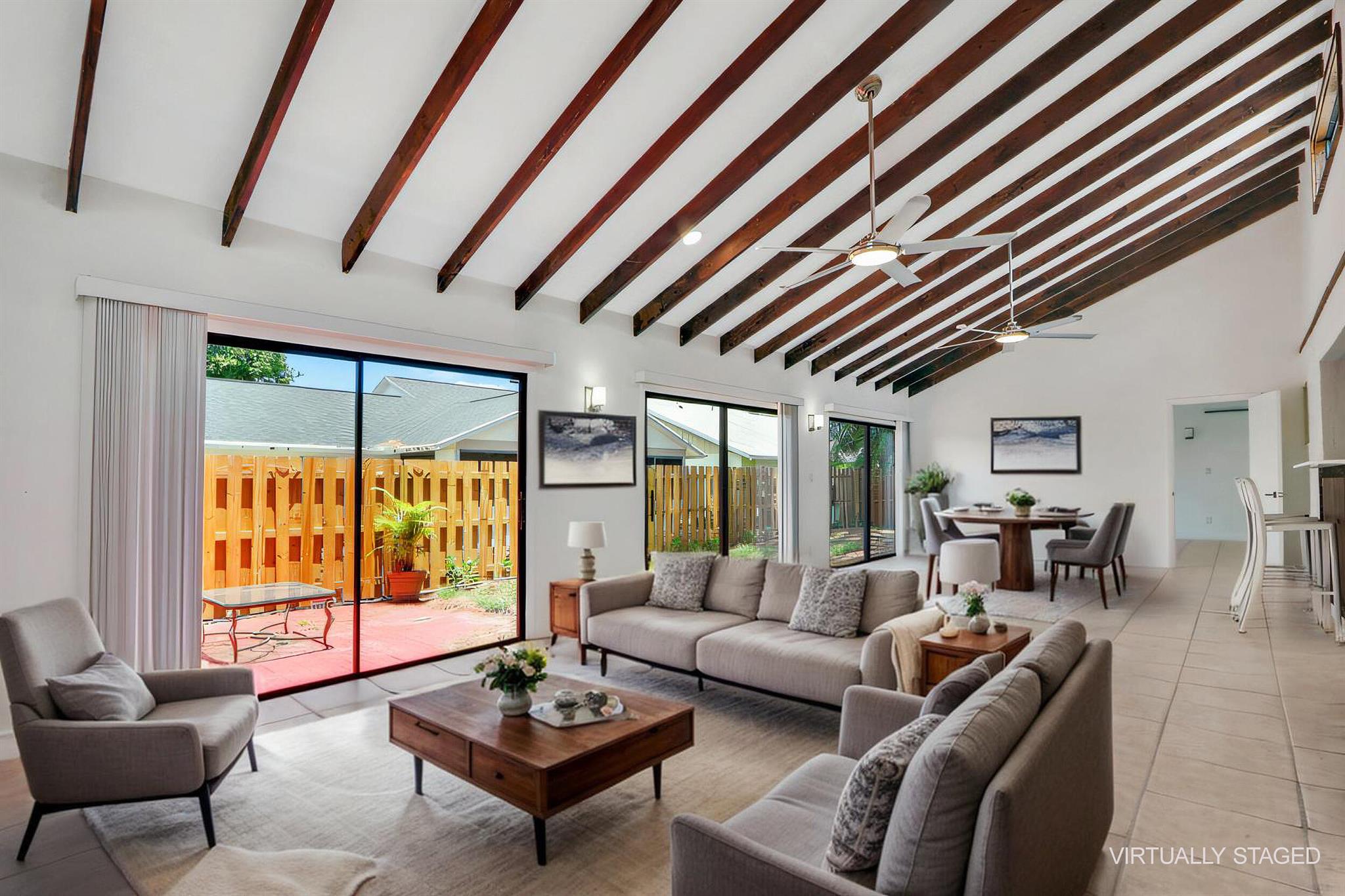 Fully renovated 4BR/2BA CBS home in central Jupiter. All-new electrical & plumbing, wood-look ceramic tile floors, exposed wood beams. The open kitchen with large island, quartz counters & new stainless appliances flows nicely to living/dining areas. Split plan; light-filled primary suite, features walk-in closet & private patio access. Fully fenced yard & an oversized 2-car garage. Deeded membership to nearby community pool & tennis courts conveys. Move-in ready, all sizes approx.