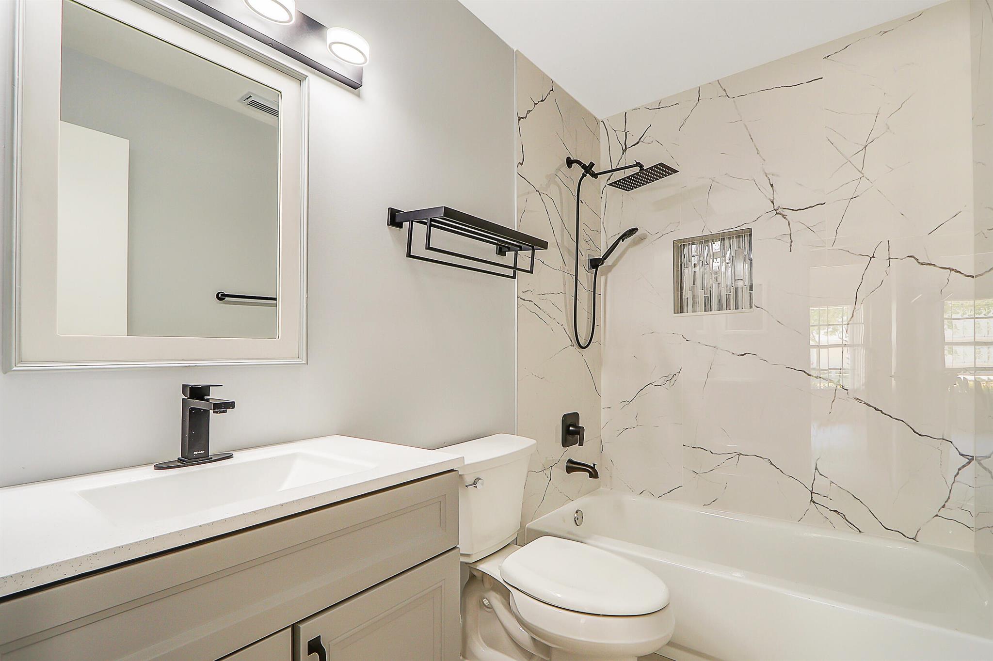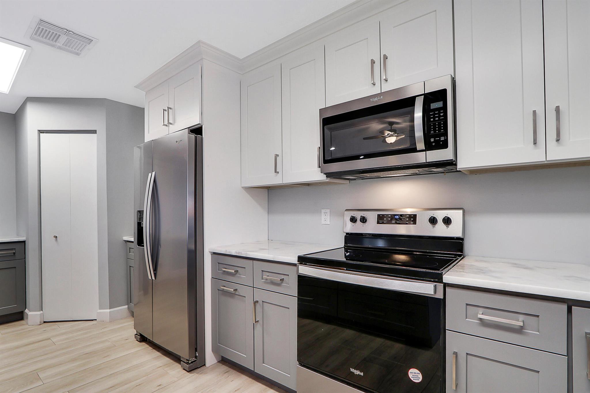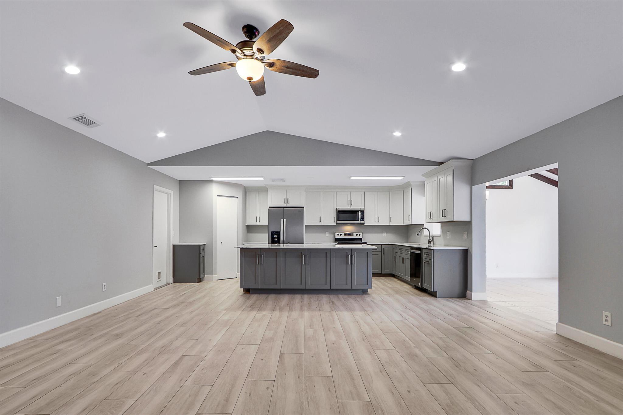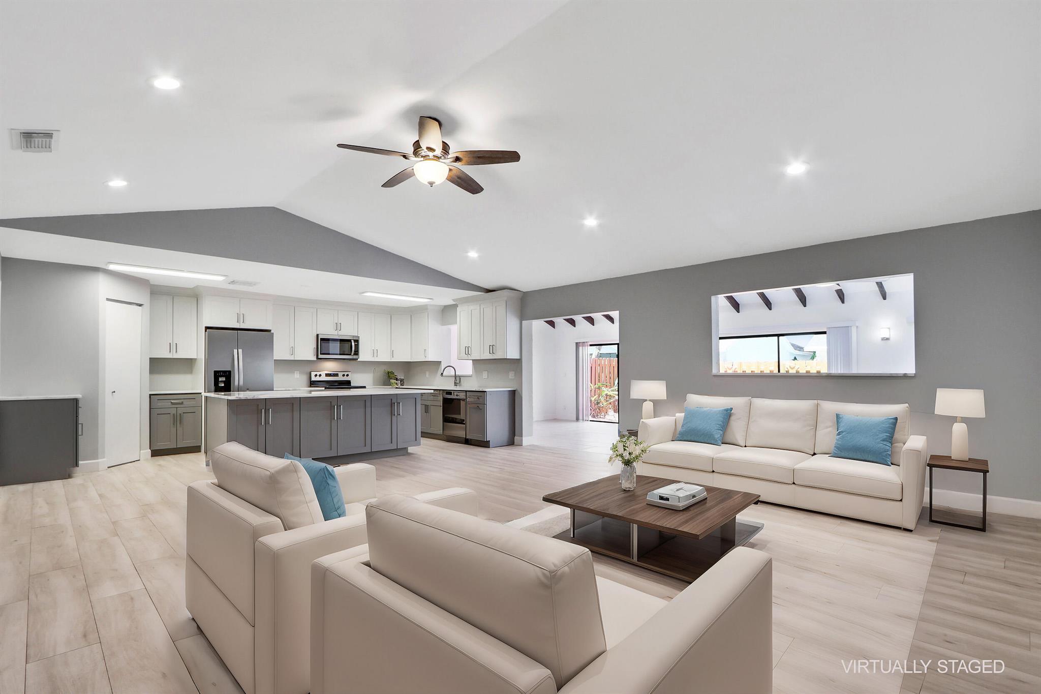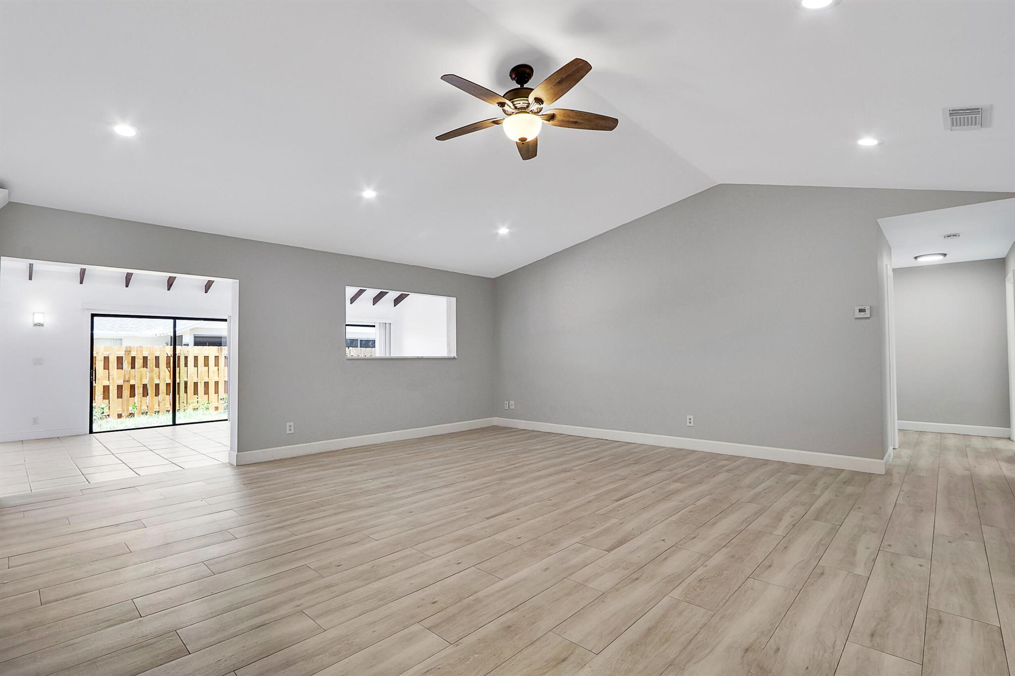Fully renovated 4BR/2BA CBS home in central Jupiter. All-new electrical & plumbing, wood-look ceramic tile floors, exposed wood beams. The open kitchen with large island, quartz counters & new stainless appliances flows nicely to living/dining areas. Split plan; light-filled primary suite, features walk-in closet & private patio access. Fully fenced yard & an oversized 2-car garage. Deeded membership to nearby community pool & tennis courts conveys. Move-in ready, all sizes approx.