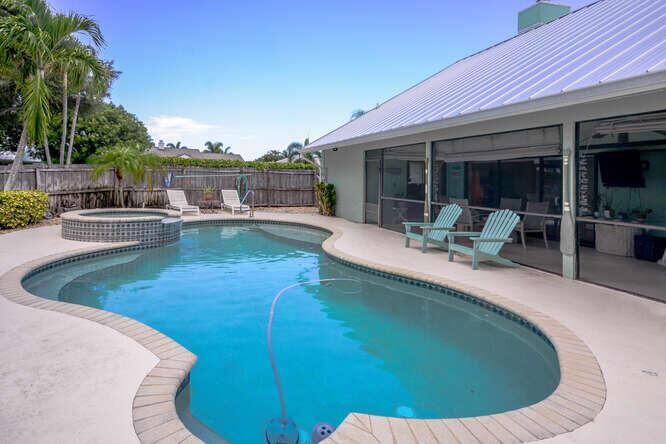 🔥 HOT SUMMER BUY in Tequesta Pines! 🔥Don’t miss this incredible opportunity to own a spacious 3 bed / 2.5 bath single-story split floor plan home that has it all — and then some!Step inside to find soaring ceilings and a wall of sliding glass doors that flood the living space with natural light and lead out to a screen-enclosed patio and open pool area, perfect for relaxing or entertaining. The kitchen offers plenty of storage and counter space, a breakfast bar, and views of the patio — making it the heart of the home for gatherings and everyday living. The oversized primary suite features a large ensuite bath that also functions as a convenient cabana bath with direct access to the pool.Enjoy peace of mind with new roof, A/C, and pool equipment — all less than 2 ye