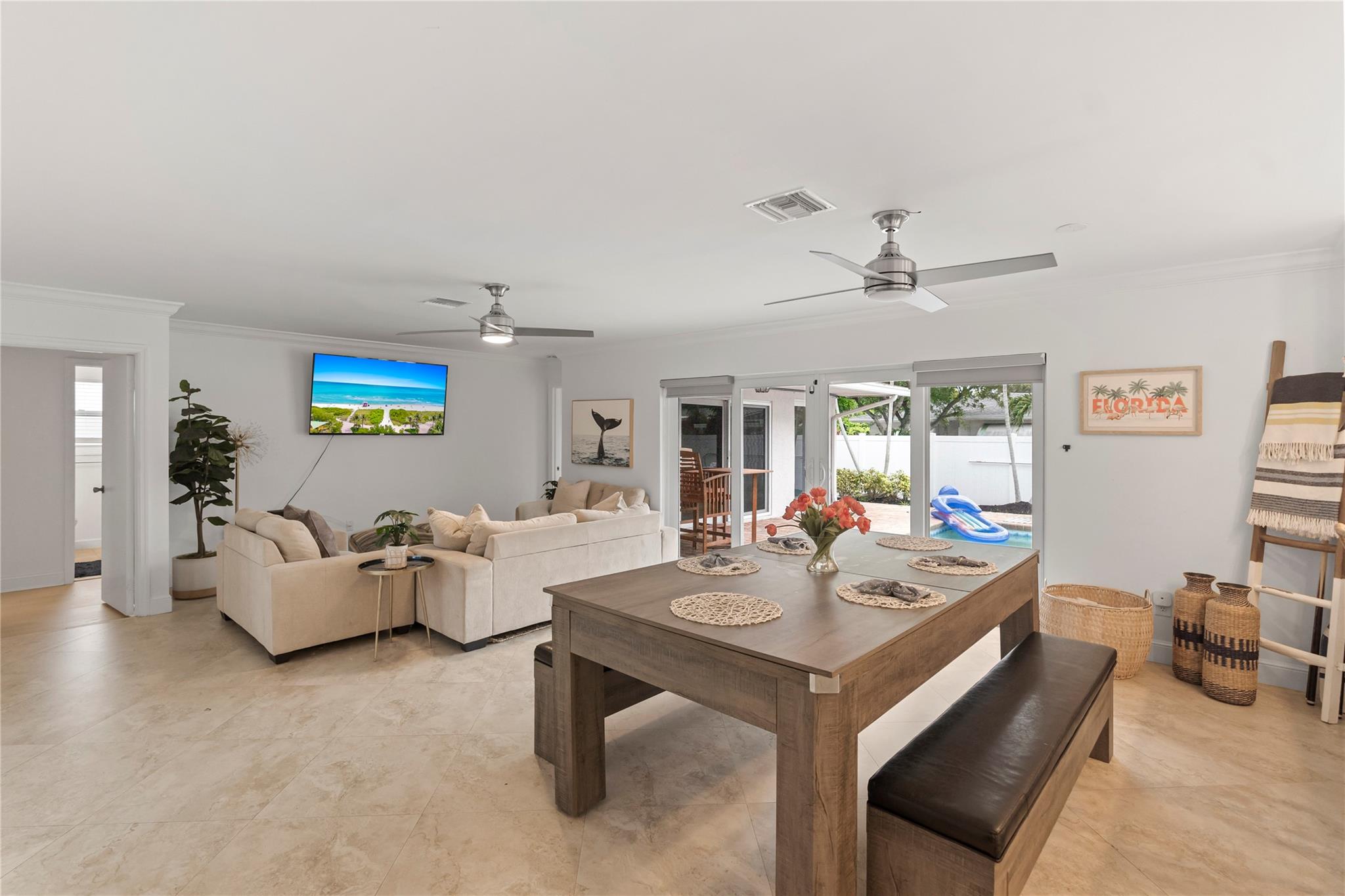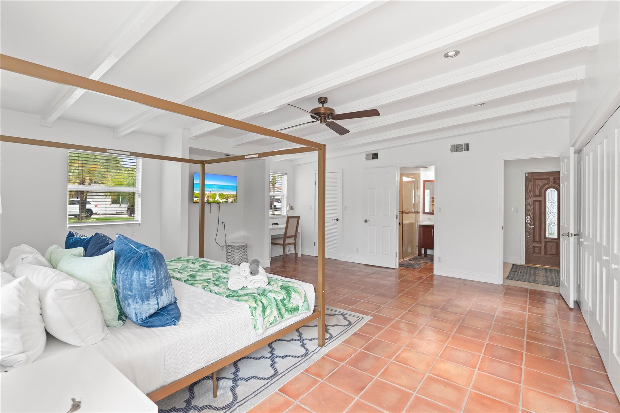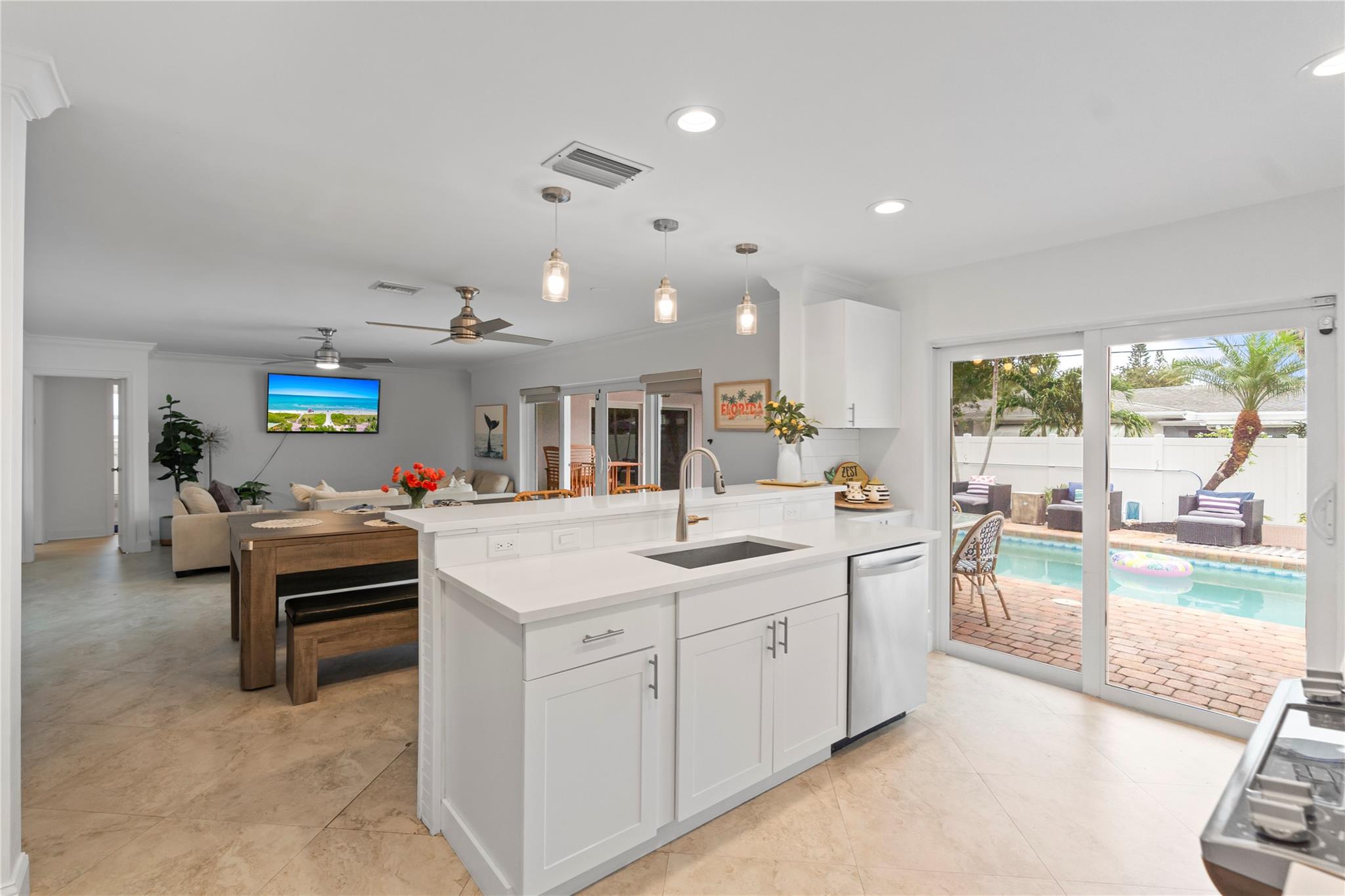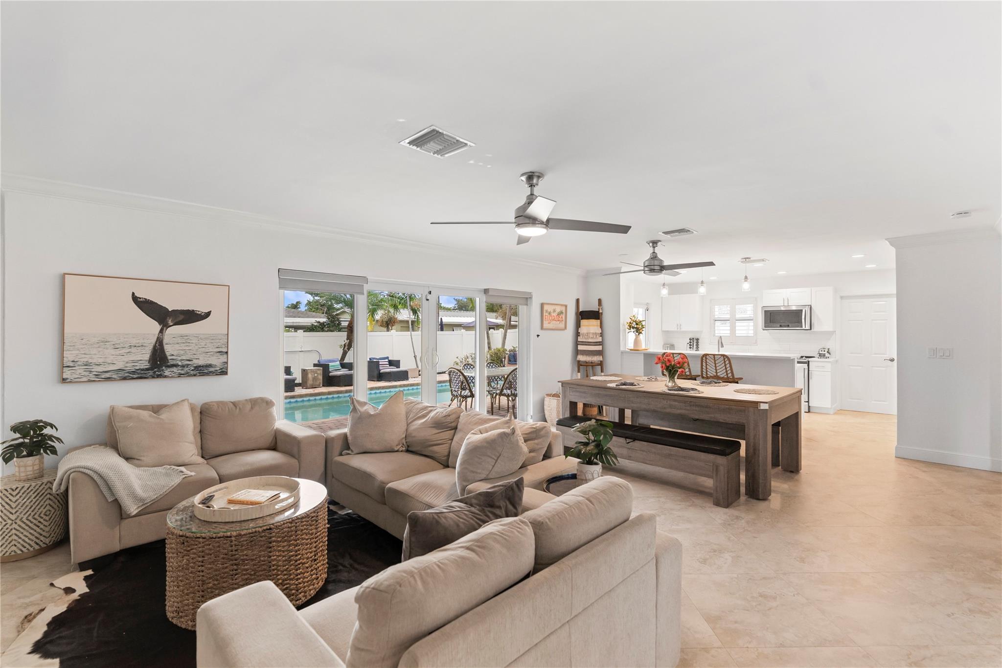 This beautifully updated 4-bed, 3-bath Pompano Beach pool home delivers comfort, privacy, and lifestyle in one of South Florida’s top neighborhoods—perfect for families or multigenerational living near Fort Lauderdale. The split-bedroom design highlights two large primary suites with en-suite baths and walk-in closets—ideal for guests, aging parents, or grown children. One suite offers a private entrance for added flexibility. The open-concept living area flows to a new kitchen with quartz counters, soft-close cabinets, and stainless appliances. Wood-look tile floors, crown molding, and coastal details set a relaxed Florida vibe. Enjoy a heated pool, spa, indoor laundry, plantation shutters, updated baths, and easy access to beaches, golf, parks, shopping, and schools