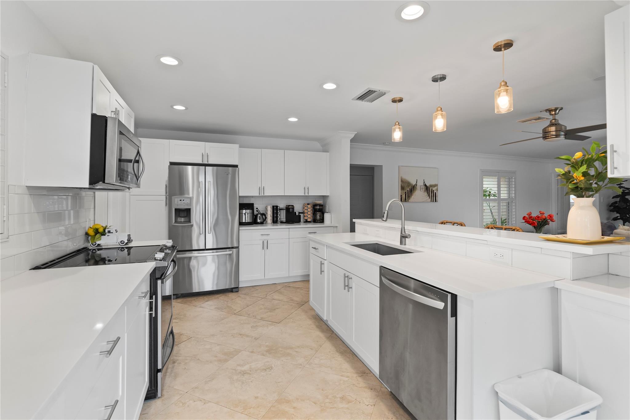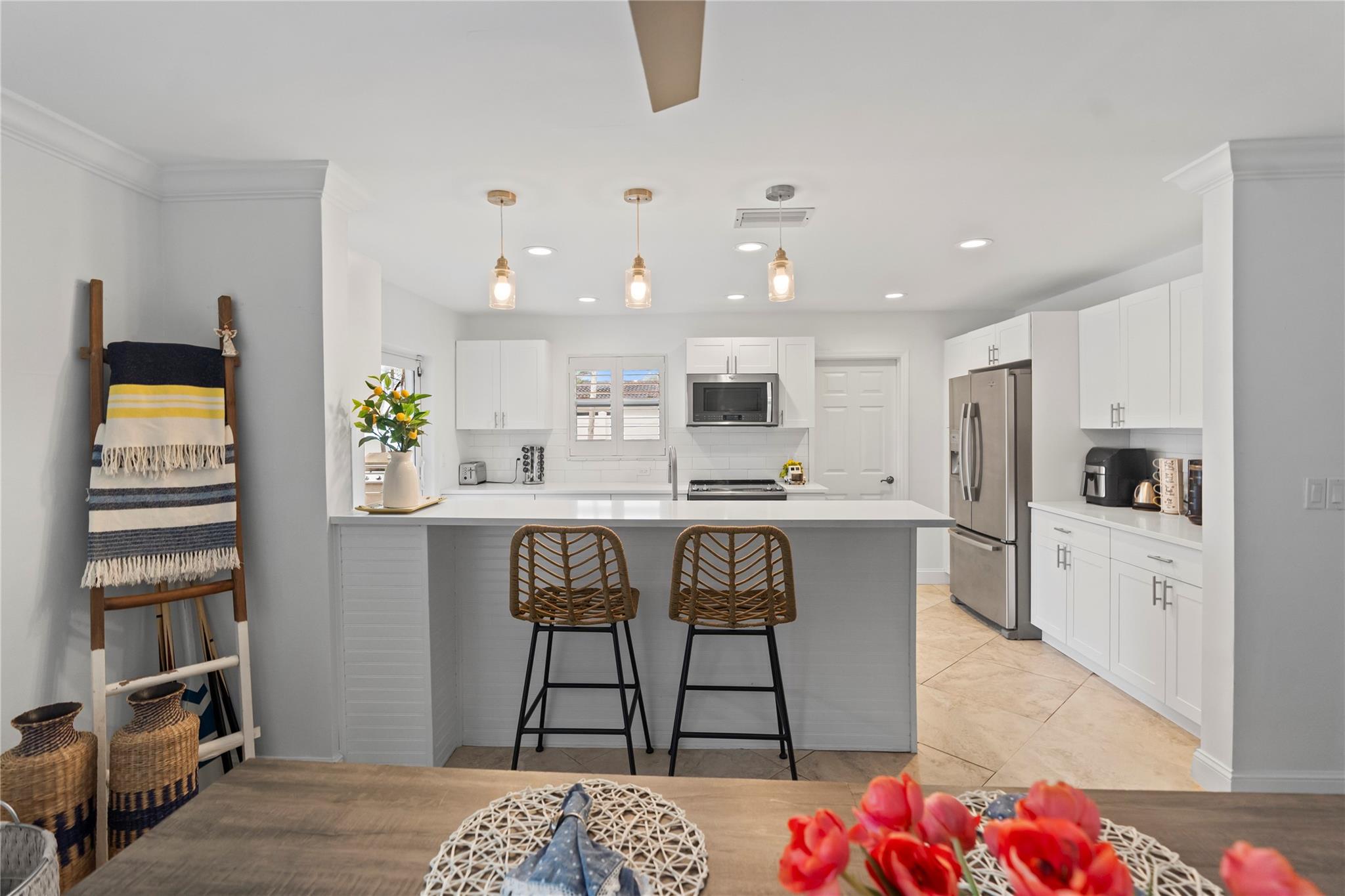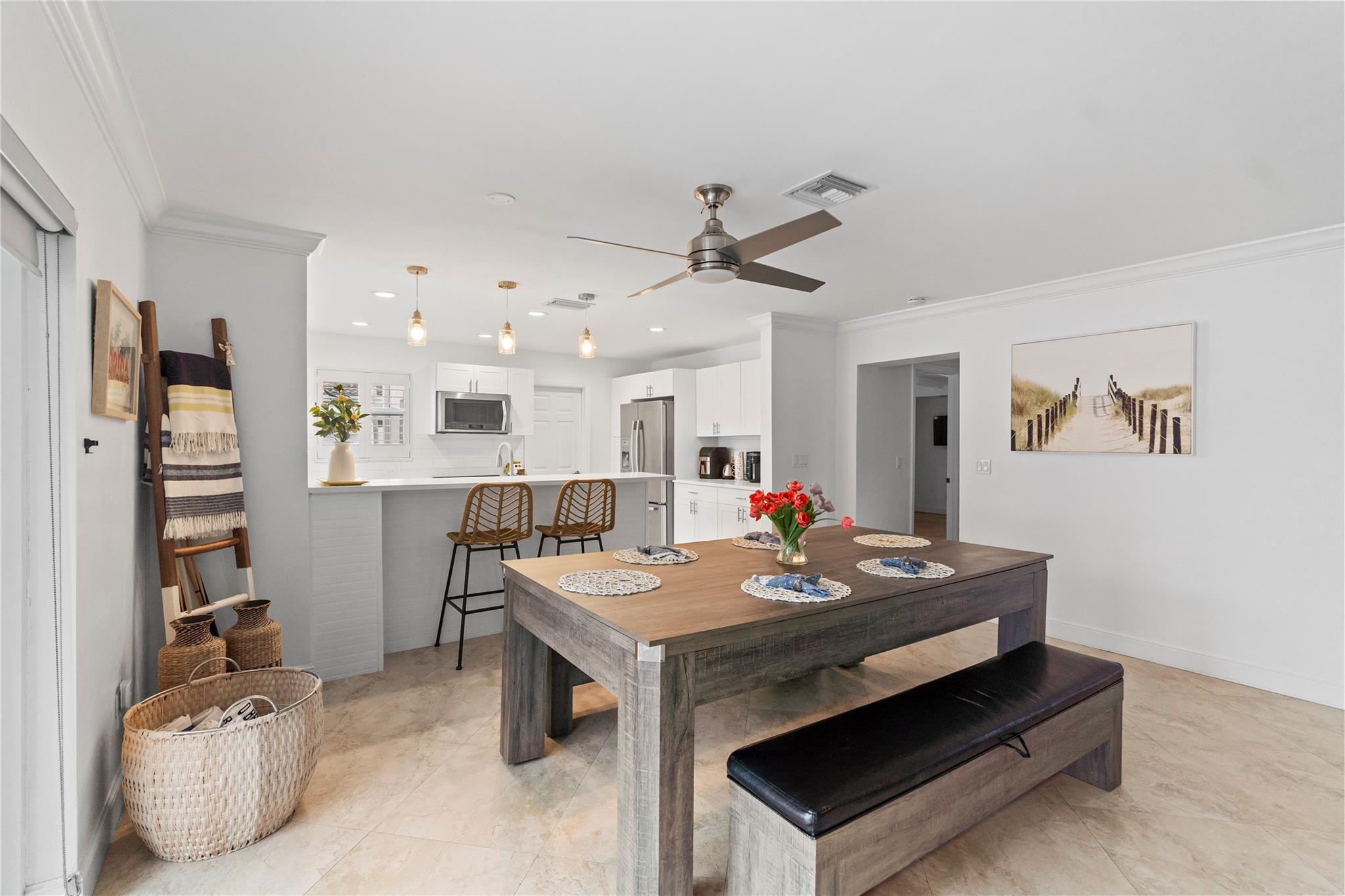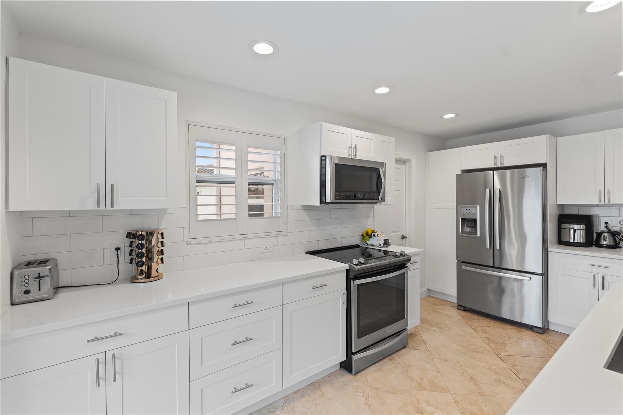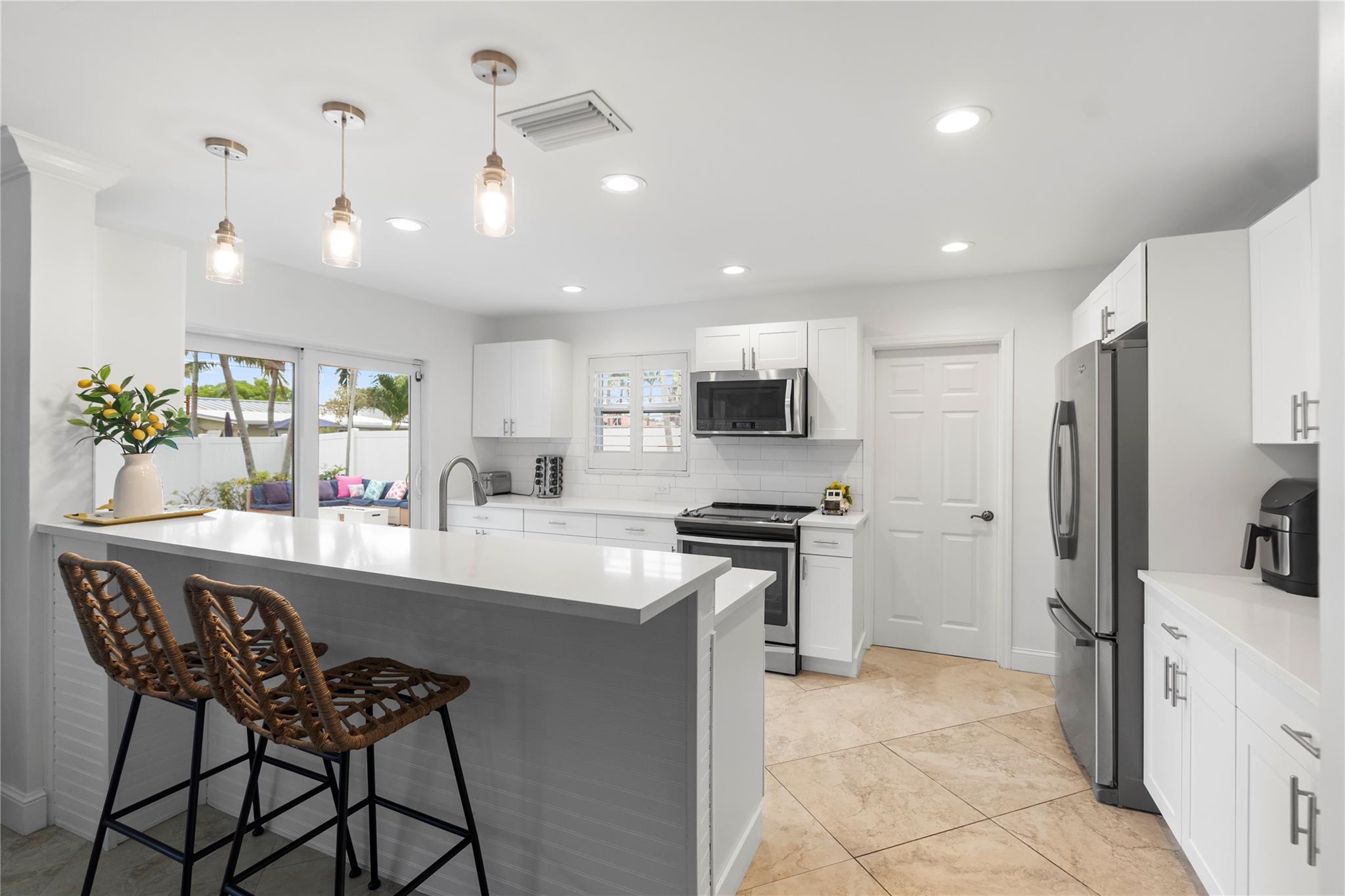 This beautifully updated 4-bed, 3-bath Pompano Beach pool home delivers comfort, privacy, and lifestyle in one of South Florida’s top neighborhoods—perfect for families or multigenerational living near Fort Lauderdale. The split-bedroom design highlights two large primary suites with en-suite baths and walk-in closets—ideal for guests, aging parents, or grown children. One suite offers a private entrance for added flexibility. The open-concept living area flows to a new kitchen with quartz counters, soft-close cabinets, and stainless appliances. Wood-look tile floors, crown molding, and coastal details set a relaxed Florida vibe. Enjoy a heated pool, spa, indoor laundry, plantation shutters, updated baths, and easy access to beaches, golf, parks, shopping, and schools