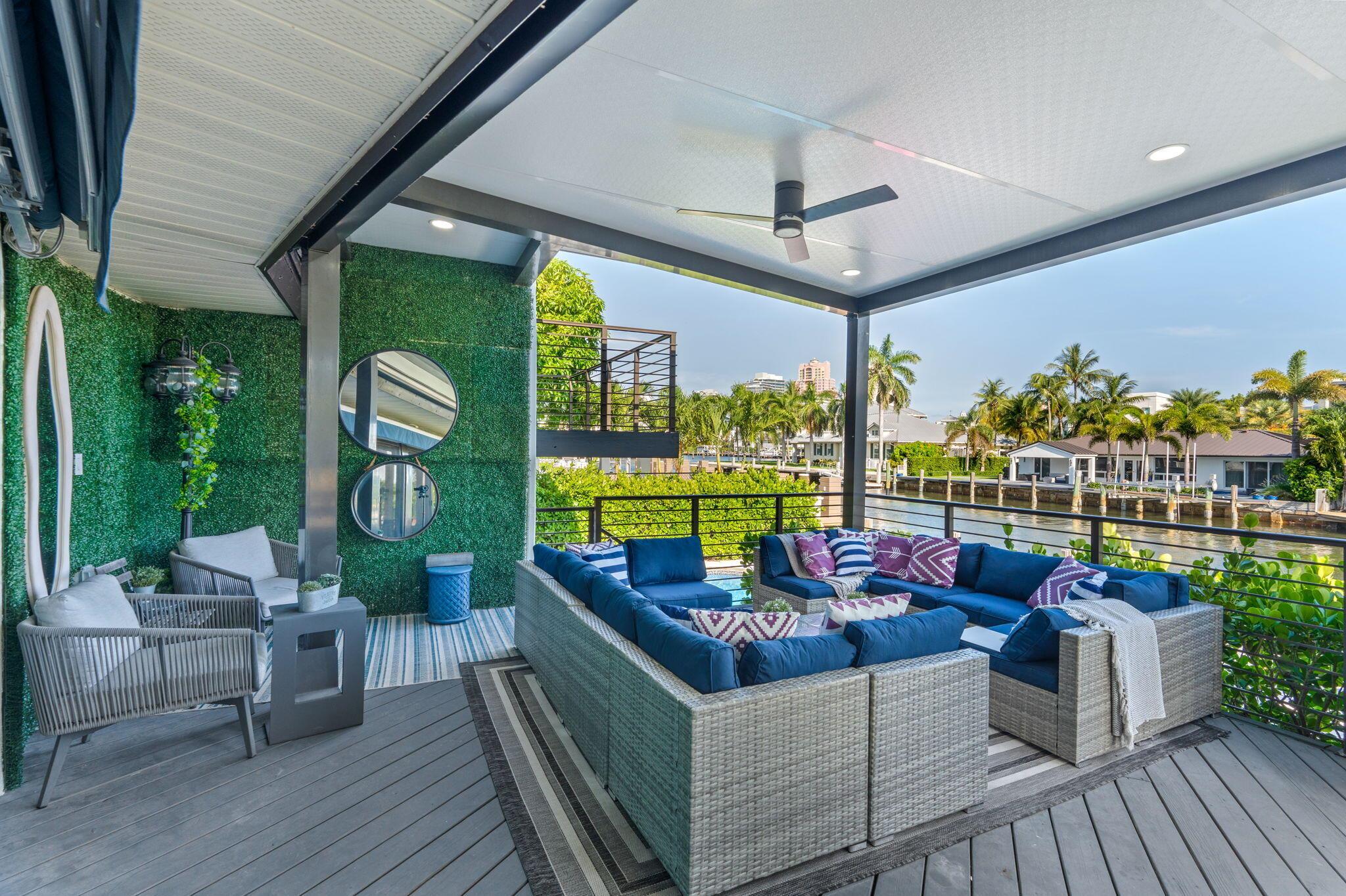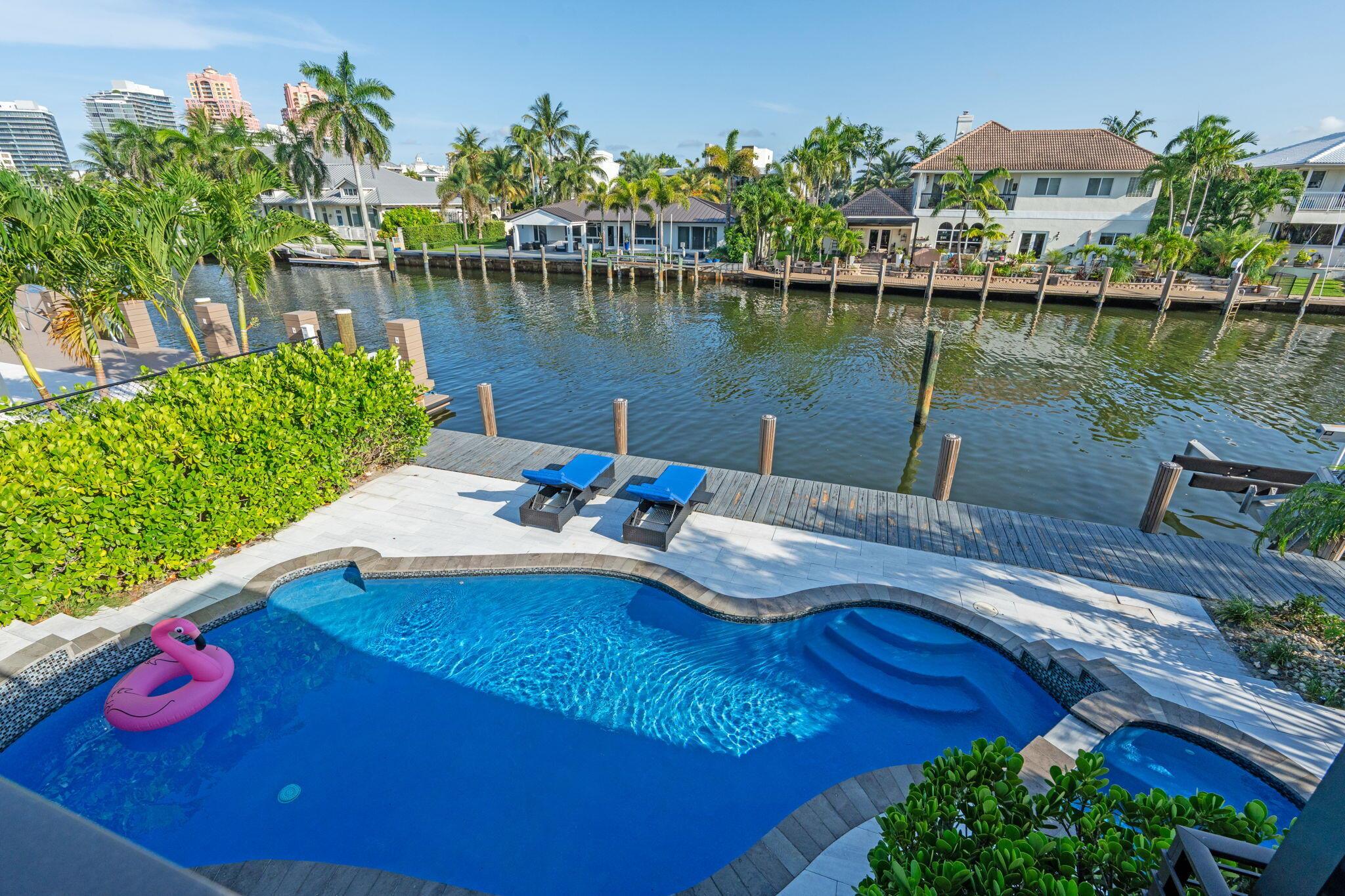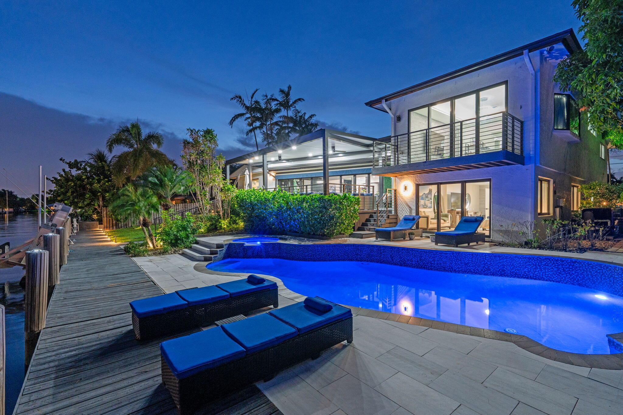 Discover luxury living in Fort Lauderdale’s prestigious Coral Ridge. This fully furnished and renovated 5-bedroom, 4-bath home sits on 100 feet of wide canal waterfront with NO FIXED bridges and direct ocean access, perfect for your yacht. Step inside to a bright, open floor plan that seamlessly blends indoor and outdoor living, leading you to a spacious terrace overlooking a resort-style pool deck. This home is ready for you to move right in, featuring $150,000 in recent upgrades. Enjoy your own private spa room featuring a red light therapy sauna, traditional sauna, tanning bed, and massage bed. Whether as your personal retreat or an incredible vacation rental investment, this property embodies the best of South Florida waterfront living.