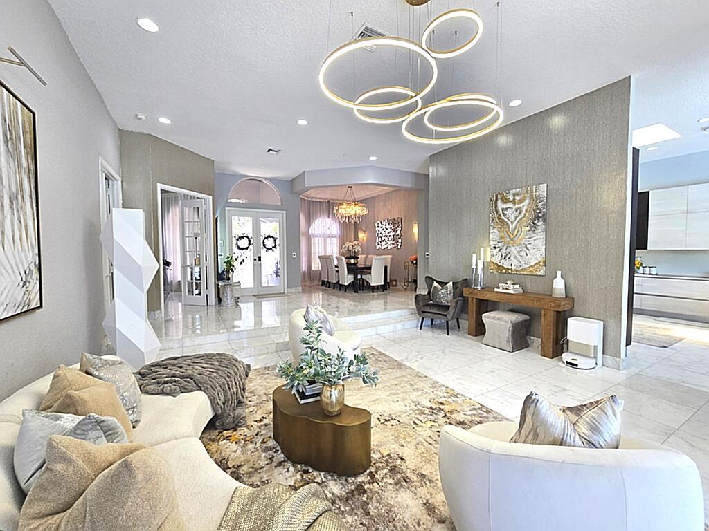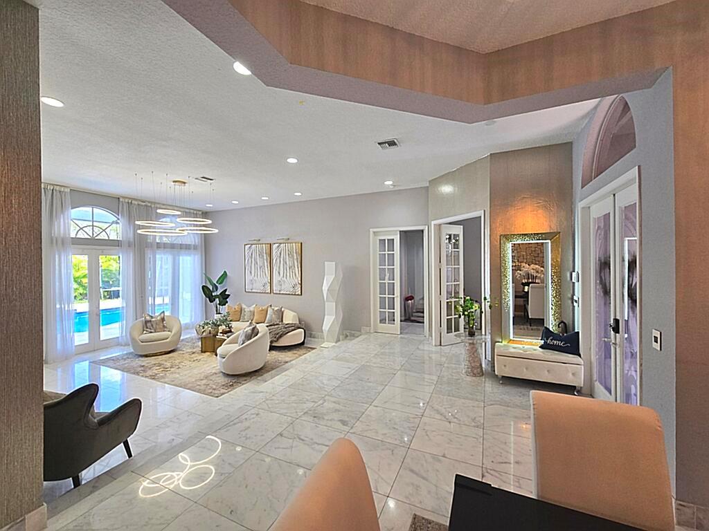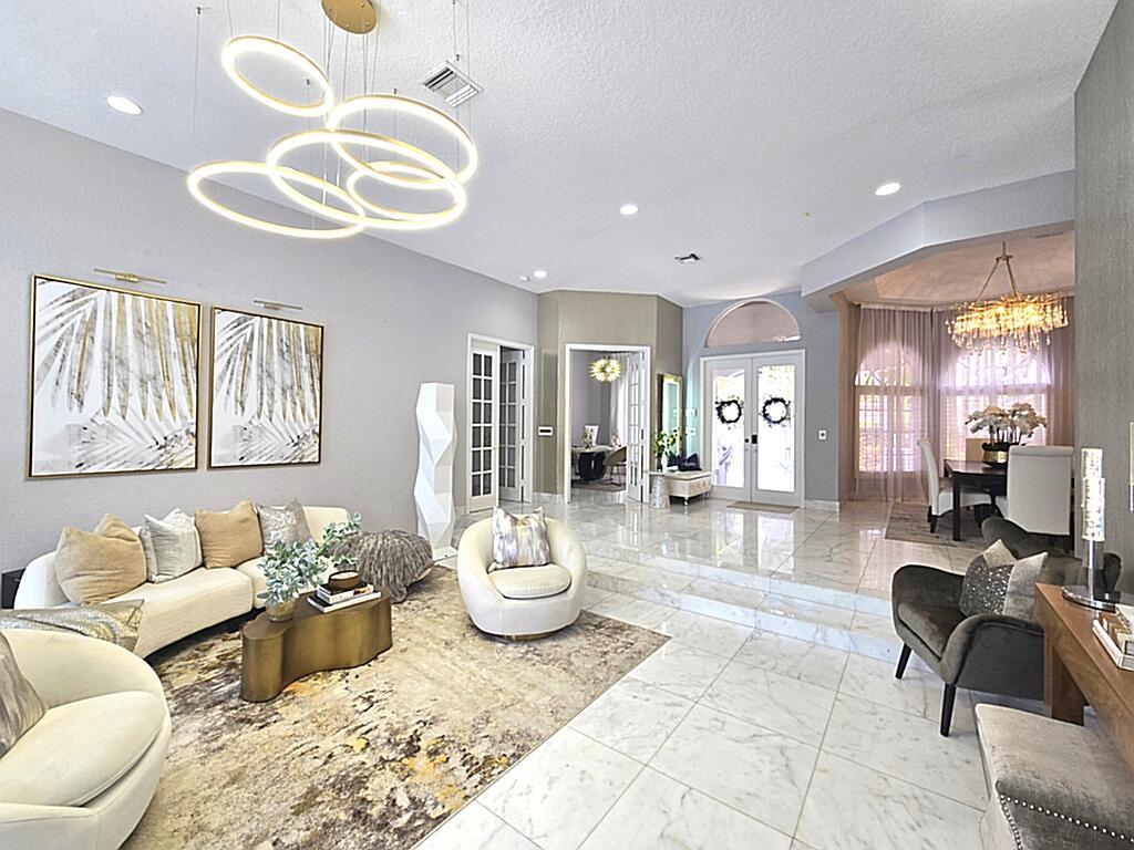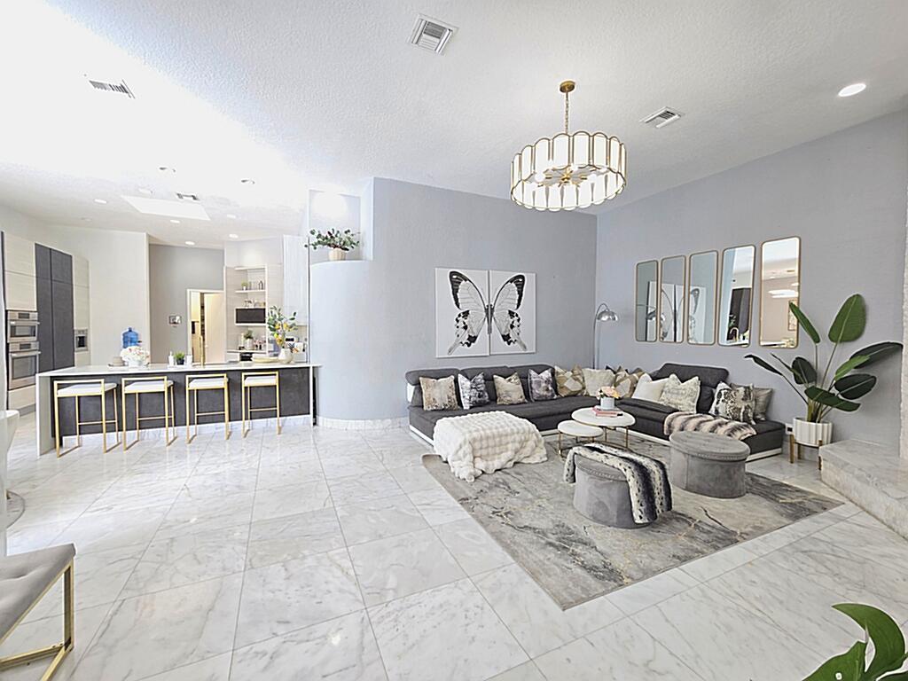 HUGE PRICE REDUCTION! Stunning Remodeled Home in Prestigious Eagle Trace!Welcome to luxury living. This beautifully remodeled residence boasts 4 spacious bedrooms, a private den, 3 elegant bathrooms, and a 3-car garage, offering over 3,429 sq. ft. under air and 4,509 total sq. ft. of refined comfort.Step inside to discover gleaming white marble floors throughout the main living areas, creating a bright and sophisticated atmosphere. The gourmet kitchen is a chef’s dream, featuring premium appliances and sleek Italian cabinetry that seamlessly blends form and function.Enjoy seamless indoor-outdoor living with a stunning marble pool patio deck, perfect for relaxing or entertaining in style.Located in a quiet, secure community with low HOA fees with optional golf membership