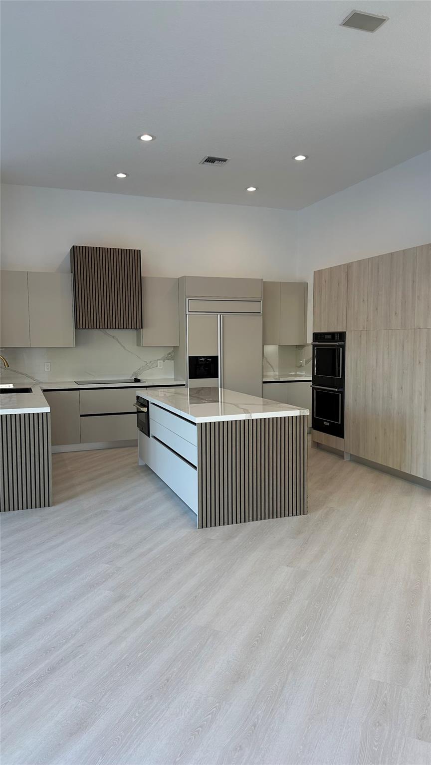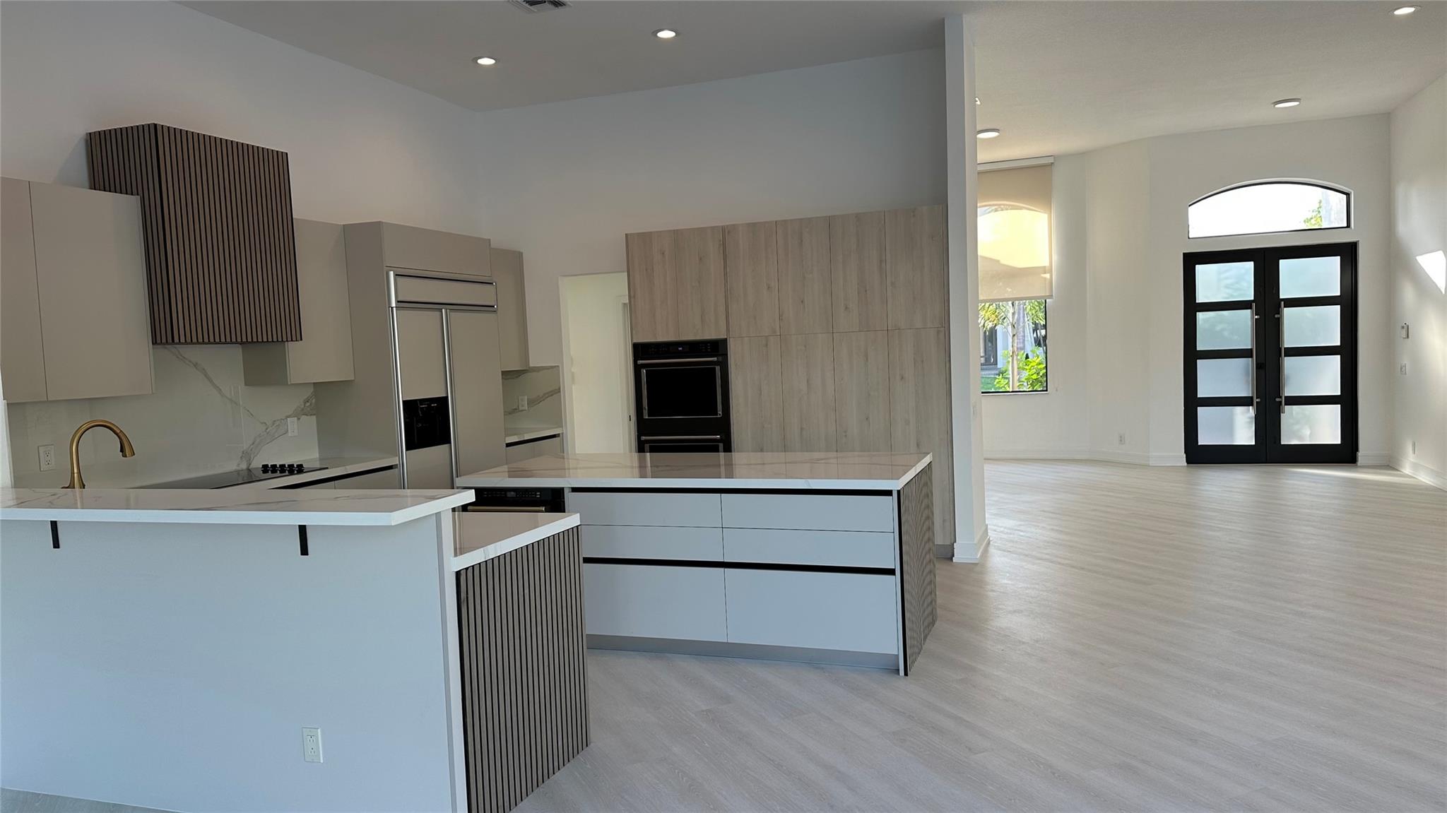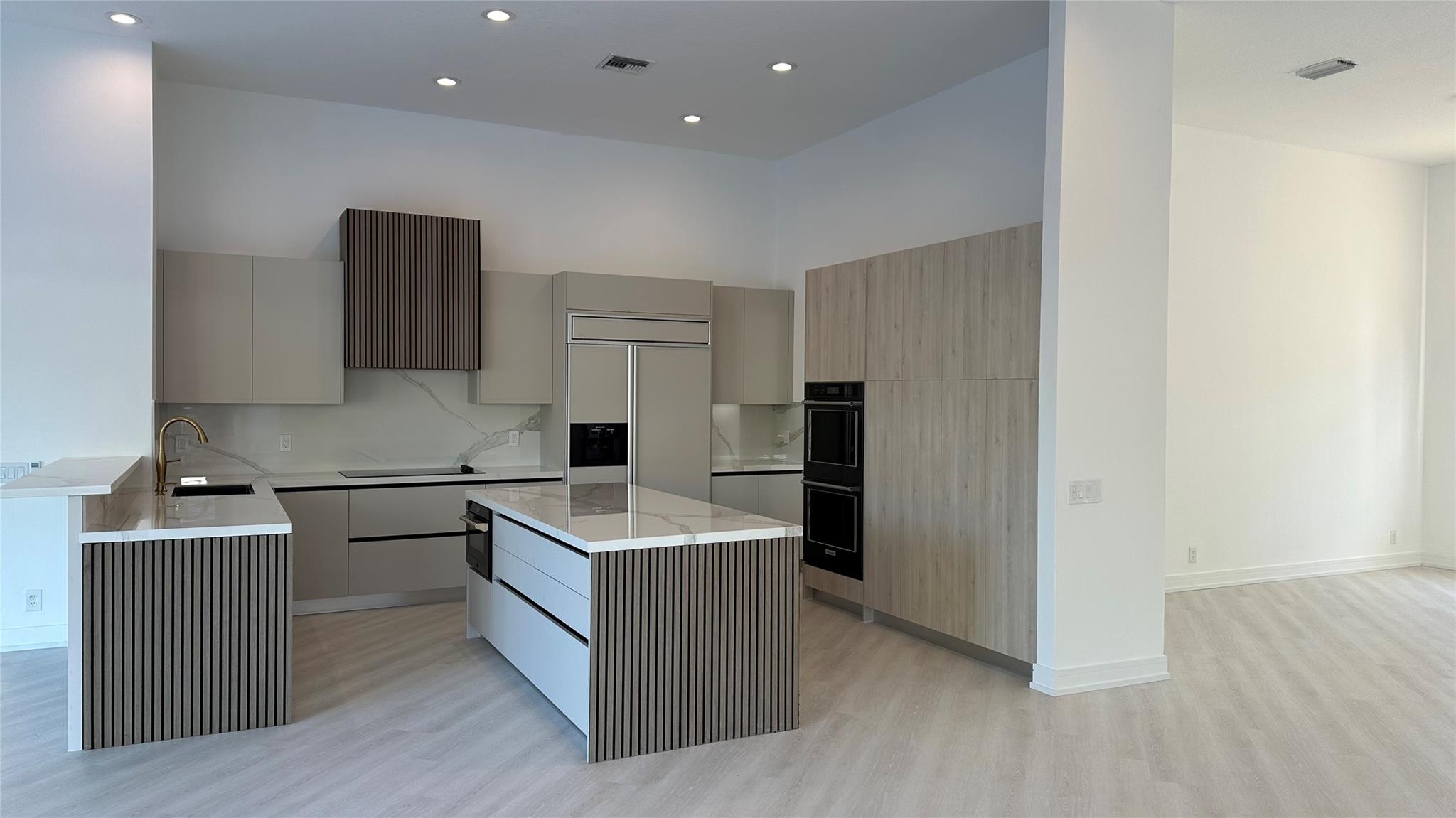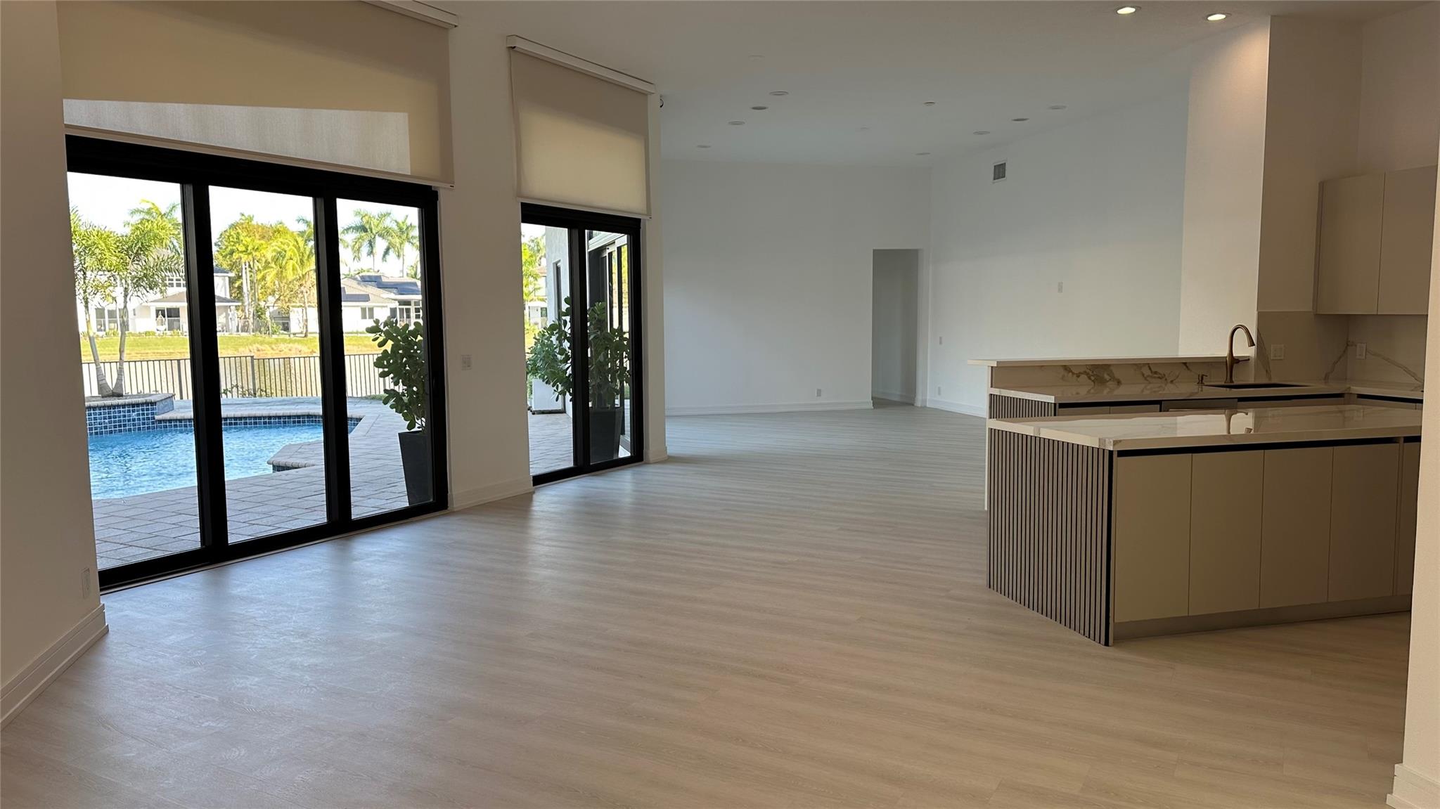 Gourmet kitchen, which features high-end designer appliances, huge center island, contemporary custom cabinetry, pantry, and a custom built in wine cooler. Enjoy views of the lake from landscaped backyard, newly resurfaced heated pool. All new closets . Additional updates include new washer and dryer and a spacious double garage with electric car charging station