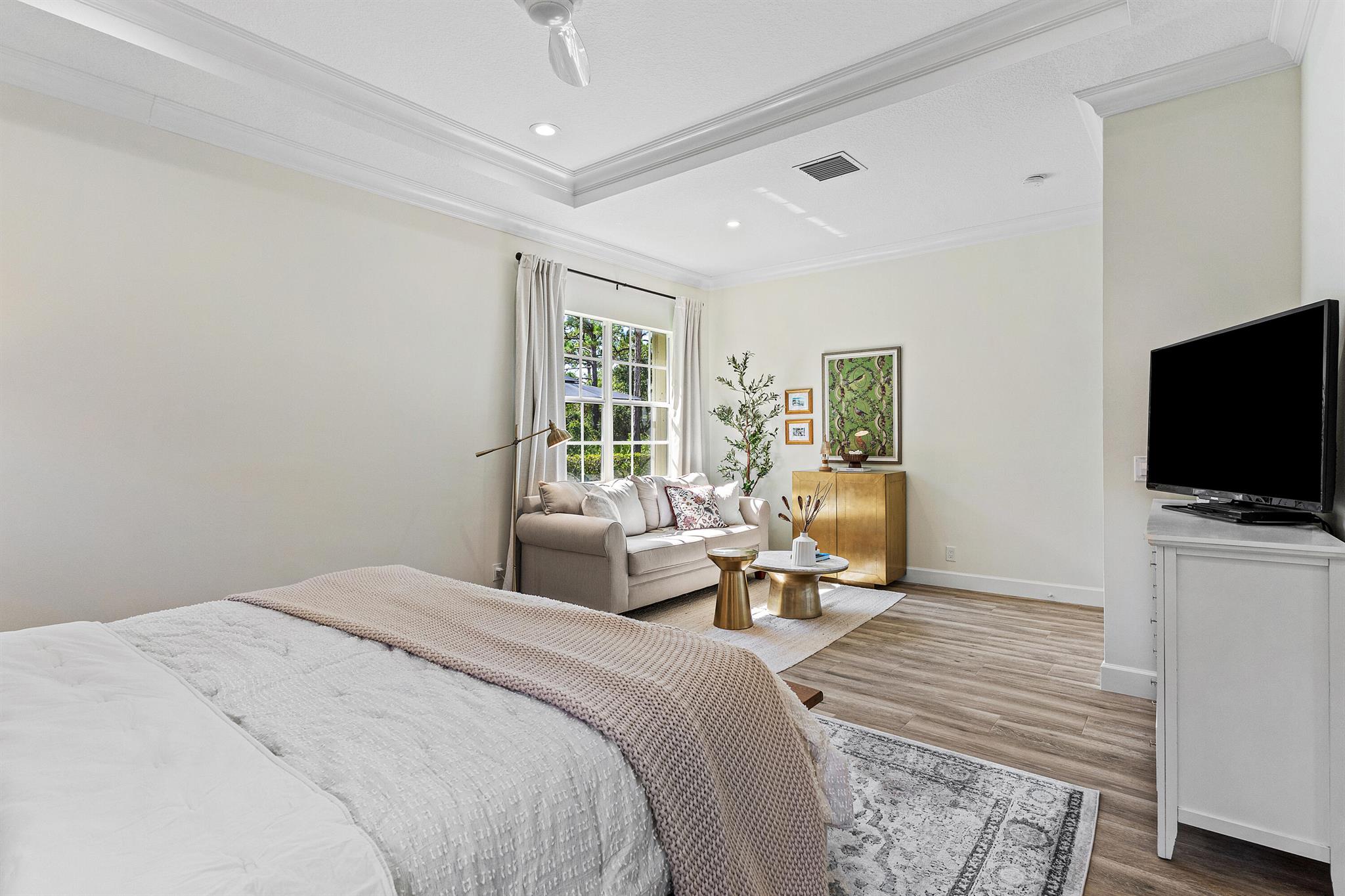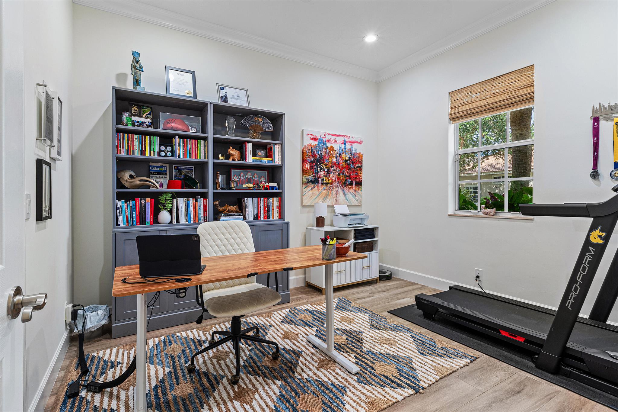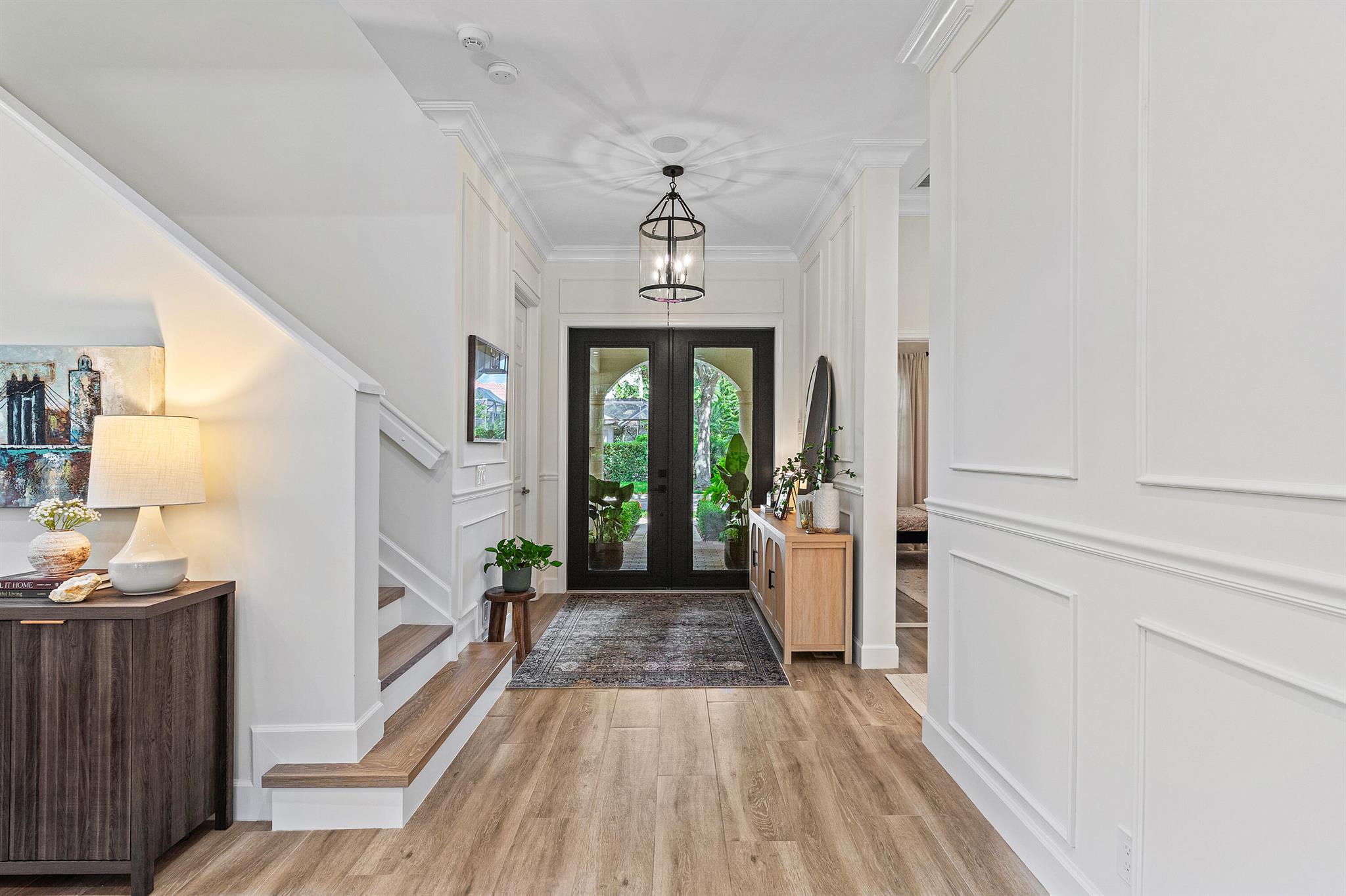 Stunning 6-Bedroom Residence in Paseos — Overlooking the Nature Preserve. A private paradise awaits. Exceptional six-bedroom home nestled in the sought-after Paseos community, which has one of the lowest HOA dues in the area. Recently renovated with high quality craftsmanship and upgrades, offering both elegance and functionality for today’s modern lifestyle.The spacious Primary Suite is conveniently and privately located on the first floor. It is accompanied by three additional bedrooms on the main level, proving a versatile layout perfect for family living or hosting guests. Before stepping into your home, you will be greeted with an elegant entrance, featuring 9-ft custom, glass double-doors.
