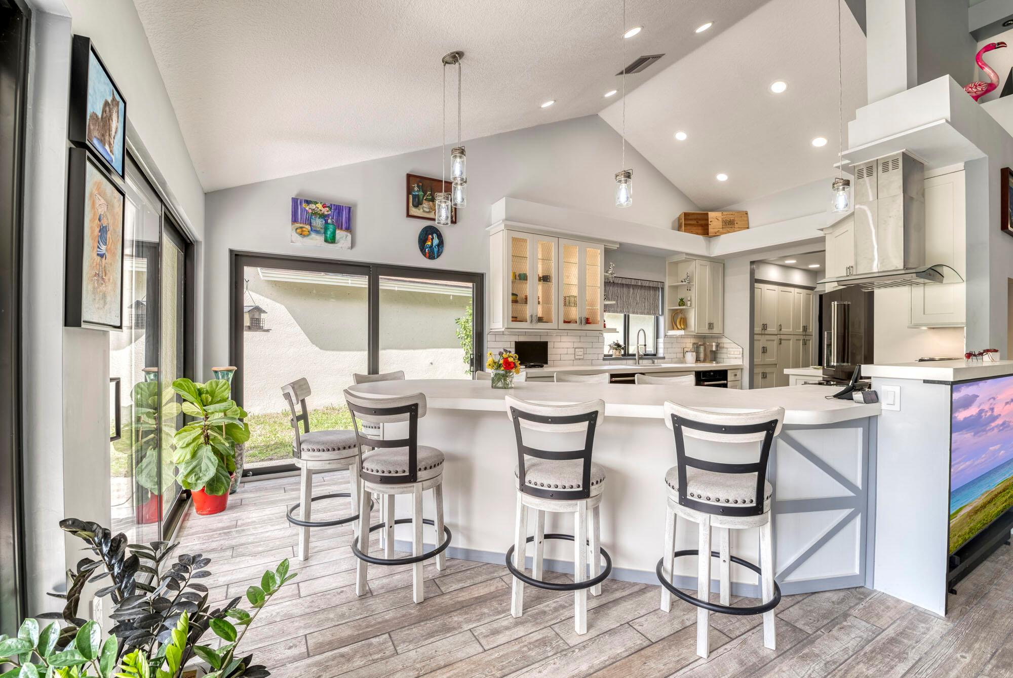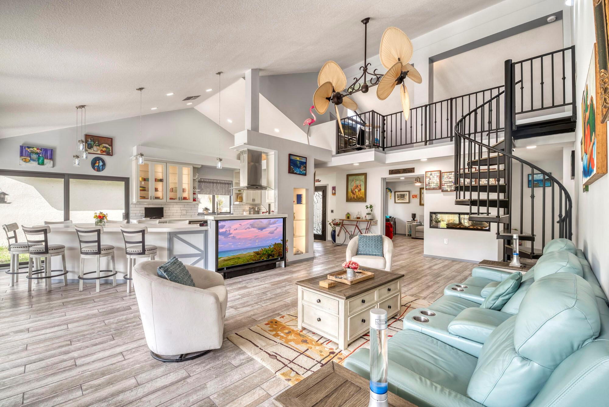 This exquisitely fully renovated Ridge at the Bluffs home has it ALL. The closest proximity to the beach for the Ridge community and an expansive view of the Ridge Preserve to the west is stunning (nothing is behind the home). Backyard big enough for a pool. Community activities include Pickleball, Tennis, Basketball, with community, pool and Jacuzzi.The open concept floor plan is bright and spacious with coastal design aesthetics fit for Jupiter. The open kitchen has been expanded for extra chef space and has a unique 8 person dining bar. The main living space is flooded with natural light from floor to ceiling sliders and is open to a comfy den/office with pocket doors for privacy. Iron spiral stairs takes you up to the open, finished loft, currently being used as a pilates room.