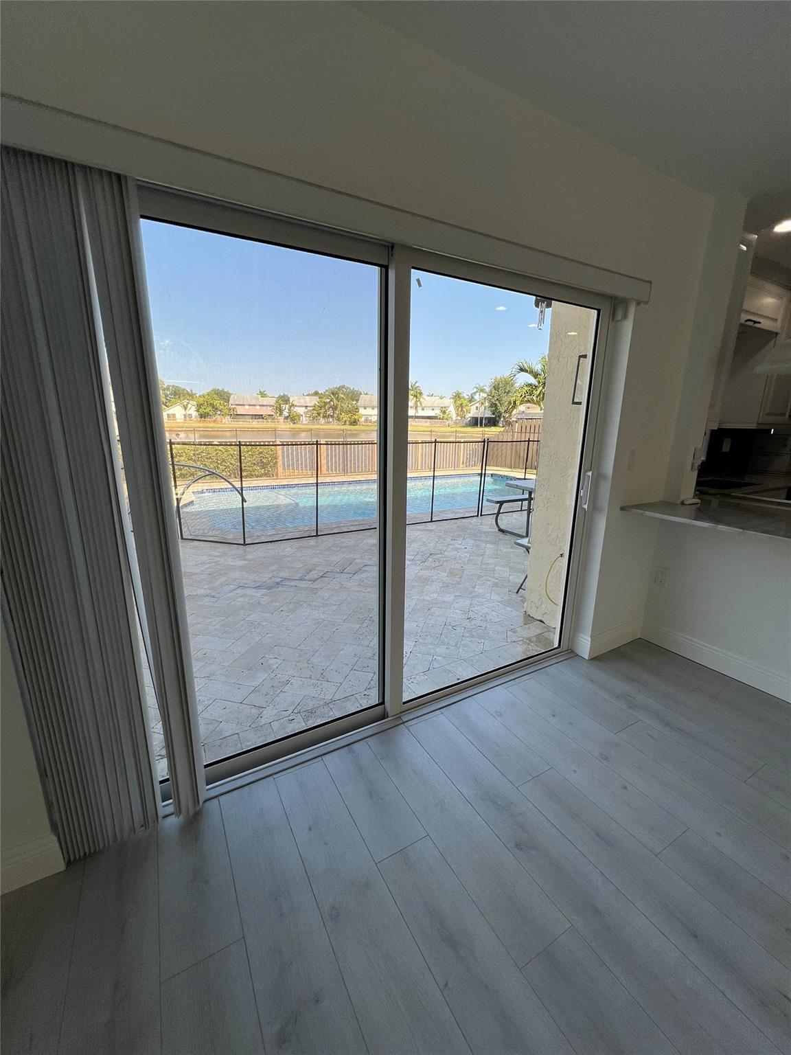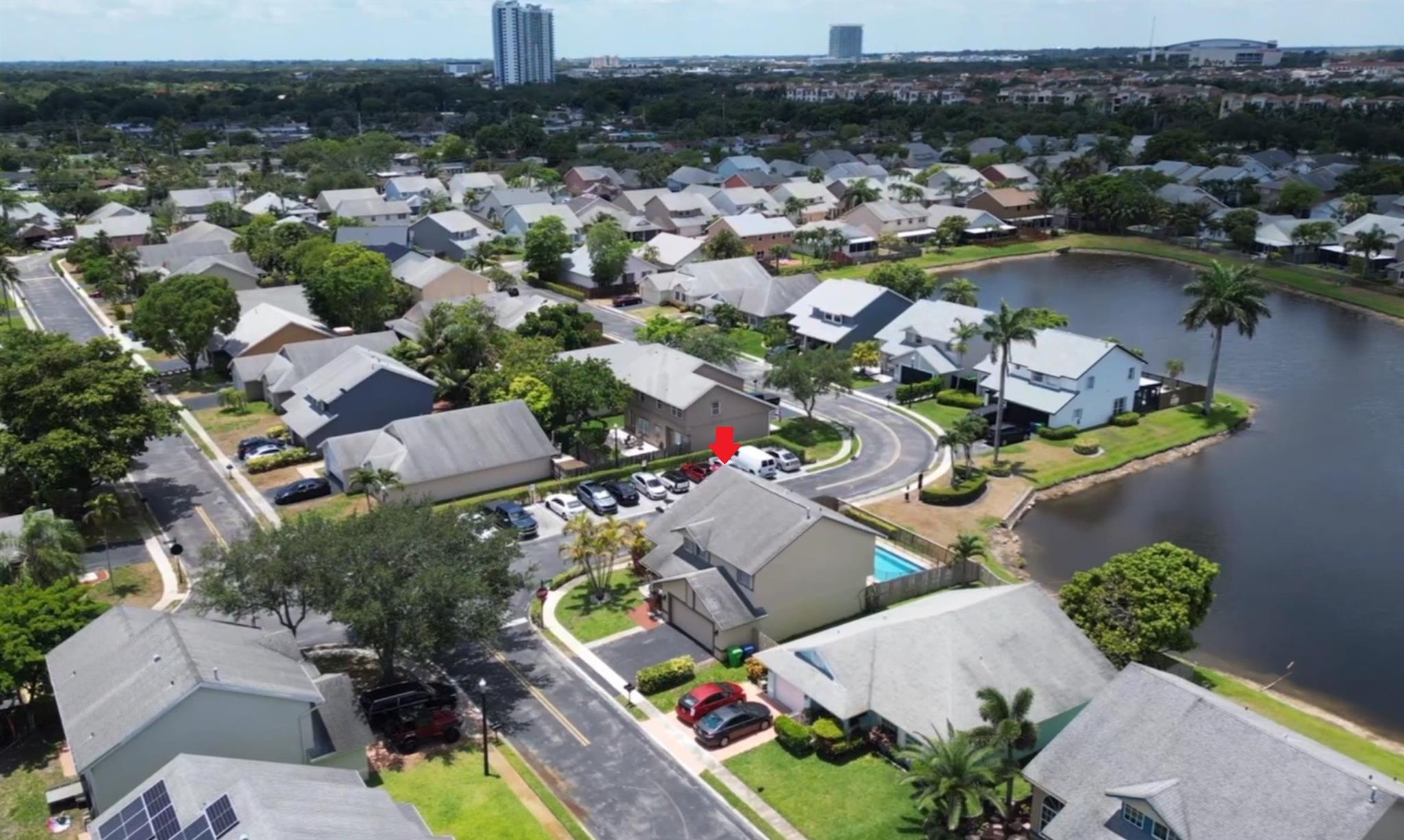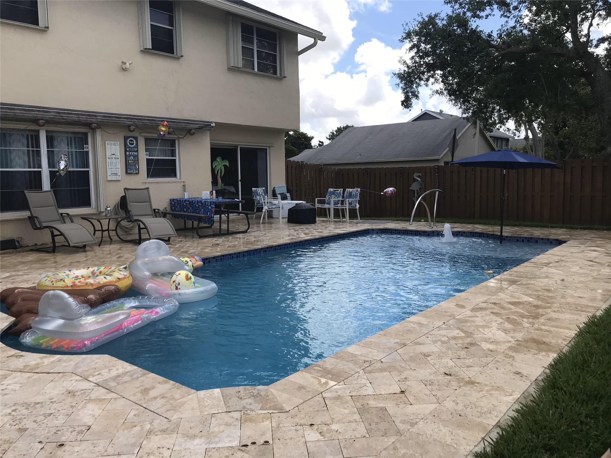 The primary bedroom offers a large en suite bathroom with a shower & walk-in closet, windows providing beautiful pool & lake views. 3 additional bedrooms & full bathroom complete the upper level. All rooms are equipped with accordion hurricane shutters for added security.