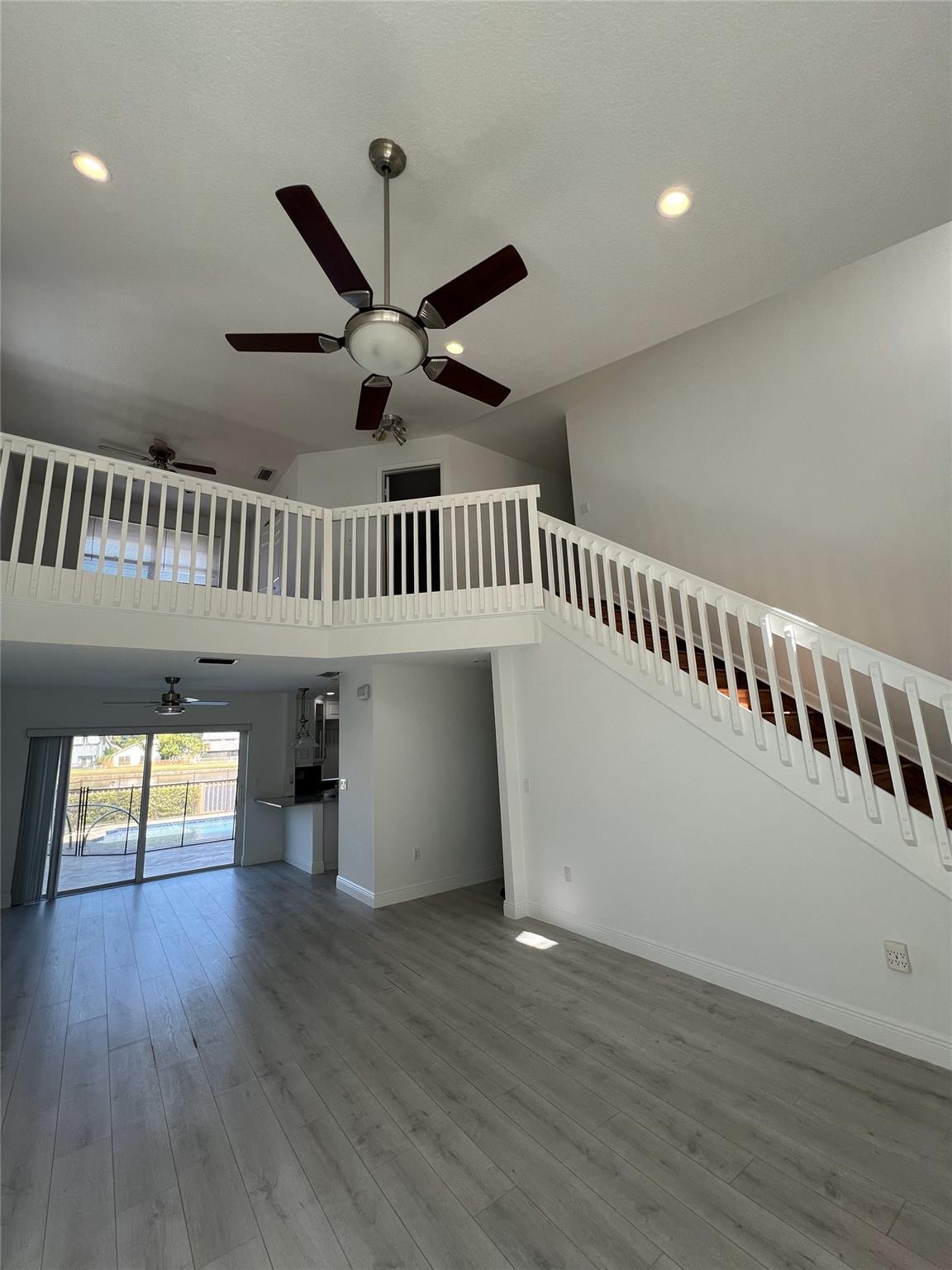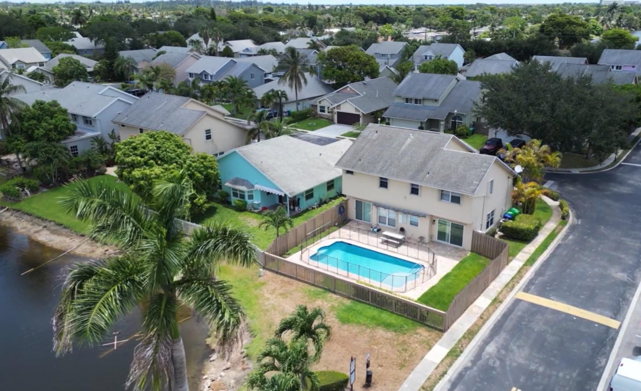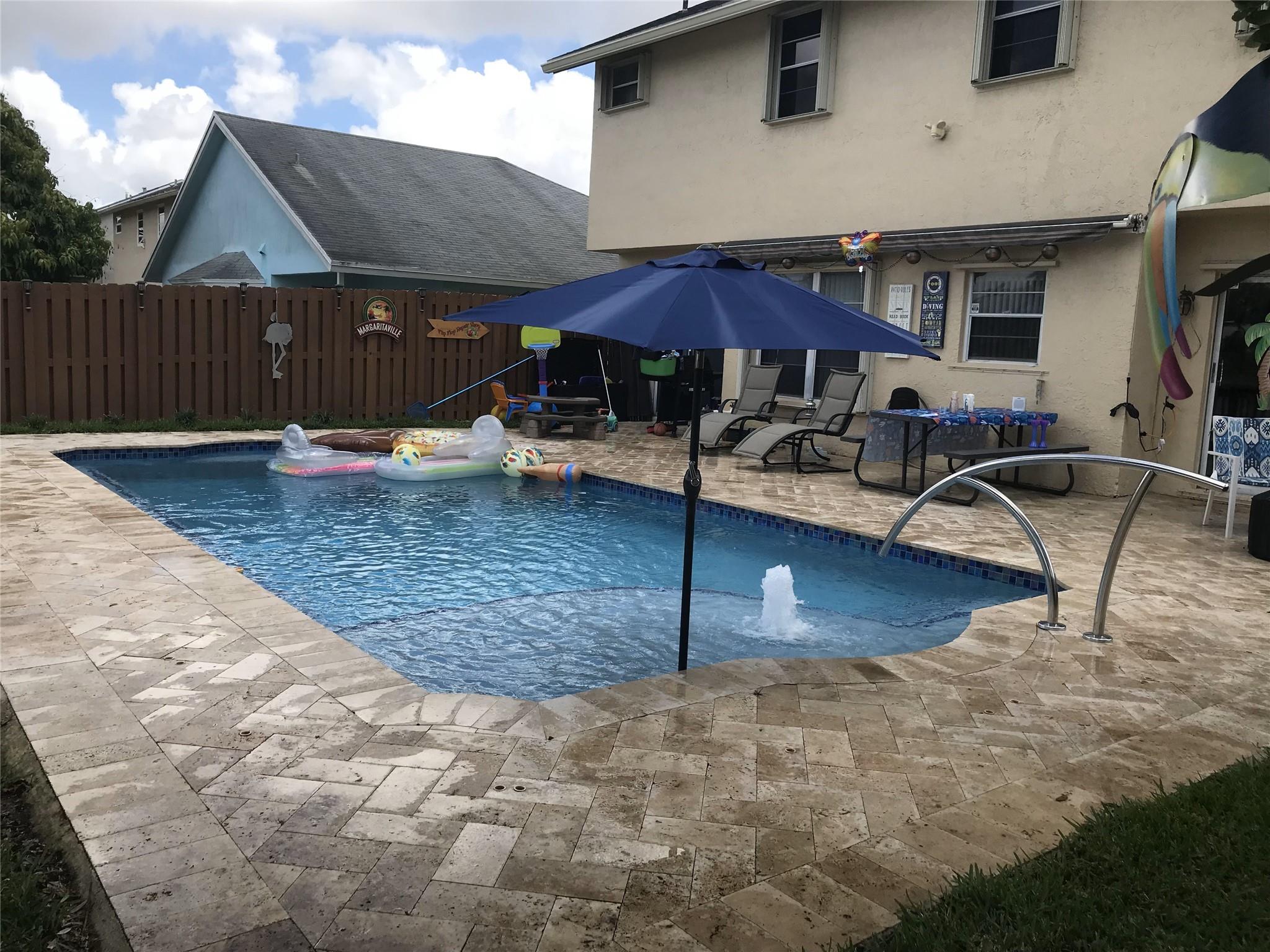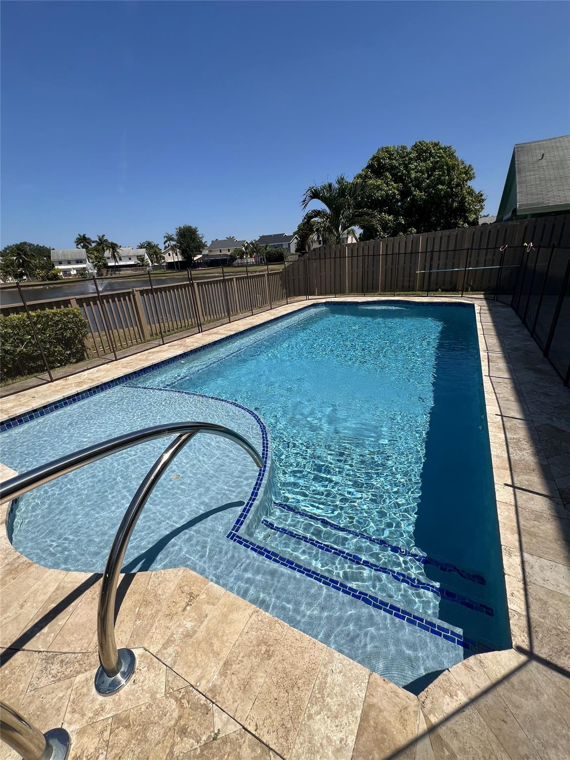 The primary bedroom offers a large en suite bathroom with a shower & walk-in closet, windows providing beautiful pool & lake views. 3 additional bedrooms & full bathroom complete the upper level. All rooms are equipped with accordion hurricane shutters for added security.