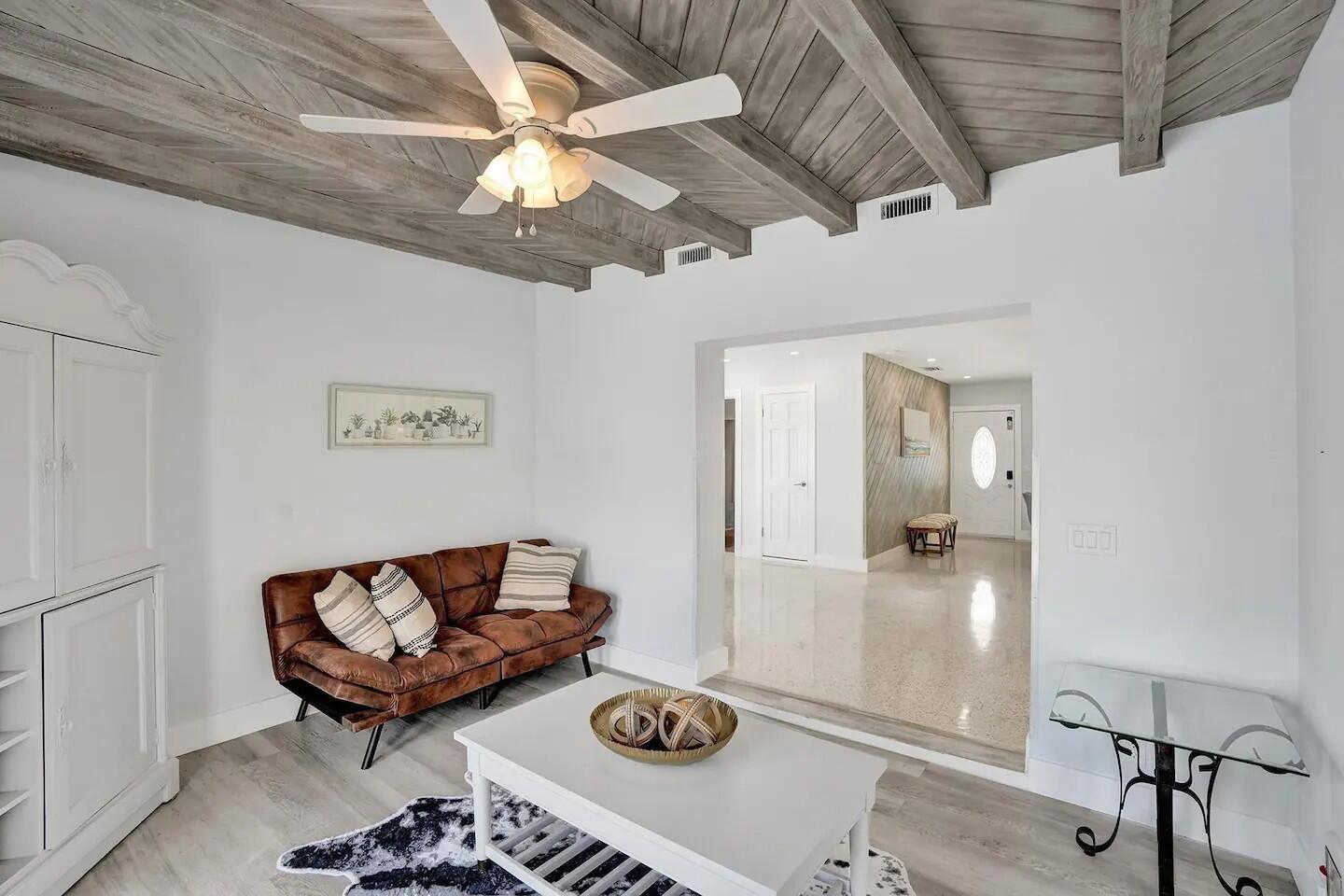 Welcome to your dream home in Deerfield Beach! This stunning three-bedroom, two-bathroom residence is just minutes from the beach and within walking distance to shopping. Completely renovated from top to bottom, the home features a modern kitchen with white shaker cabinetry and elegant quartz countertops. Enjoy the large, fenced-in backyard perfect for outdoor activities, and relax in the screened-in porch. The spacious family room offers picturesque views of the backyard, ideal for family gatherings and entertaining. With a convenient circular driveway, this home combines comfort, style, and location. Don’t miss out on this gem in Deerfield Beach!