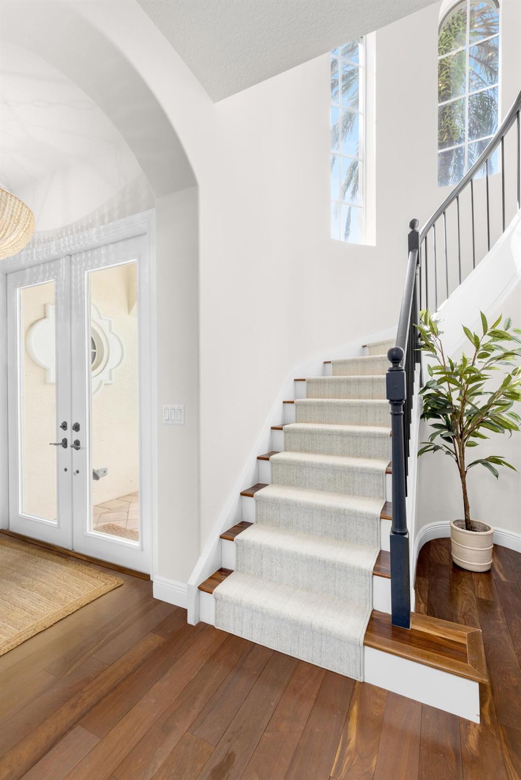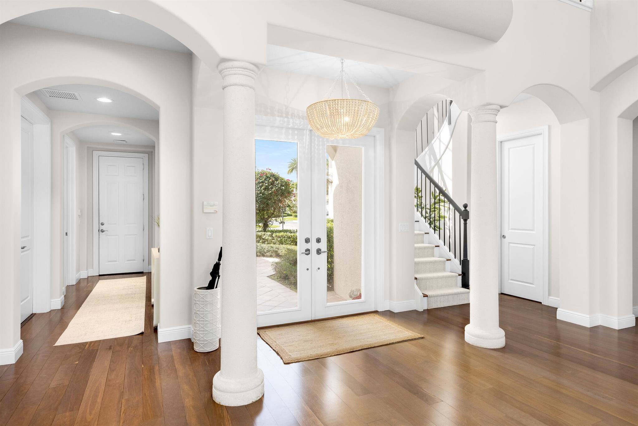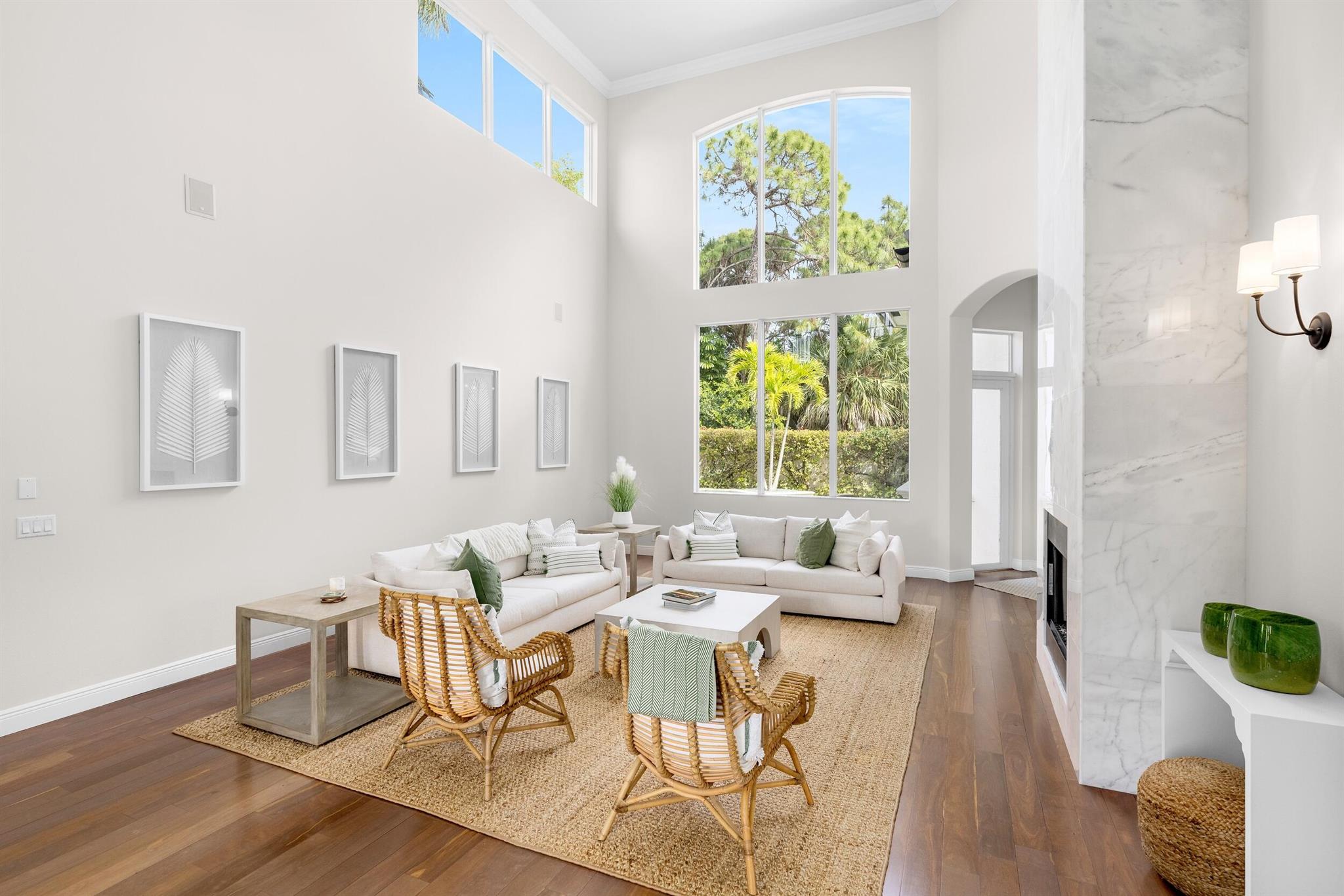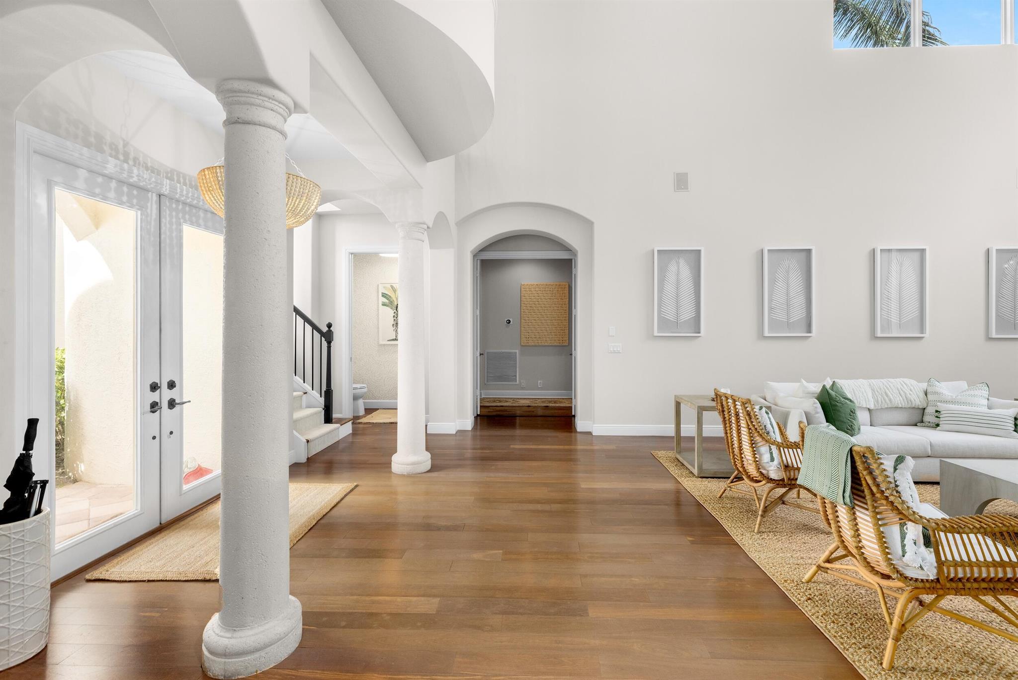 This exquisite home offers the epitome of luxury living, boasting a myriad of upscale features and amenities. Situated on a private corner lot, this residence exudes elegance from the moment you arrive. As you step inside, you are greeted by vaulted ceilings that bathe the interior in natural light, creating a bright and airy ambiance throughout, and a stunning marble fireplace. The allure continues with new hardwood flooring gracing the home. The renovated kitchen showcases marble backsplash, a gas range, an oversized pantry, and a new wine fridge. The master bedroom, conveniently located on the first floor, features California walk-in closets for ample storage. For those who work from home, the den/office on the first floor provides the ideal space for productivity.