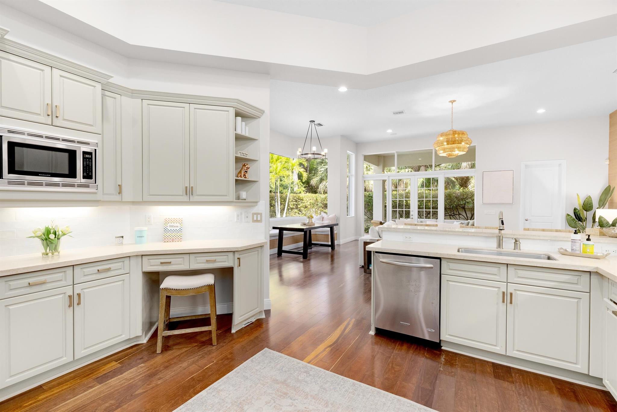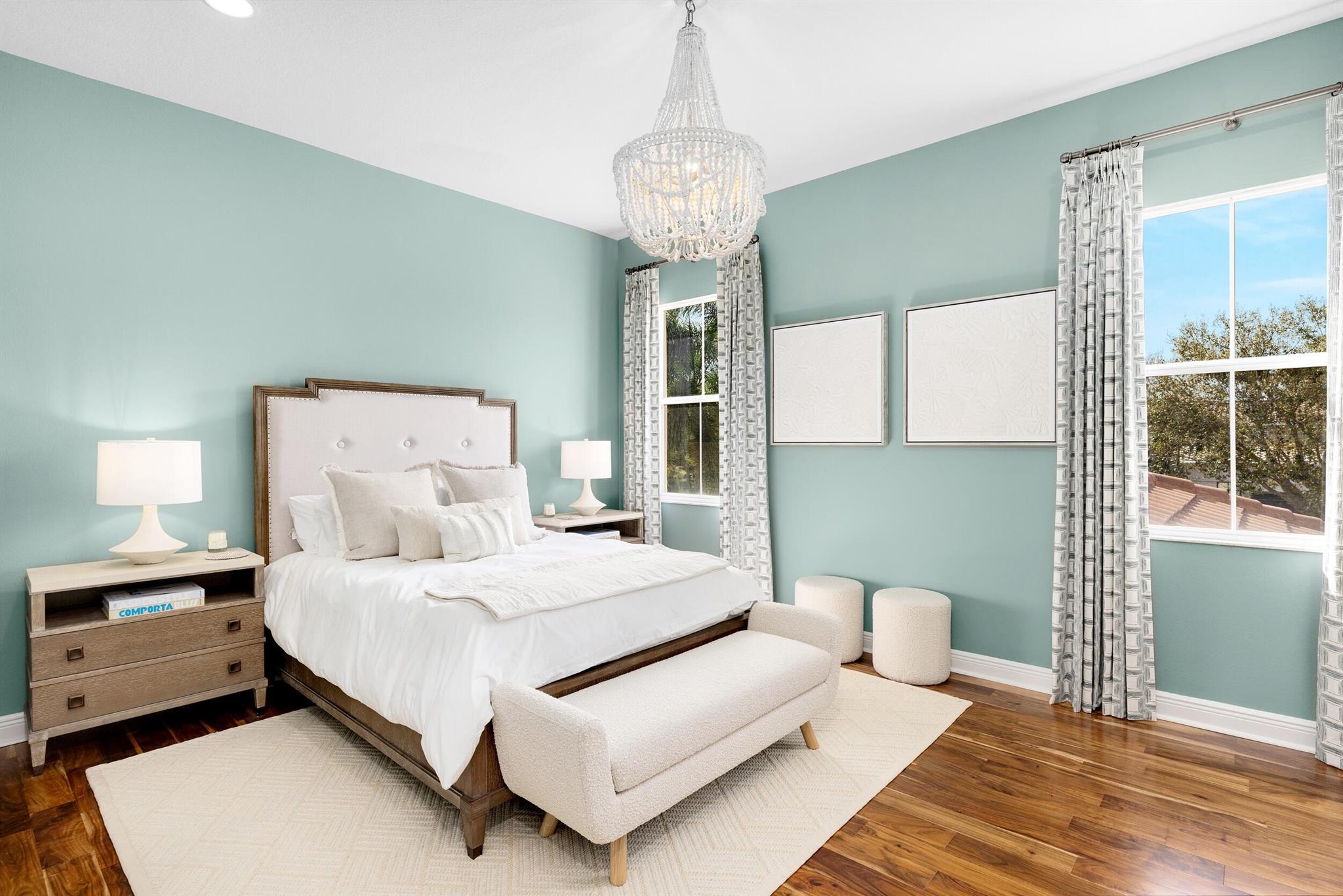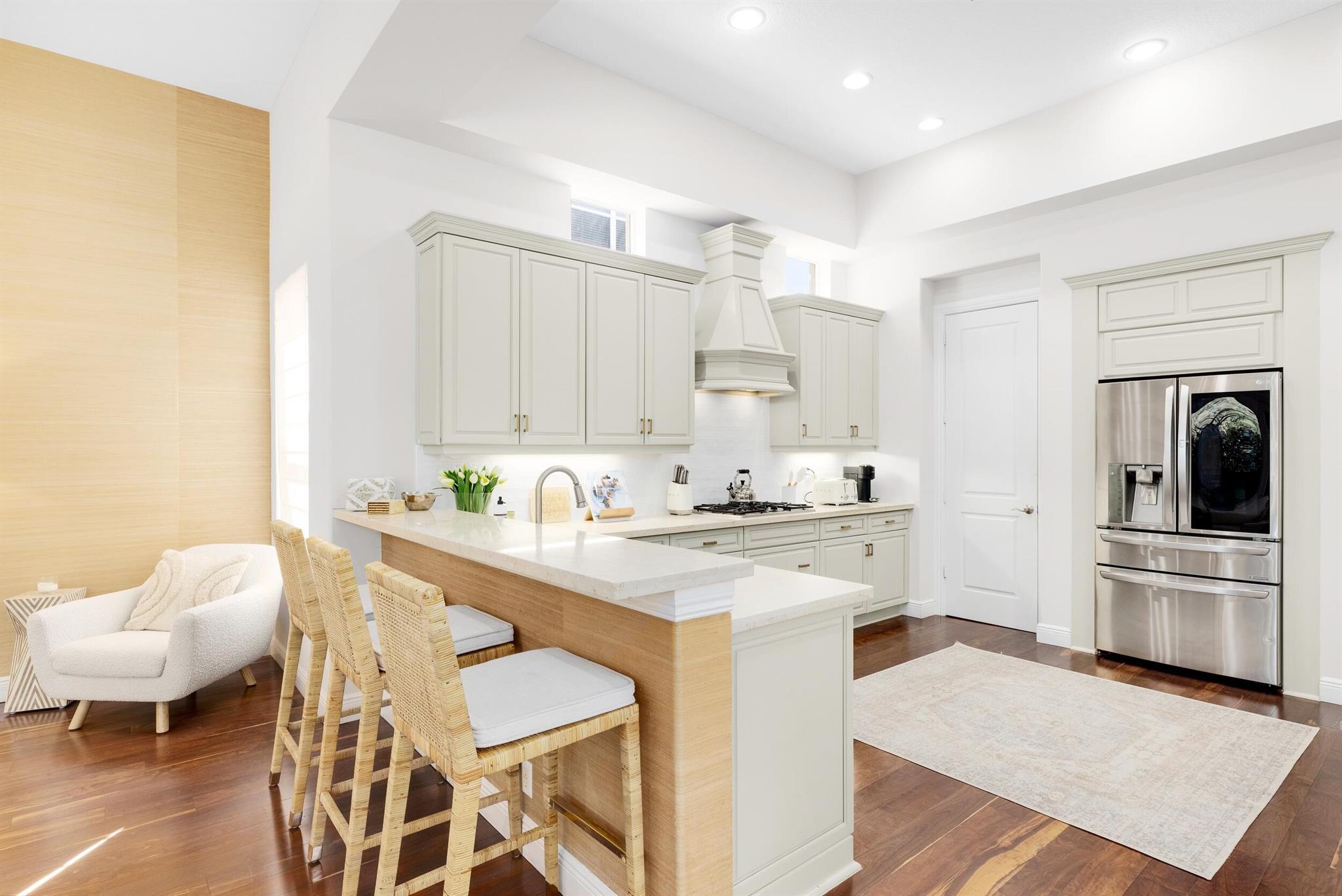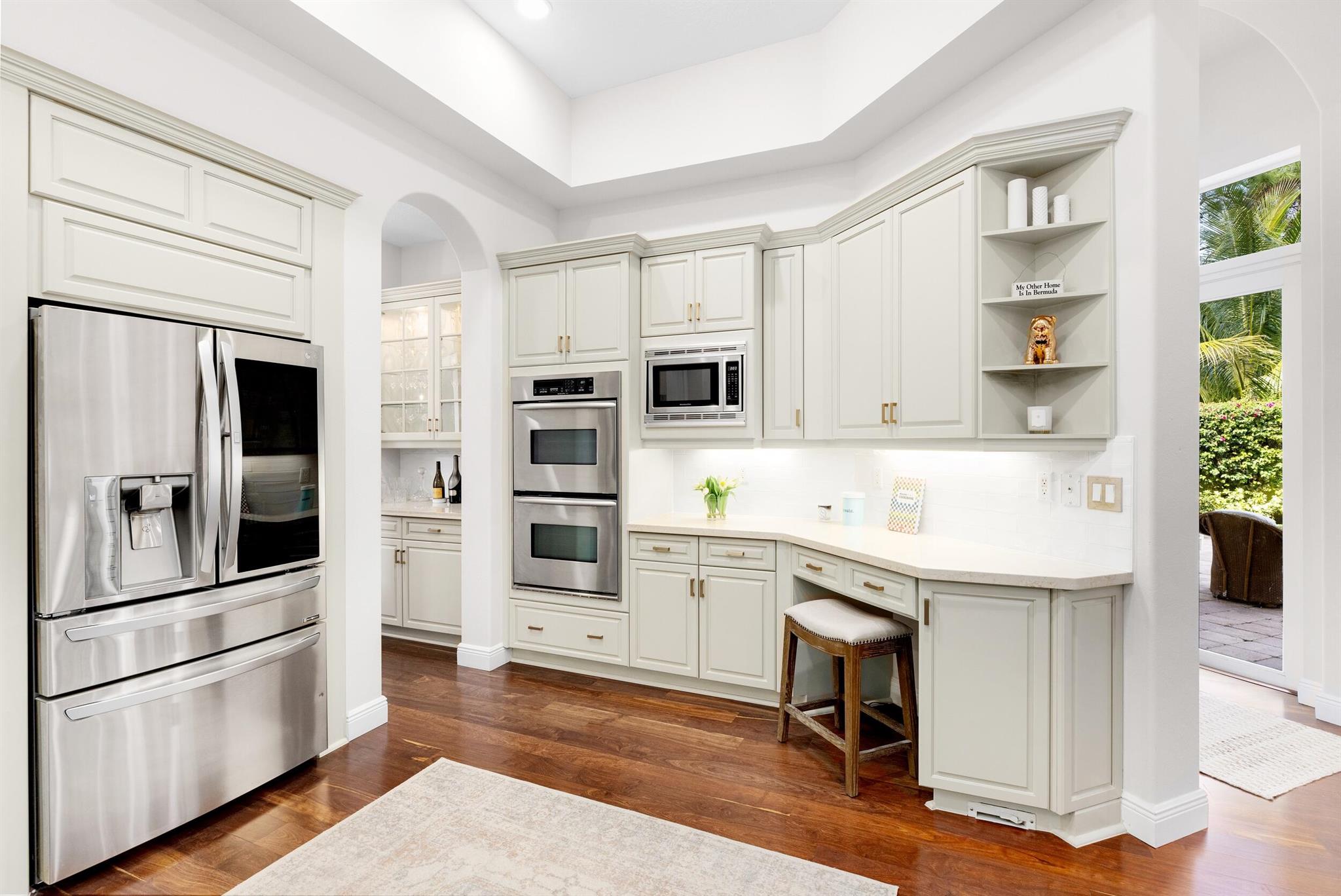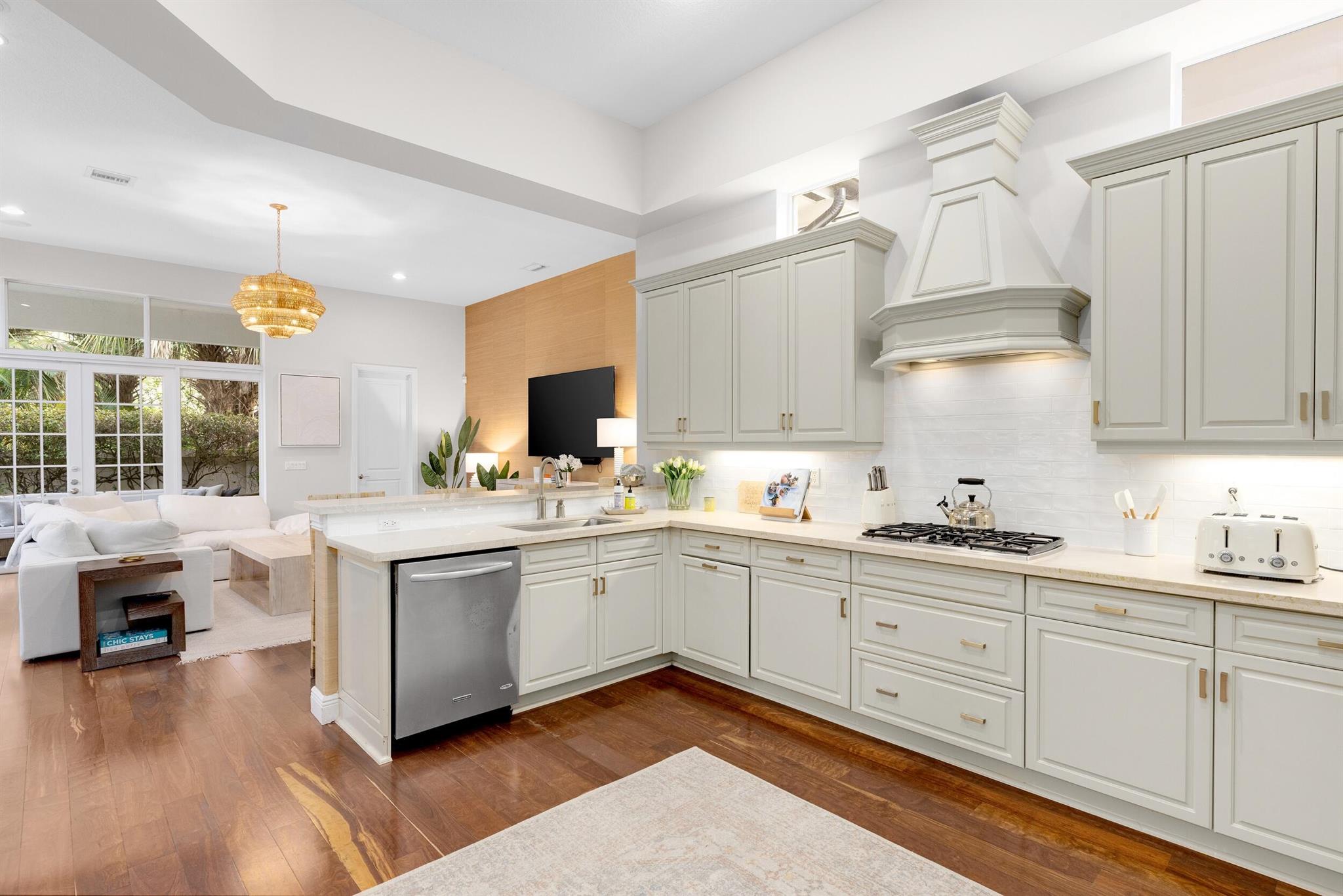This exquisite home offers the epitome of luxury living, boasting a myriad of upscale features and amenities. Situated on a private corner lot, this residence exudes elegance from the moment you arrive. As you step inside, you are greeted by vaulted ceilings that bathe the interior in natural light, creating a bright and airy ambiance throughout, and a stunning marble fireplace. The allure continues with new hardwood flooring gracing the home. The renovated kitchen showcases marble backsplash, a gas range, an oversized pantry, and a new wine fridge. The master bedroom, conveniently located on the first floor, features California walk-in closets for ample storage. For those who work from home, the den/office on the first floor provides the ideal space for productivity.