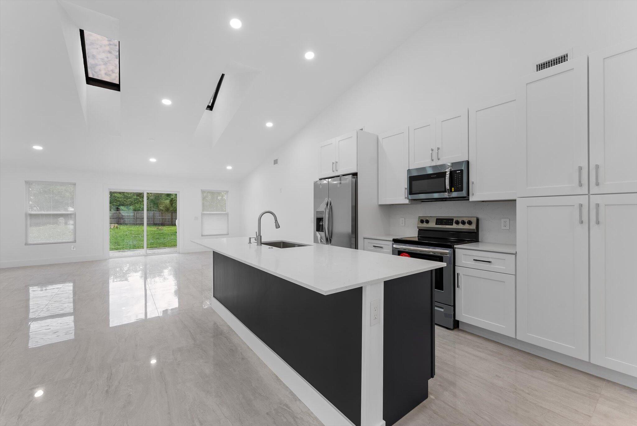 Beautiful, fully renovated, one-of-a-kind home located in Royal Palm Beach. This home sits on 18,214 sq feet, making it one of the biggest lots in the neighborhood. This home is completely renovated from top to bottom brand new roof and AC unit. This 18,000 square feet lot gives you the opportunity to do endless things. Let’s start with building your own dream pool; how about a gazebo with a custom fire pit? Space for a secondary outdoor kitchen. What if I told you that you could build a basketball/tennis court? Got a boat or an RV? No worries, you can fit 10 of those back there comfortably. Not to mention, you’re in a cul-de-sac with no HOA.