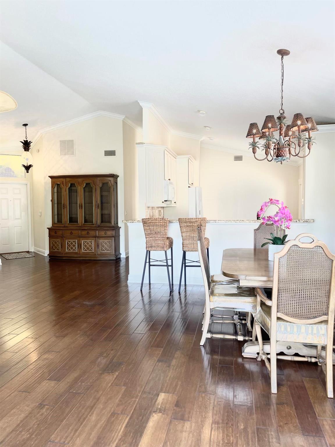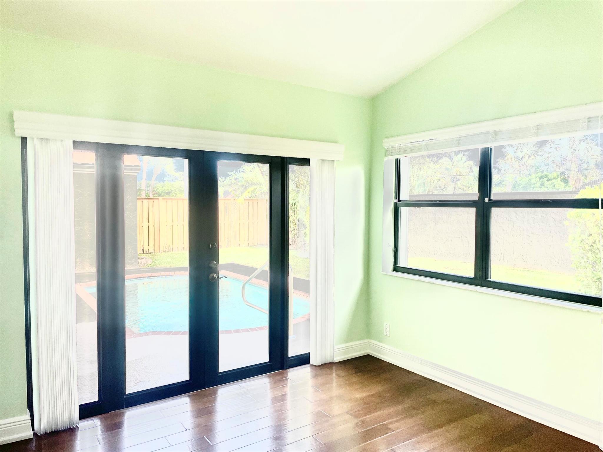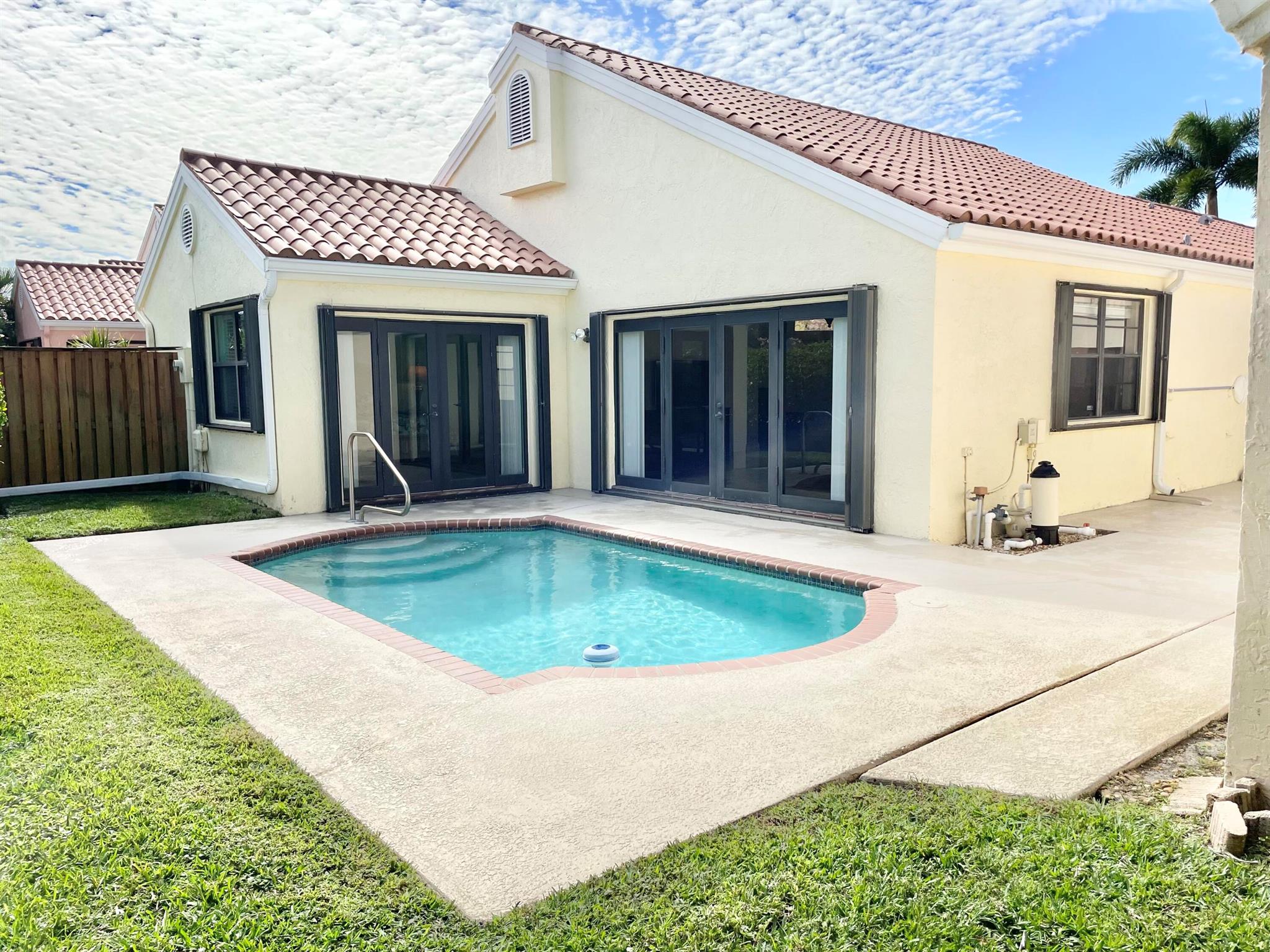 Enjoy coastal living in this stunning 3-bedroom, 2-bathroom pool home nestled in the sought-after Crystal Pointe community in Palm Beach Gardens. This single-family residence seamlessly combines comfort and elegance, offering spacious interiors, crown molding, wood floors, high ceilings, tankless water heater, a modern kitchen with Thomasville cabinets and granite countertops. The spacious master suite leads out to the pool area and includes a large bathroom featuring a multi-shower system and bench. The cabana 2nd bathroom features a spa-like soaking tub that elevates the space to pure luxury. Step outside to your private backyard with a pool and BBQ area perfect for entertaining or unwinding. Solid home – move in ready. HOA includes cable, internet and landscape.