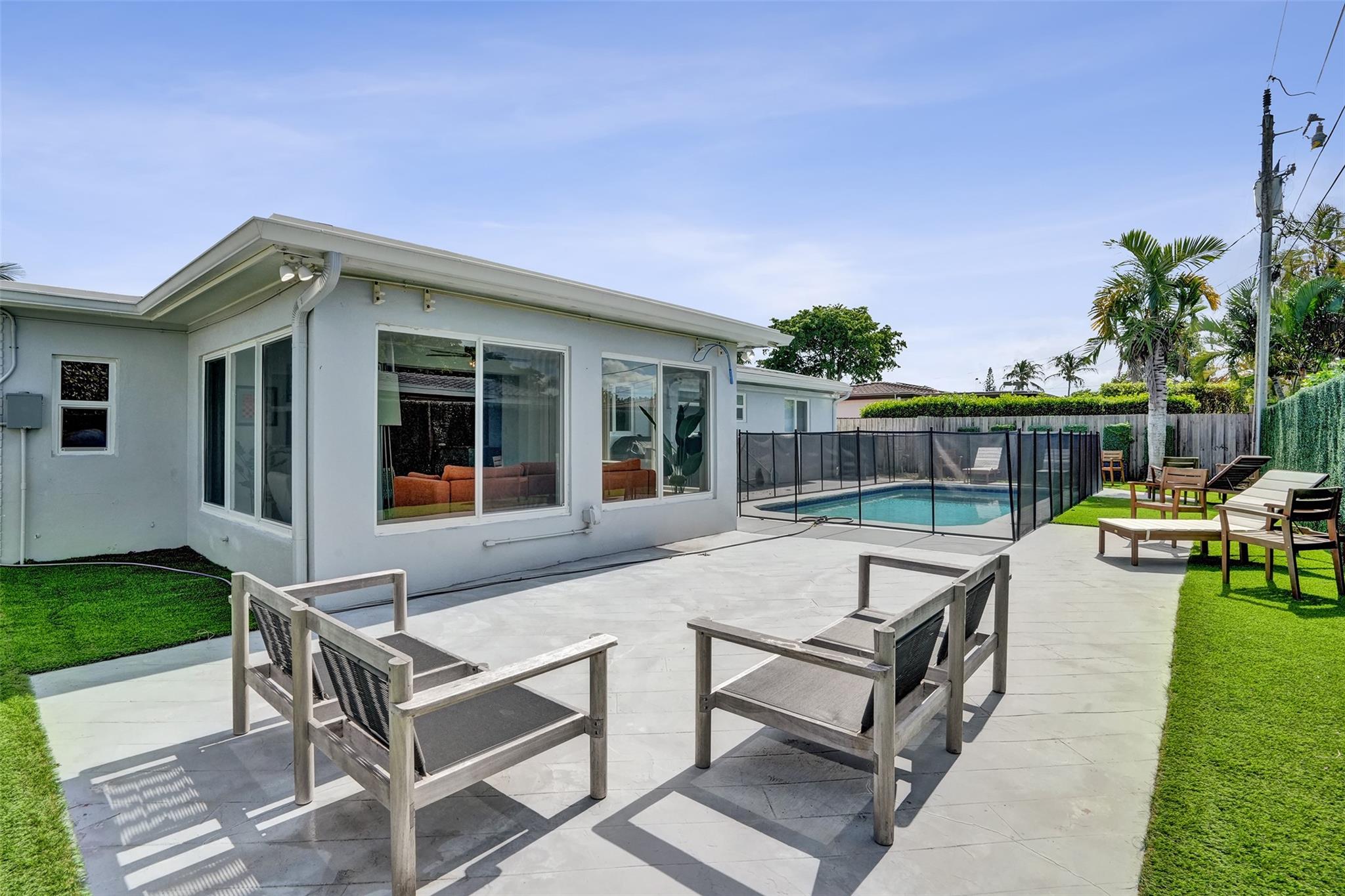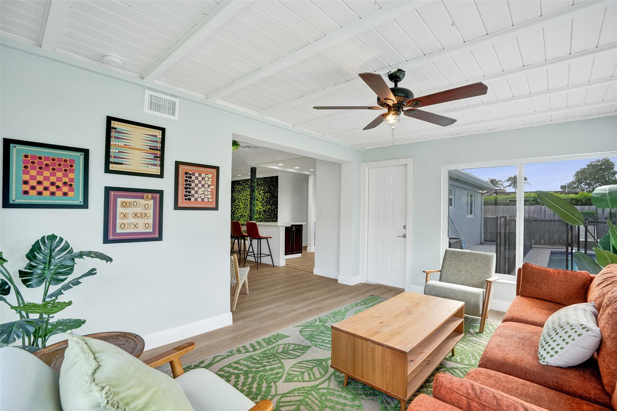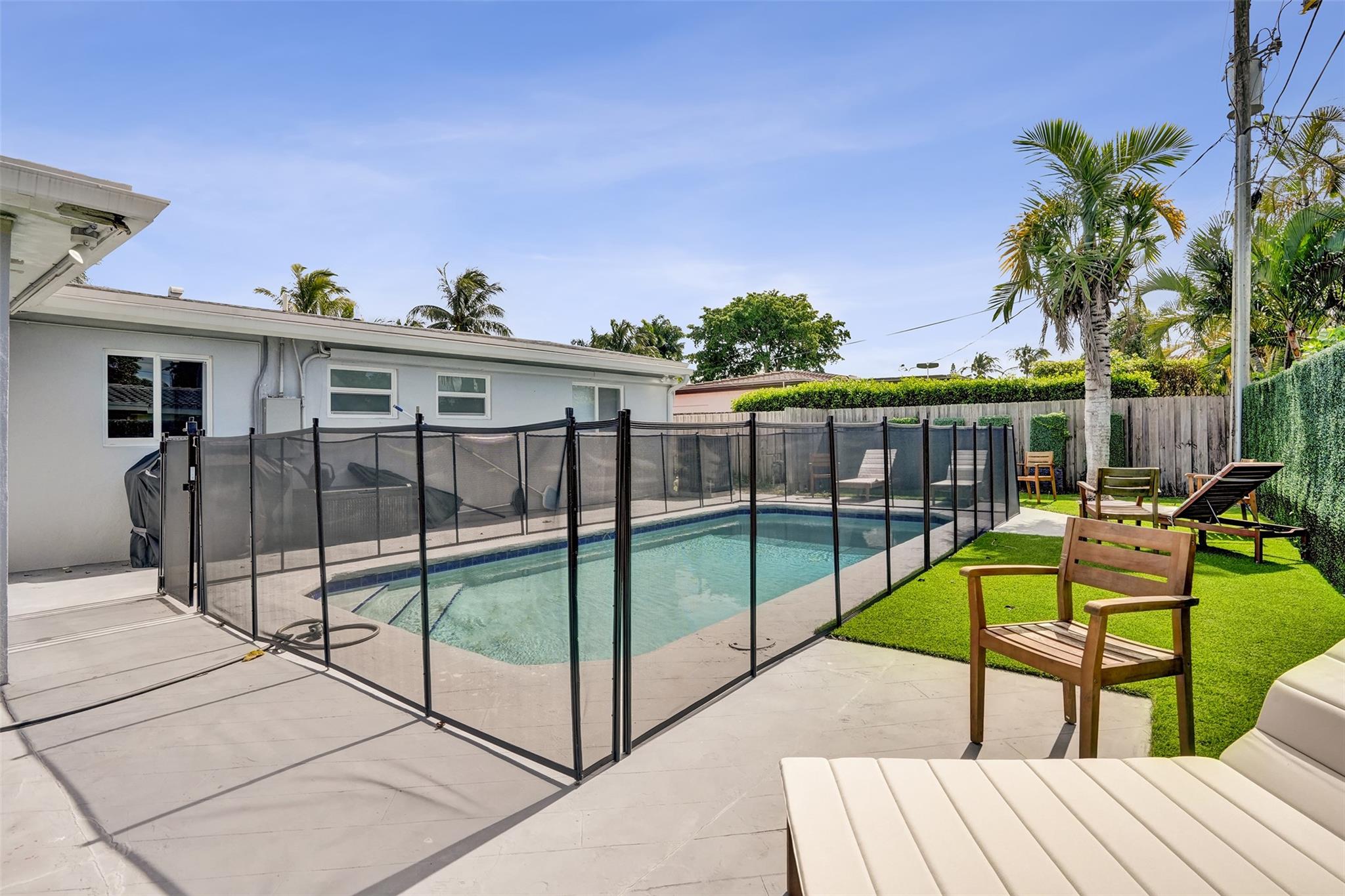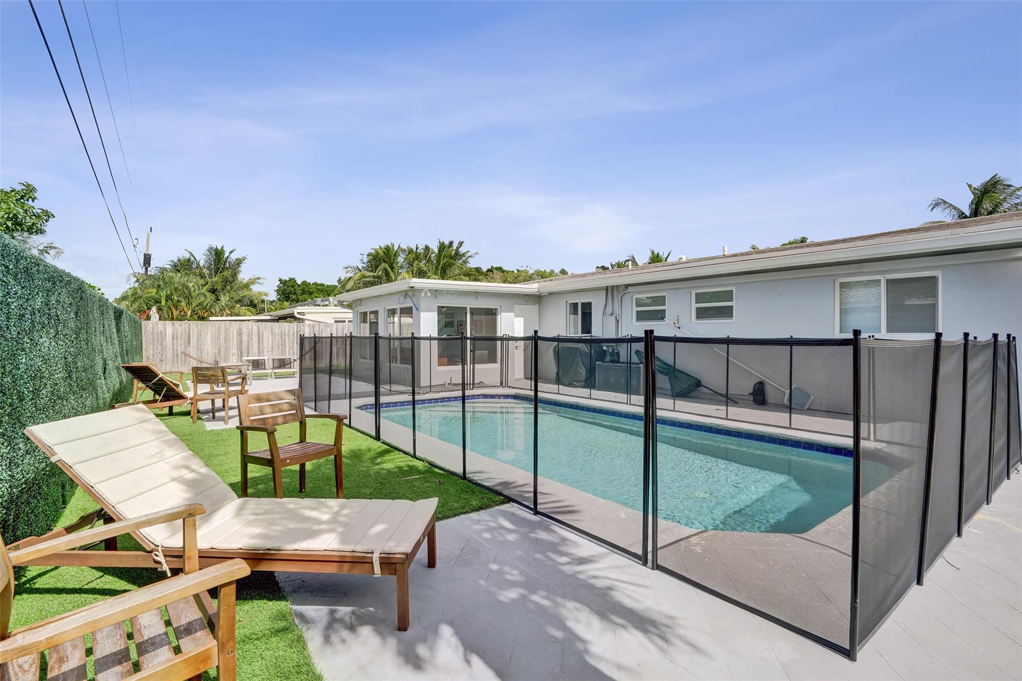 Discover Pompano Beach with this beautifully renovated 5 bed 2 bath home with additional converted garage bonus room/5th bedroom 10 minutes to the beach. The kitchen boasts granite countertops, stainless steel appliances & wood cabinets. The open living area & Florida room provide ample space for relaxation & entertainment. Outside, a pool awaits, accompanied by an electric awning & generator for full-house power coverage. Enjoy tunning updated bathrooms. With newer AC & roof systems, peace of mind is ensured. Property also offers a spacious yard, perfect for outdoor activities. Located near shopping plazas, I-95, the beach, this home grants easy access to amenities & leisure. Comfort, style & convenience in this East Pompano Beach haven. 5th bedroom is not a permitted 5th bedroom.