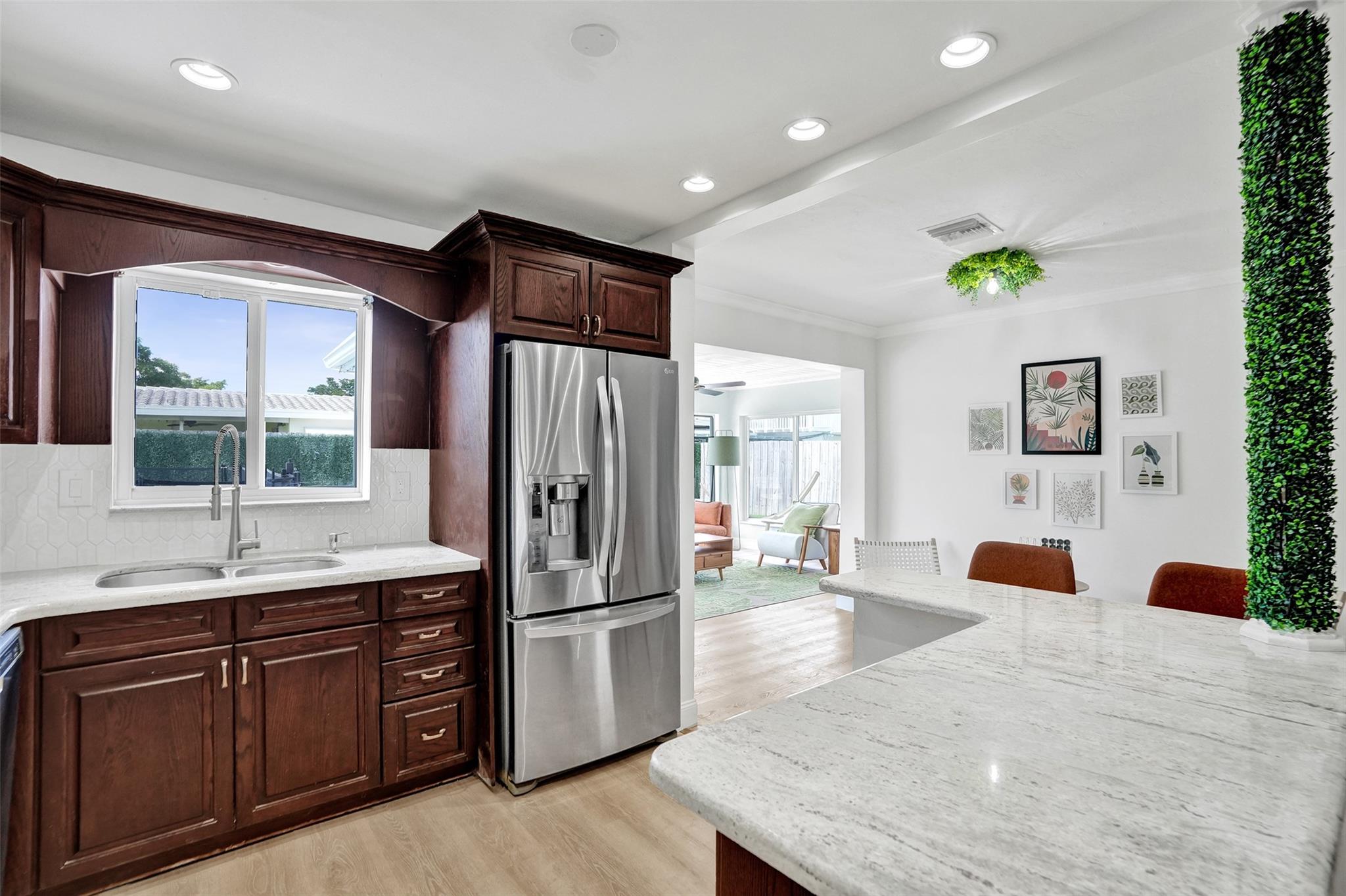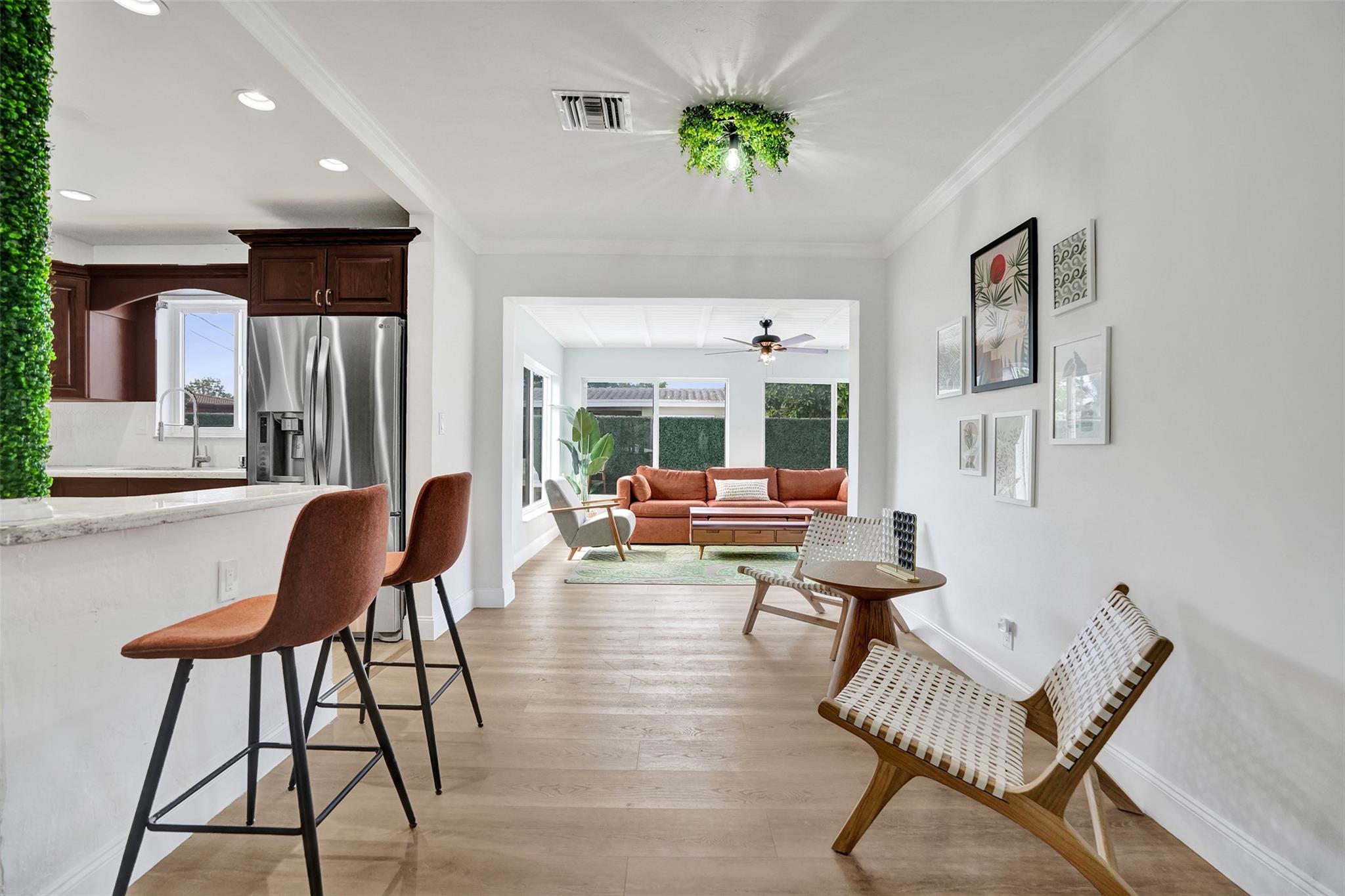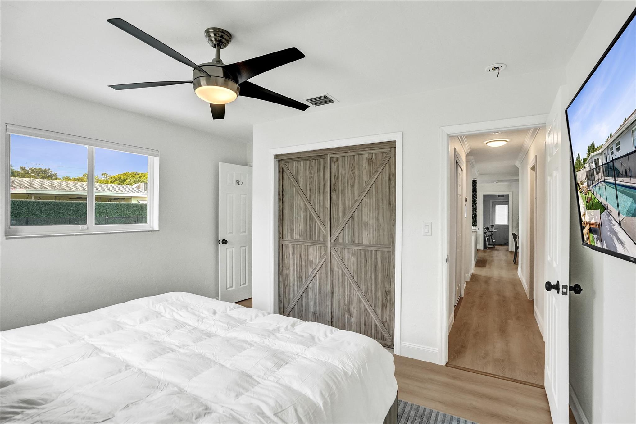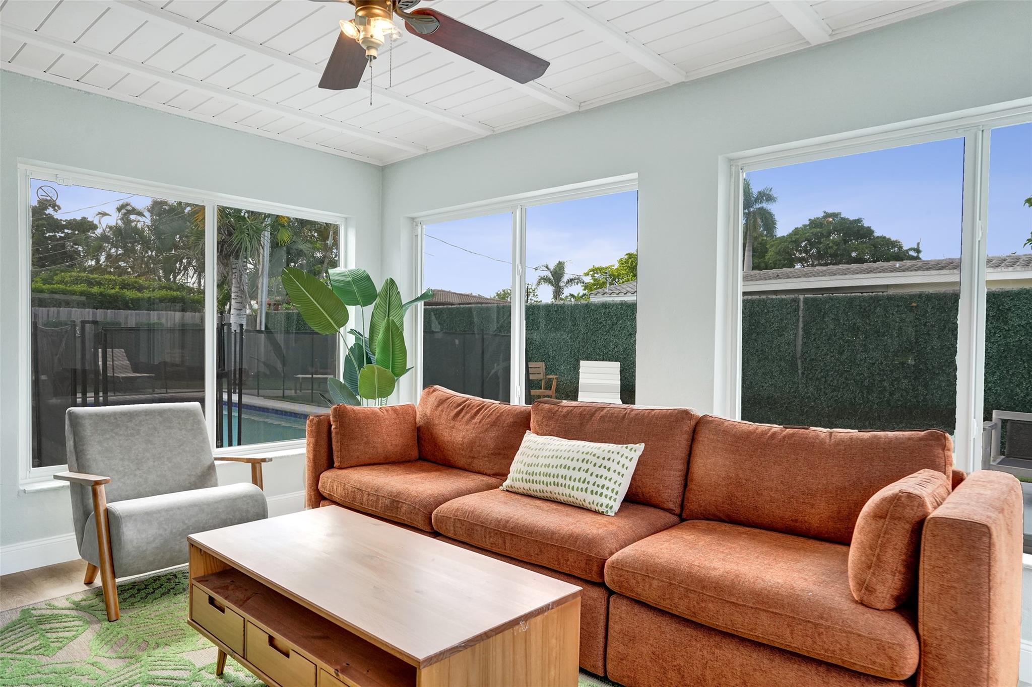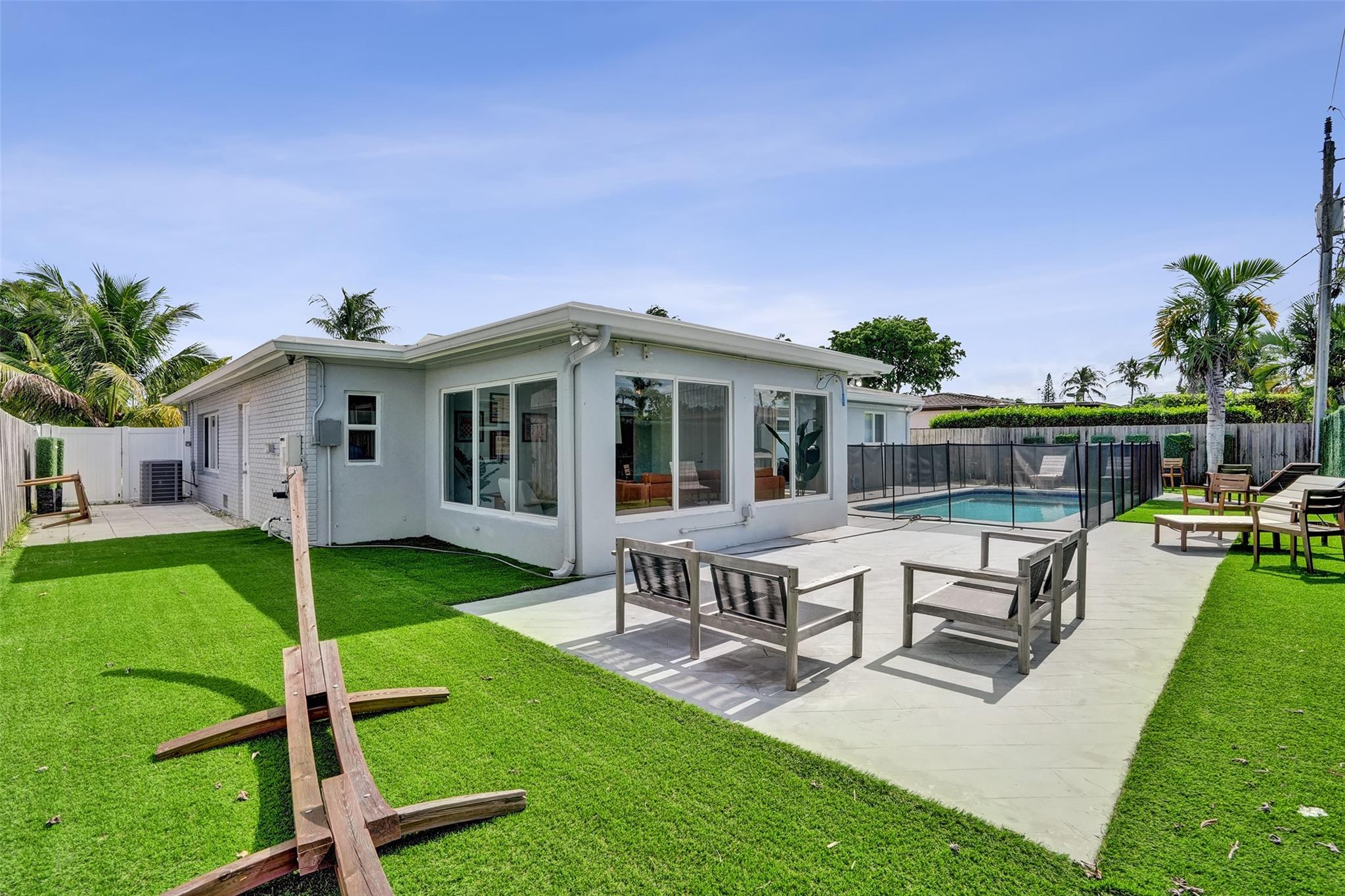 Discover Pompano Beach with this beautifully renovated 5 bed 2 bath home with additional converted garage bonus room/5th bedroom 10 minutes to the beach. The kitchen boasts granite countertops, stainless steel appliances & wood cabinets. The open living area & Florida room provide ample space for relaxation & entertainment. Outside, a pool awaits, accompanied by an electric awning & generator for full-house power coverage. Enjoy tunning updated bathrooms. With newer AC & roof systems, peace of mind is ensured. Property also offers a spacious yard, perfect for outdoor activities. Located near shopping plazas, I-95, the beach, this home grants easy access to amenities & leisure. Comfort, style & convenience in this East Pompano Beach haven. 5th bedroom is not a permitted 5th bedroom.