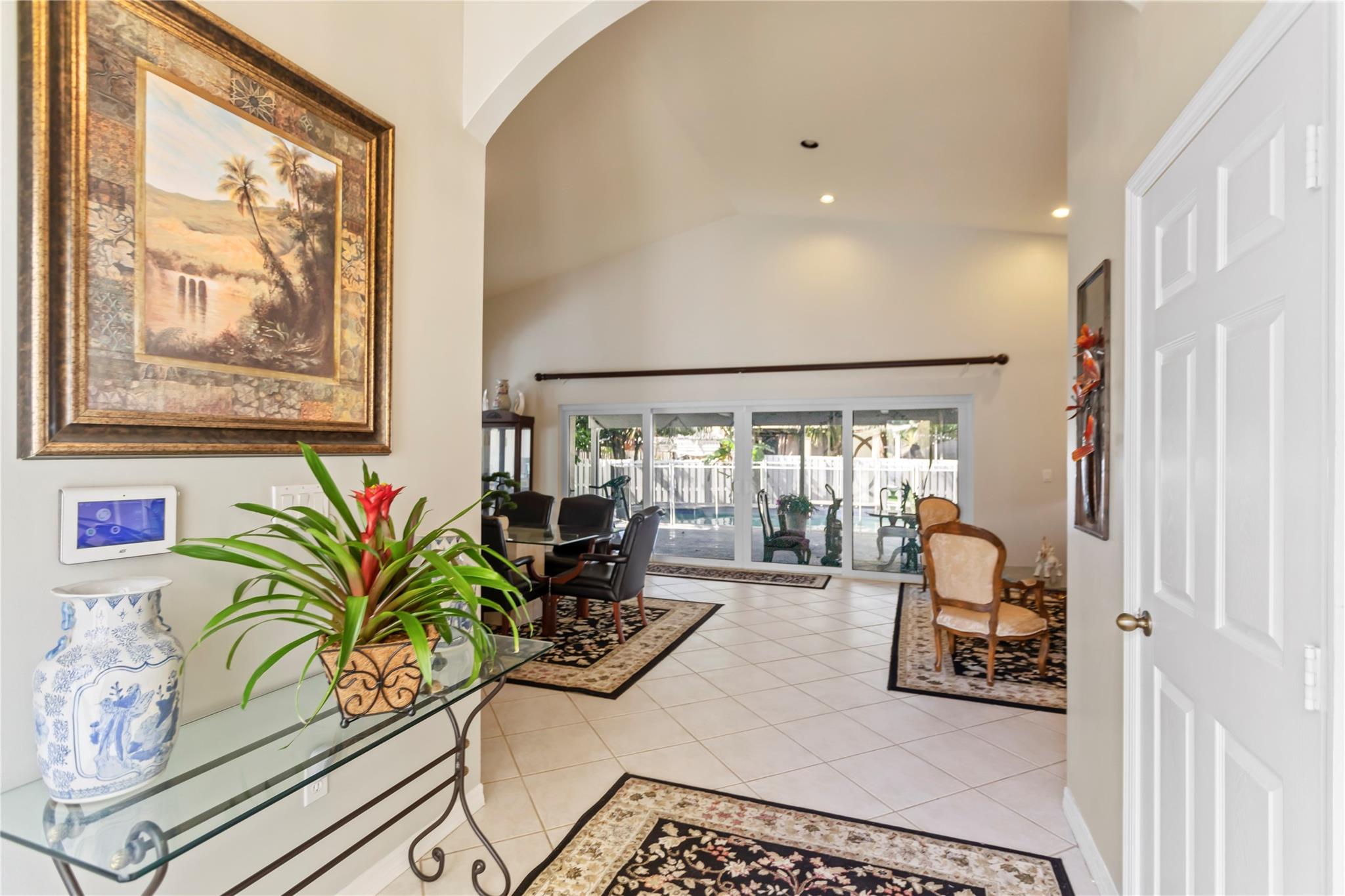 Welcome to your future home! This delightful 4 bed 2.5 bath pool home is ready for you and your family. Enjoy an open kitchen with new stainless steel appliances, a spacious layout, and a split floor plan. Vaulted ceilings and neutral tile flooring add an airy and open feel. Benefit from energy-efficient features like high-impact windows, doors, and solar panels. Step into the backyard retreat with a covered patio overlooking the pool and flourishing fruit trees. Key updates include AC 2016, water heater 2021, and kitchen appliances a year old. Conveniently located near the Sawgrass Mills mall, dining, entertainment, great schools, I-595, I-75, Sawgrass Expressway, and much more. Your future home awaits! Schedule a tour!
