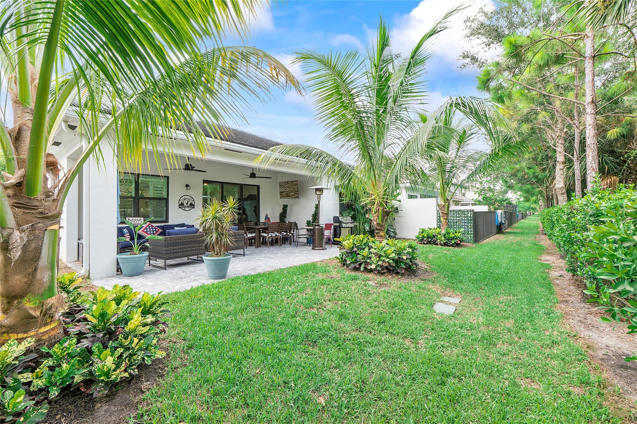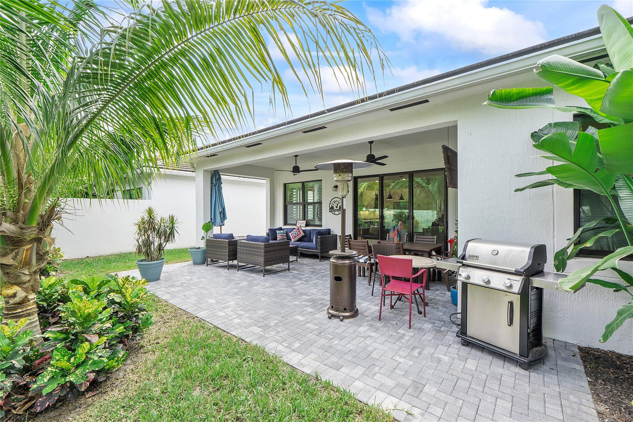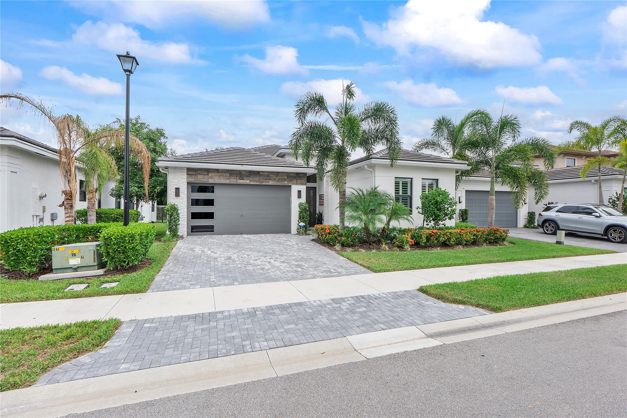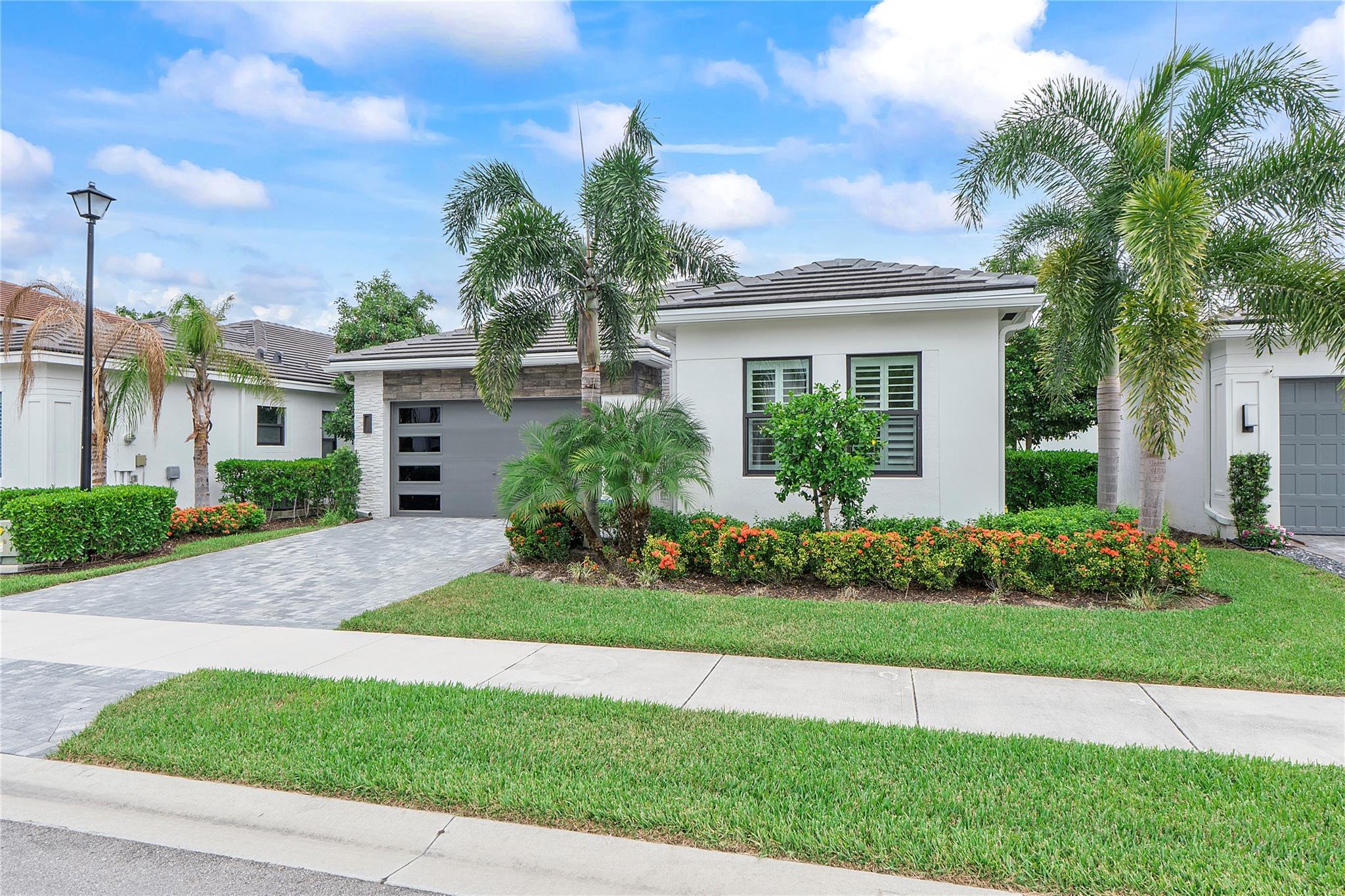 MOTIVATED SELLER! This 3-bed, 2-bath, single-story ranch-style home offers a spacious great room floor plan w/modern upgrades & contemporary finishes. EAST facing rear yard! Enjoy your evenings on the oversized shaded & private covered lanai! Impeccably maintained. Features a graceful entry foyer, private backyard, separate laundry room, upgraded kitchen w/quartz countertops, premium cabinets, & appliance package. Located in a desirable gated community w/clubhouse, fitness center, pool, tennis/pickleball, & basketball courts. Excellent schools & close to everything in Central Palm Beach County. Single-story living at its best with an assumable VA loan may be available to qualified veteran. A must-see home that blends style, comfort, & convenience. Murphy Bed is included. SF. is approx.
