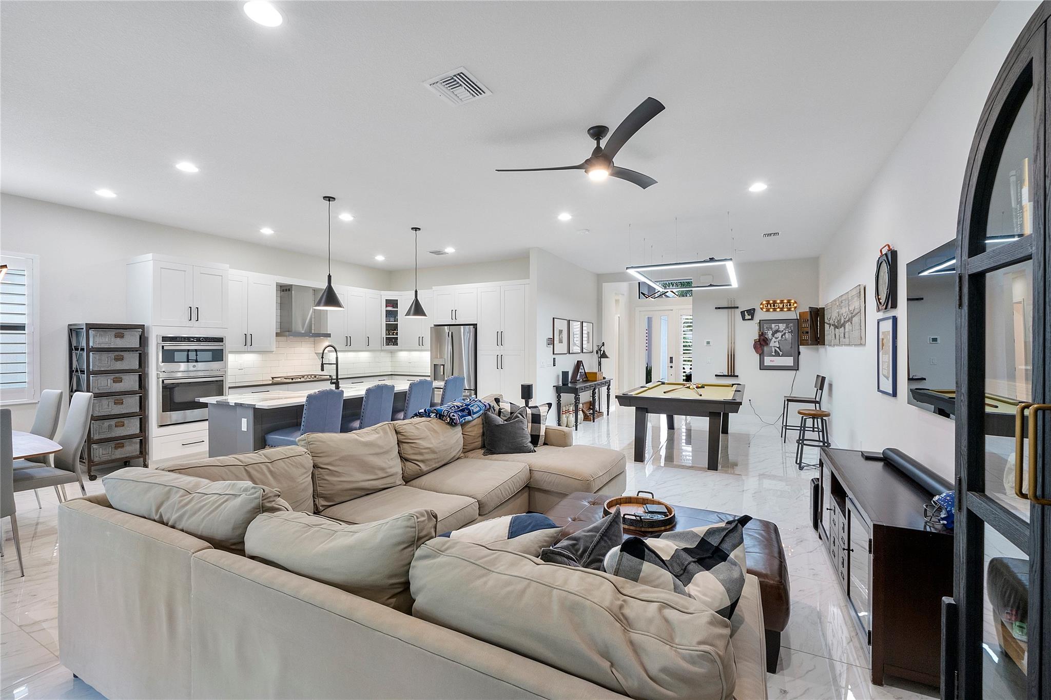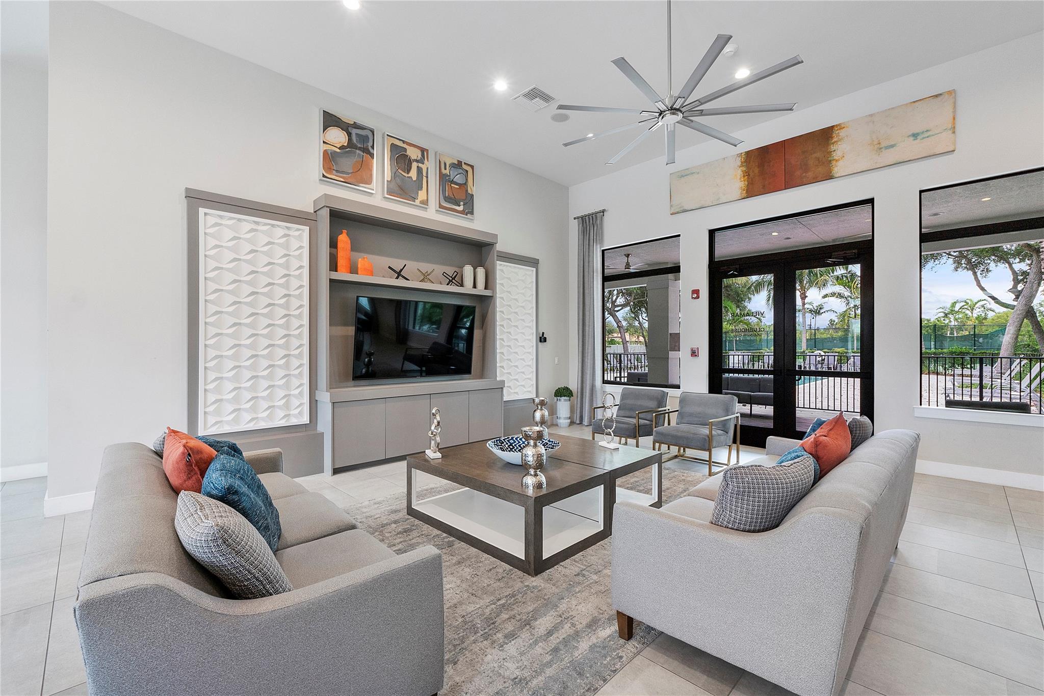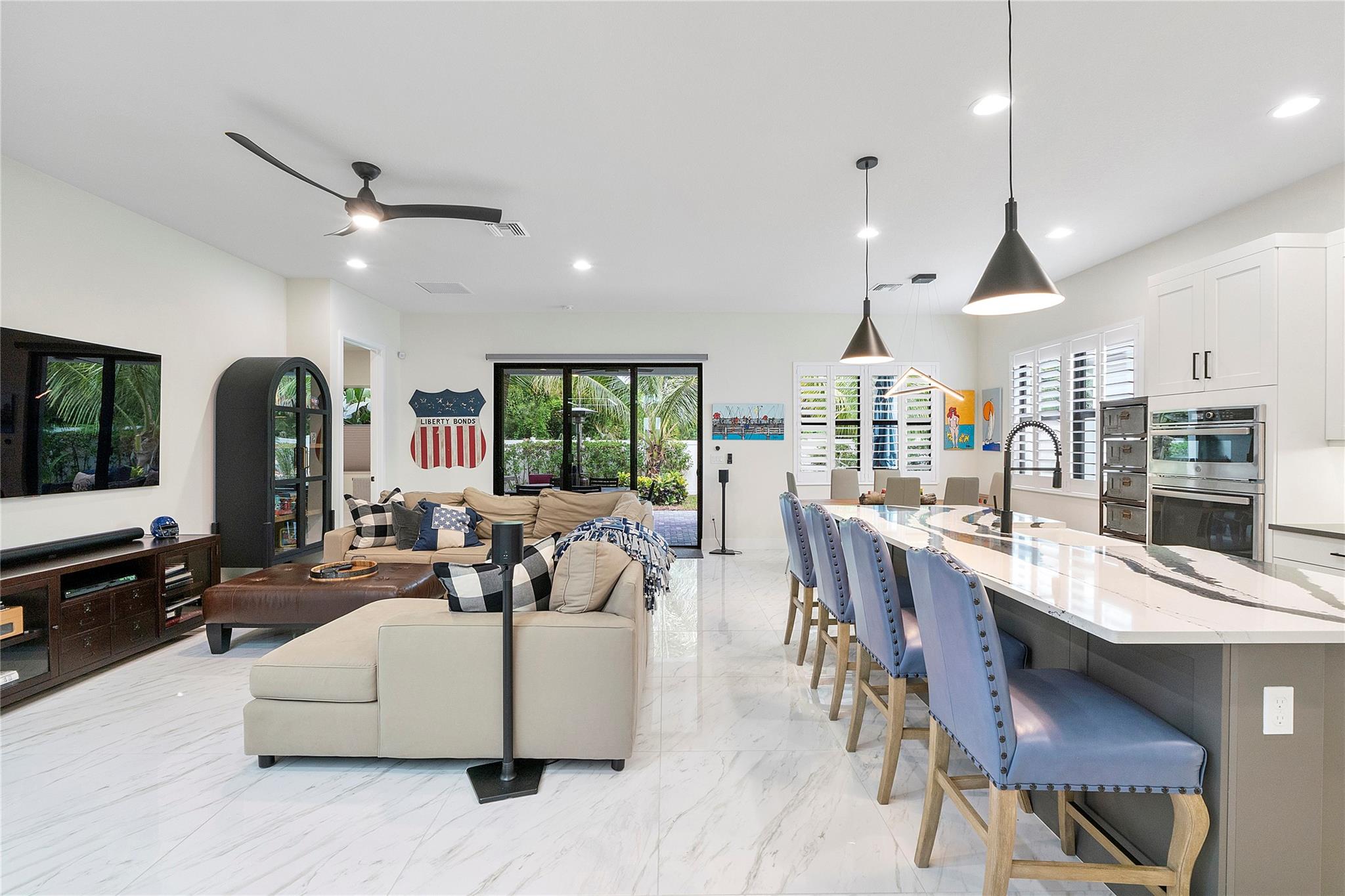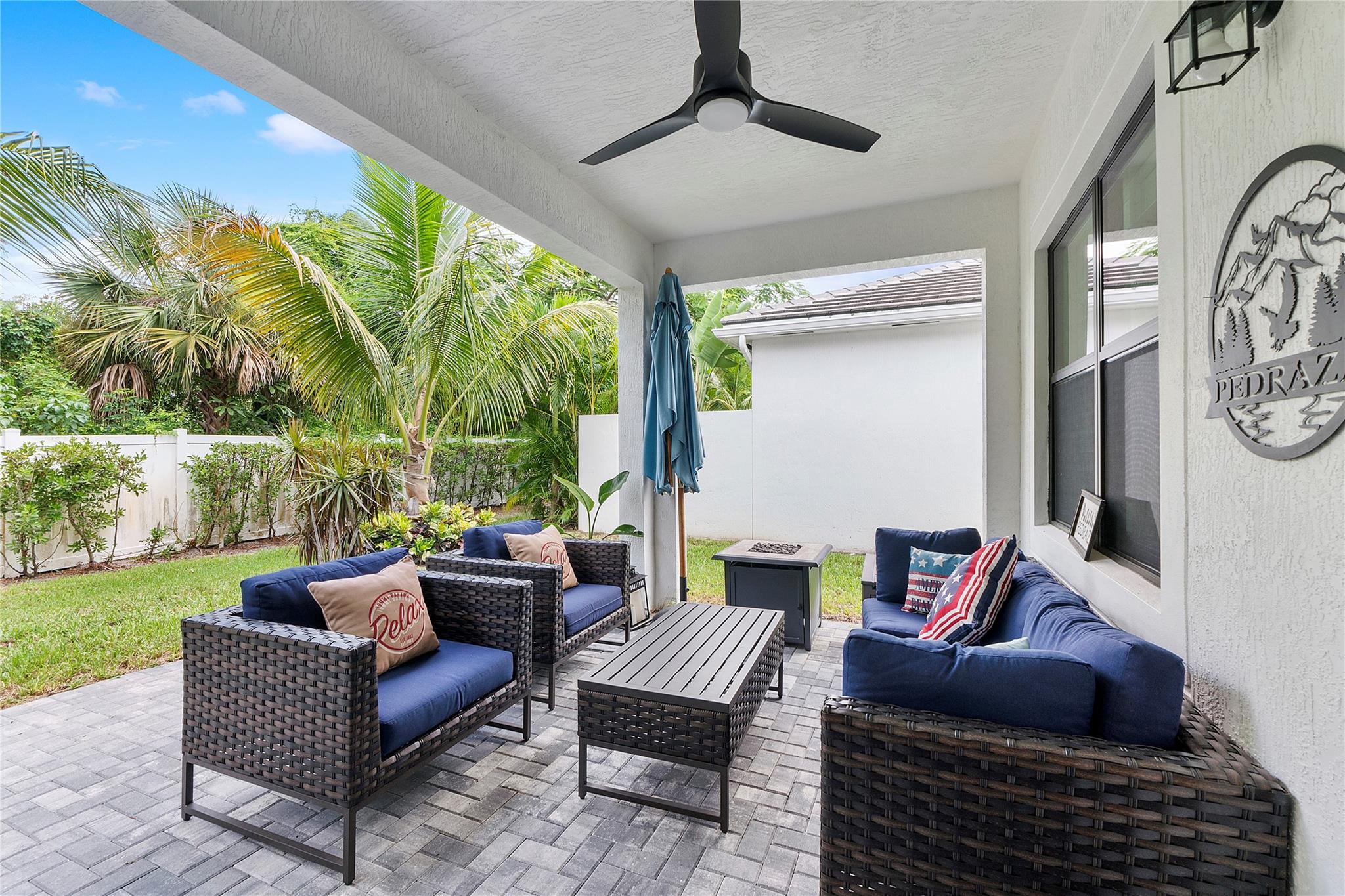 MOTIVATED SELLER! This 3-bed, 2-bath, single-story ranch-style home offers a spacious great room floor plan w/modern upgrades & contemporary finishes. EAST facing rear yard! Enjoy your evenings on the oversized shaded & private covered lanai! Impeccably maintained. Features a graceful entry foyer, private backyard, separate laundry room, upgraded kitchen w/quartz countertops, premium cabinets, & appliance package. Located in a desirable gated community w/clubhouse, fitness center, pool, tennis/pickleball, & basketball courts. Excellent schools & close to everything in Central Palm Beach County. Single-story living at its best with an assumable VA loan may be available to qualified veteran. A must-see home that blends style, comfort, & convenience. Murphy Bed is included. SF. is approx.
