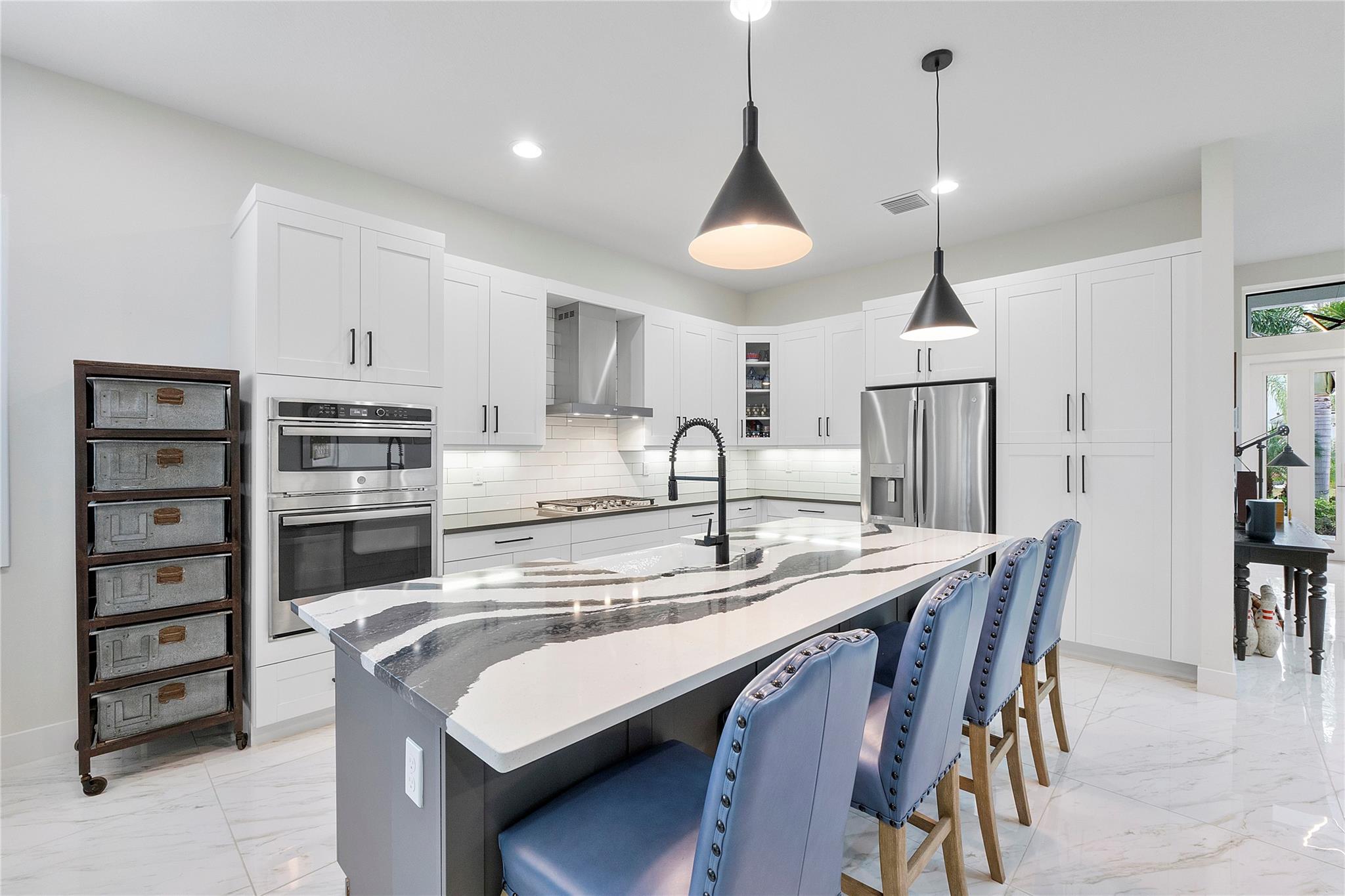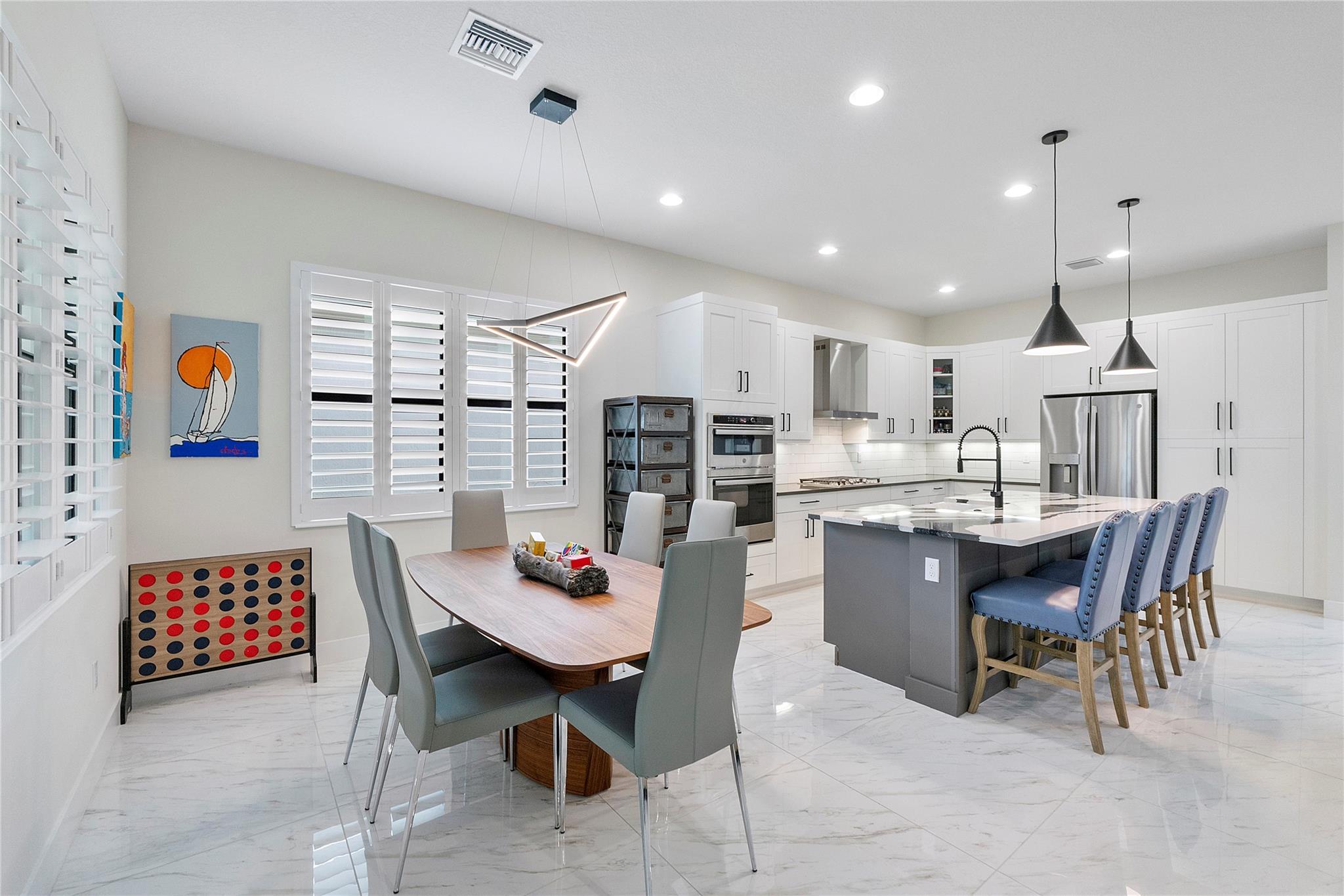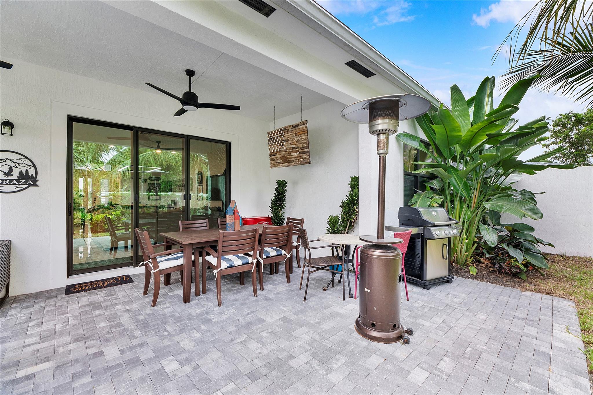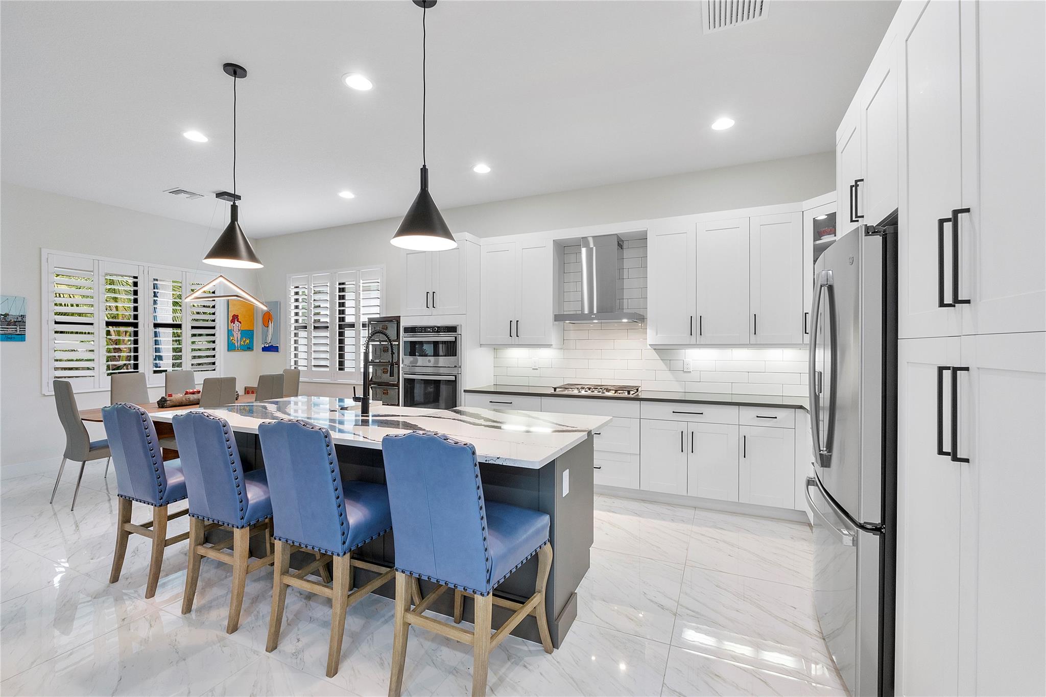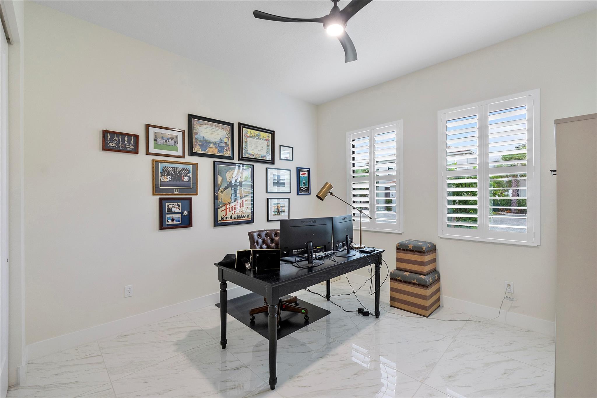 MOTIVATED SELLER! This 3-bed, 2-bath, single-story ranch-style home offers a spacious great room floor plan w/modern upgrades & contemporary finishes. EAST facing rear yard! Enjoy your evenings on the oversized shaded & private covered lanai! Impeccably maintained. Features a graceful entry foyer, private backyard, separate laundry room, upgraded kitchen w/quartz countertops, premium cabinets, & appliance package. Located in a desirable gated community w/clubhouse, fitness center, pool, tennis/pickleball, & basketball courts. Excellent schools & close to everything in Central Palm Beach County. Single-story living at its best with an assumable VA loan may be available to qualified veteran. A must-see home that blends style, comfort, & convenience. Murphy Bed is included. SF. is approx.