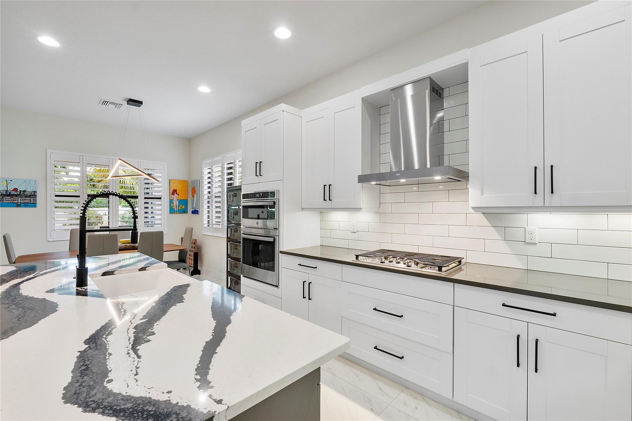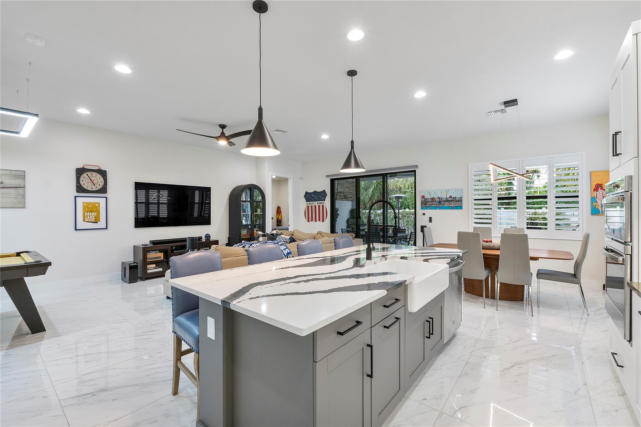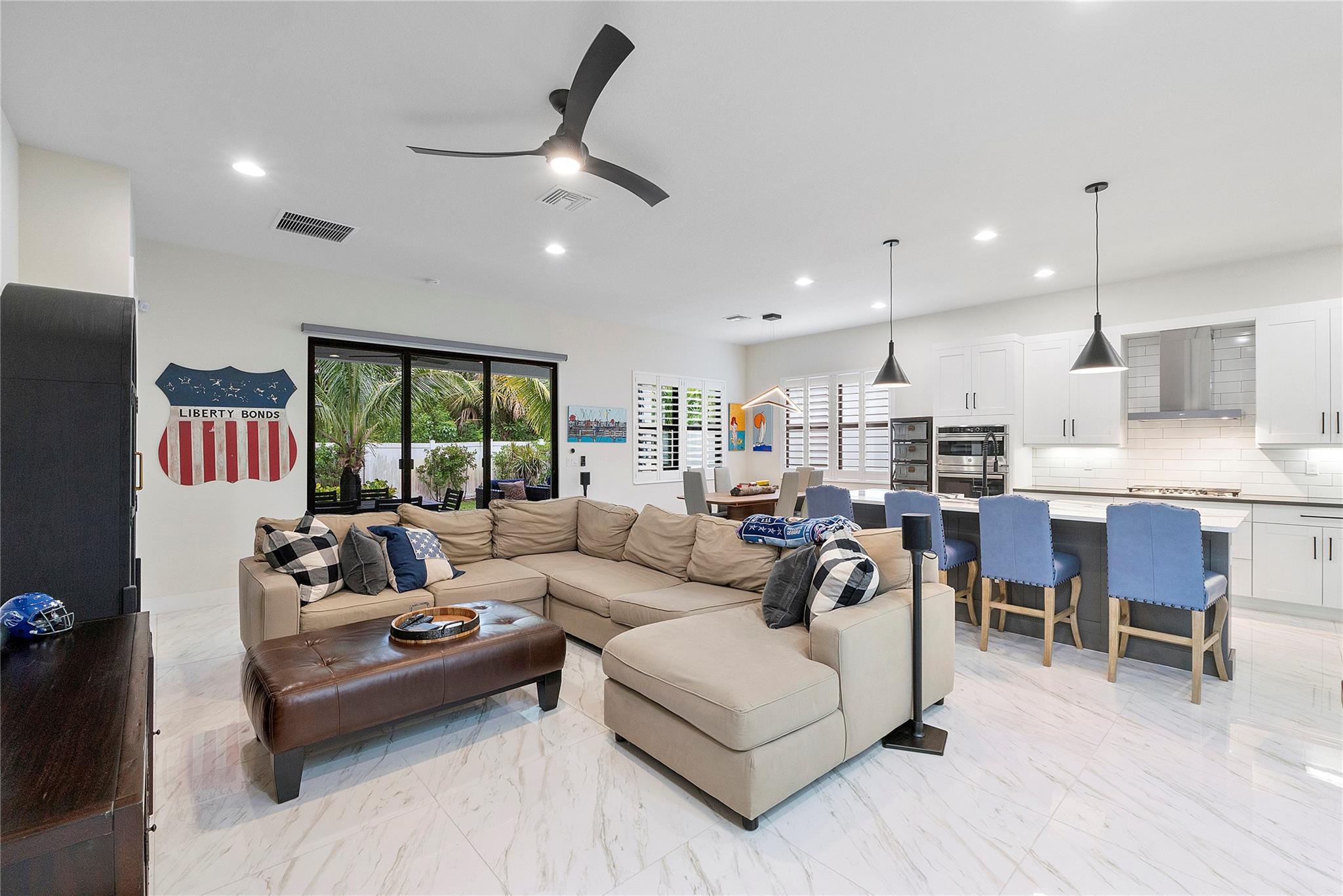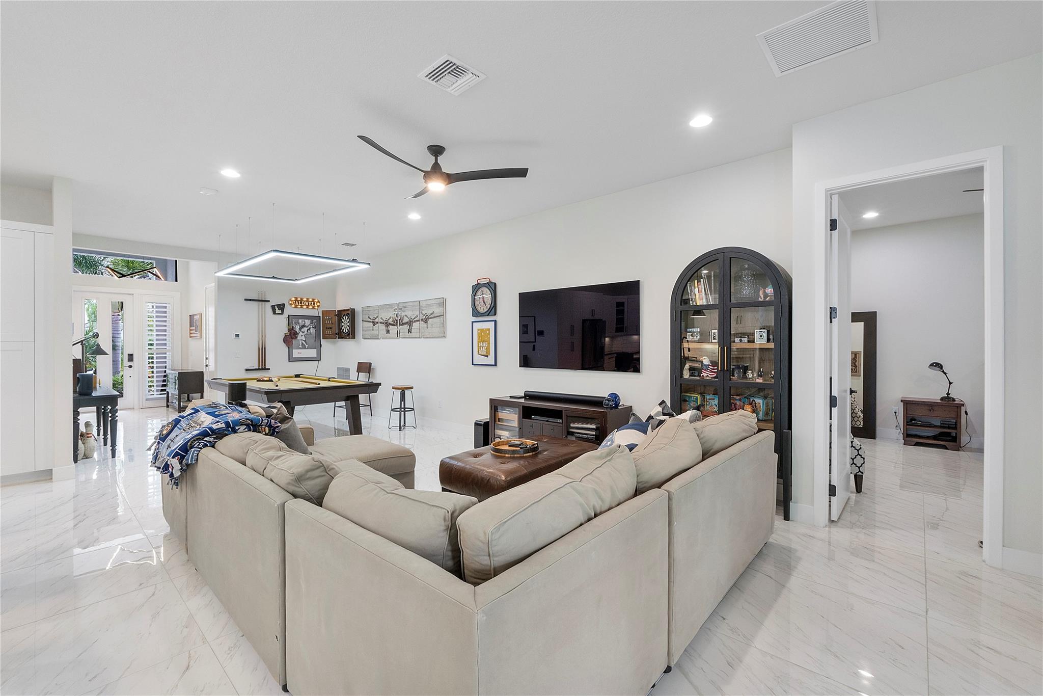MOTIVATED SELLER! This 3-bed, 2-bath, single-story ranch-style home offers a spacious great room floor plan w/modern upgrades & contemporary finishes. EAST facing rear yard! Enjoy your evenings on the oversized shaded & private covered lanai! Impeccably maintained. Features a graceful entry foyer, private backyard, separate laundry room, upgraded kitchen w/quartz countertops, premium cabinets, & appliance package. Located in a desirable gated community w/clubhouse, fitness center, pool, tennis/pickleball, & basketball courts. Excellent schools & close to everything in Central Palm Beach County. Single-story living at its best with an assumable VA loan may be available to qualified veteran. A must-see home that blends style, comfort, & convenience. Murphy Bed is included. SF. is approx.