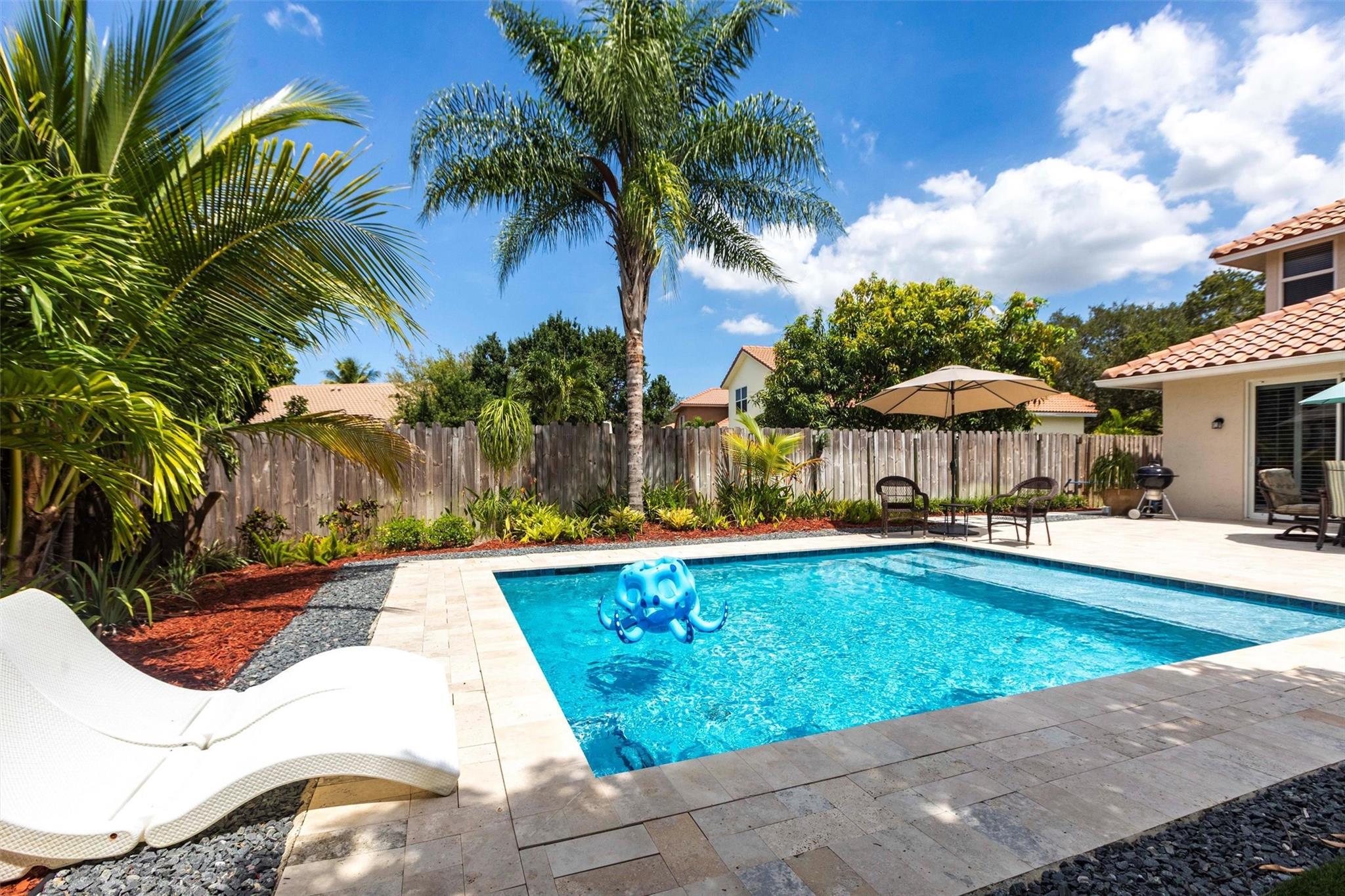 Updated 4 bed 2.5 bath home in Embassy Lakes. This home has 2886 sq feet of living space on an oversized corner lot of 10794 sq feet. All impact windows and doors including the garage door. Paved driveway has been enlarged to fit six cars. Paved walkway leading to the front door with extended porch. Resort Style gated community w/hotel sized pool, clubhouse, gym, sports courts, and three 24 hr. manned gates.. Newly painted. Extended driveway and porch. Large picture windows & gorgeous plantation shutters to create an open concept layout. The kitchen flows into the family room and features white cabinetry, granite tops and new GE stainless steel appliances, to include a wine cooler and a large pantry with pull out shelves.