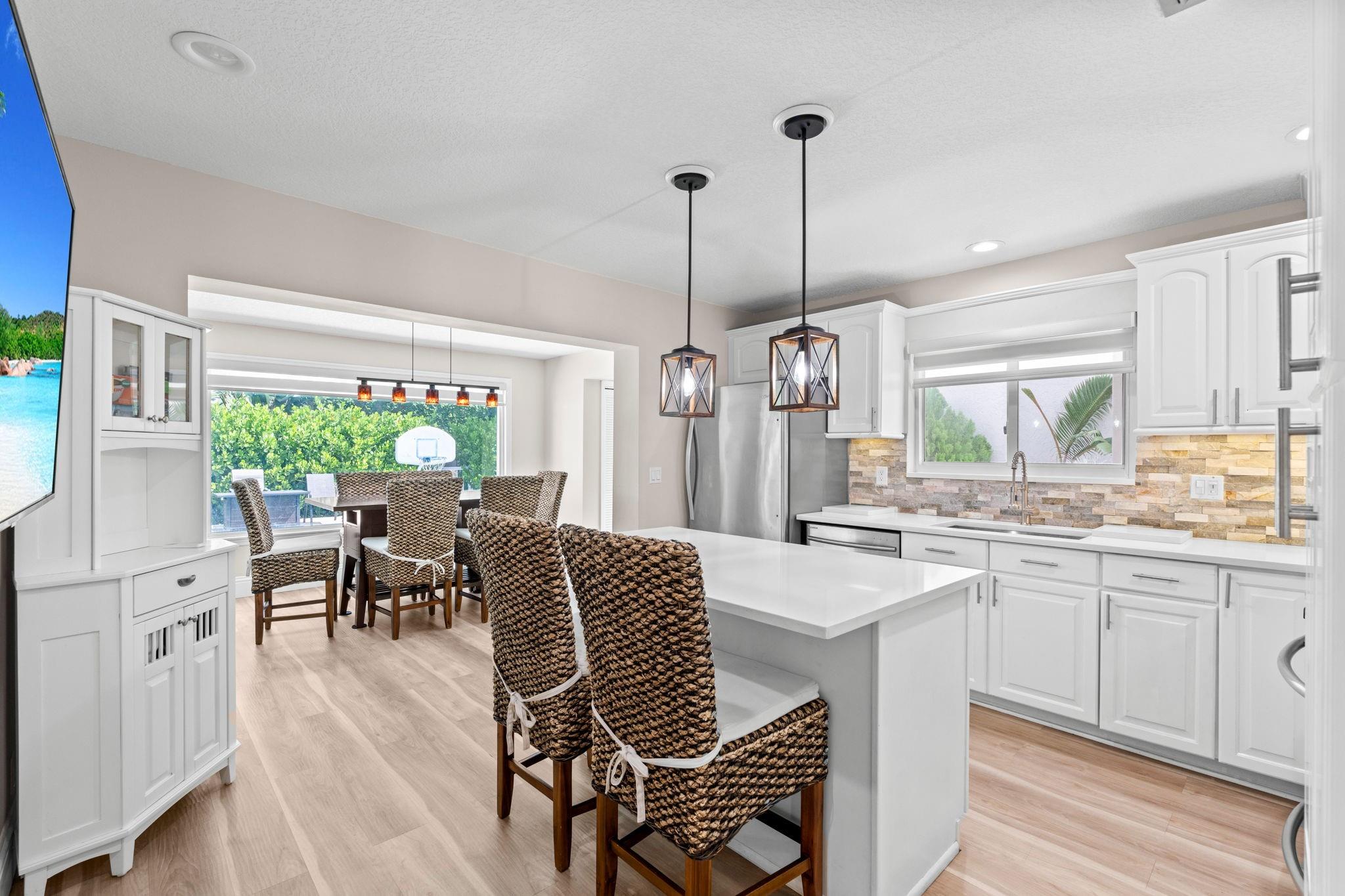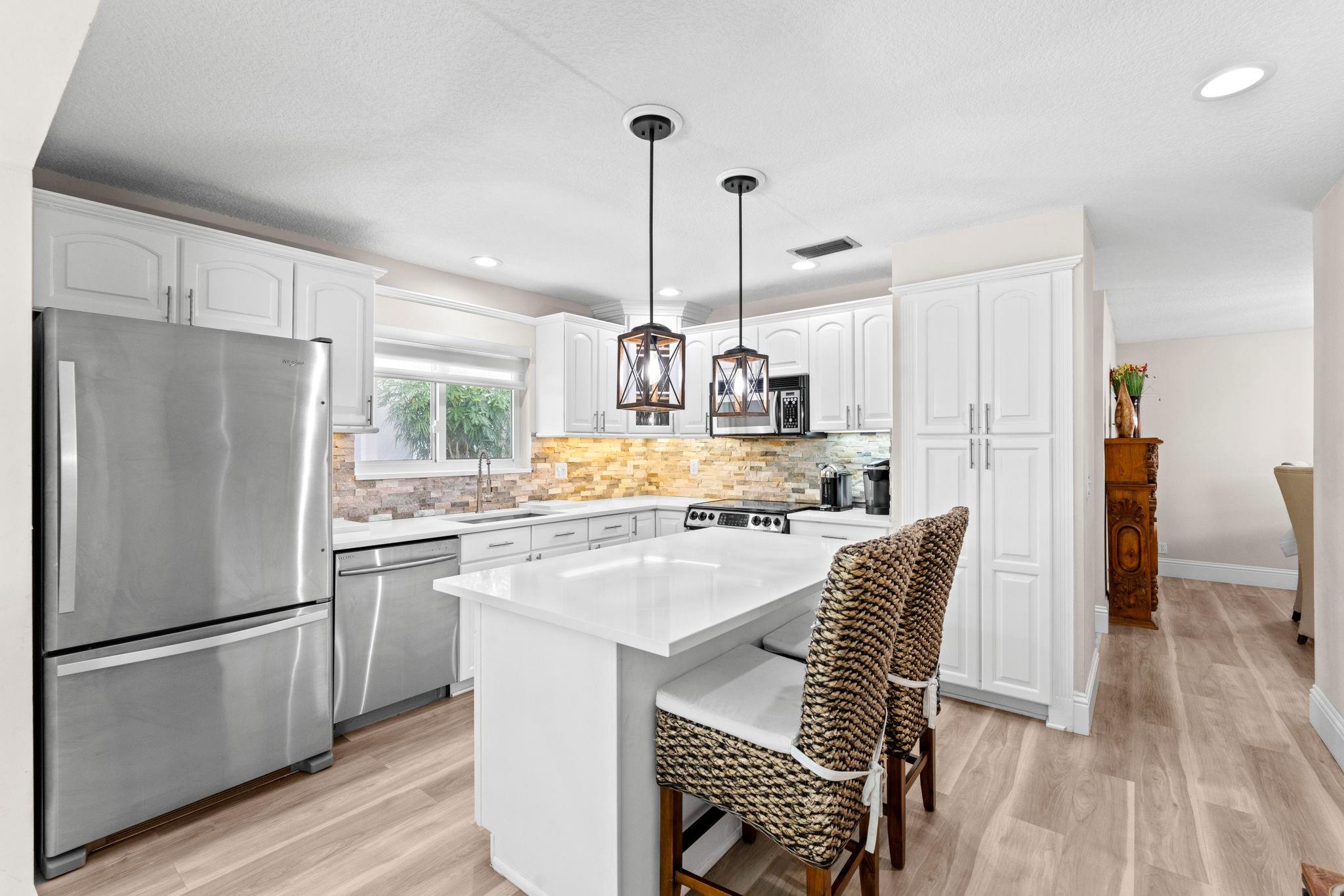 Inside, brand-new vinyl flooring flows seamlessly throughout, complementing a modern island kitchen with sleek cabinetry, stainless steel appliances, and ample counter space—perfect for everyday living and entertaining.