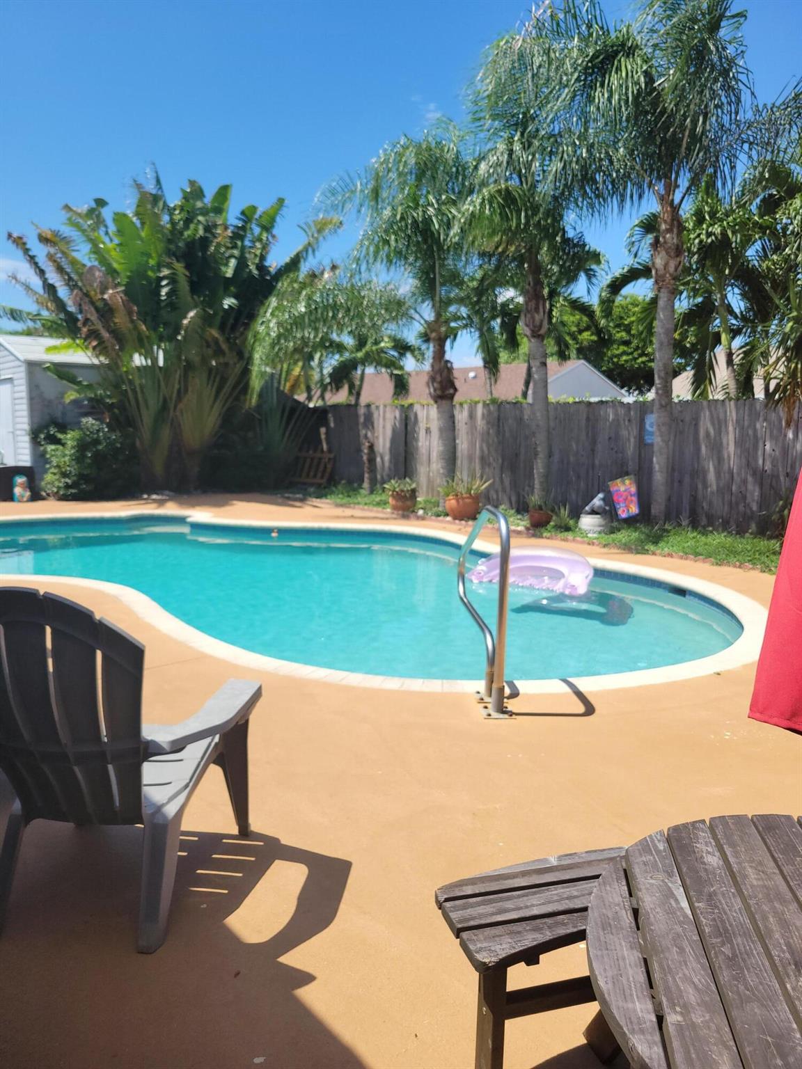 NEW ROOF 2025, new fence, updated front soffits, and fresh paneling, make this home move-in ready from day one. Welcome to your slice of paradise in the highly sought-after Le Chalet subdivision of West Boynton Beach. This appealing 3BR/2BA home features on open-concept design with a versatile split bedroom layout, perfectly positioned on a corner lot in a quiet, family-friendly neighborhood with A-rated schools. Enjoy the Florida lifestyle year -round in your beautiful backyard with an inviting in-ground pool- your private oasis at the end of each day