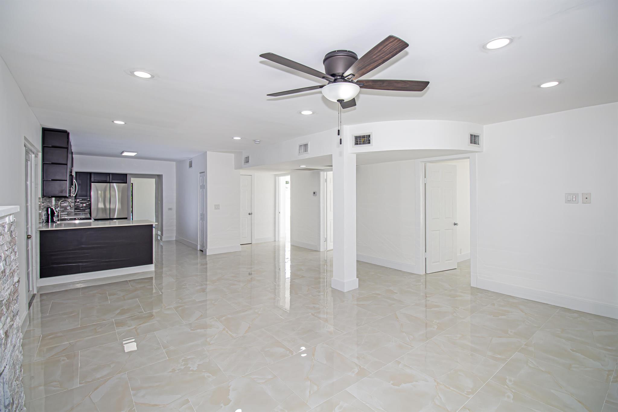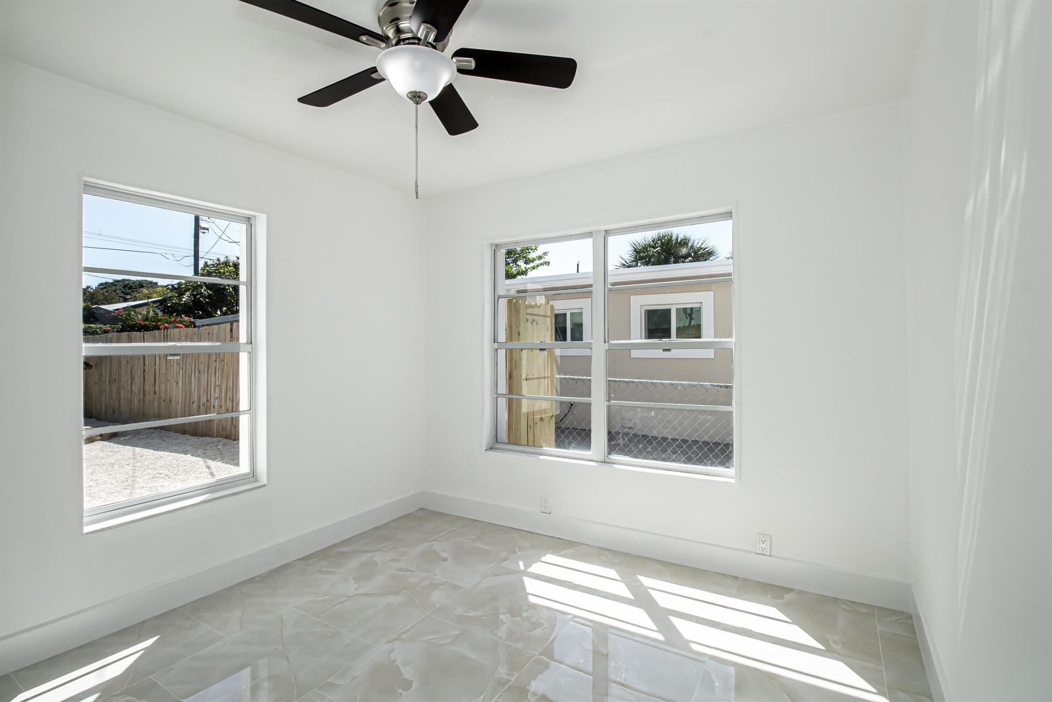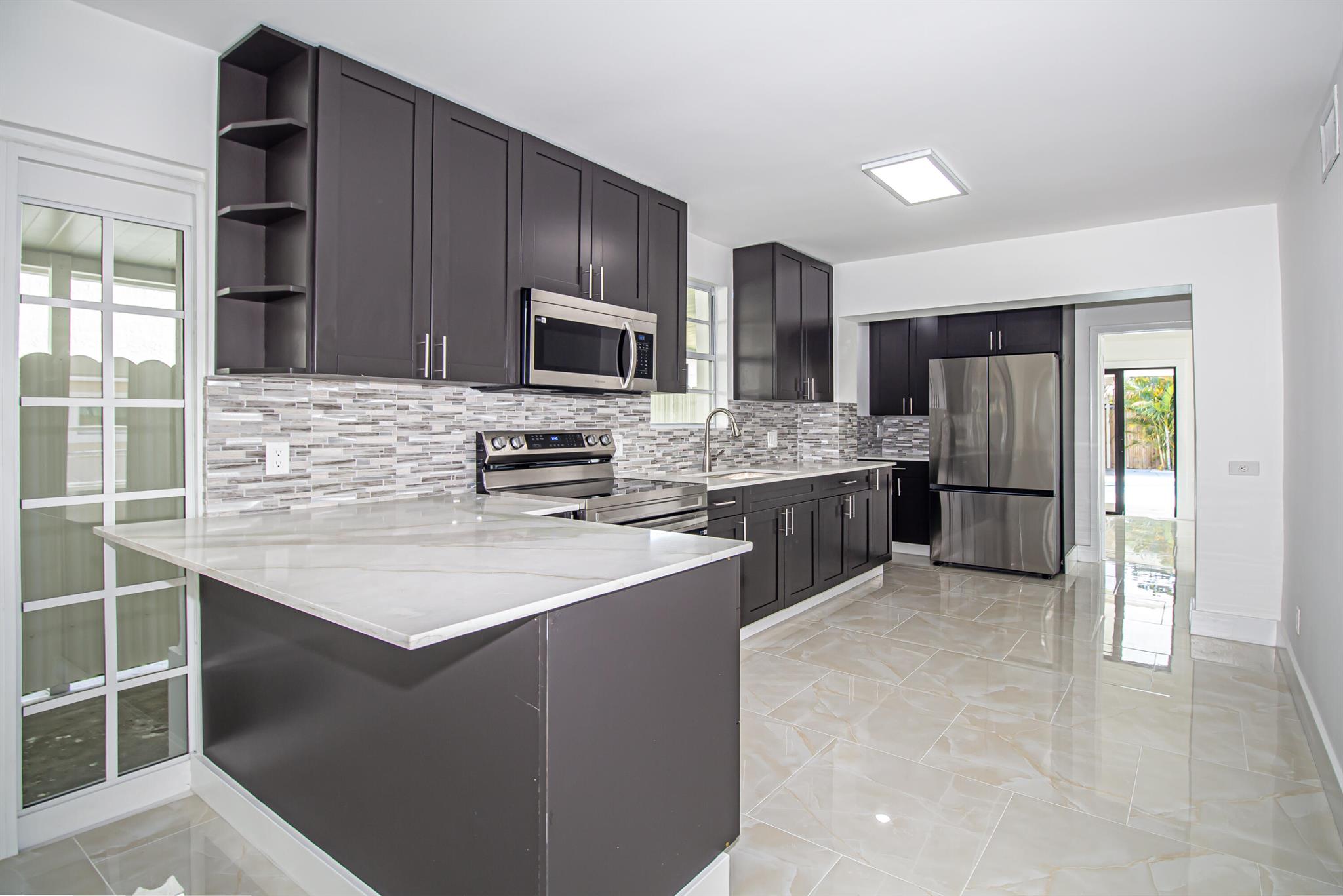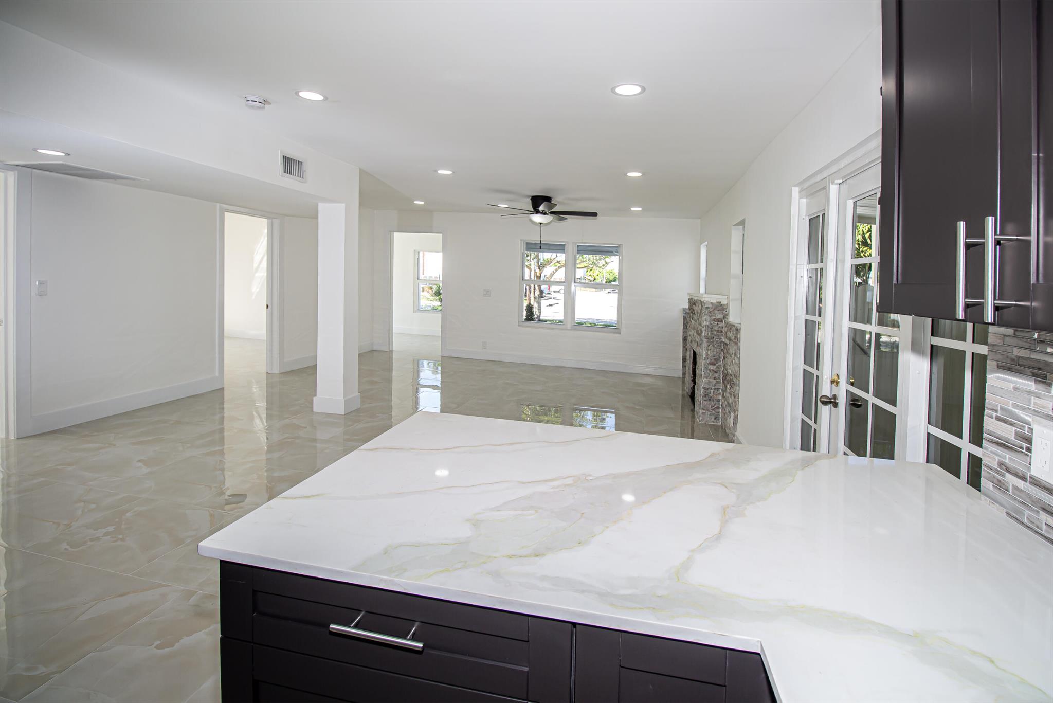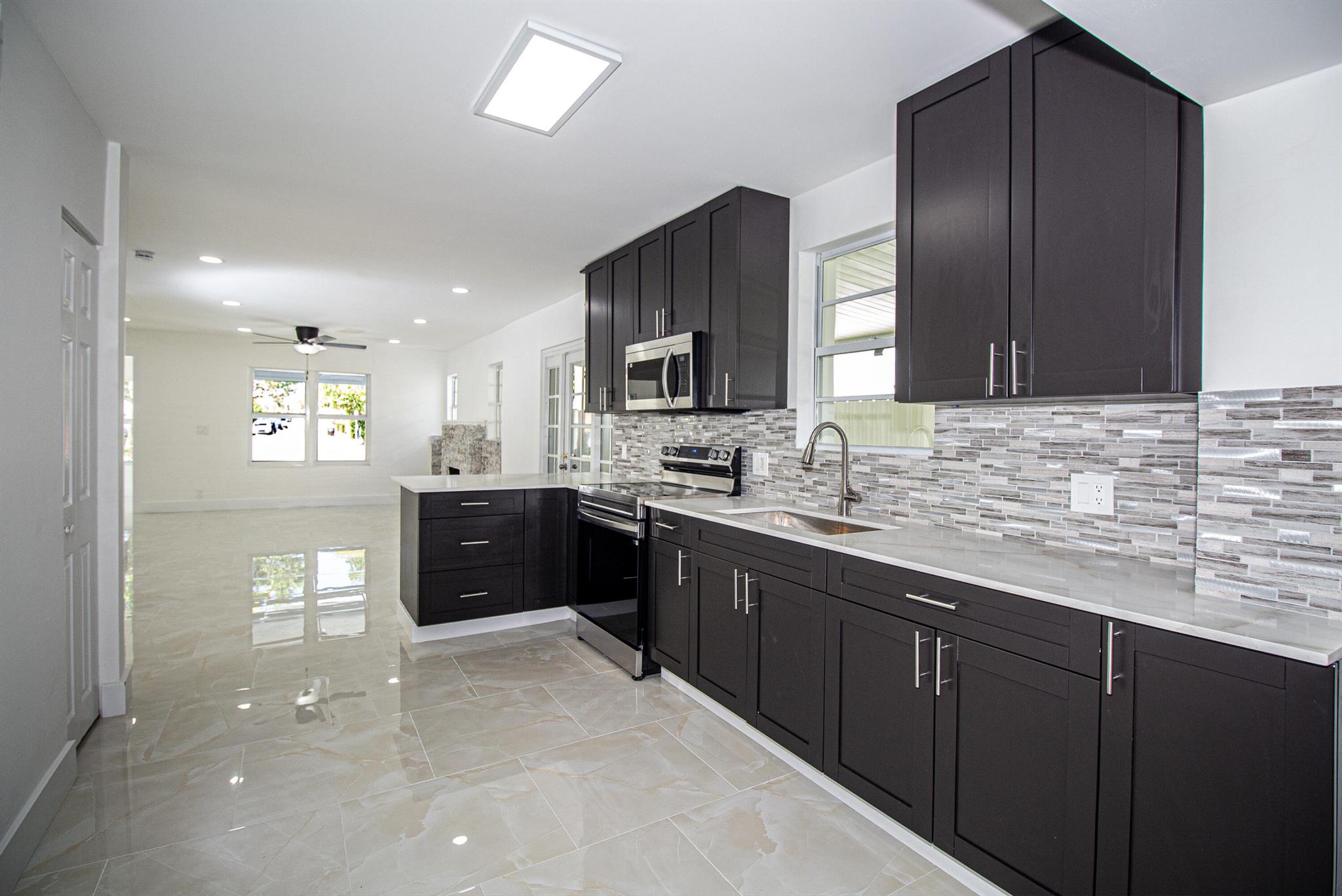 Welcome to this beautifully restored Mediterranean Revival home located in one of West Palm Beach’s most desirable neighborhoods. This residence effortlessly blends timeless architectural charm with modern updates designed for comfort and functionality. With four spacious bedrooms and two elegantly remodeled bathrooms, this property offers an ideal layout for both everyday living and entertaining. Inside, you’ll find porcelain tile flooring flowing seamlessly throughout the home, complementing the custom wood cabinetry, quartz countertops, and premium stainless steel Samsung appliances in the kitchen. The open concept design provides a bright and inviting atmosphere, while select impact windows, central A/C, and ceiling fans in every room enhance comfort and energy efficiency year roun