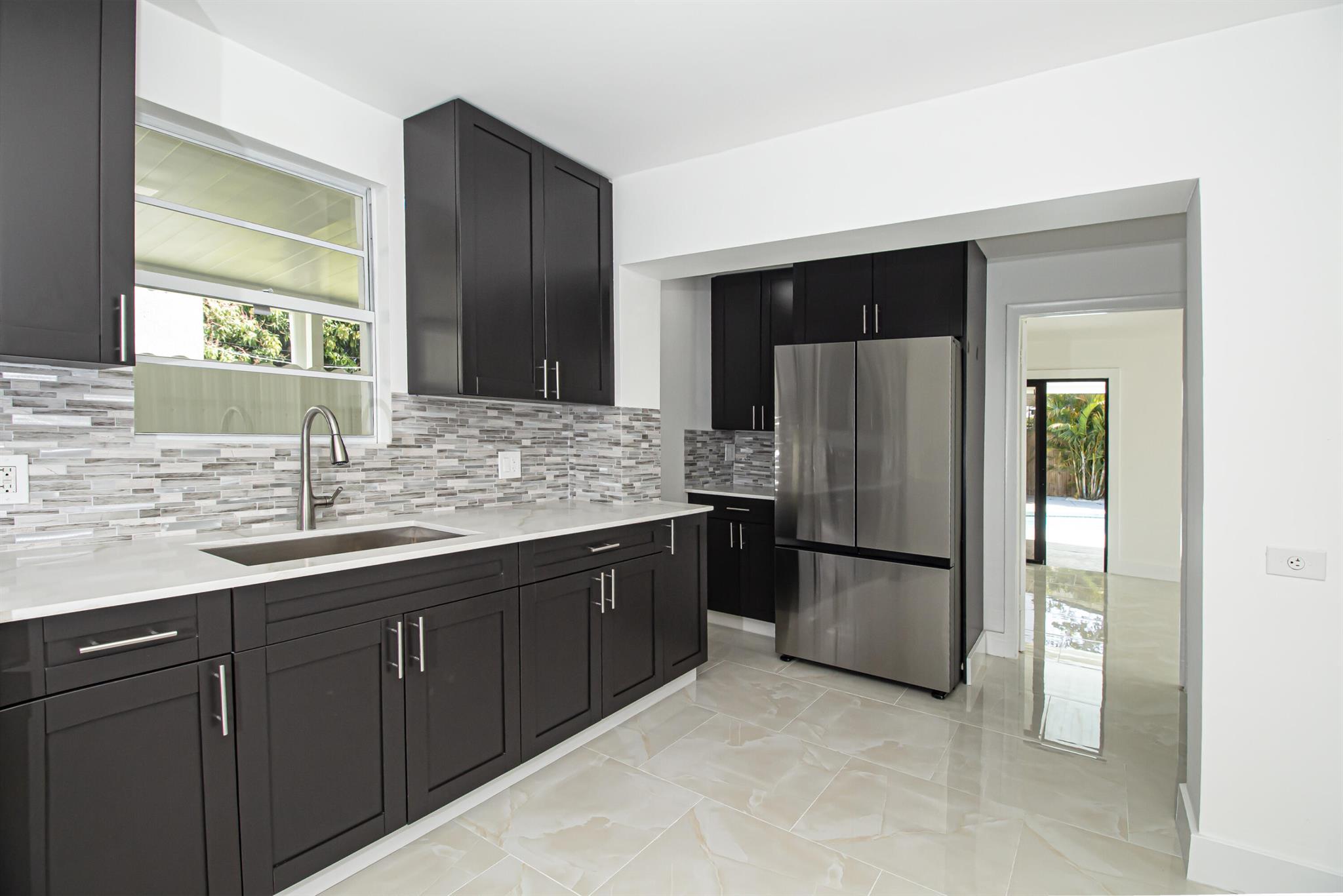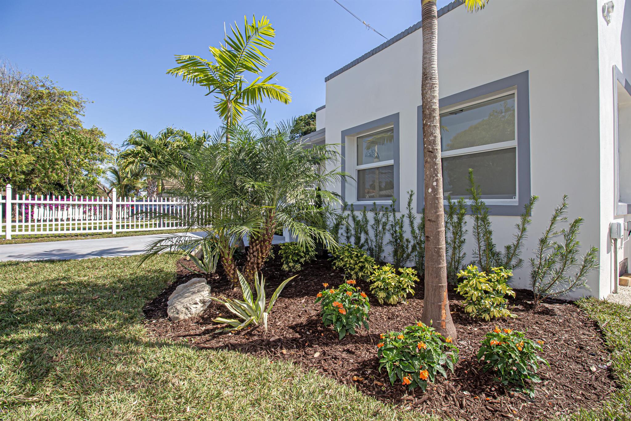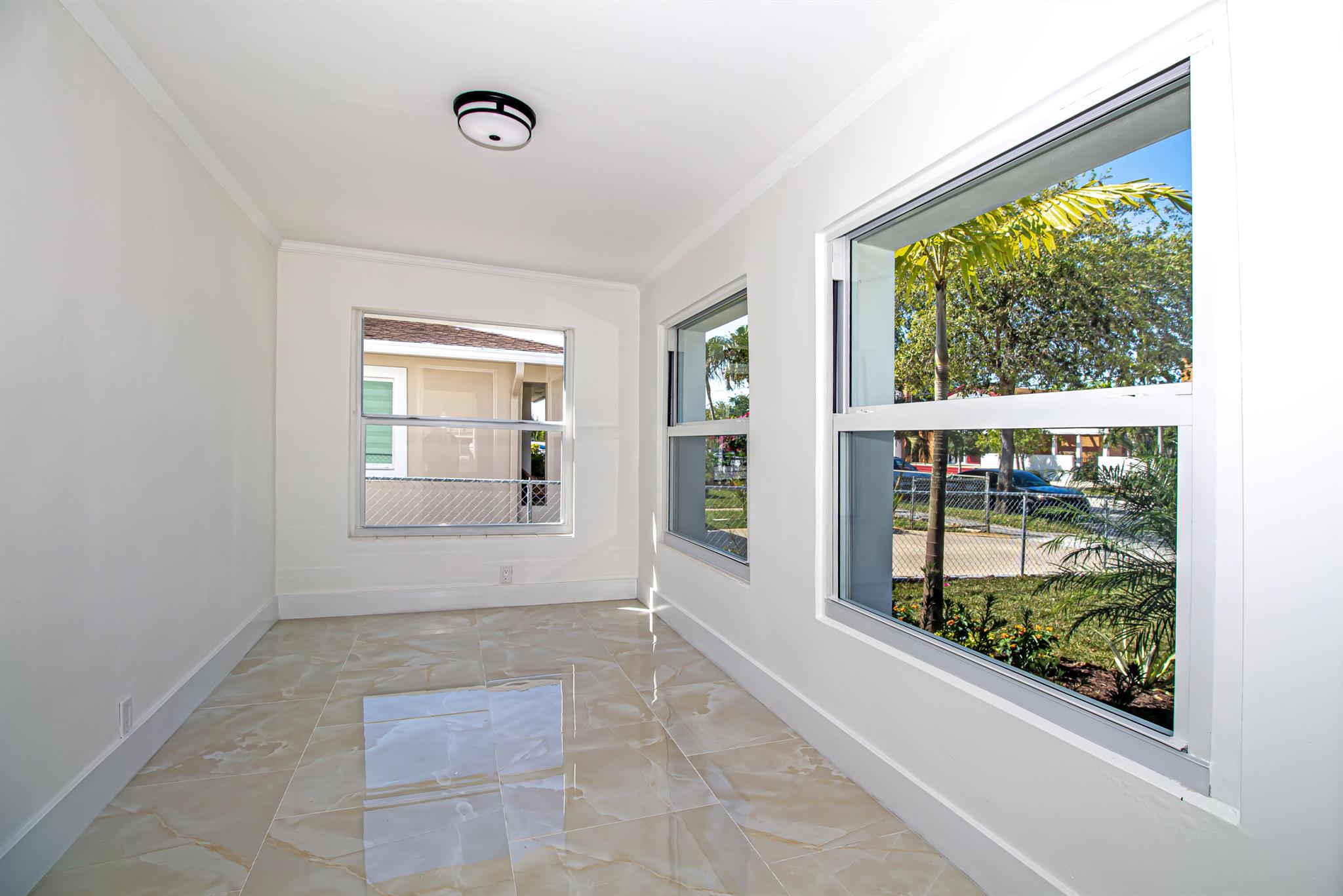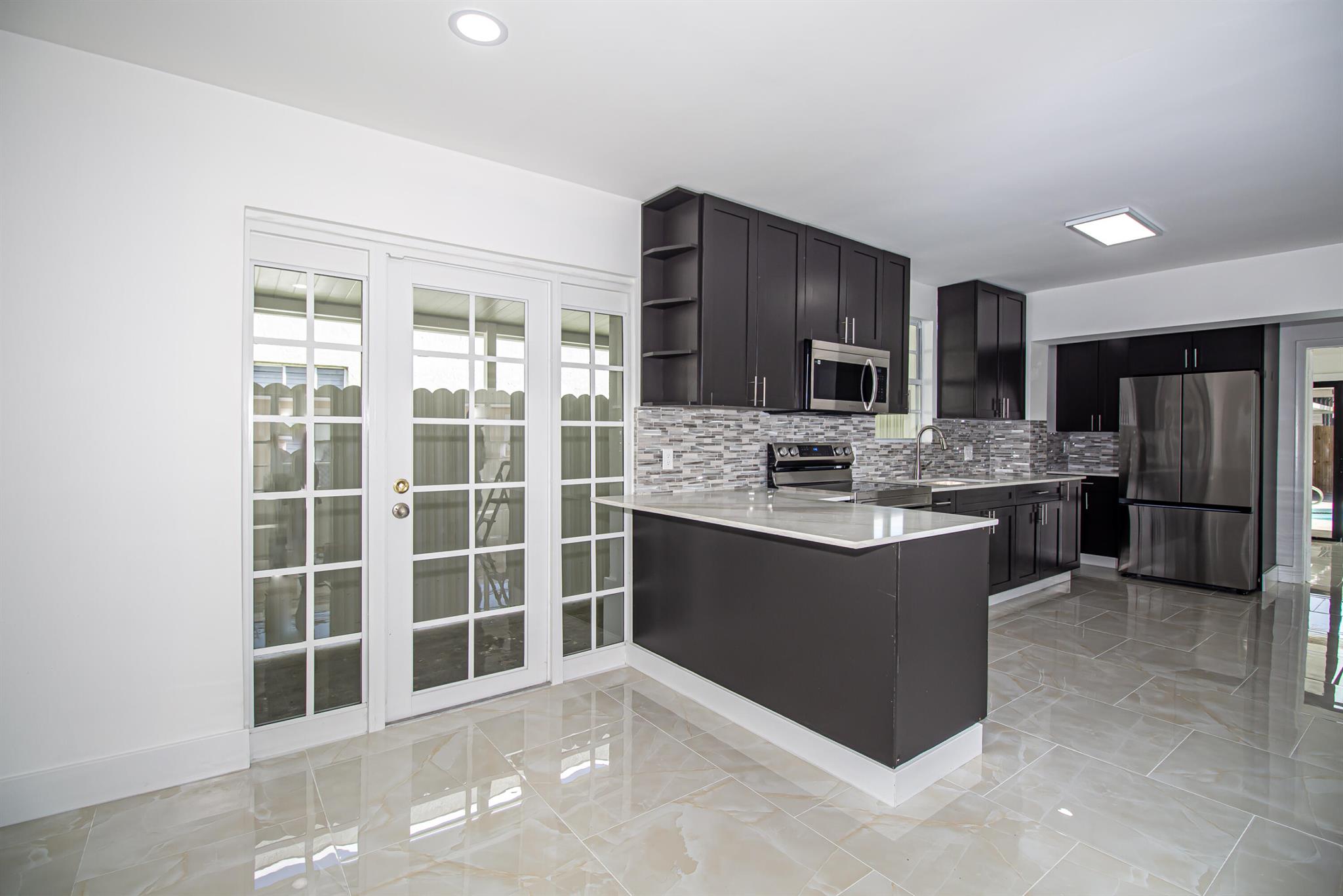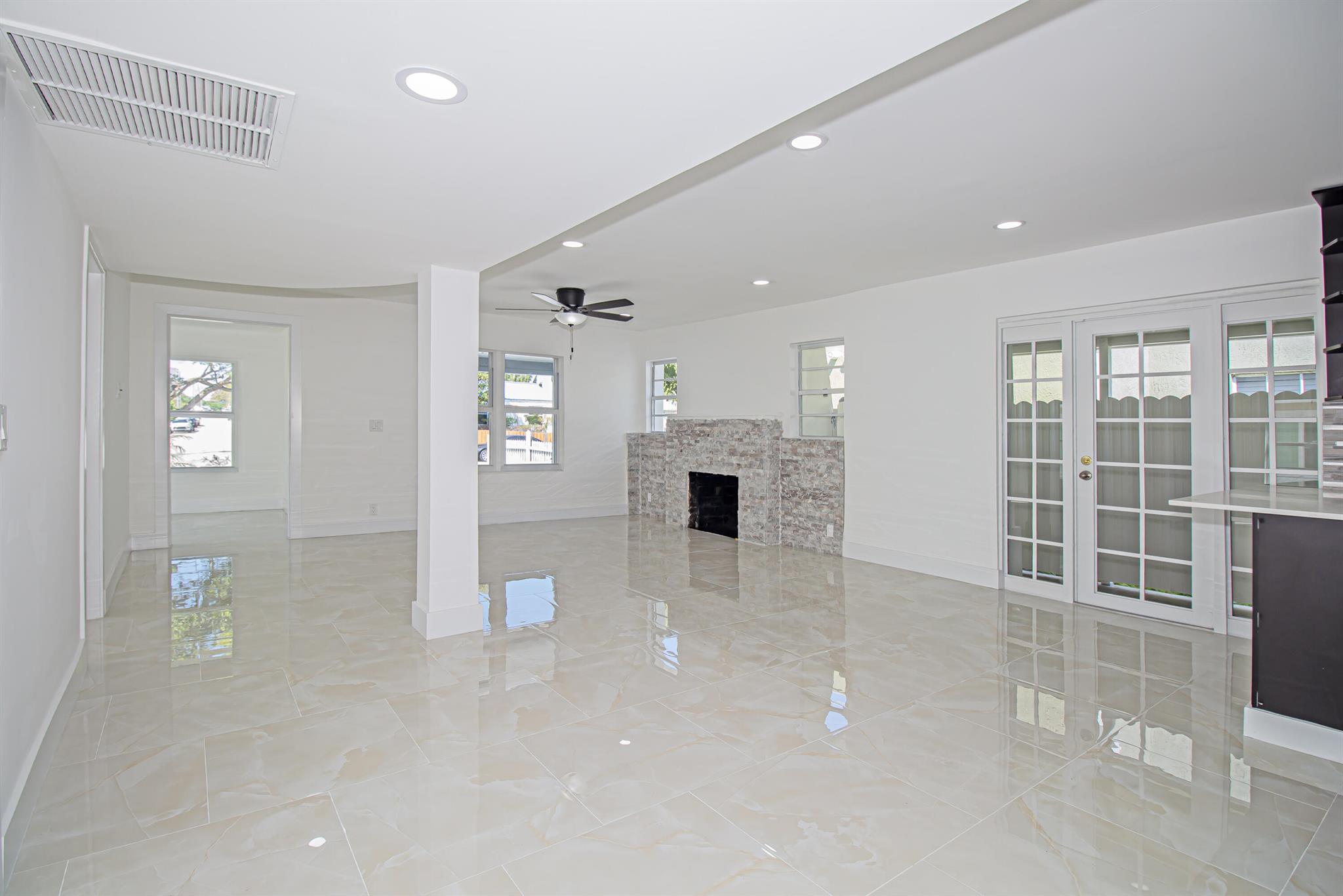 Welcome to this beautifully restored Mediterranean Revival home located in one of West Palm Beach’s most desirable neighborhoods. This residence effortlessly blends timeless architectural charm with modern updates designed for comfort and functionality. With four spacious bedrooms and two elegantly remodeled bathrooms, this property offers an ideal layout for both everyday living and entertaining. Inside, you’ll find porcelain tile flooring flowing seamlessly throughout the home, complementing the custom wood cabinetry, quartz countertops, and premium stainless steel Samsung appliances in the kitchen. The open concept design provides a bright and inviting atmosphere, while select impact windows, central A/C, and ceiling fans in every room enhance comfort and energy efficiency year roun