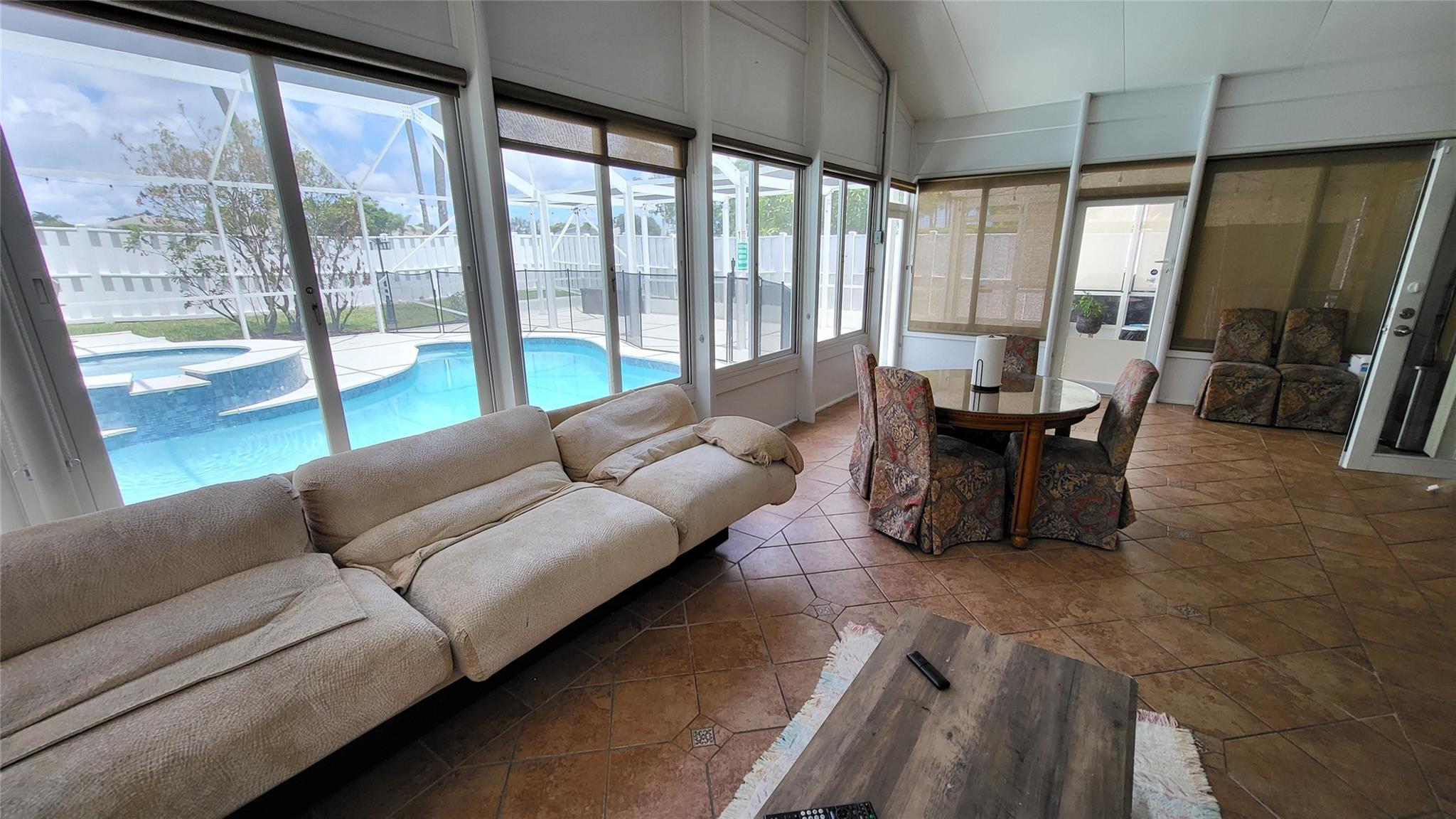 MOVE RIGHT IN THIS FULLY RENOVATED WELL MAINTAINED 4 BEDROOM 2/1/2 BATH. NEW AC. SCREENED POOL/SPA AND PATIO REMODELED LAST YEAR INCLUDING POOL AND SPA SURFACE, MARBLE COPING, GLASS TILE, STAMPED CONCRETE, SALT SYSTEM POOL EQUIPMENT, NEW SCREENS AND KIDS FENCE. FRENCH DOOR LEADS TO THE HUGE FLORIDA ROOM WITH SUN-SHADES IN EACH 12 WINDOWS, SPACIOUS MASTER SUITE HAS A SLIDING DOOR TO THE POOL AREA, CUSTOM WALK IN CLOSETS. WHIRLPOOL JETTED TUB WITH LIGHTS AND SEPARATE SHOWER IN THE MASTER BATH. IMPACT WINDOWS AND DOORS, HURRICANE SHUTTERS. EAT-IN KITCHEN MAPLE CABINETS GRANITE COUNTERTOPS. FORMAL DINING AND LIVING, FAMILY ROOM. LARGE CLOSET IN GARAGE. PRIVACY FENCE. NO NEIGHBORS IN THE BACK. BEAUTIFUL NEIGHBORHOOD, GREAT LOCATION! TENANT OCCUPIED UNTIL APRIL 30, 2026 WITH $5,900 RENT INCOME.