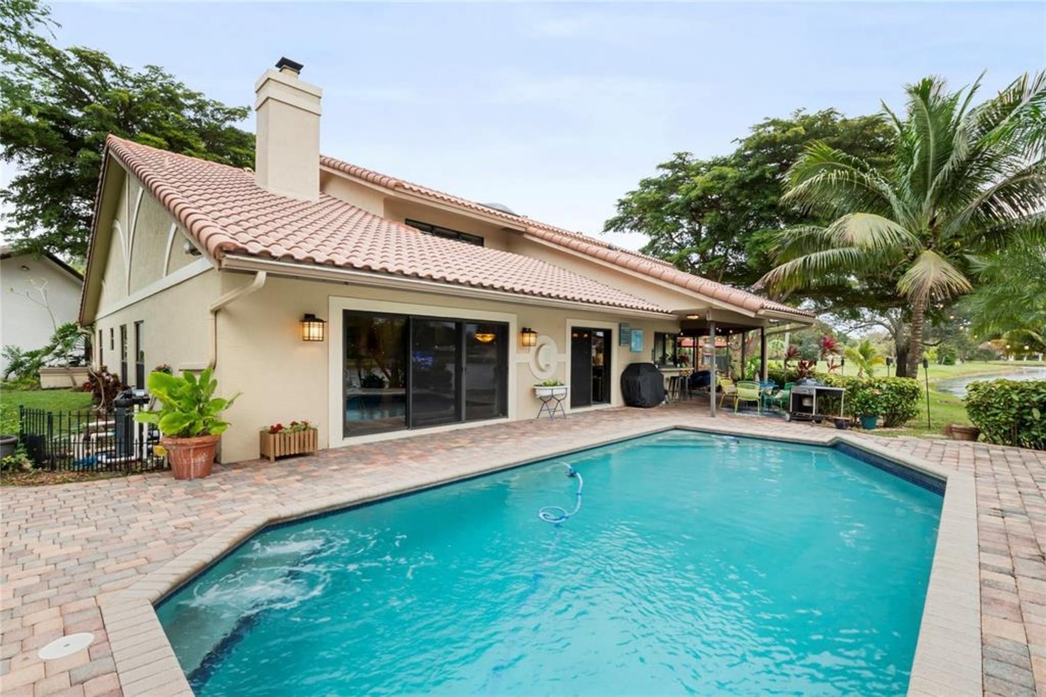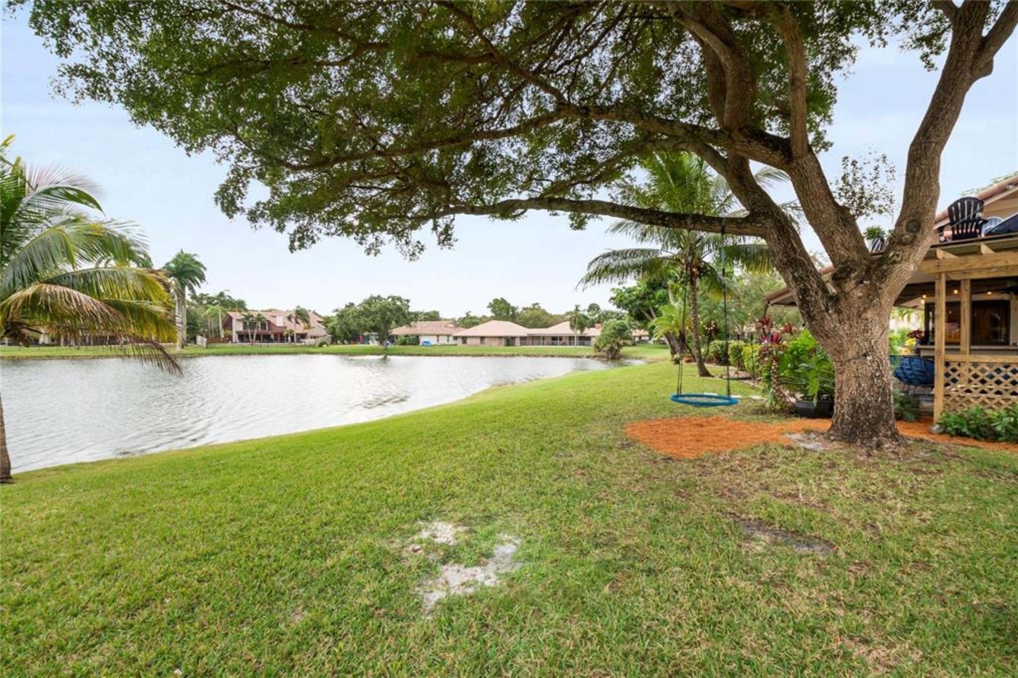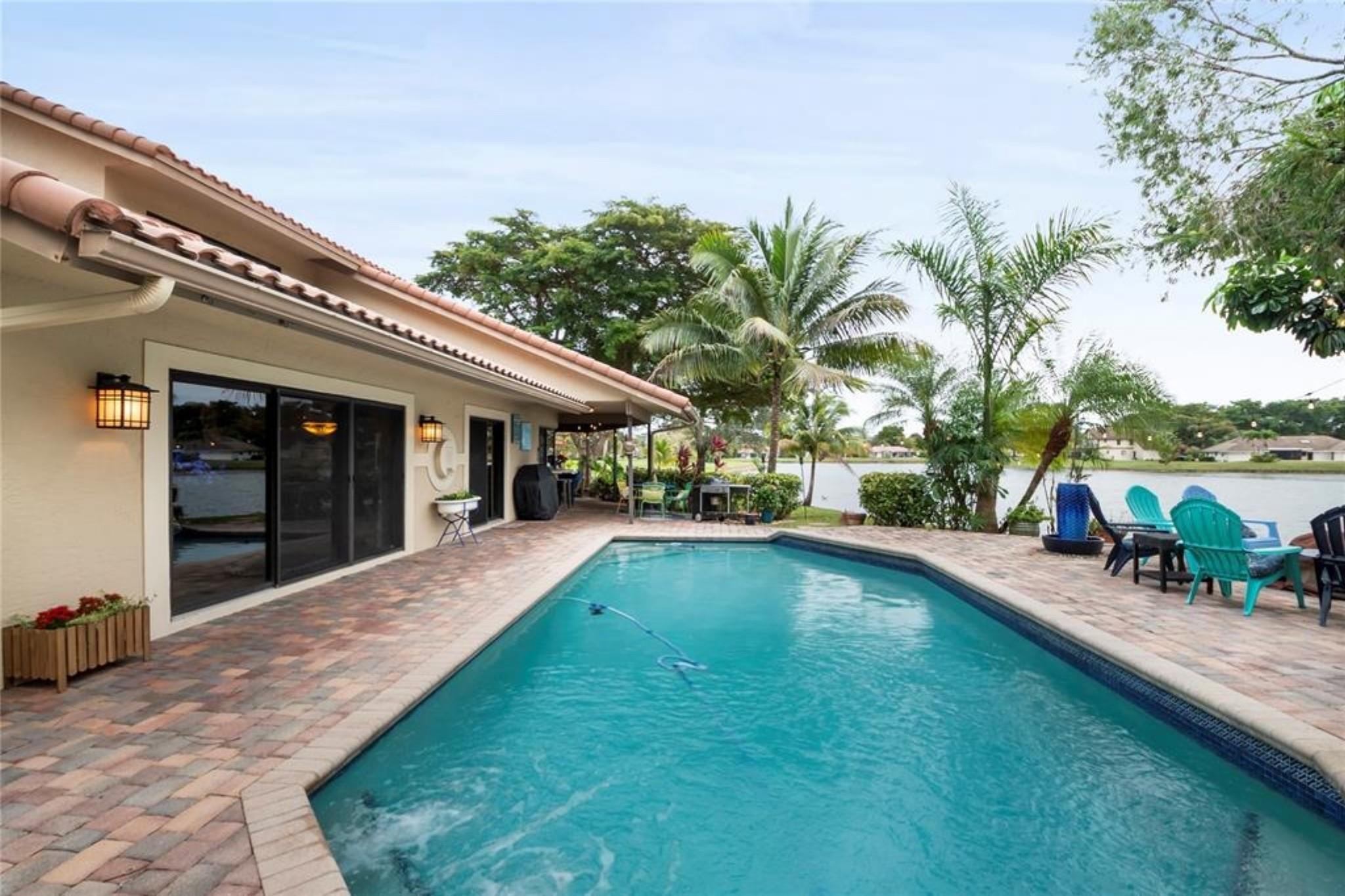 Exquisite 2-story lakefront pool home nestled on a serene cul-de-sac lot with stunning water and sunset views in highly sought-after Glen Oaks! This rare find boasts over 3,600 sqft under air, plenty of room to add a 5th BR if needed, marble floors, double-sided stone fireplace, high ceilings, custom kitchen, upgraded baths, impact windows & doors, washer & dryer & 2-car garage. Enormous primary ste encompassing the entire 2nd flr feat a private terrace overlooking the lake. Additional rooms include an open kitchen/family room and formal living/dining. Spectacular FENCED, tropical backyard with in-ground pool and lush foliage is serene & perfect for entertaining. Vivint home security system w/ electric keypad-coded front door lock & camera. Truly a gem near major highways, schools, etc ++