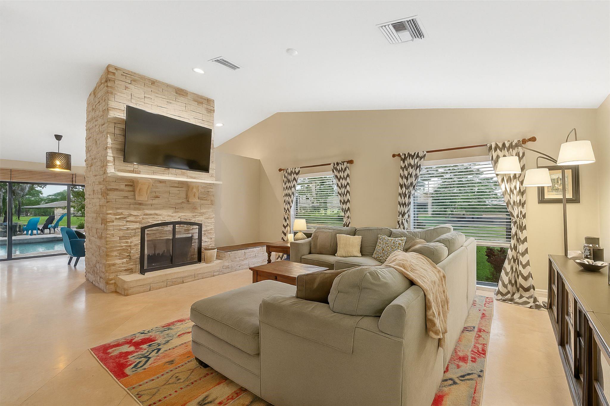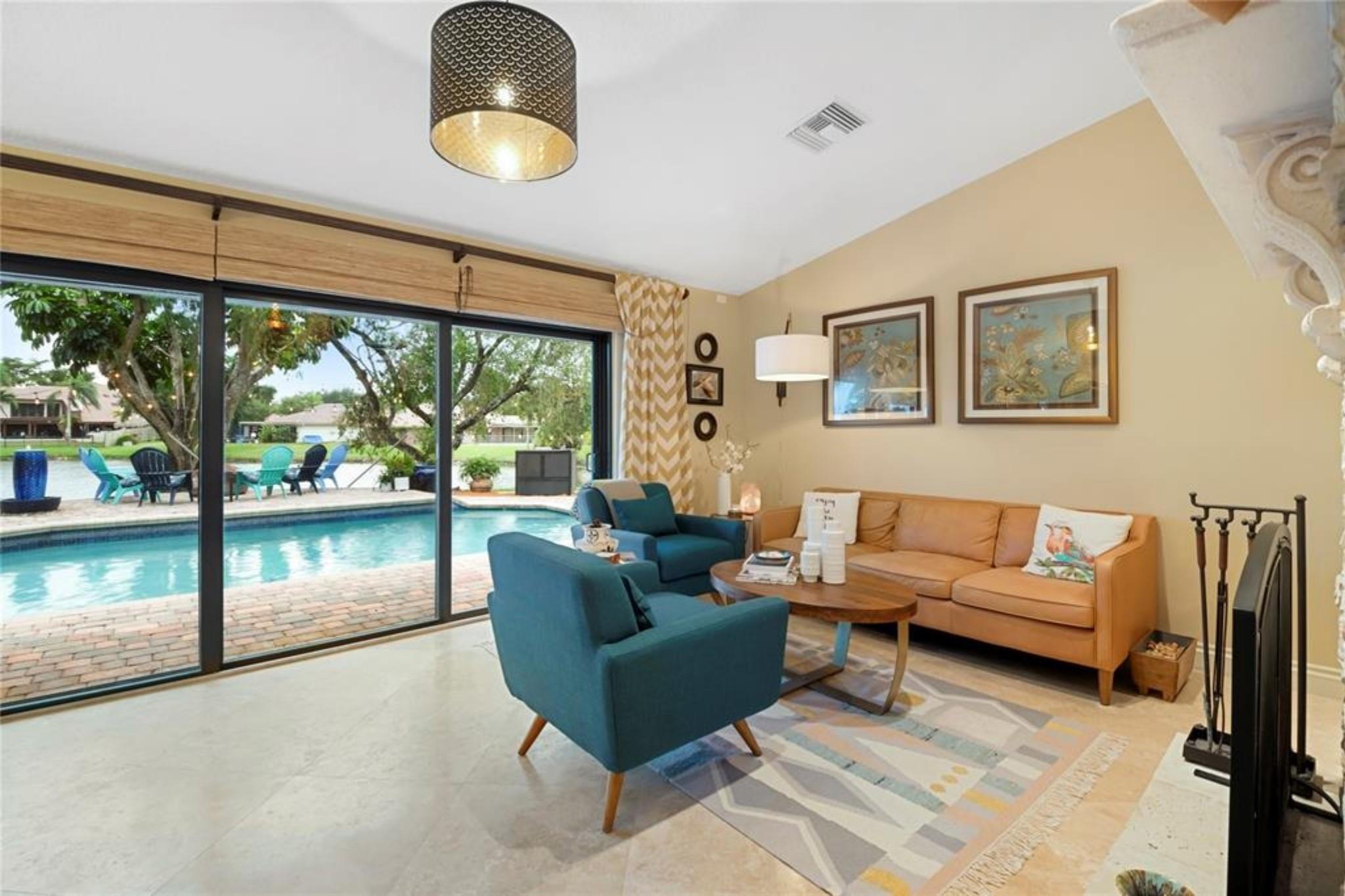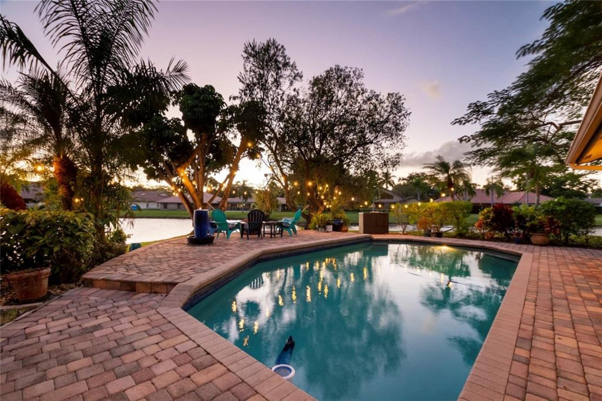 Exquisite 2-story lakefront pool home nestled on a serene cul-de-sac lot with stunning water and sunset views in highly sought-after Glen Oaks! This rare find boasts over 3,600 sqft under air, plenty of room to add a 5th BR if needed, marble floors, double-sided stone fireplace, high ceilings, custom kitchen, upgraded baths, impact windows & doors, washer & dryer & 2-car garage. Enormous primary ste encompassing the entire 2nd flr feat a private terrace overlooking the lake. Additional rooms include an open kitchen/family room and formal living/dining. Spectacular FENCED, tropical backyard with in-ground pool and lush foliage is serene & perfect for entertaining. Vivint home security system w/ electric keypad-coded front door lock & camera. Truly a gem near major highways, schools, etc ++