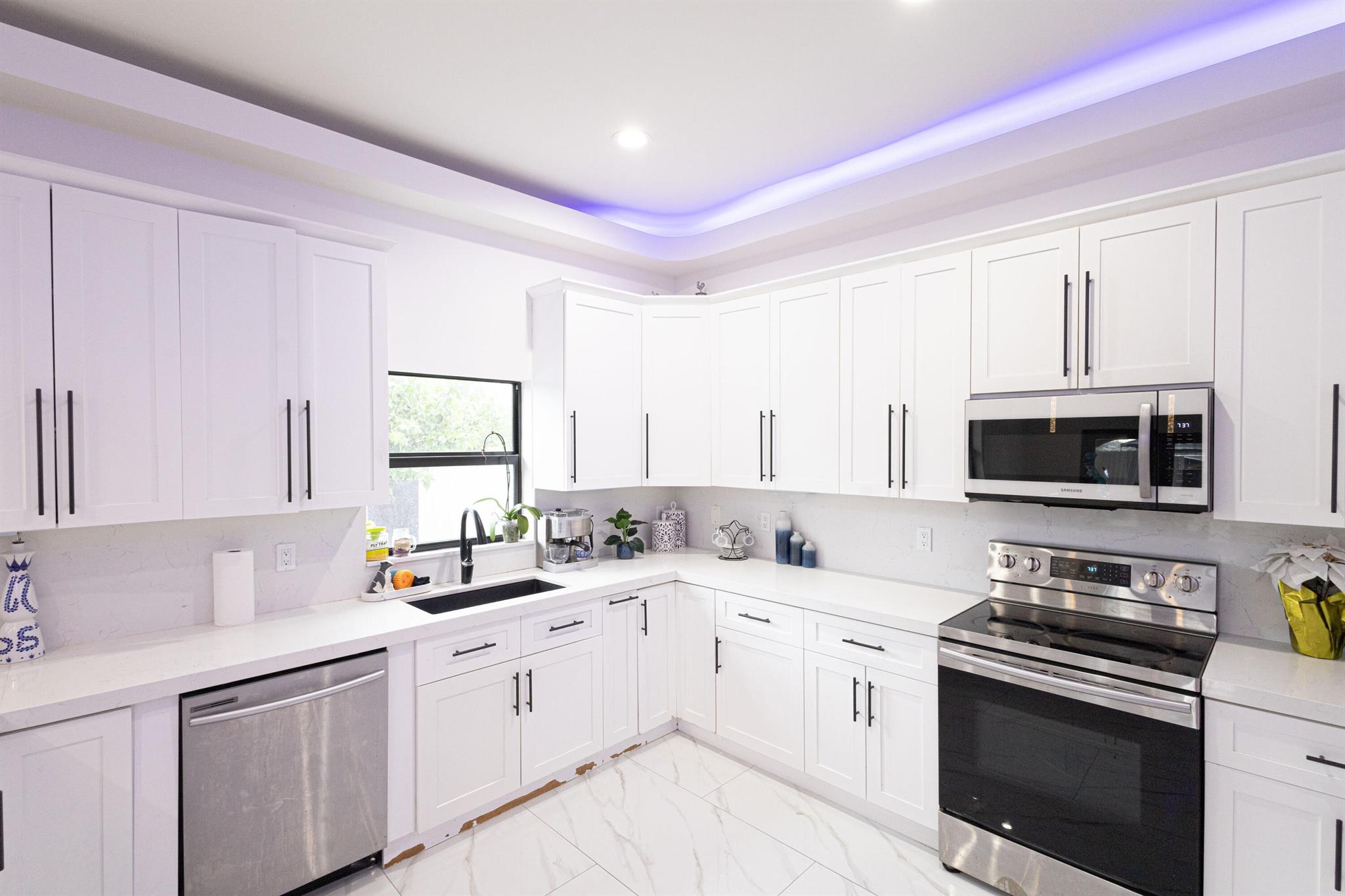 Discover this modern 2020-built home featuring 4 bedrooms and 3 bathrooms, perfectly designed for comfort and style. The main home offers 3 spacious bedrooms and 2 full baths, showcasing an open-concept layout with high ceilings, elegant finishes, and energy-efficient LED lighting throughout. Enjoy a sleek modern kitchen with stainless steel appliances, quartz countertops, and plenty of storage. The property includes a private 1-bedroom, 1-bath apartment–ideal for generating extra income, hosting guests, or as an in-law suite.everything is new and move-in ready: impact windows and doors, updated systems, and modern design. Located in a highly desired neighborhood, this home combines privacy, convenience, and long-term value.