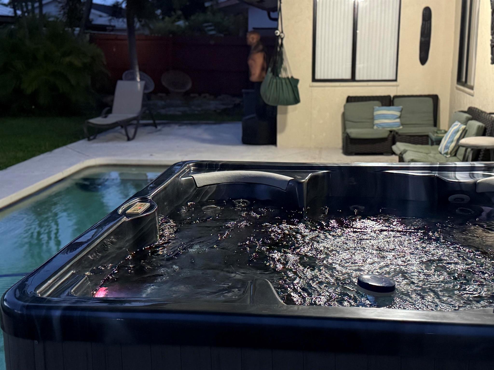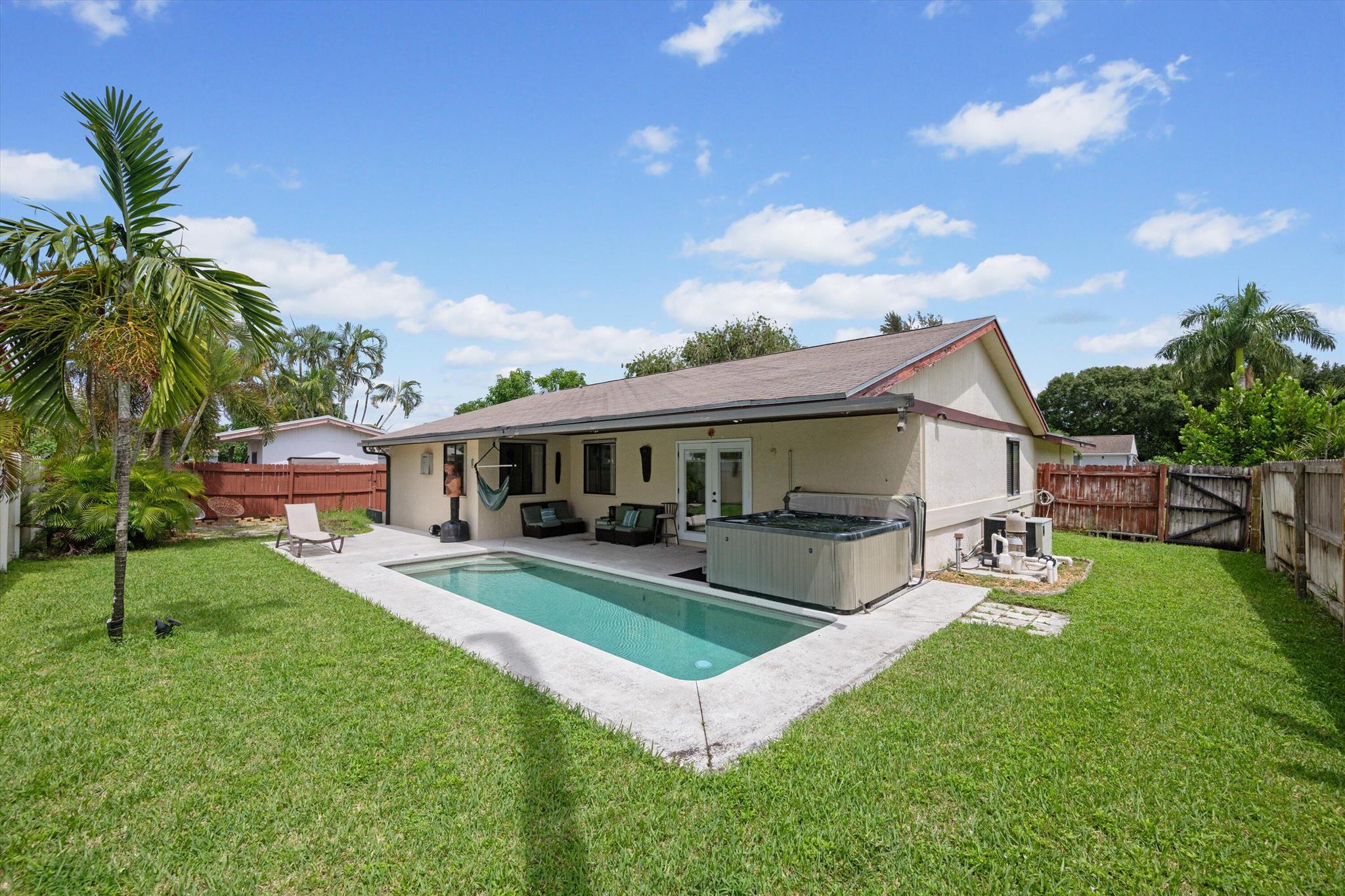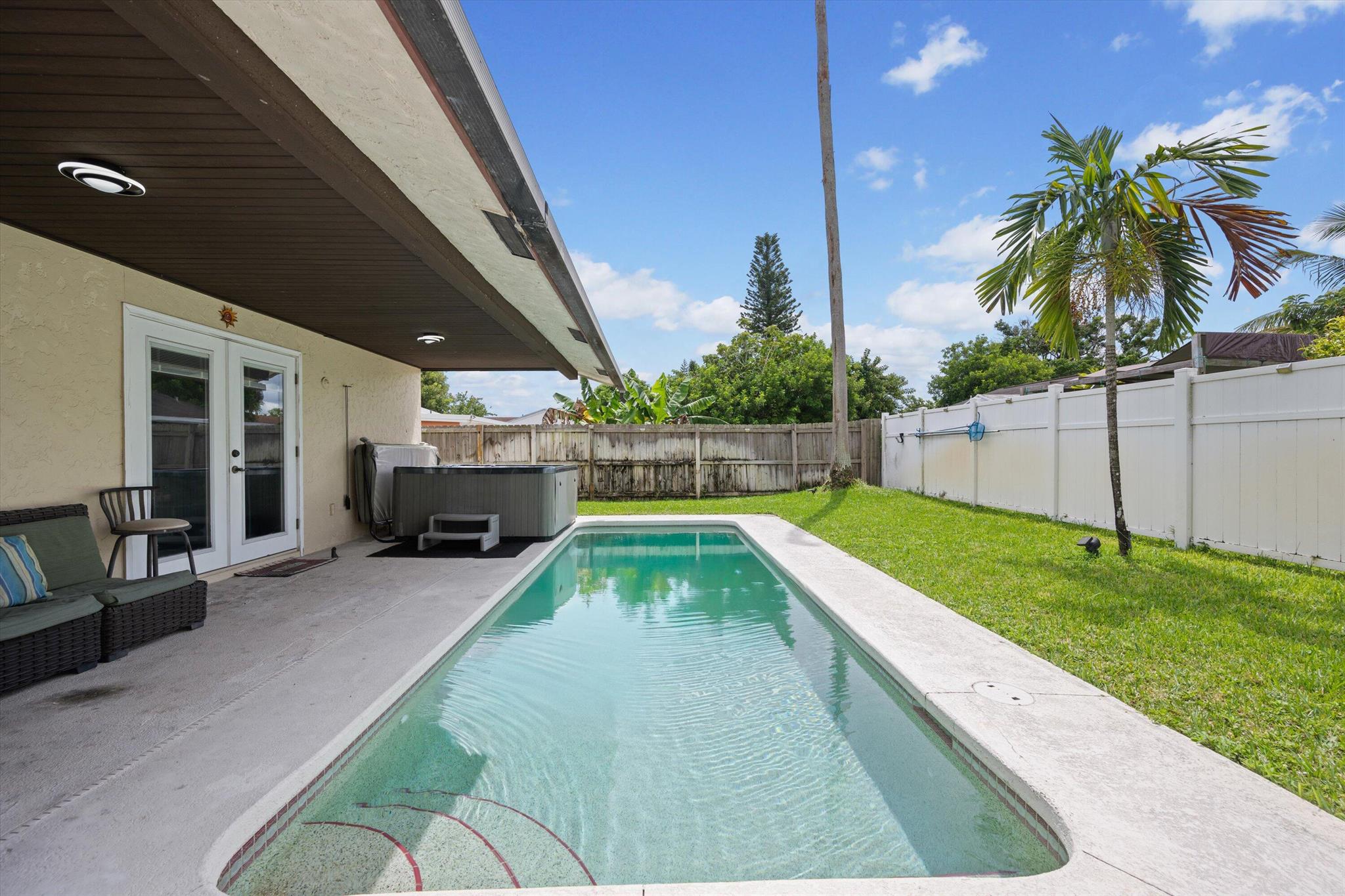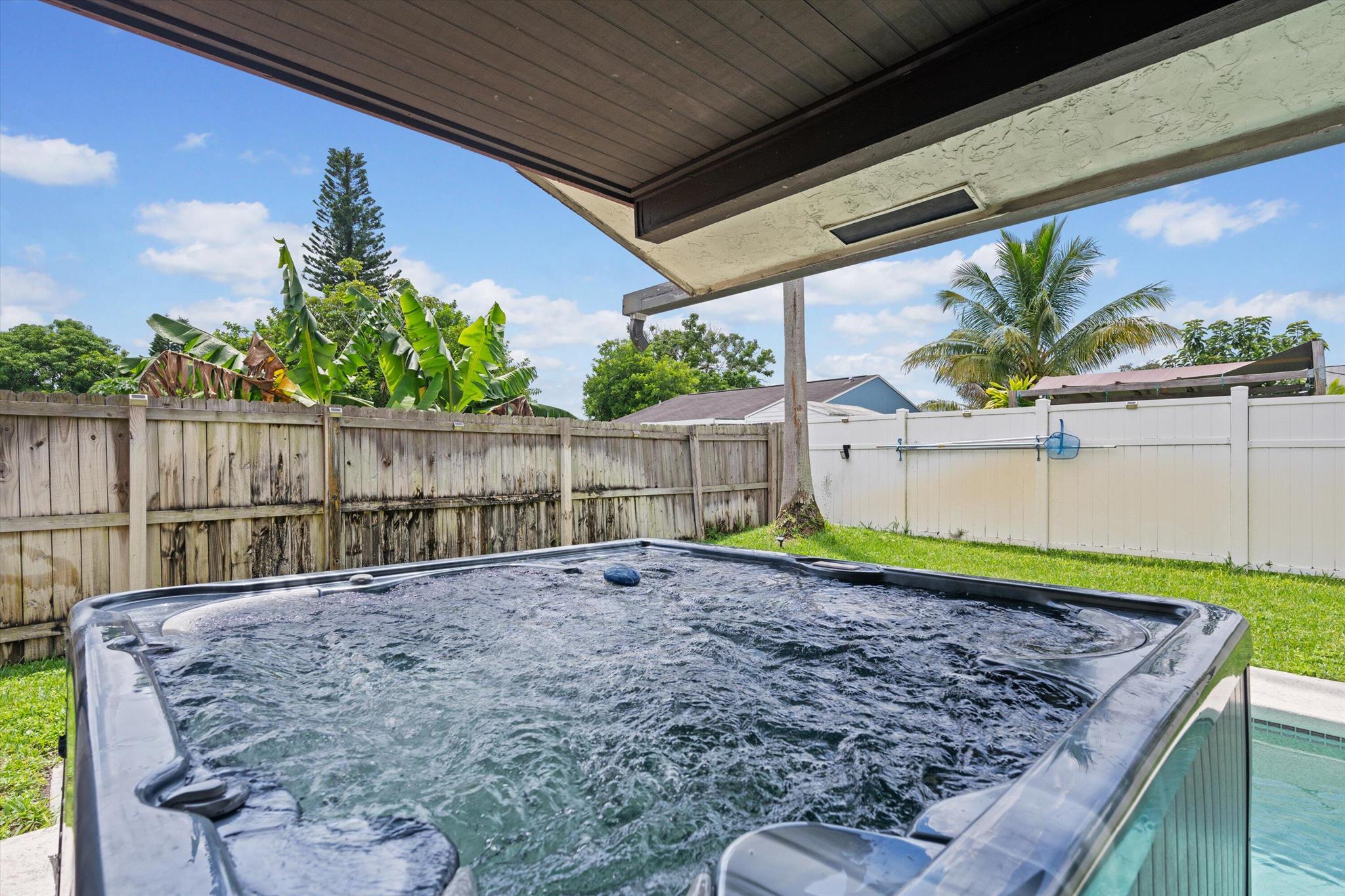 Located in Counterpoint Estates, this home is a short walk to the community park. Private backyard features a heated pool, six-person Infinity Spa, fire pit area, and ample space for entertaining. Open floor plan inside with granite countertops, garage with automatic opener, and an additional room for a fourth bedroom or home office. Upgrades include remote-control ceiling fans, Ecobee smart thermostat, and security system with cameras. Sprinkler system, shutters, and negotiable furniture included. Lawn equipment and EV Tesla charger included. Conveniently close to Palm Beach International Airport and area beaches.